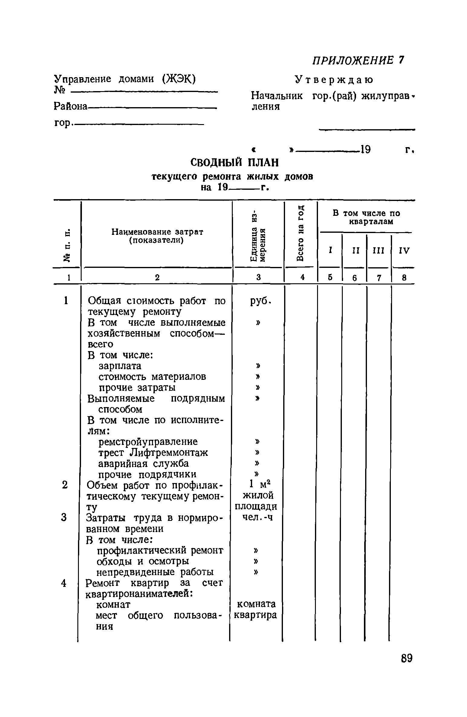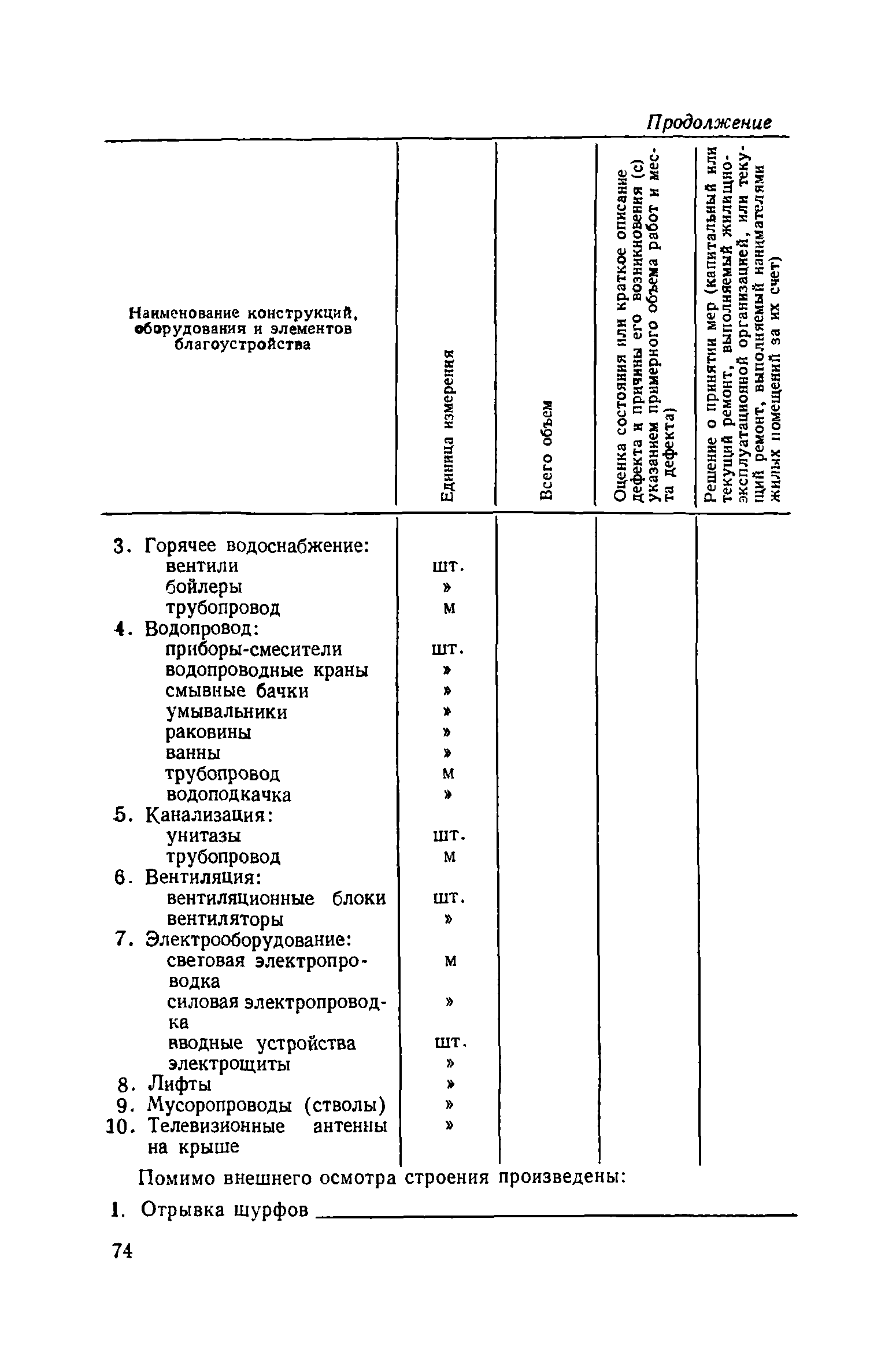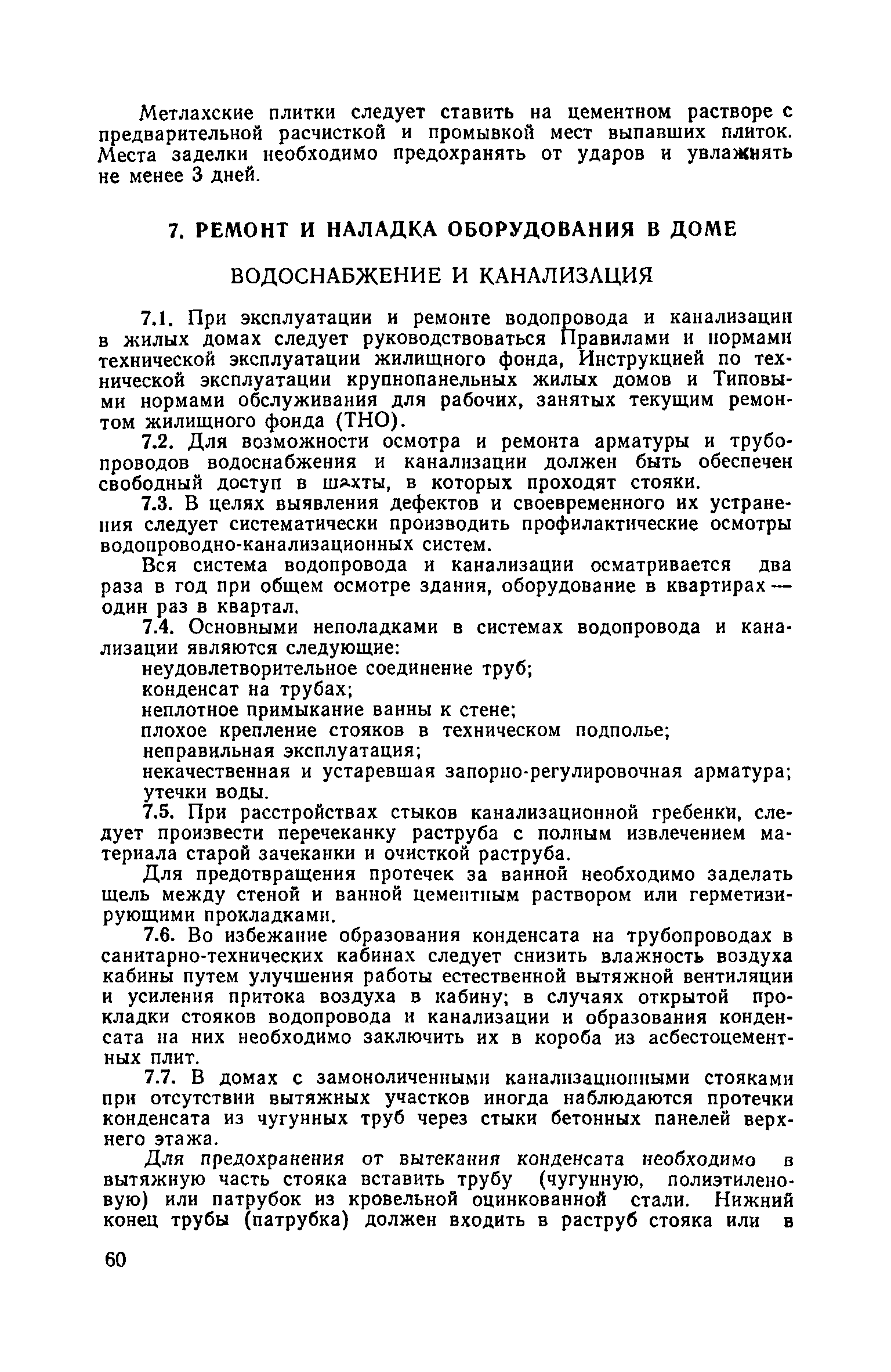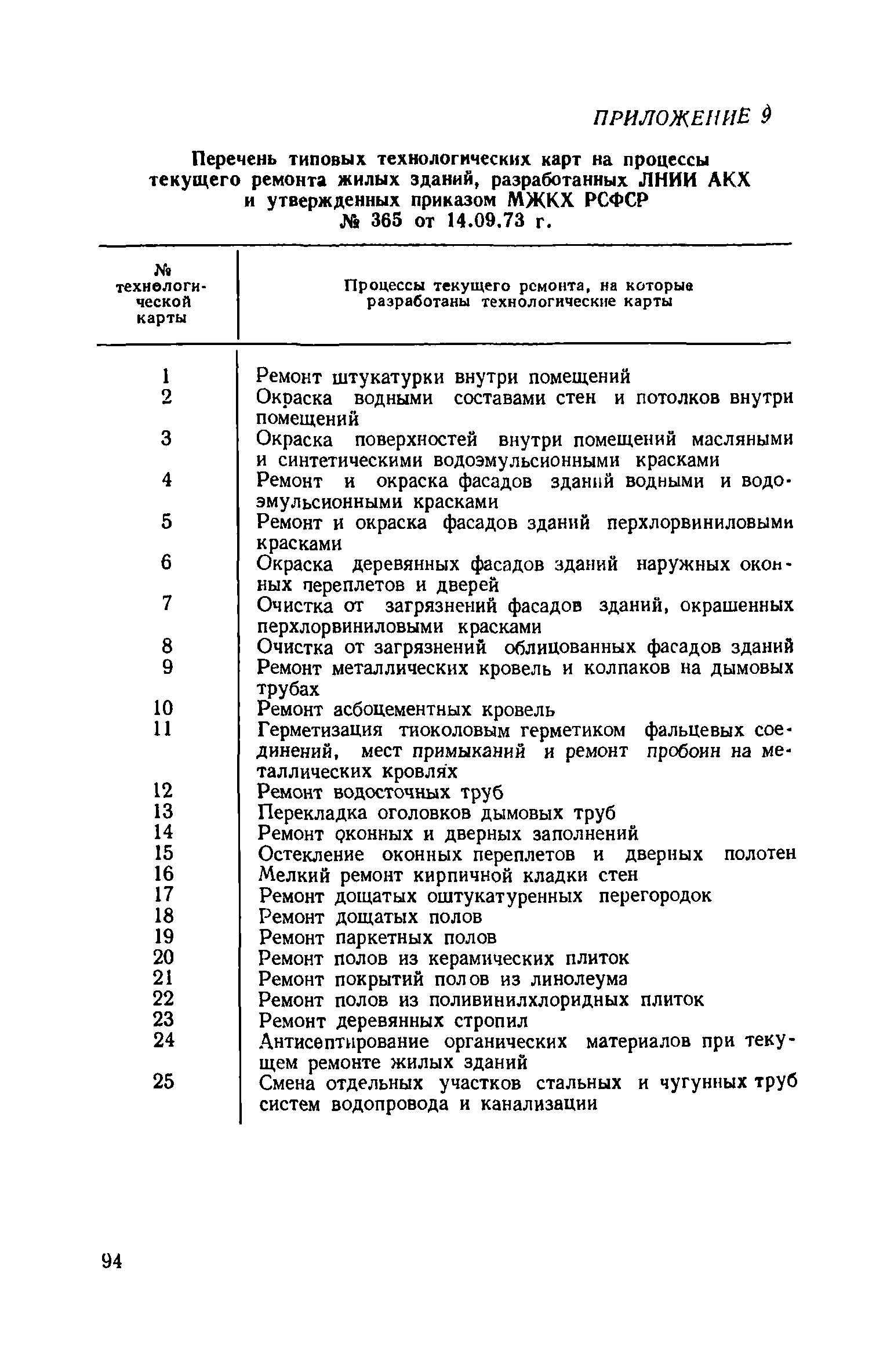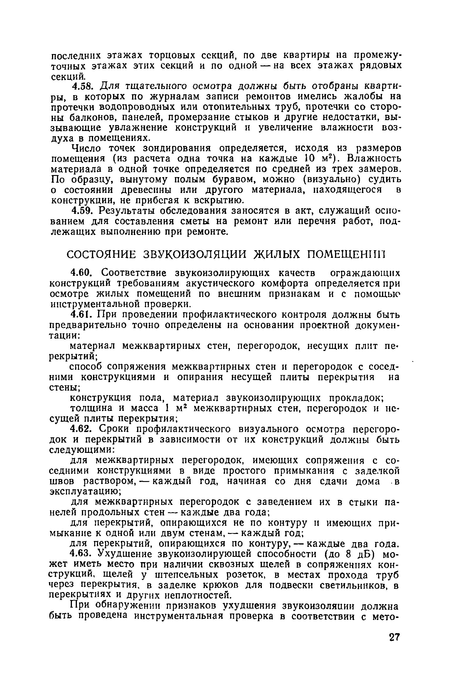 | Оглавление: | Введение 1. Общие указания 2. Планирование профилактического текущего ремонта крупнопанельных зданий 3. Организация профилактического текущего ремонта жилых крупнопанельных зданий 4. Методика периодических осмотров и обследования крупнопанельных зданий 5. Определение причин появления и способов устранения основных дефектов в конструктивных элементах крупнопанельных зданий 6. Технология профилактического текущего ремонта крупнопанельных зданий 7. Ремонт и наладка оборудования в доме Приложение 1. Формы актов общего осмотра зданий Приложение 2. Примерный перечень работ по текущему ремонту жилых крупнопанельных зданий Приложение 3. Перечень работ по техническому обслуживанию элементов жилого крупнопанельного здания, выполняемых при проведении частичных осмотров Приложение 4. Журнал регистрации результатов периодических осмотров объектов Приложение 5. Расчет численности и фонда заработной платы рабочих текущего ремонта (форма) Приложение 6. Пообьектный график работ по профилактическому текущему ремонту жилых домов Приложение 7. Сводный план текущего ремонта жилых домов Приложение 8. Перечень типовых технологических карт на процессы ремонта крупнопанельных жилых зданий, разработанных ЛНИИ АКХ и утвержденных приказами МЖКХ РСФСР Приложение 9. Перечень типовых технологических карт на процессы текущего ремонта жилых зданий. Разработанных ЛНИИ АКХ и утвержденных приказом МЖКХ РСФСР от 14.09.73 г. № 365 Приложение 10. Конструктивные схемы крупнопанельных жилых домов Приложение 11. Методика оценки состояния металлических элементов в конструкциях крупнопанельных зданий . . . Приложение 12. Методика определения влажности материалов Приложение 13. Приборы для контрольно-измерительных работ, выполняемых в крупнопанельных зданиях Приложение 14. Герметизация стыков панелей наружных стен (технология) Приложение 15. Гидрофобизация наружных поверхностей стеновых панелей Приложение 16. Материалы для ремонта ячеистобетонных панелей Приложение 17. Рецепты составов для крепления отпавшей облицовочной плитки панелей фасадов Приложение 18. Рецепты моющих средств для фасадов оконных заполнителей |