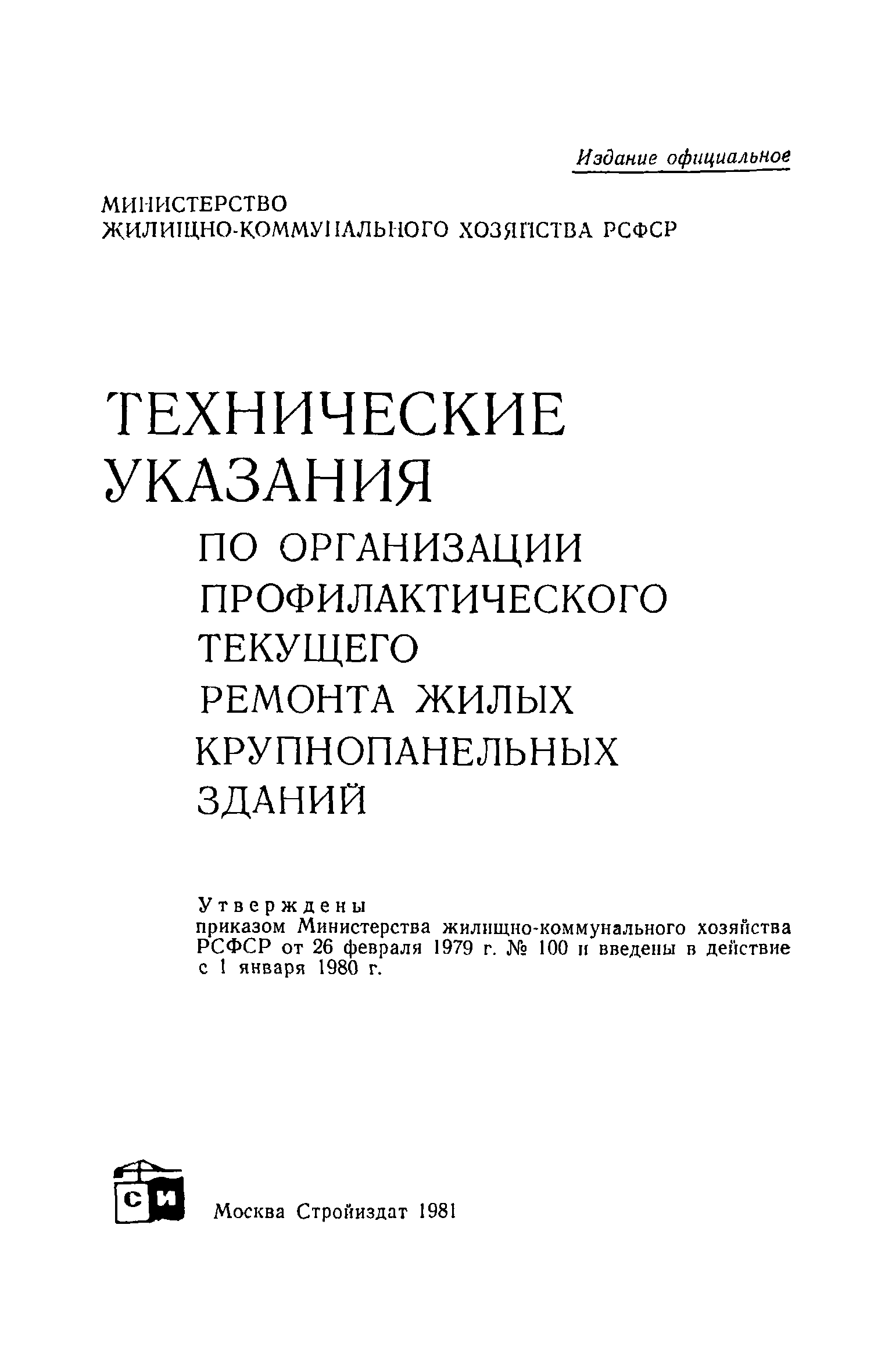 | Утверждён: | 26.02.1979 Министерство жилищно-коммунального хозяйства РСФСР (100)