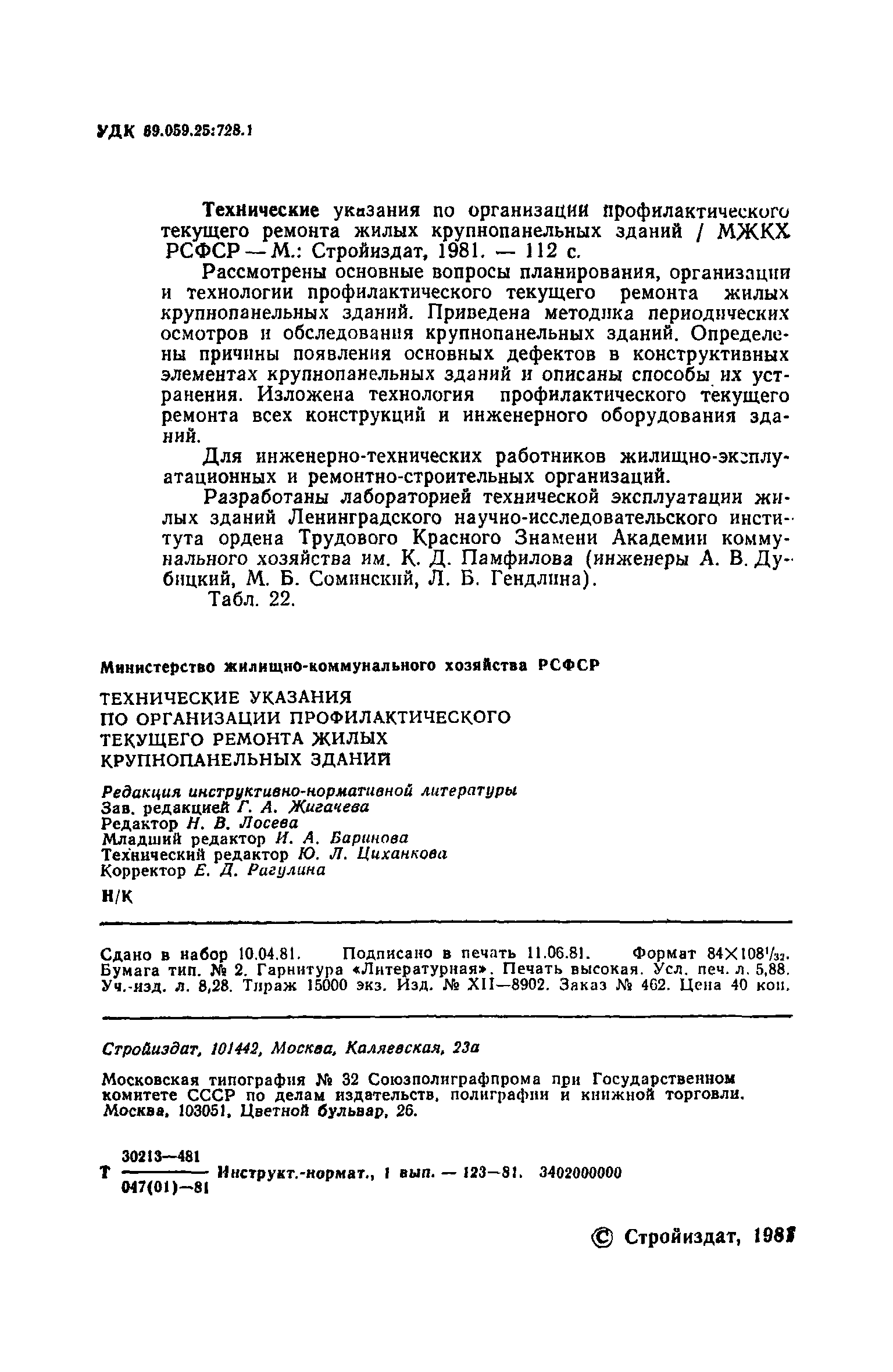 | Название рус.: | Технические указания по организации профилактического текущего ремонта жилых крупнопанельных зданий |
