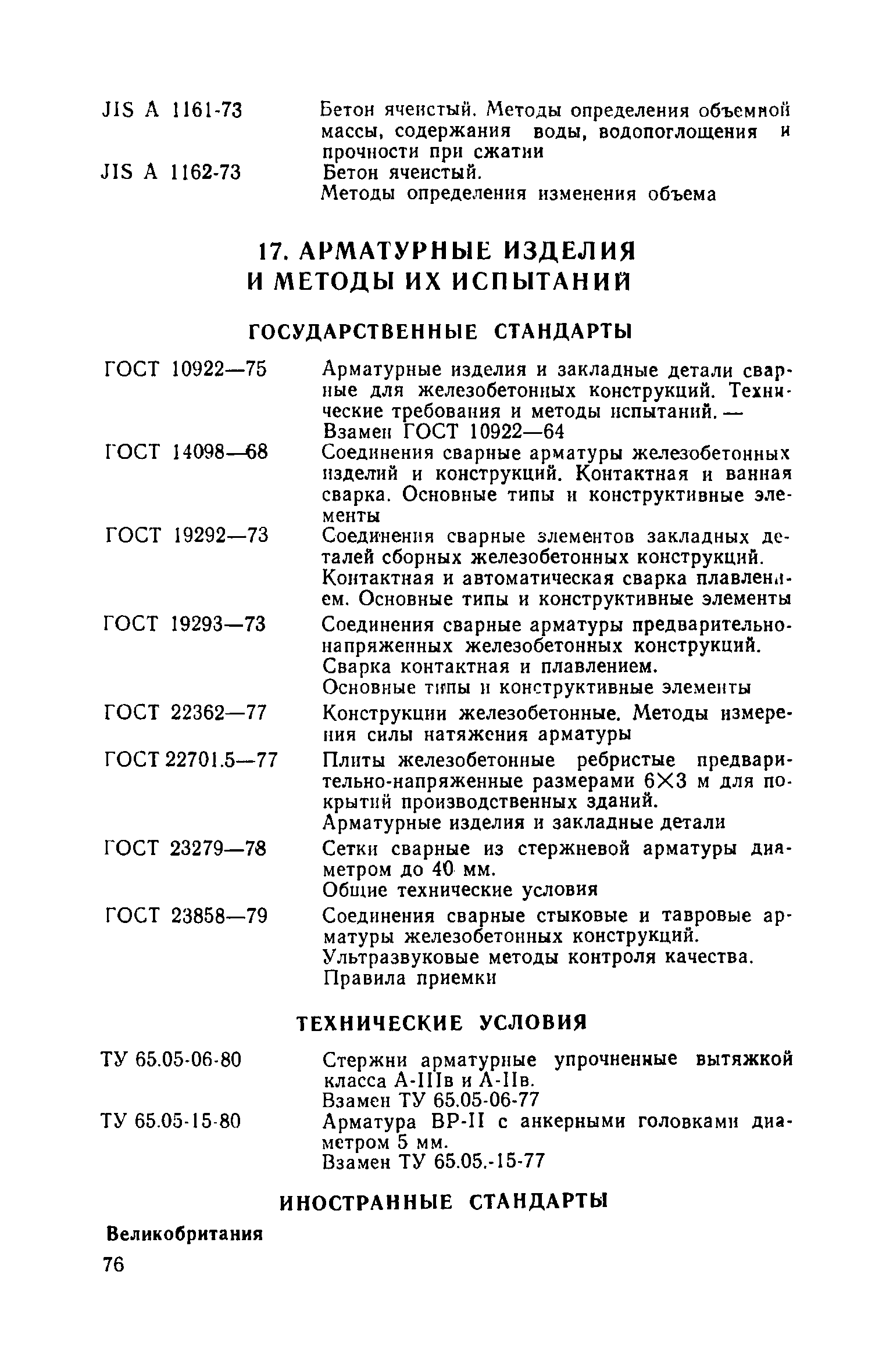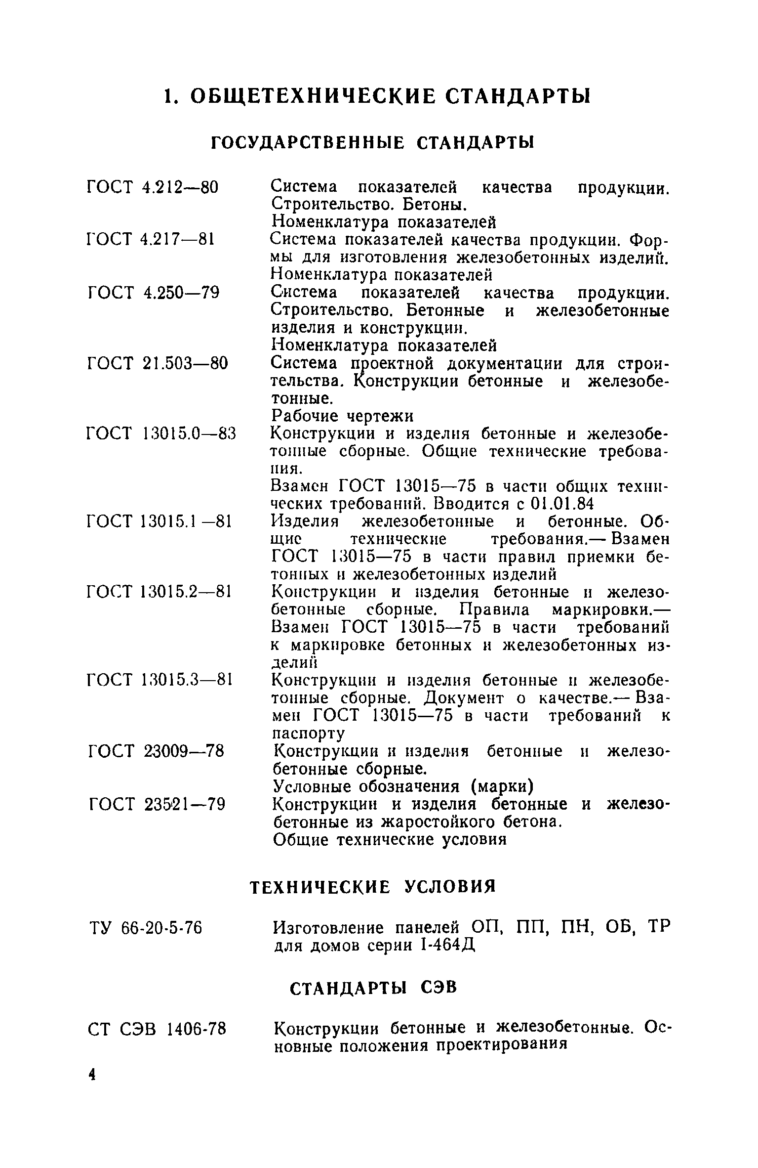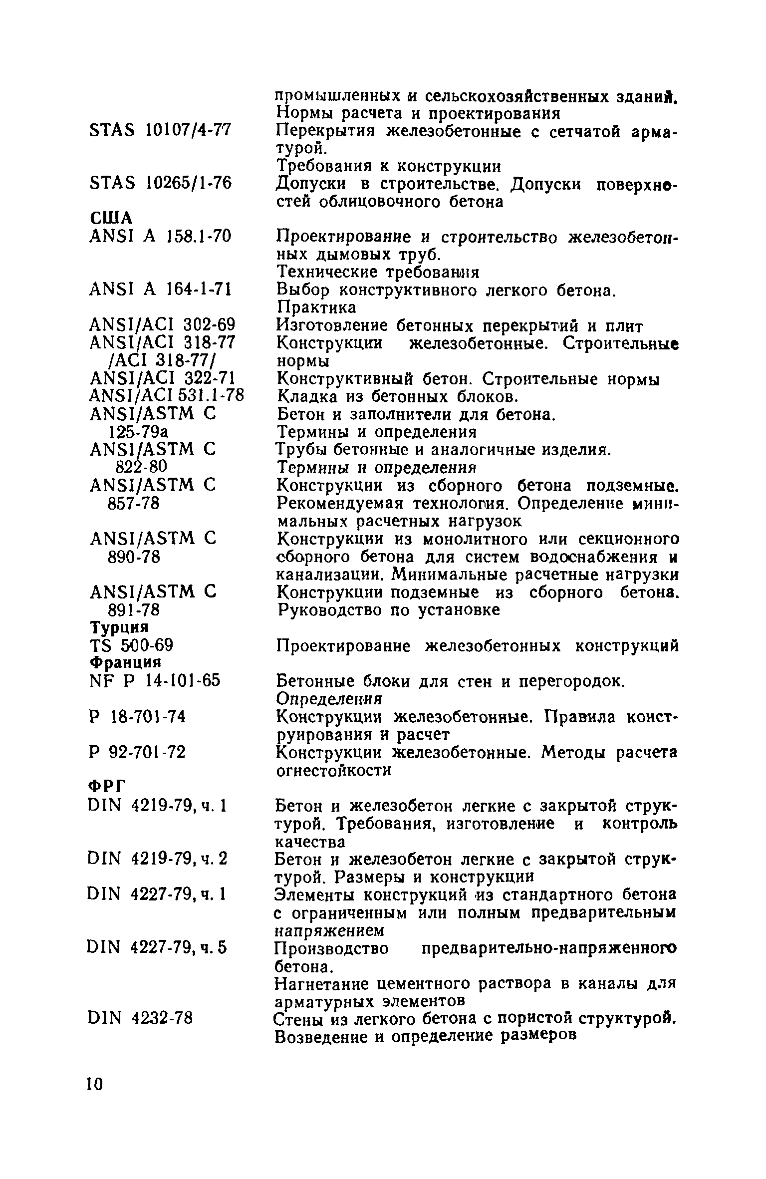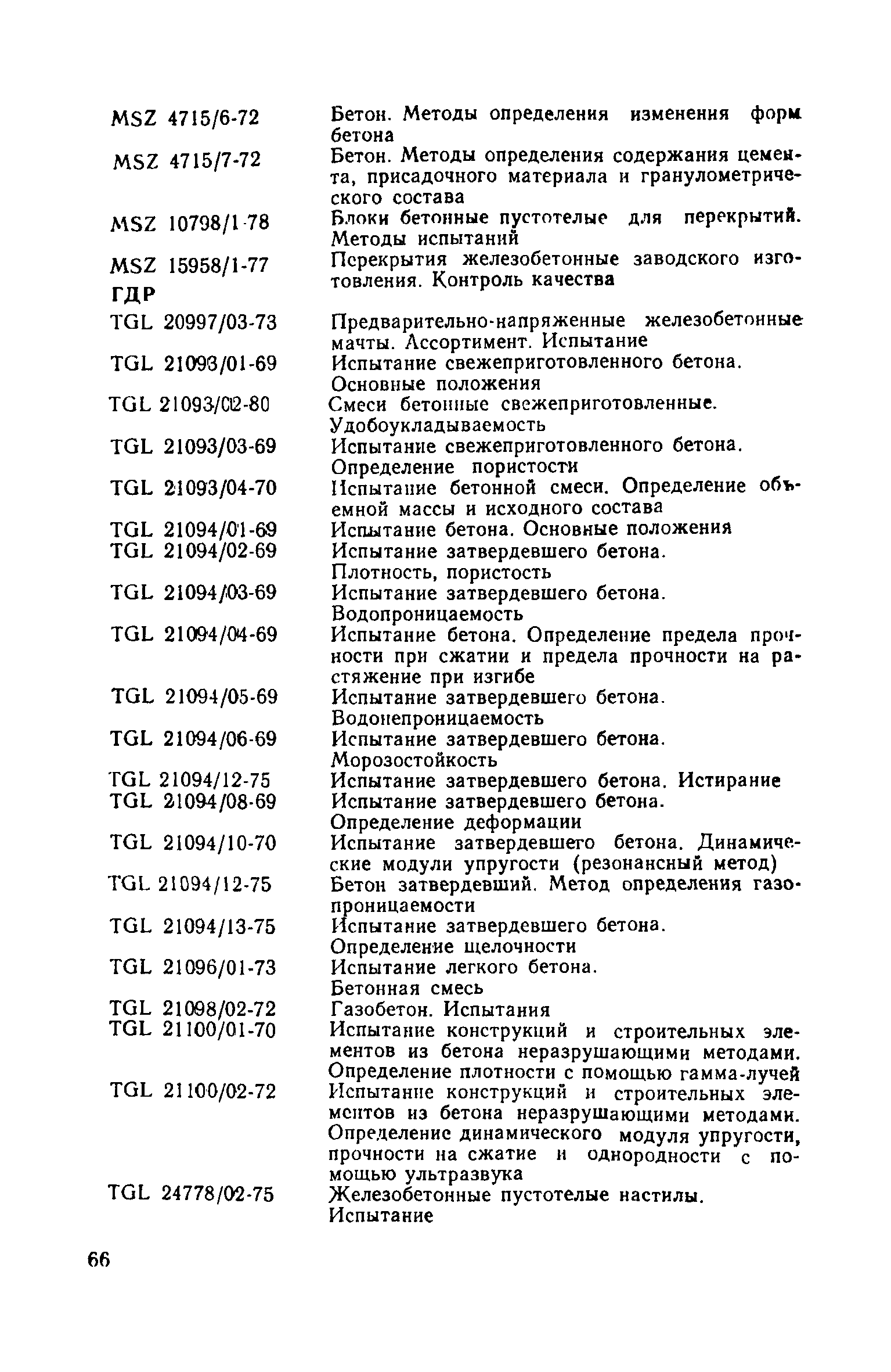 Указатель нормативно-технической документации по стандартизации бетонных и железобетонных конструкций и изделий| Статус: | не действует | | Название рус.: | Указатель нормативно-технической документации по стандартизации бетонных и железобетонных конструкций и изделий | | Дата добавления в базу: | 01.09.2013 | | Дата актуализации: | 01.01.2021 | | Область применения: | Указатель нормативно-технической документация по стандартизации бетонных и железобетонных конструкций и изделий составлен с целью оказания практической помощи предприятиям и организациям при разработке стандартов на бетонные и железобетонные конструкции и изделия, а также при подготовке материалов к аттестации этой продукции по трем категориям качества. | | Оглавление: | Предисловие 1. Общетехнические стандарты 2. Фундаменты и сваи 3. Элементы каркасов многоэтажных зданий 4. Колонны зданий 5. Балки и фермы покрытий и перекрытий . 6. Балки (подкрановые, обвязочные, фундаментные) и перемычки 7. Панели и блоки стеновые, перегородки 8. Панели и плиты покрытий, перекрытий и оболочки 9. Конструктивные и архитектурно-строительные элементы зданий и сооружений 10. Конструкции инженерных сооружений промышленных площадок и городского хозяйства 11. Конструкции для транспортных сооружений . 12. Конструкции для мелиоративного строительства 13. Трубы 14. Конструкции инженерных сооружений для сельского хозяйства 15. Формы м оснастка для изготовления железобетонных конструкций 16. Бетоны и методы их испытаний. Методы испытаний железобетонных конструкций 17. Арматурные изделия и методы их испытаний | | Разработан: | ЦНИИпромзданий