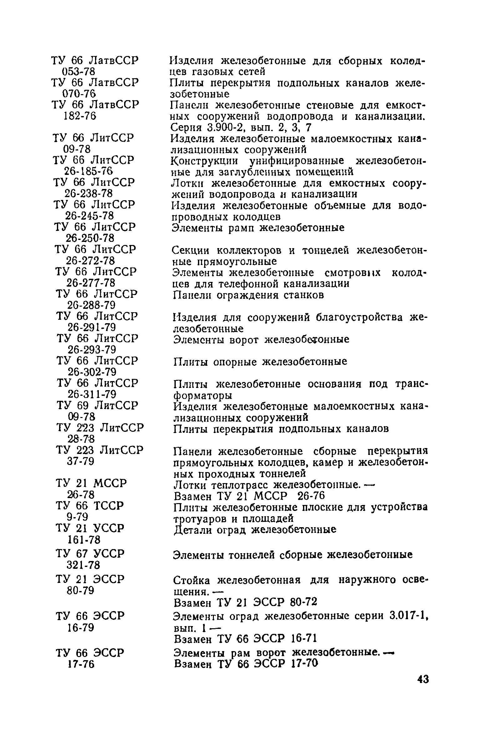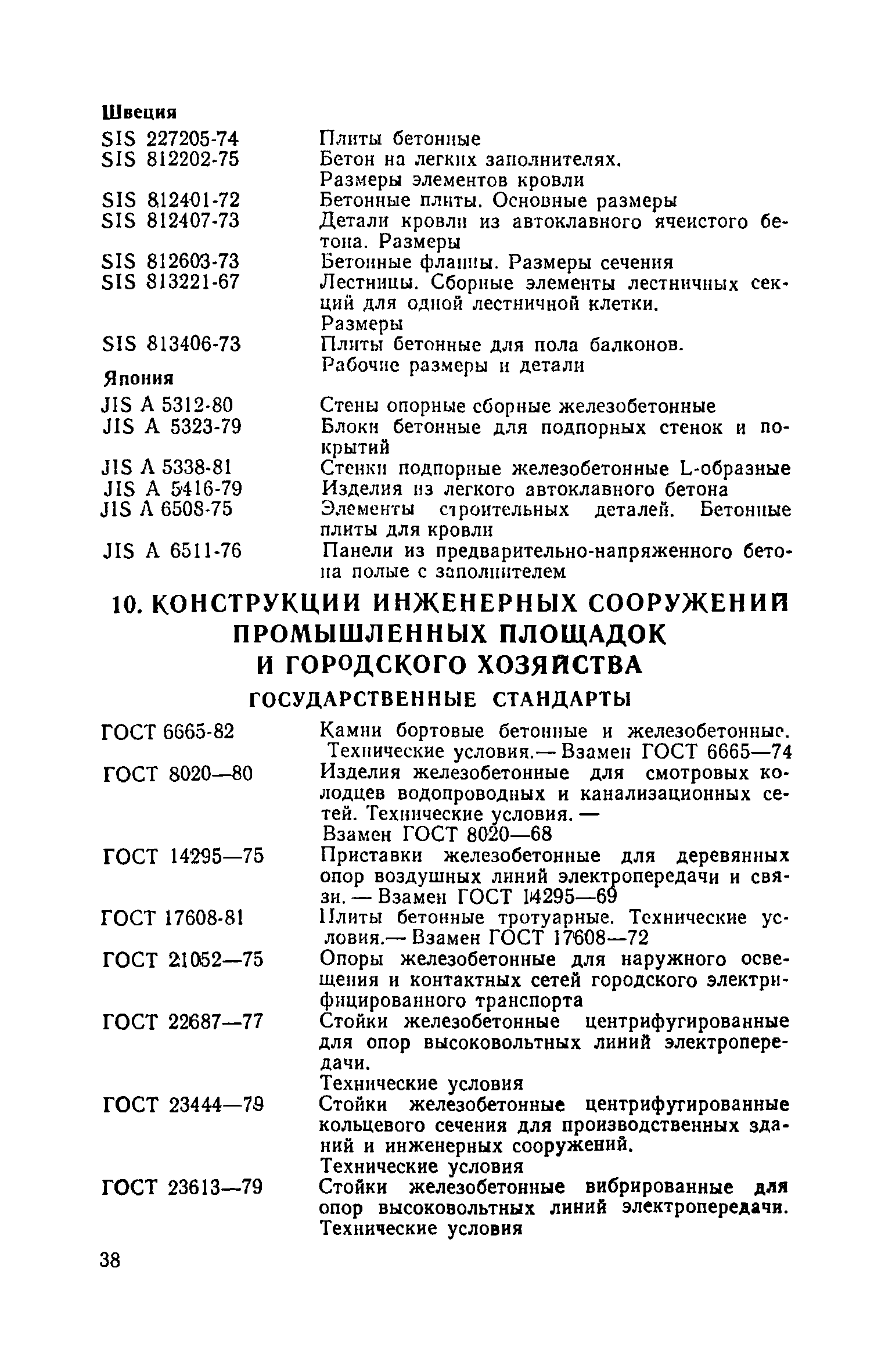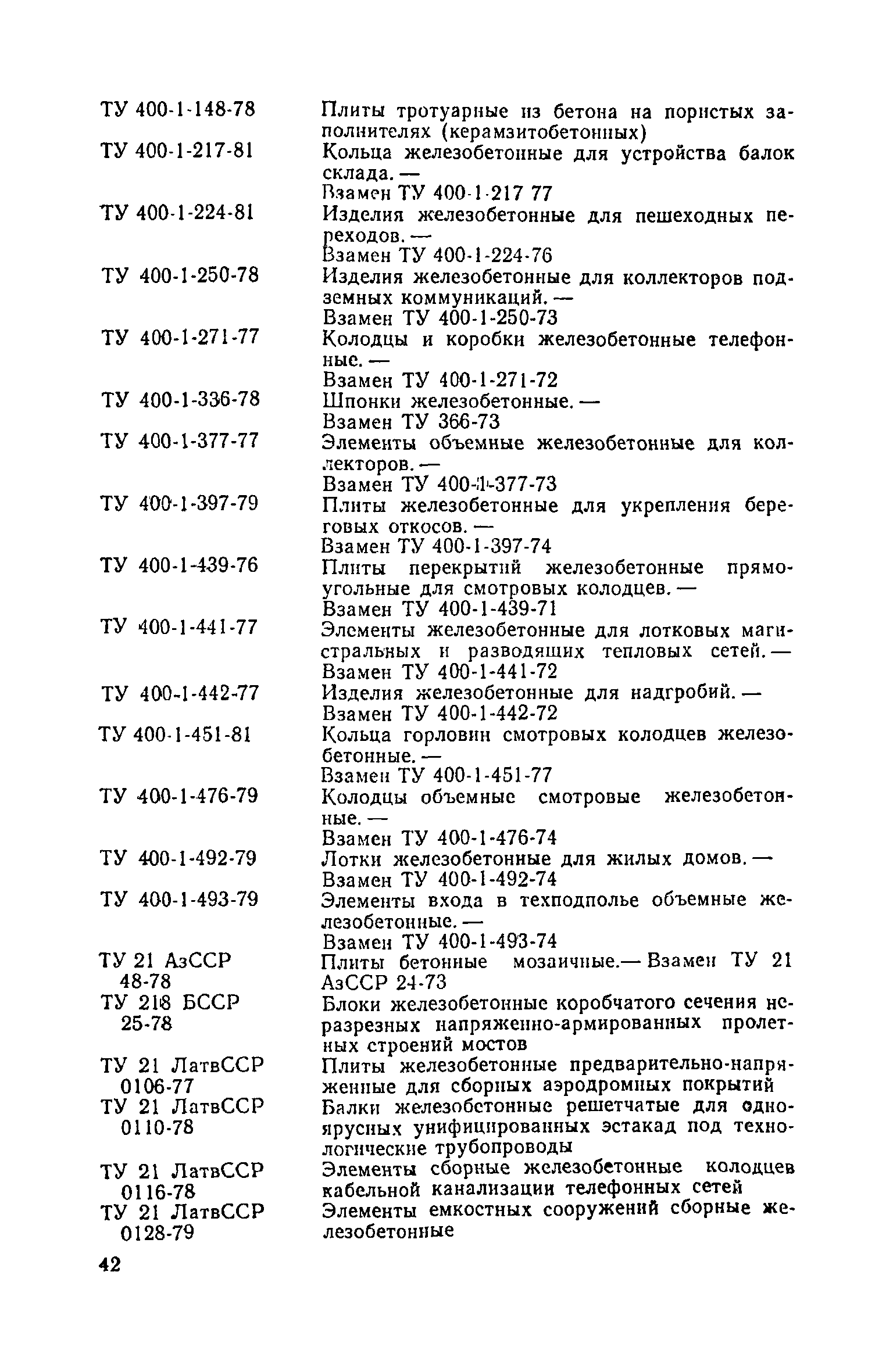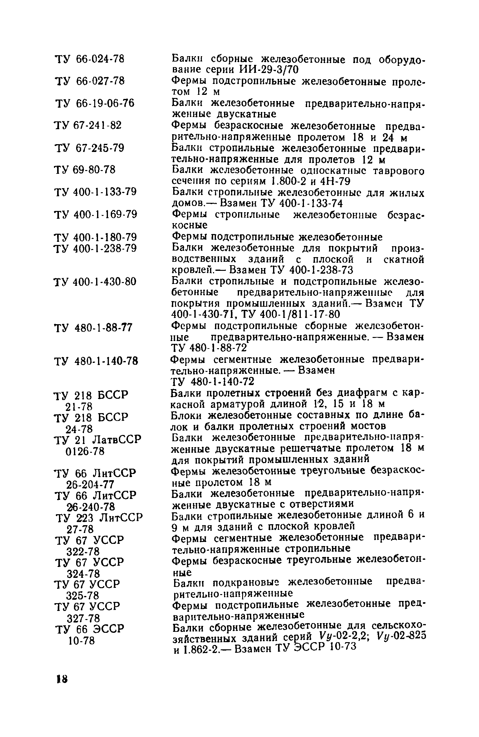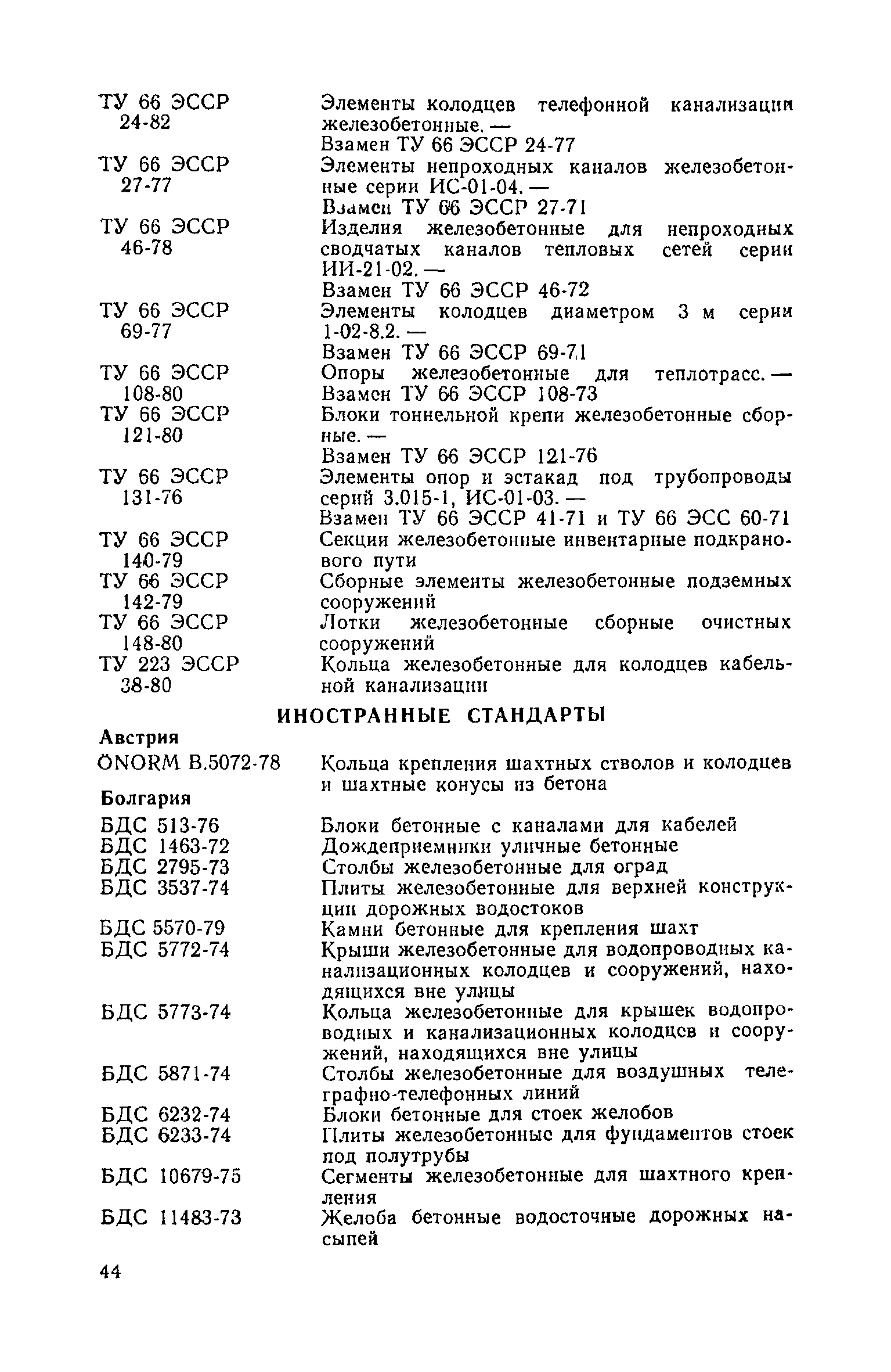 Указатель нормативно-технической документации по стандартизации бетонных и железобетонных конструкций и изделий| Статус: | не действует | | Название рус.: | Указатель нормативно-технической документации по стандартизации бетонных и железобетонных конструкций и изделий | | Дата добавления в базу: | 01.09.2013 | | Дата актуализации: | 01.01.2021 | | Область применения: | Указатель нормативно-технической документация по стандартизации бетонных и железобетонных конструкций и изделий составлен с целью оказания практической помощи предприятиям и организациям при разработке стандартов на бетонные и железобетонные конструкции и изделия, а также при подготовке материалов к аттестации этой продукции по трем категориям качества. | | Оглавление: | Предисловие 1. Общетехнические стандарты 2. Фундаменты и сваи 3. Элементы каркасов многоэтажных зданий 4. Колонны зданий 5. Балки и фермы покрытий и перекрытий . 6. Балки (подкрановые, обвязочные, фундаментные) и перемычки 7. Панели и блоки стеновые, перегородки 8. Панели и плиты покрытий, перекрытий и оболочки 9. Конструктивные и архитектурно-строительные элементы зданий и сооружений 10. Конструкции инженерных сооружений промышленных площадок и городского хозяйства 11. Конструкции для транспортных сооружений . 12. Конструкции для мелиоративного строительства 13. Трубы 14. Конструкции инженерных сооружений для сельского хозяйства 15. Формы м оснастка для изготовления железобетонных конструкций 16. Бетоны и методы их испытаний. Методы испытаний железобетонных конструкций 17. Арматурные изделия и методы их испытаний | | Разработан: | ЦНИИпромзданий