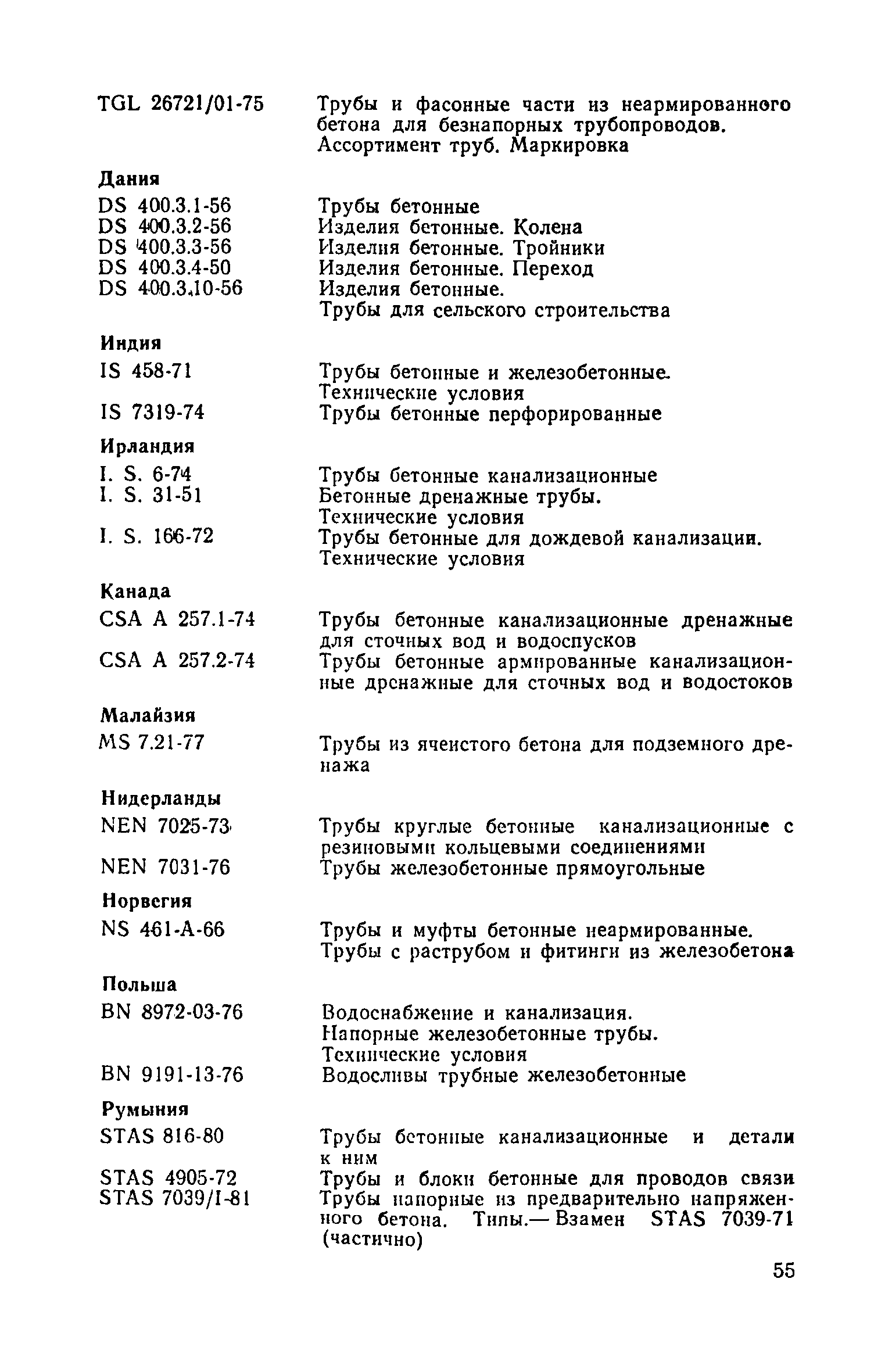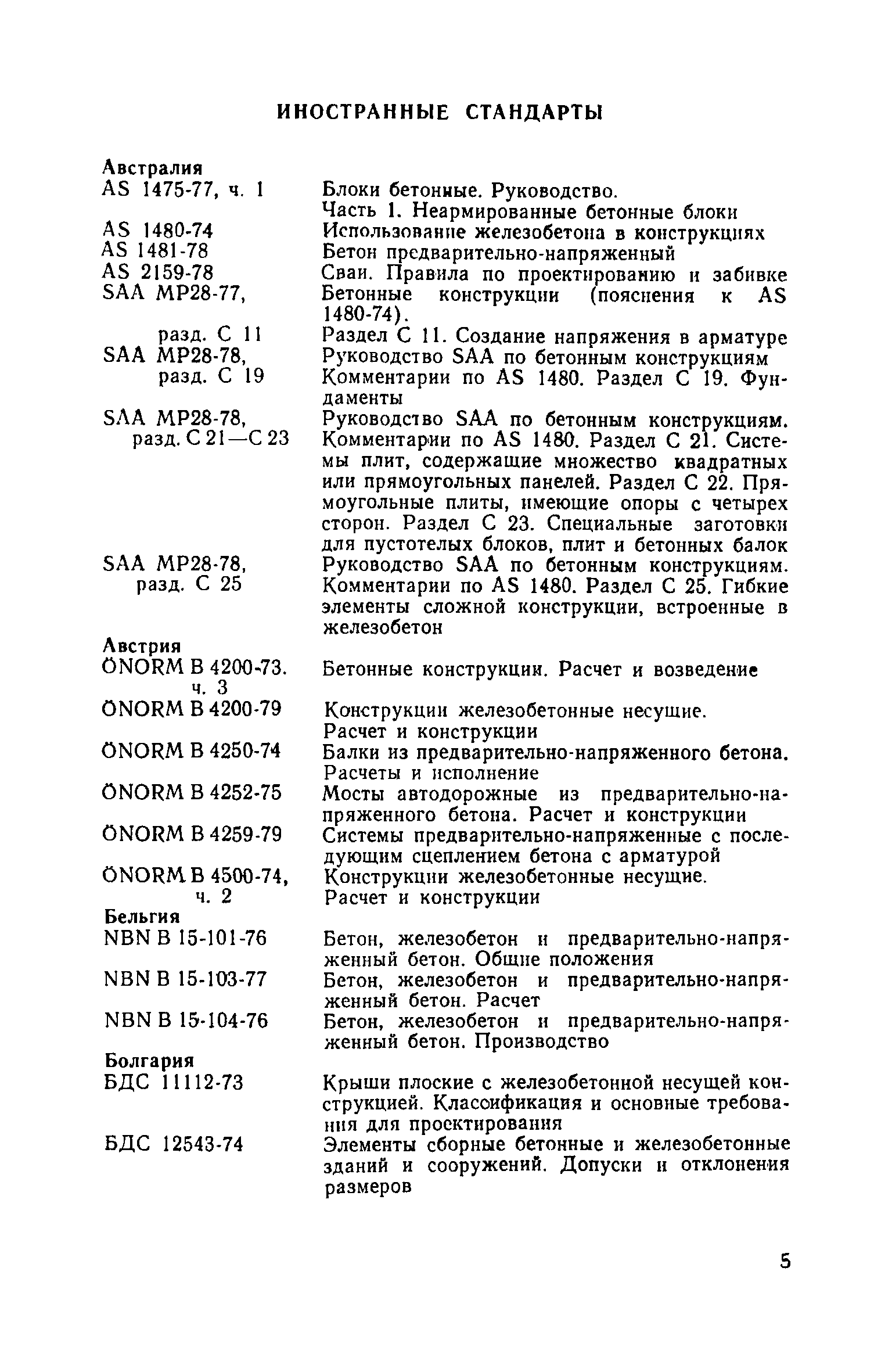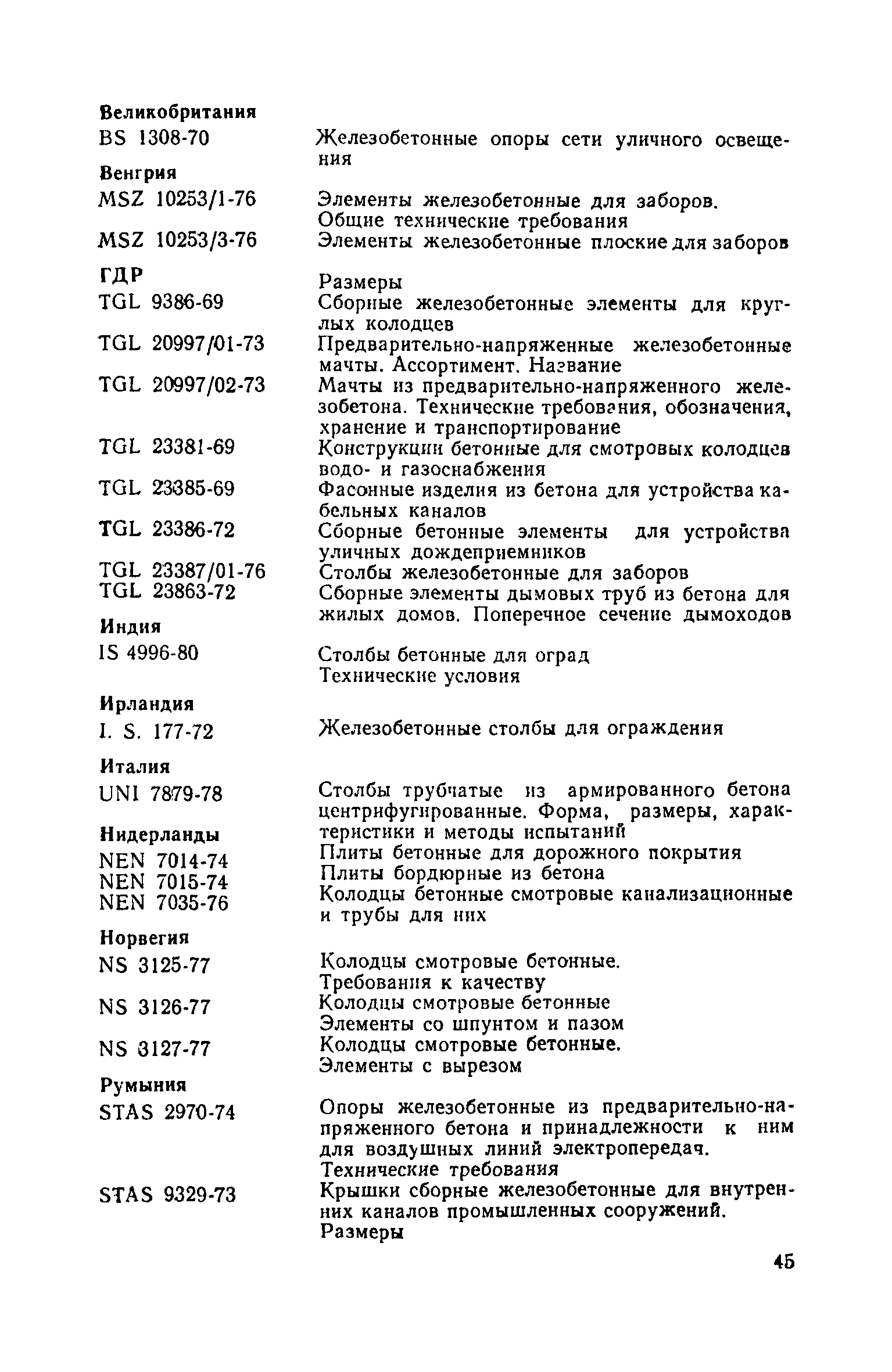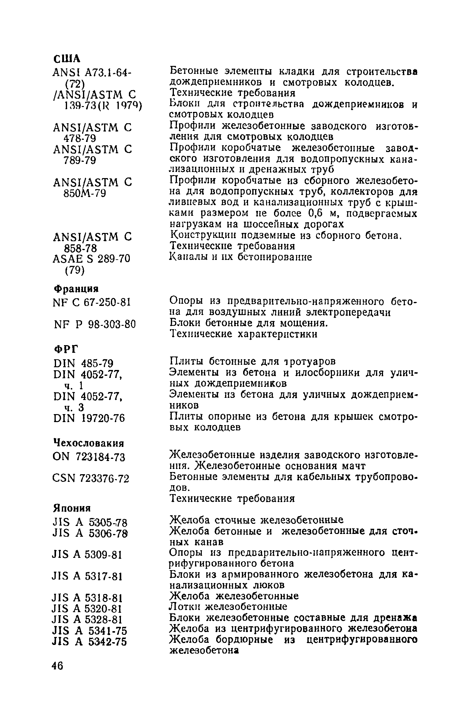 Указатель нормативно-технической документации по стандартизации бетонных и железобетонных конструкций и изделий| Статус: | не действует | | Название рус.: | Указатель нормативно-технической документации по стандартизации бетонных и железобетонных конструкций и изделий | | Дата добавления в базу: | 01.09.2013 | | Дата актуализации: | 01.01.2021 | | Область применения: | Указатель нормативно-технической документация по стандартизации бетонных и железобетонных конструкций и изделий составлен с целью оказания практической помощи предприятиям и организациям при разработке стандартов на бетонные и железобетонные конструкции и изделия, а также при подготовке материалов к аттестации этой продукции по трем категориям качества. | | Оглавление: | Предисловие 1. Общетехнические стандарты 2. Фундаменты и сваи 3. Элементы каркасов многоэтажных зданий 4. Колонны зданий 5. Балки и фермы покрытий и перекрытий . 6. Балки (подкрановые, обвязочные, фундаментные) и перемычки 7. Панели и блоки стеновые, перегородки 8. Панели и плиты покрытий, перекрытий и оболочки 9. Конструктивные и архитектурно-строительные элементы зданий и сооружений 10. Конструкции инженерных сооружений промышленных площадок и городского хозяйства 11. Конструкции для транспортных сооружений . 12. Конструкции для мелиоративного строительства 13. Трубы 14. Конструкции инженерных сооружений для сельского хозяйства 15. Формы м оснастка для изготовления железобетонных конструкций 16. Бетоны и методы их испытаний. Методы испытаний железобетонных конструкций 17. Арматурные изделия и методы их испытаний | | Разработан: | ЦНИИпромзданий