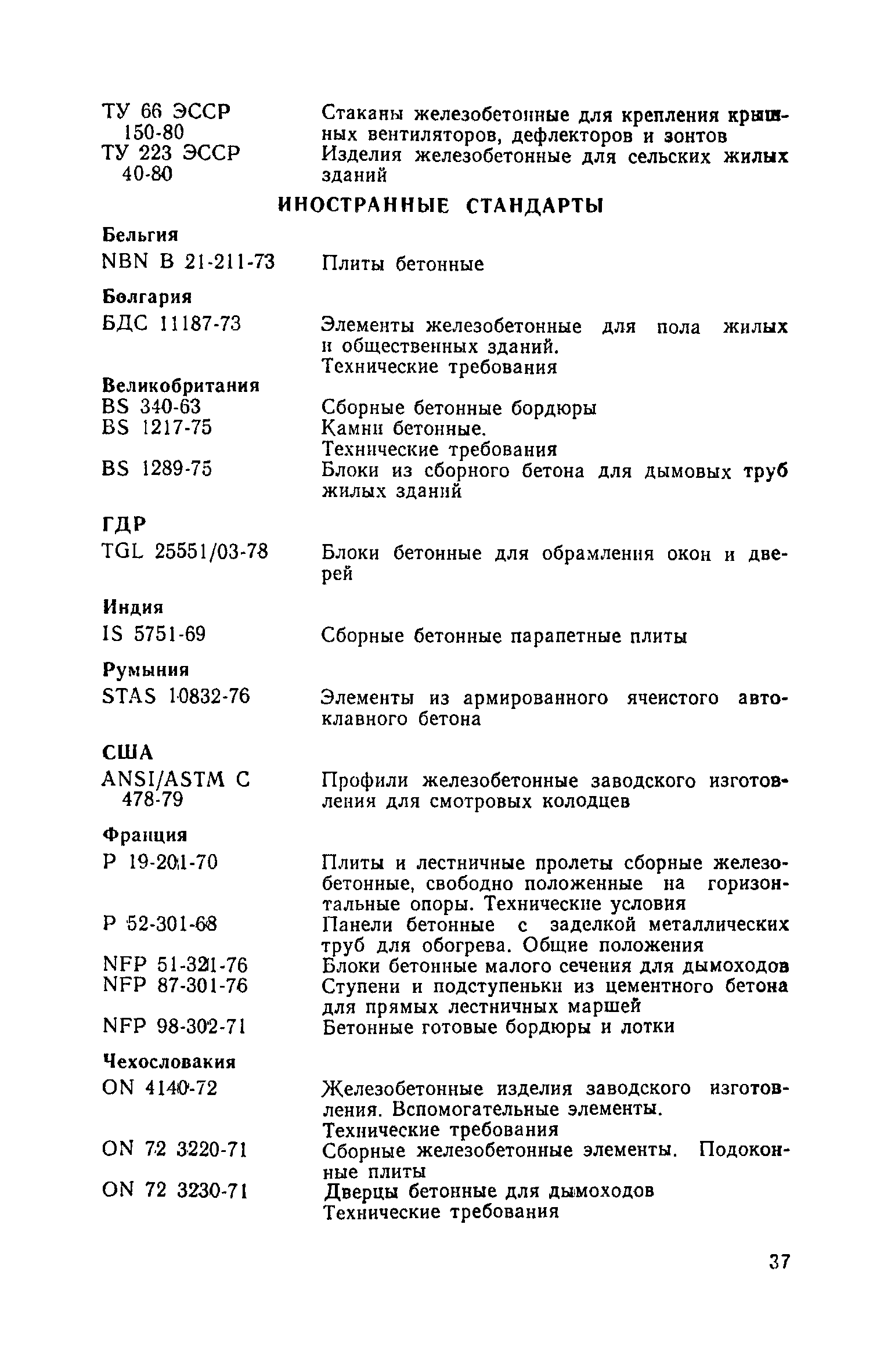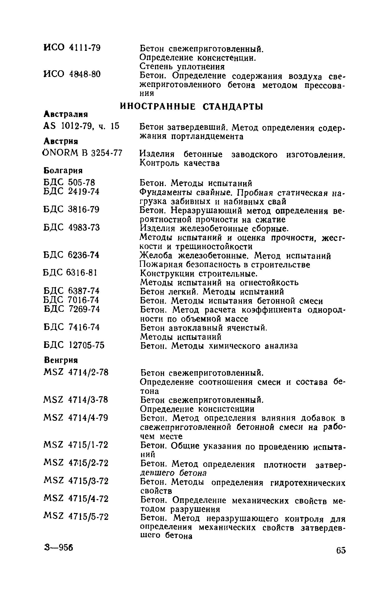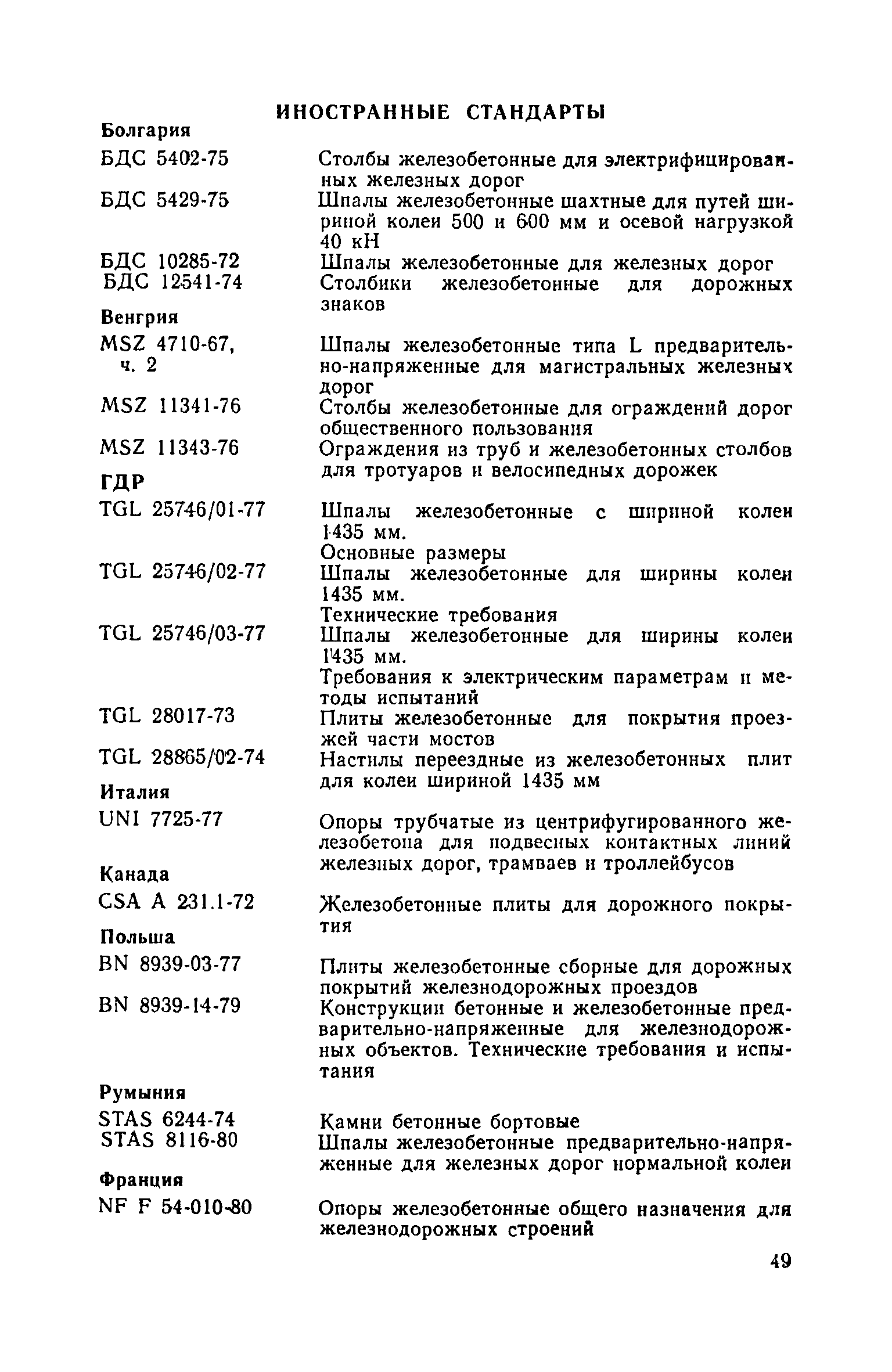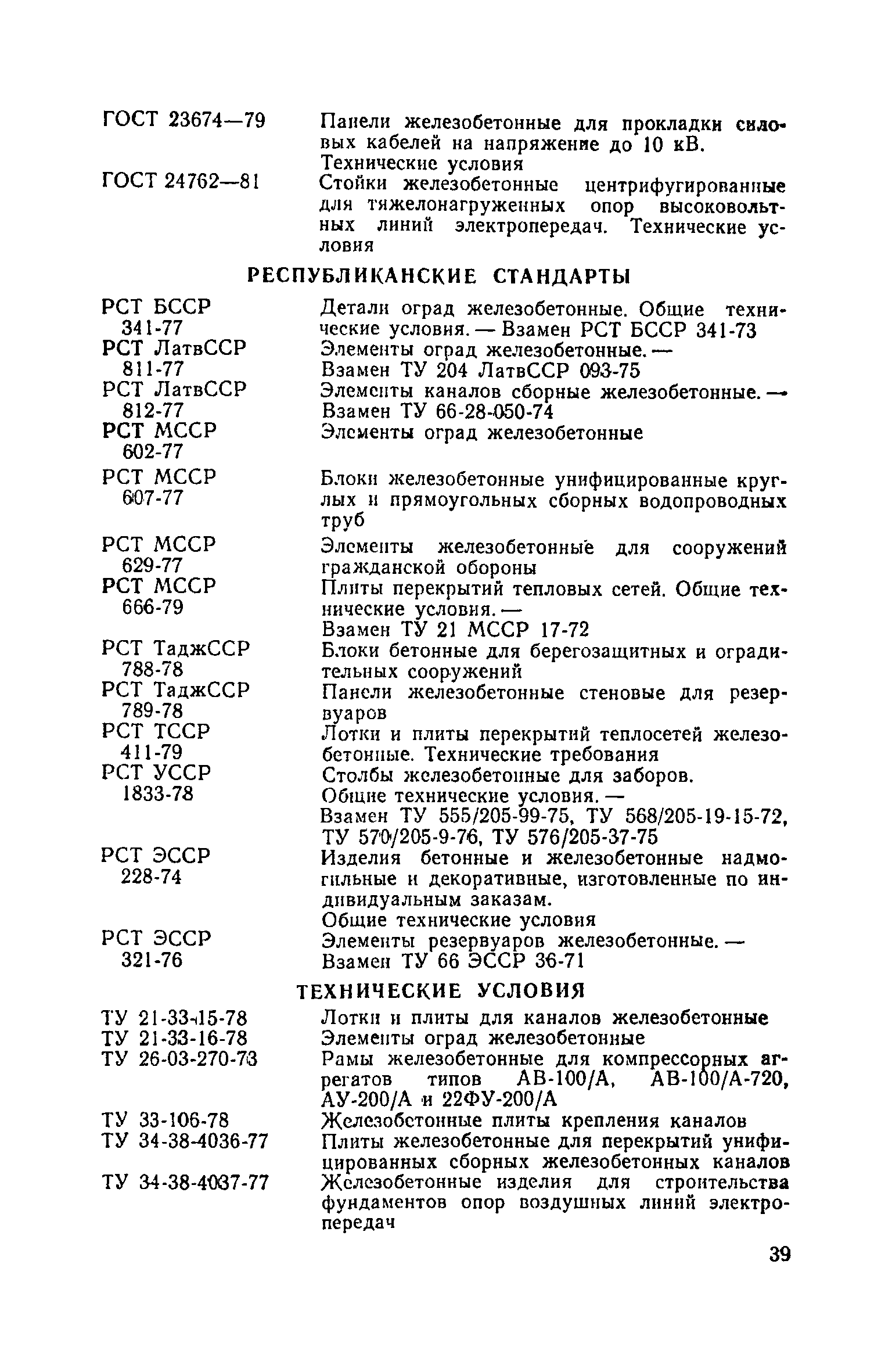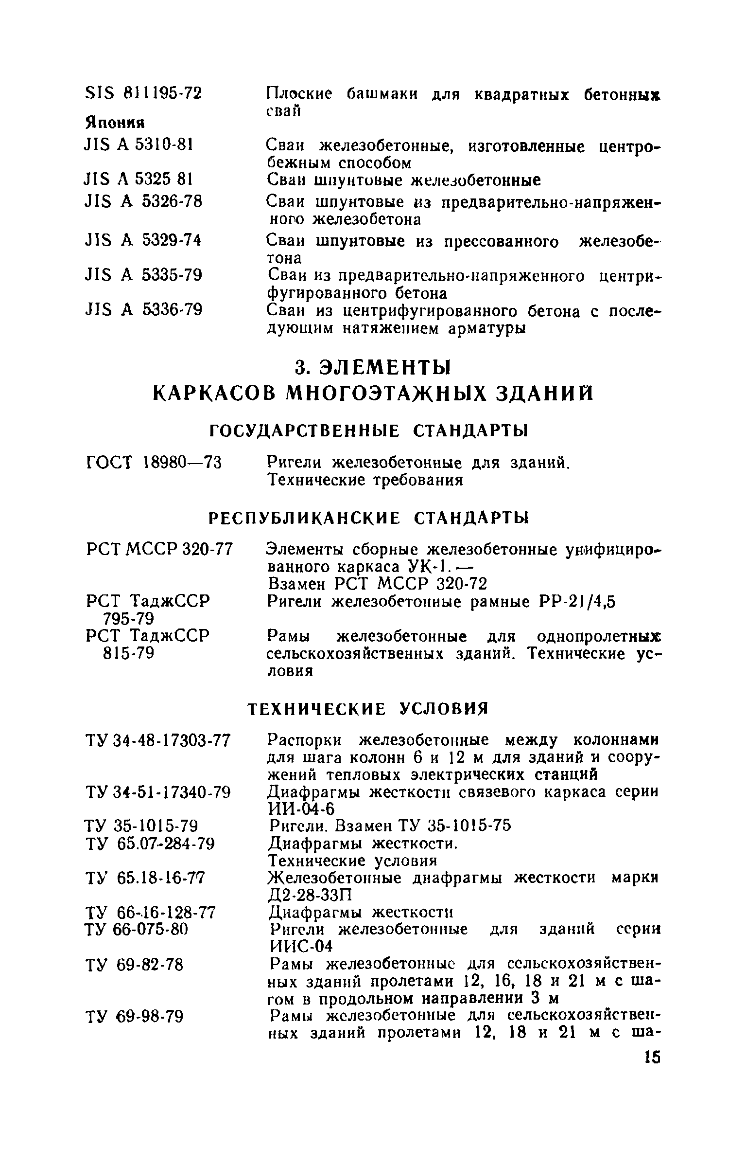 Указатель нормативно-технической документации по стандартизации бетонных и железобетонных конструкций и изделий| Статус: | не действует | | Название рус.: | Указатель нормативно-технической документации по стандартизации бетонных и железобетонных конструкций и изделий | | Дата добавления в базу: | 01.09.2013 | | Дата актуализации: | 01.01.2021 | | Область применения: | Указатель нормативно-технической документация по стандартизации бетонных и железобетонных конструкций и изделий составлен с целью оказания практической помощи предприятиям и организациям при разработке стандартов на бетонные и железобетонные конструкции и изделия, а также при подготовке материалов к аттестации этой продукции по трем категориям качества. | | Оглавление: | Предисловие 1. Общетехнические стандарты 2. Фундаменты и сваи 3. Элементы каркасов многоэтажных зданий 4. Колонны зданий 5. Балки и фермы покрытий и перекрытий . 6. Балки (подкрановые, обвязочные, фундаментные) и перемычки 7. Панели и блоки стеновые, перегородки 8. Панели и плиты покрытий, перекрытий и оболочки 9. Конструктивные и архитектурно-строительные элементы зданий и сооружений 10. Конструкции инженерных сооружений промышленных площадок и городского хозяйства 11. Конструкции для транспортных сооружений . 12. Конструкции для мелиоративного строительства 13. Трубы 14. Конструкции инженерных сооружений для сельского хозяйства 15. Формы м оснастка для изготовления железобетонных конструкций 16. Бетоны и методы их испытаний. Методы испытаний железобетонных конструкций 17. Арматурные изделия и методы их испытаний | | Разработан: | ЦНИИпромзданий
