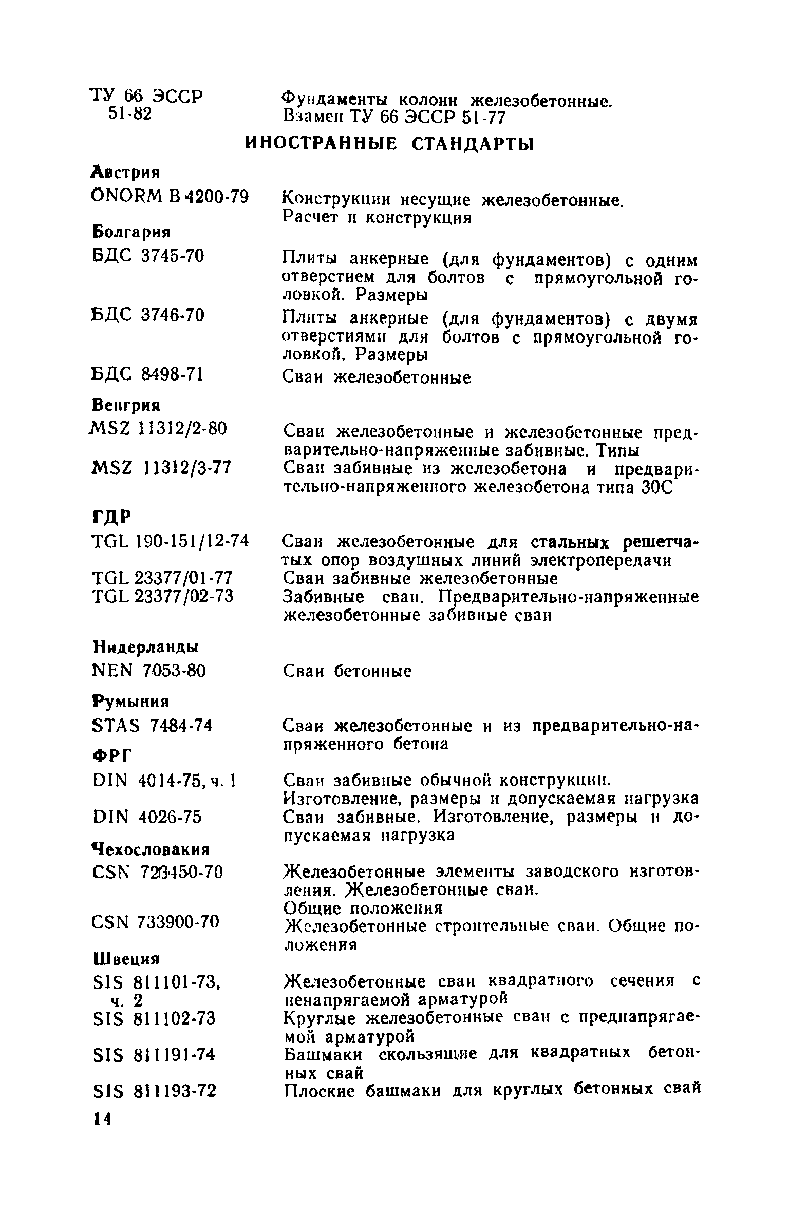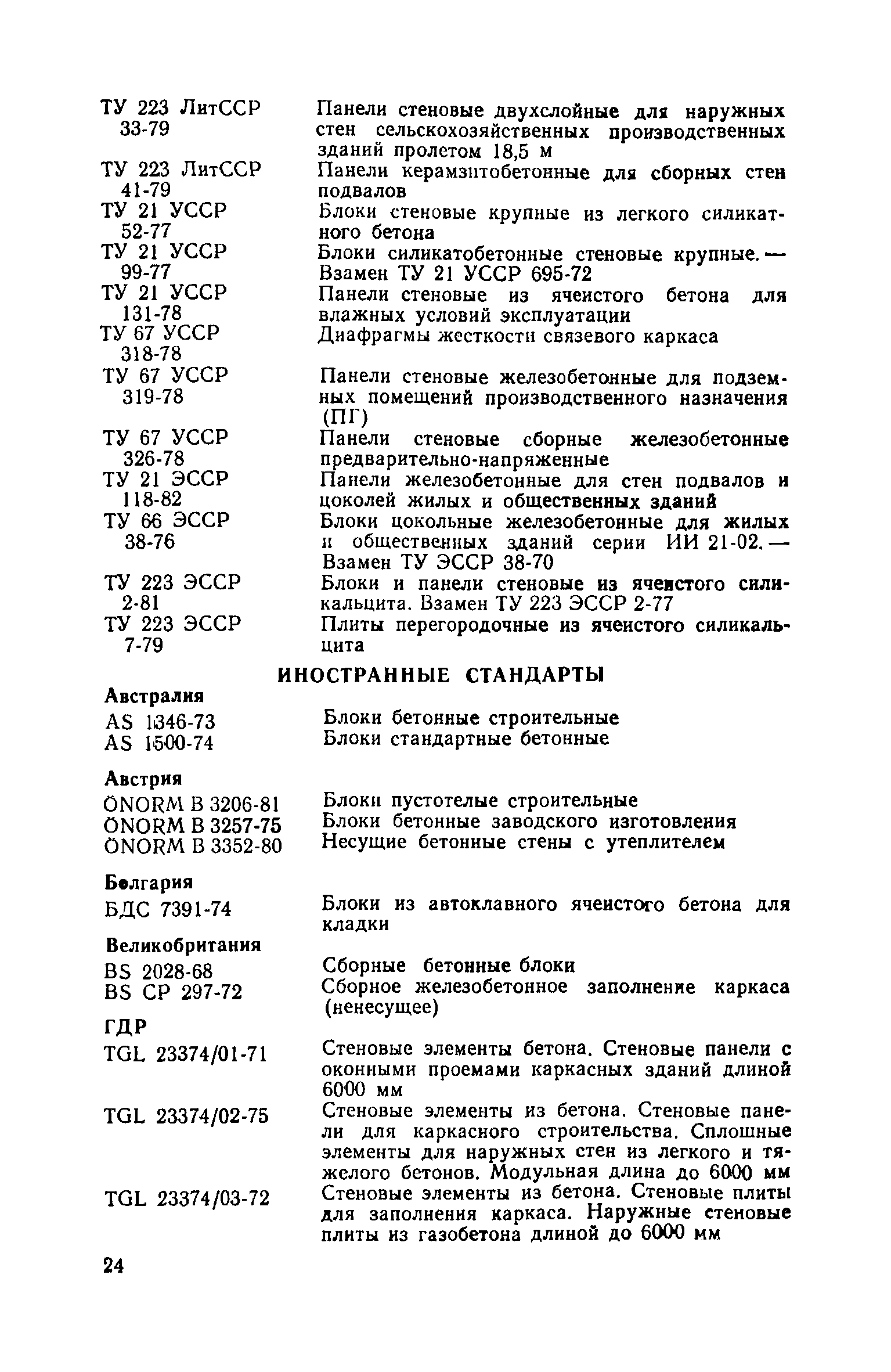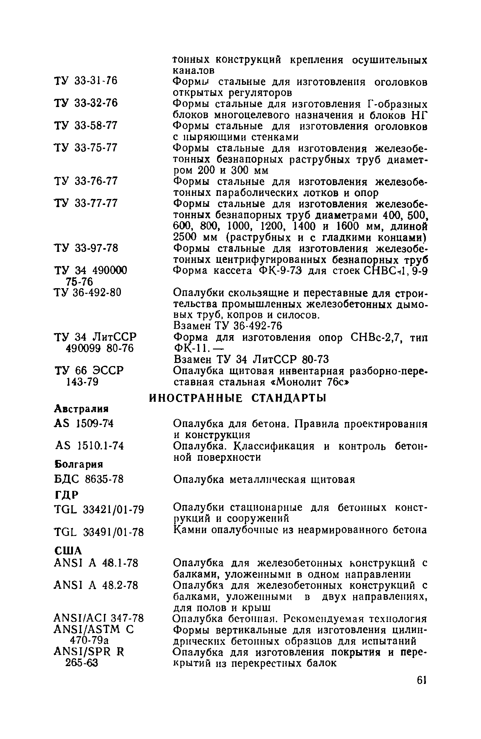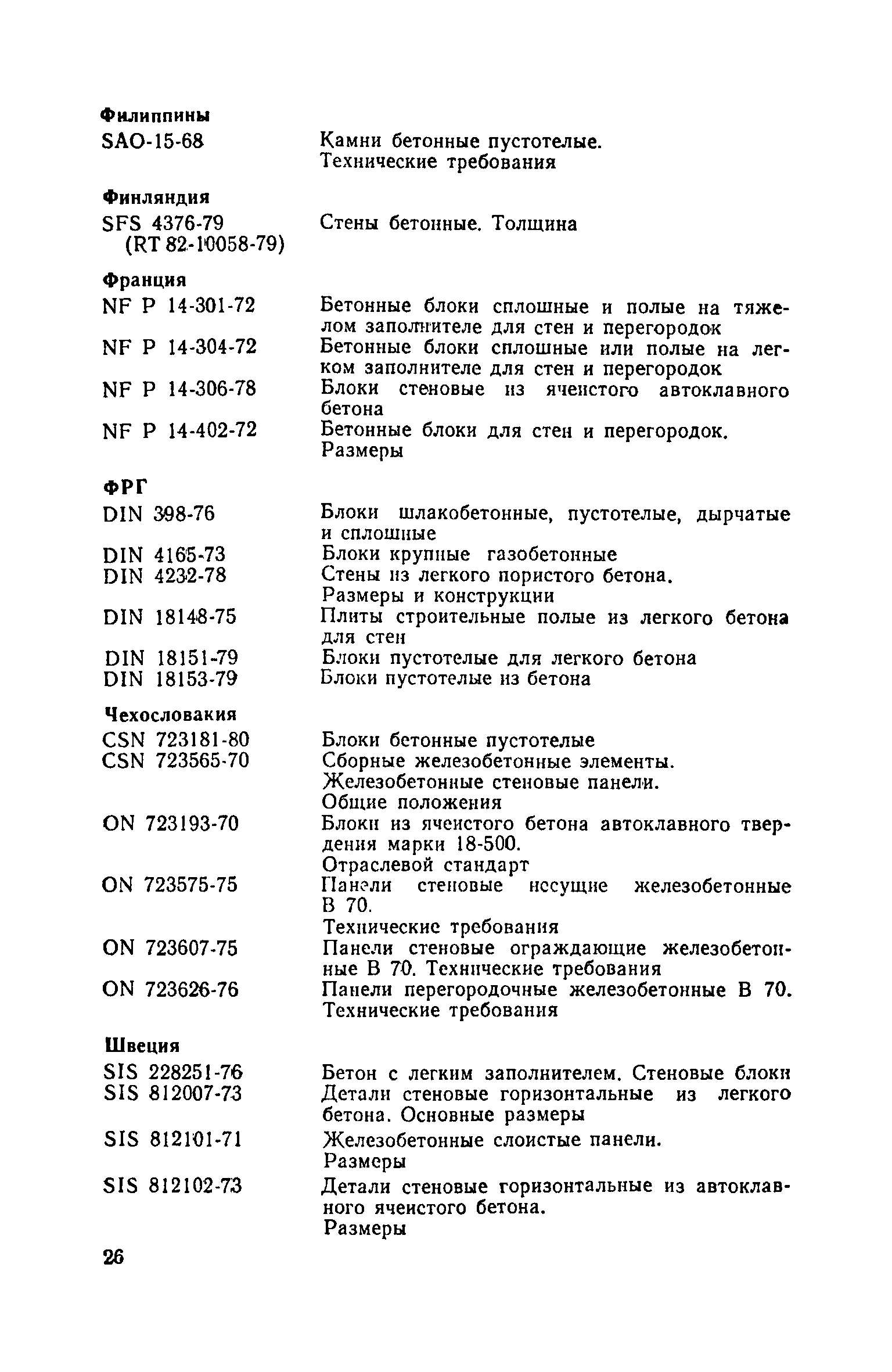 Указатель нормативно-технической документации по стандартизации бетонных и железобетонных конструкций и изделий| Статус: | не действует | | Название рус.: | Указатель нормативно-технической документации по стандартизации бетонных и железобетонных конструкций и изделий | | Дата добавления в базу: | 01.09.2013 | | Дата актуализации: | 01.01.2021 | | Область применения: | Указатель нормативно-технической документация по стандартизации бетонных и железобетонных конструкций и изделий составлен с целью оказания практической помощи предприятиям и организациям при разработке стандартов на бетонные и железобетонные конструкции и изделия, а также при подготовке материалов к аттестации этой продукции по трем категориям качества. | | Оглавление: | Предисловие 1. Общетехнические стандарты 2. Фундаменты и сваи 3. Элементы каркасов многоэтажных зданий 4. Колонны зданий 5. Балки и фермы покрытий и перекрытий . 6. Балки (подкрановые, обвязочные, фундаментные) и перемычки 7. Панели и блоки стеновые, перегородки 8. Панели и плиты покрытий, перекрытий и оболочки 9. Конструктивные и архитектурно-строительные элементы зданий и сооружений 10. Конструкции инженерных сооружений промышленных площадок и городского хозяйства 11. Конструкции для транспортных сооружений . 12. Конструкции для мелиоративного строительства 13. Трубы 14. Конструкции инженерных сооружений для сельского хозяйства 15. Формы м оснастка для изготовления железобетонных конструкций 16. Бетоны и методы их испытаний. Методы испытаний железобетонных конструкций 17. Арматурные изделия и методы их испытаний | | Разработан: | ЦНИИпромзданий