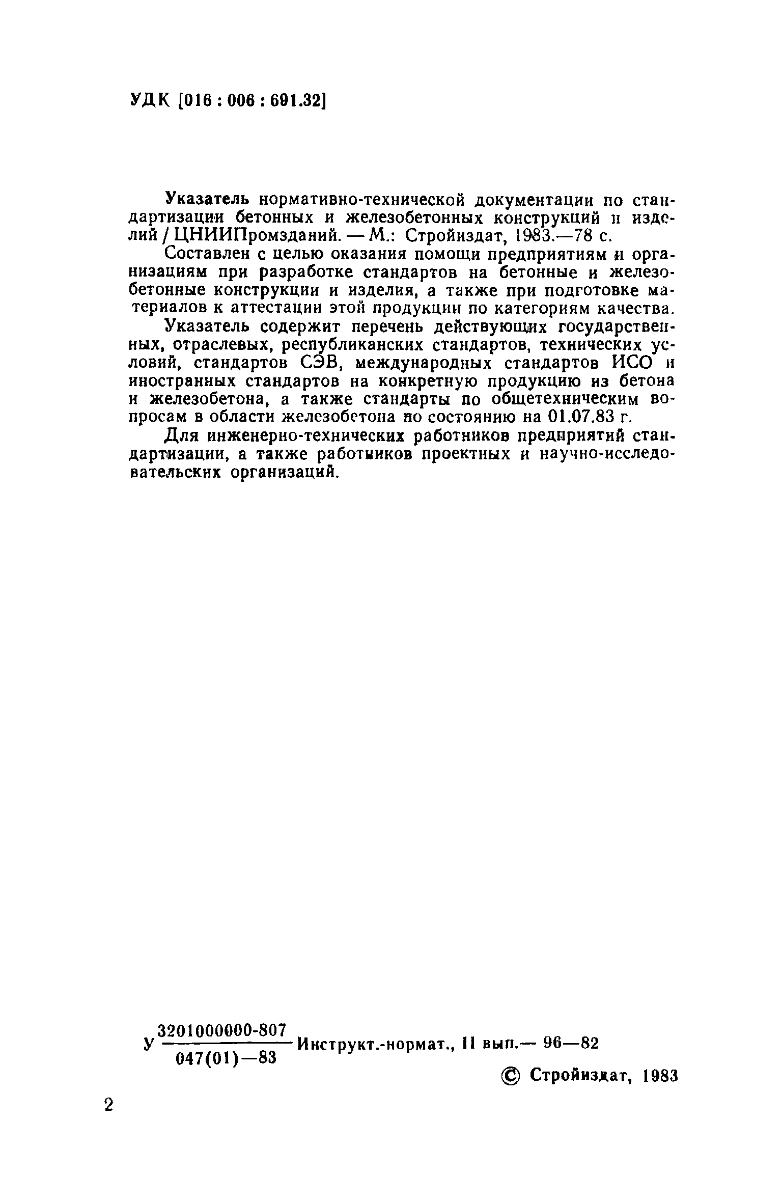Скачать Указатель нормативно-технической документации по стандартизации бетонных и железобетонных конструкций и изделийДата актуализации: 01.01.2021