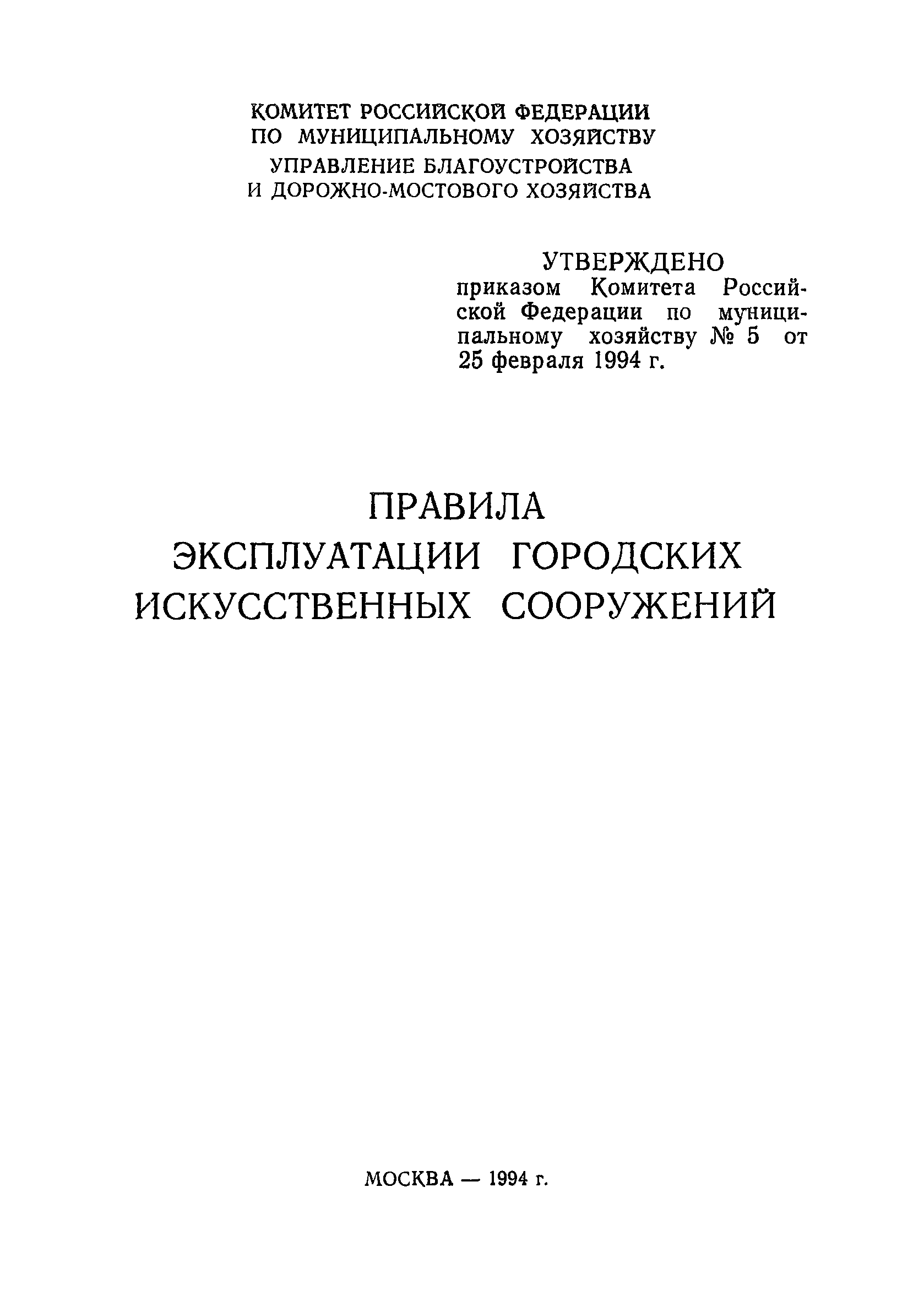 | | Утверждён: | 25.02.1994 Комитет Российской Федерации по муниципальному хозяйству (5)