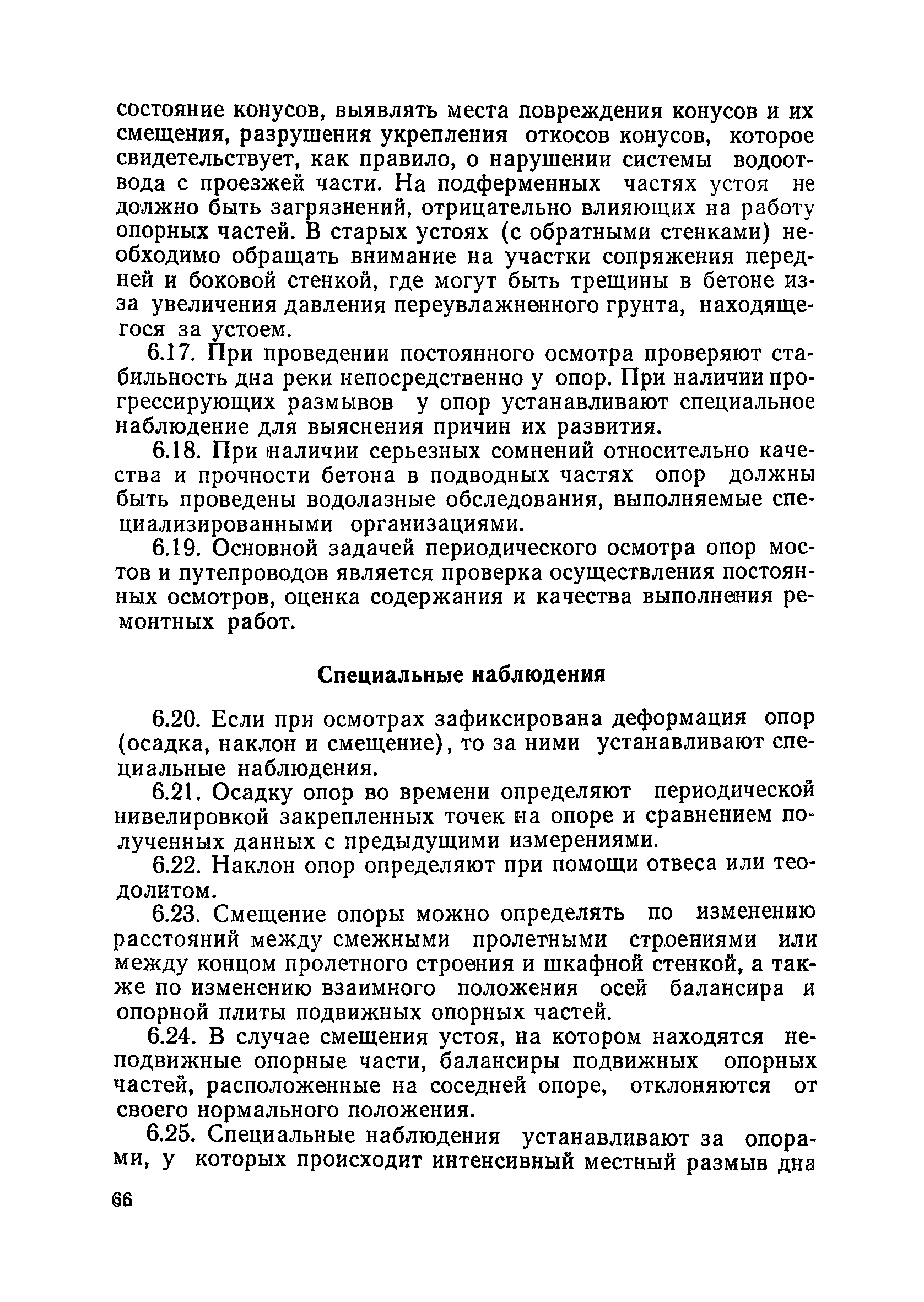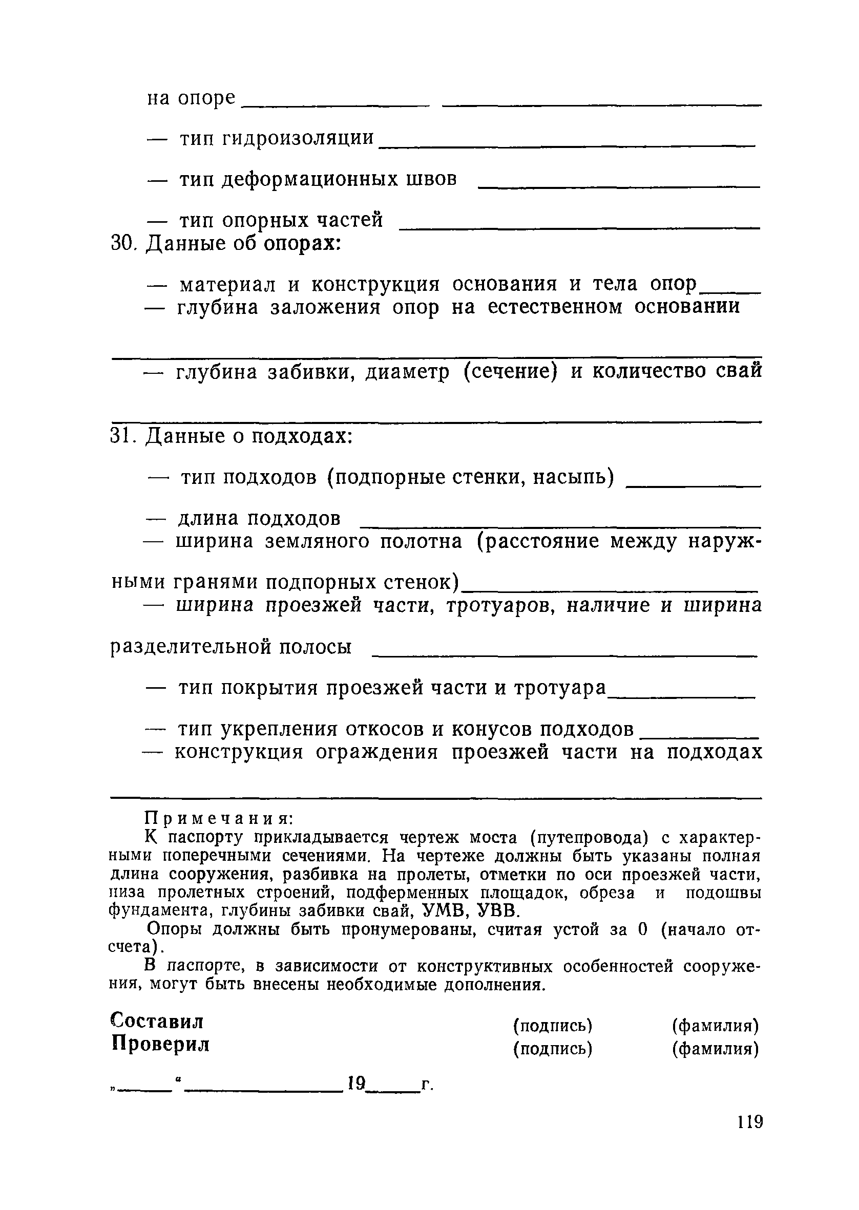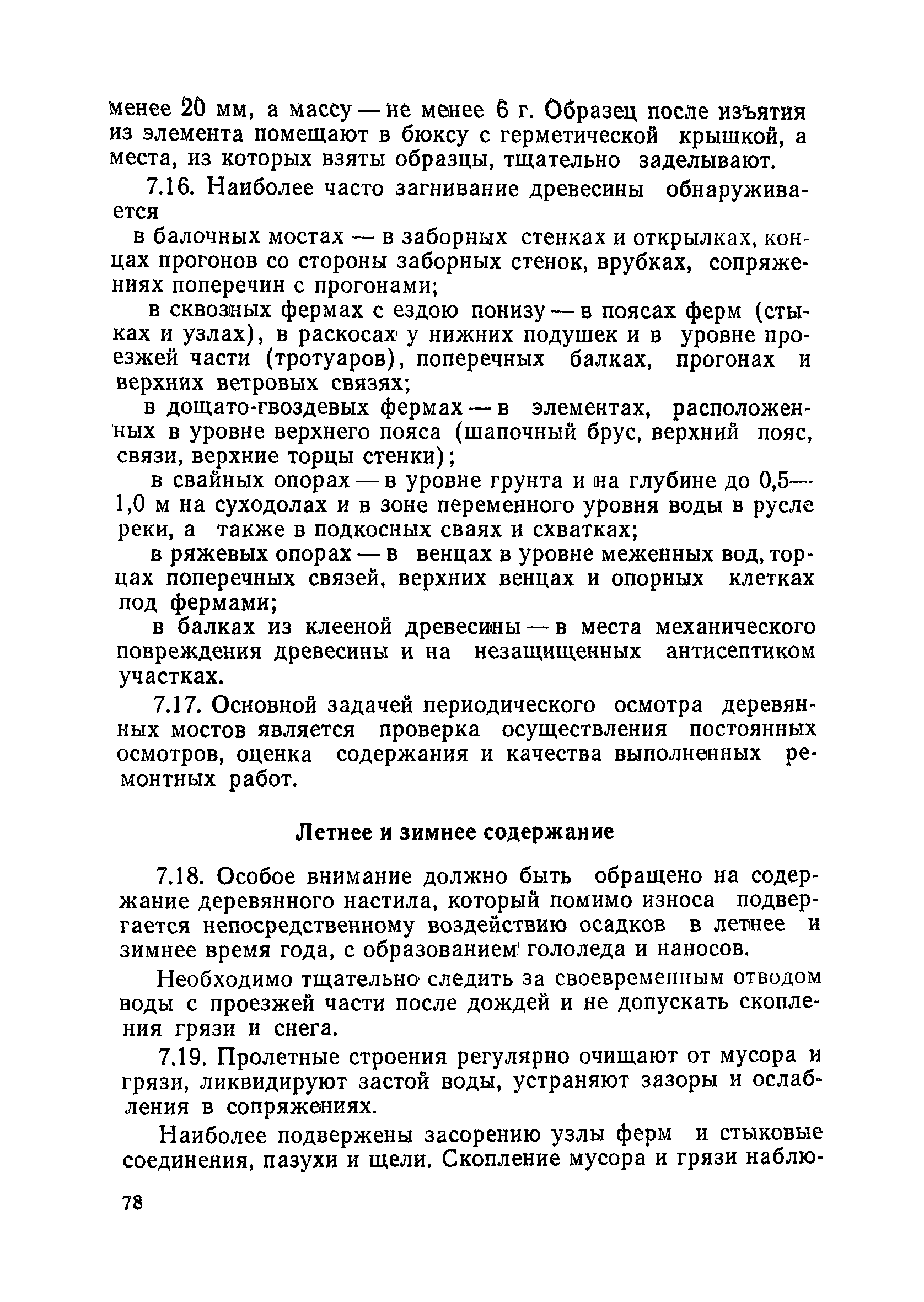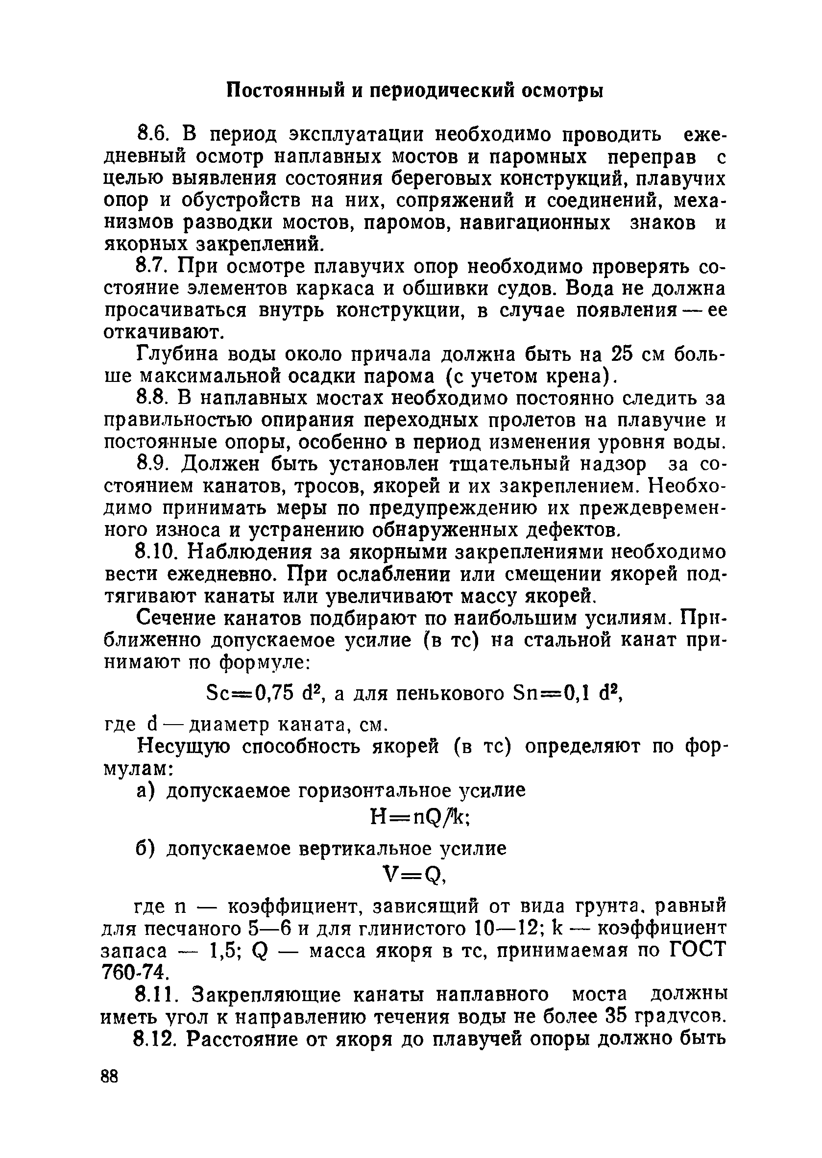 Правила эксплуатации городских искусственных сооружений| Статус: | действует | | Название рус.: | Правила эксплуатации городских искусственных сооружений | | Дата добавления в базу: | 01.09.2013 | | Дата актуализации: | 01.01.2021 | | Область применения: | Правила содержат классификацию работ и основные положения по организации содержания и ремонта городских искусственных сооружений: мостов и путепроводов с подходами к ним, труб, транспортных и пешеходных тоннелей, наплавных мостов, паромных и ледовых переправ. | | Оглавление: | 1. Общие положения 2. Содержание подмостового пространства, регуляционных сооружений и насыпей подходов 3. Содержание мостового полотна 4. Содержание железобетонных, бетонных и каменных пролетных строений мостовых сооружений 5. Содержание металлических пролетных строений мостовых сооружений 6. Содержание опор мостов и путепроводов 7. Содержание деревянных мостовых сооружений 8. Содержание наплавных мостов и паромных переправ 9. Содержание транспортных и пешеходных тоннелей, подпорных стенок 10. Устройство и содержание ледовых переправ 11. Обеспечение безопасности движения транспортных средств и пешеходов 12. Основные требования безопасности при ремонте и эксплуатации городских искусственных сооружений Приложения: 1. Структура работ по эксплуатации искусственных сооружений 2. Ориентировочные объемы ежегодных работ при текущем ремонте элементов мостовых сооружений 3. Перечень основных работ по планово-предупредительному ремонту городских капитальных мостов и путепроводов 4. Форма книги моста (путепровода) 5. Форма книги транспортного (пешеходного) тоннеля 6. Форма паспорта на мост 7. Форма паспорта на транспортный (пешеходный) тоннель 8. Журнал промеров толщины льда и определения грузоподъемности ледяного покрова Литература | | Разработан: | Саратовский институт Проектмостреконструкция