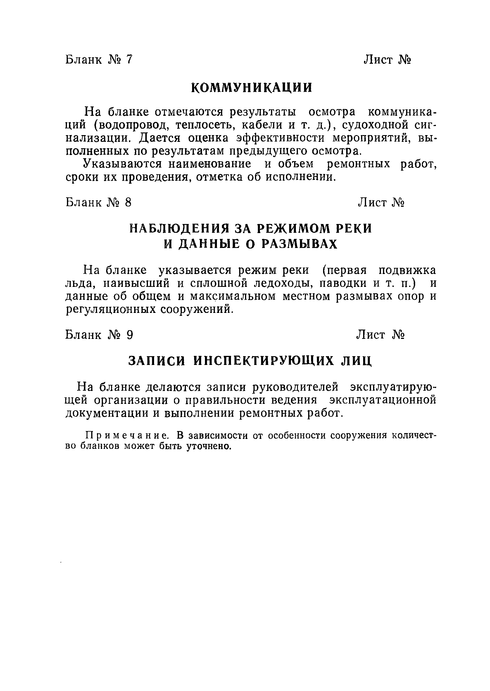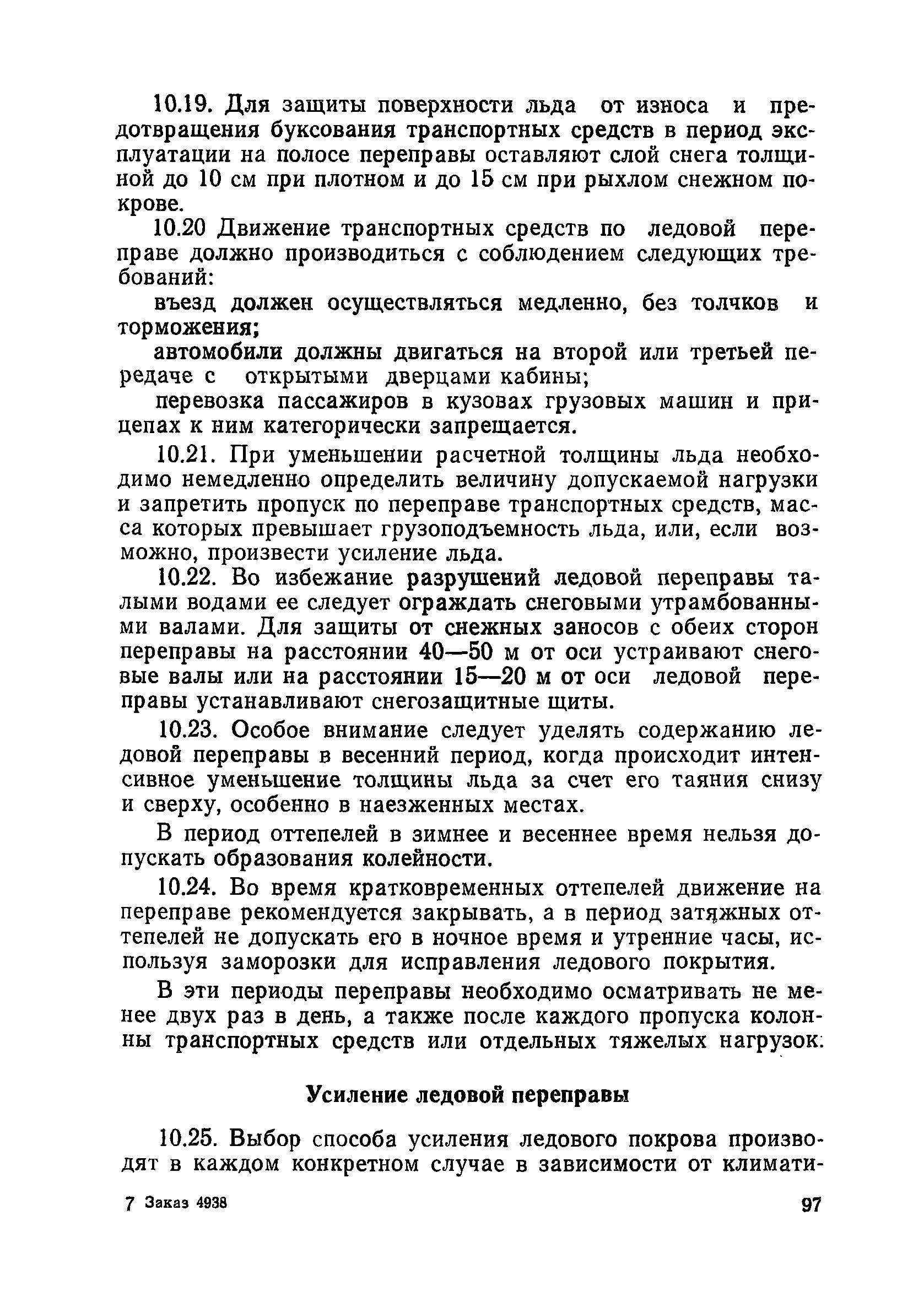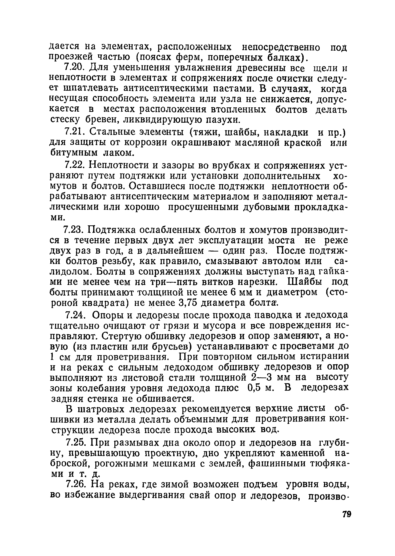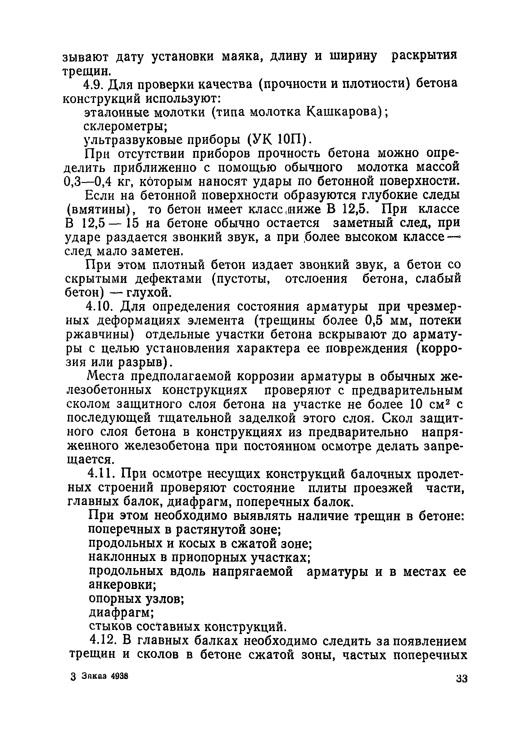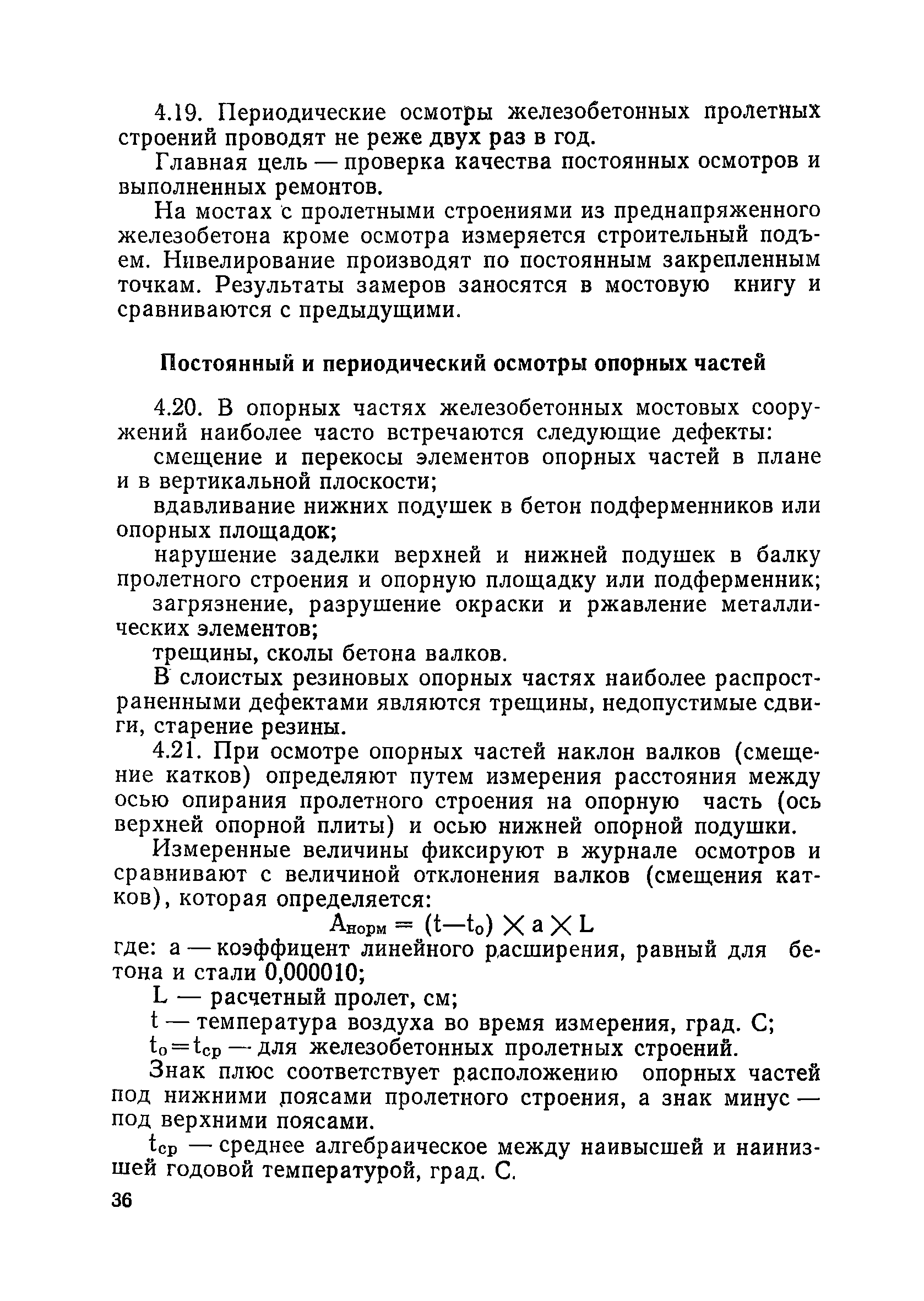 Правила эксплуатации городских искусственных сооружений| Статус: | действует | | Название рус.: | Правила эксплуатации городских искусственных сооружений | | Дата добавления в базу: | 01.09.2013 | | Дата актуализации: | 01.01.2021 | | Область применения: | Правила содержат классификацию работ и основные положения по организации содержания и ремонта городских искусственных сооружений: мостов и путепроводов с подходами к ним, труб, транспортных и пешеходных тоннелей, наплавных мостов, паромных и ледовых переправ. | | Оглавление: | 1. Общие положения 2. Содержание подмостового пространства, регуляционных сооружений и насыпей подходов 3. Содержание мостового полотна 4. Содержание железобетонных, бетонных и каменных пролетных строений мостовых сооружений 5. Содержание металлических пролетных строений мостовых сооружений 6. Содержание опор мостов и путепроводов 7. Содержание деревянных мостовых сооружений 8. Содержание наплавных мостов и паромных переправ 9. Содержание транспортных и пешеходных тоннелей, подпорных стенок 10. Устройство и содержание ледовых переправ 11. Обеспечение безопасности движения транспортных средств и пешеходов 12. Основные требования безопасности при ремонте и эксплуатации городских искусственных сооружений Приложения: 1. Структура работ по эксплуатации искусственных сооружений 2. Ориентировочные объемы ежегодных работ при текущем ремонте элементов мостовых сооружений 3. Перечень основных работ по планово-предупредительному ремонту городских капитальных мостов и путепроводов 4. Форма книги моста (путепровода) 5. Форма книги транспортного (пешеходного) тоннеля 6. Форма паспорта на мост 7. Форма паспорта на транспортный (пешеходный) тоннель 8. Журнал промеров толщины льда и определения грузоподъемности ледяного покрова Литература | | Разработан: | Саратовский институт Проектмостреконструкция