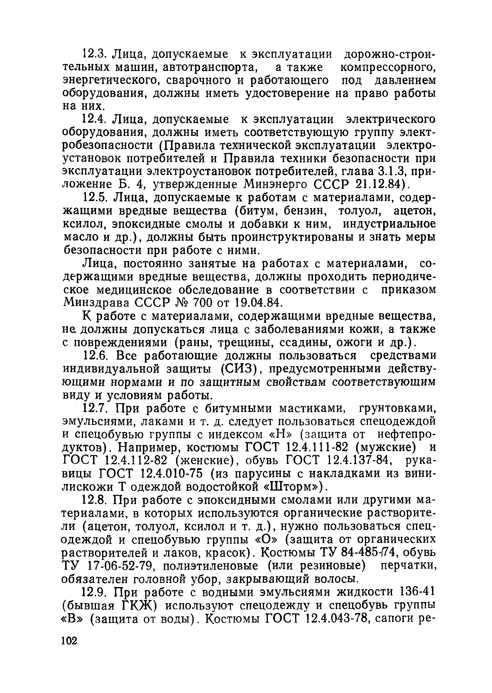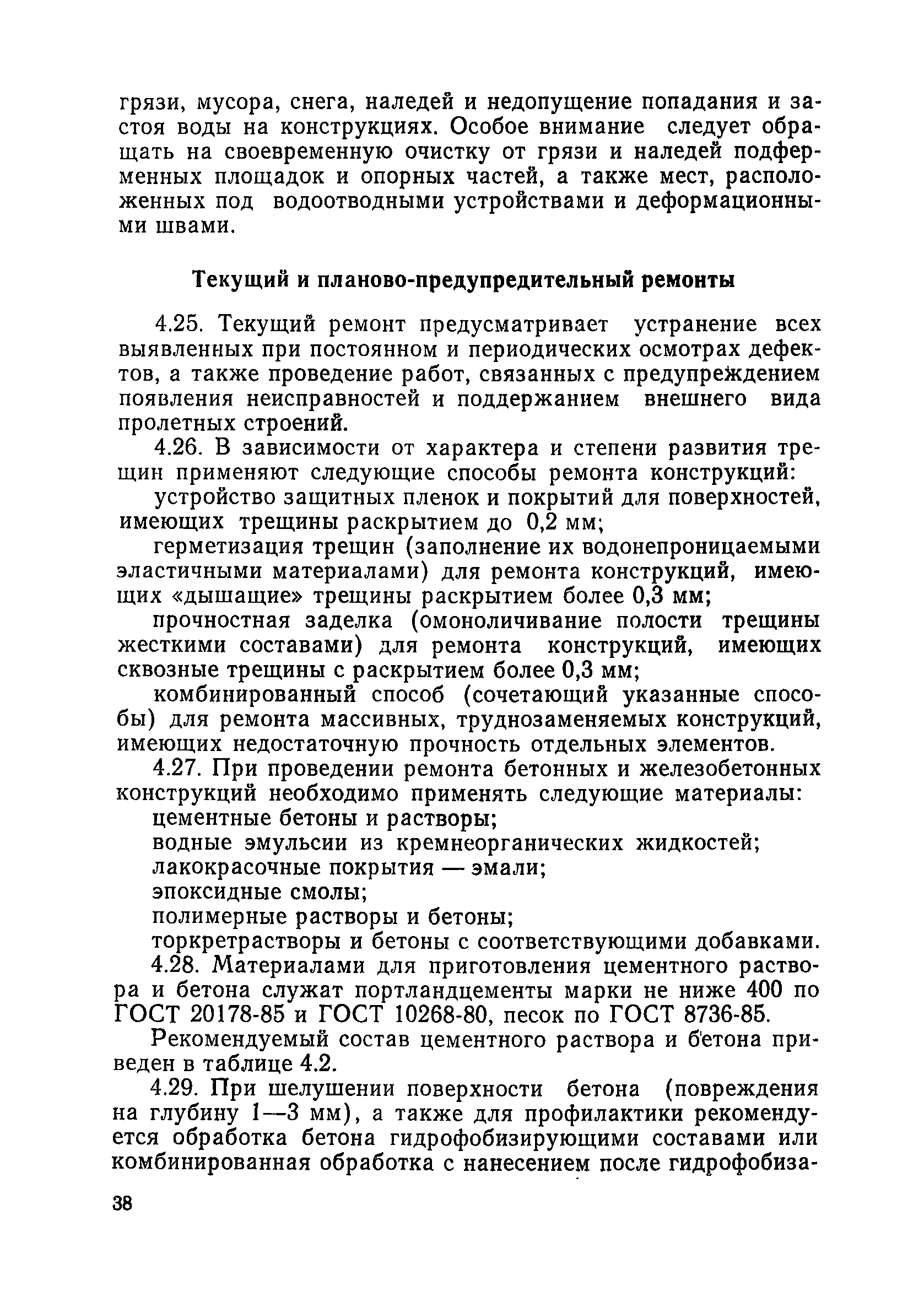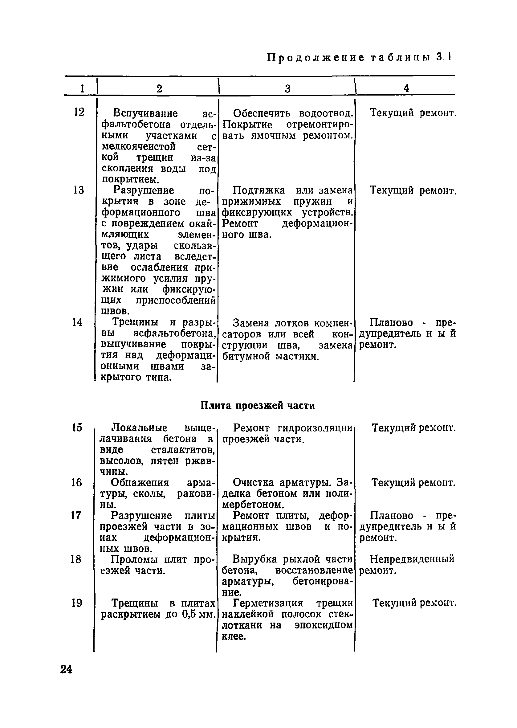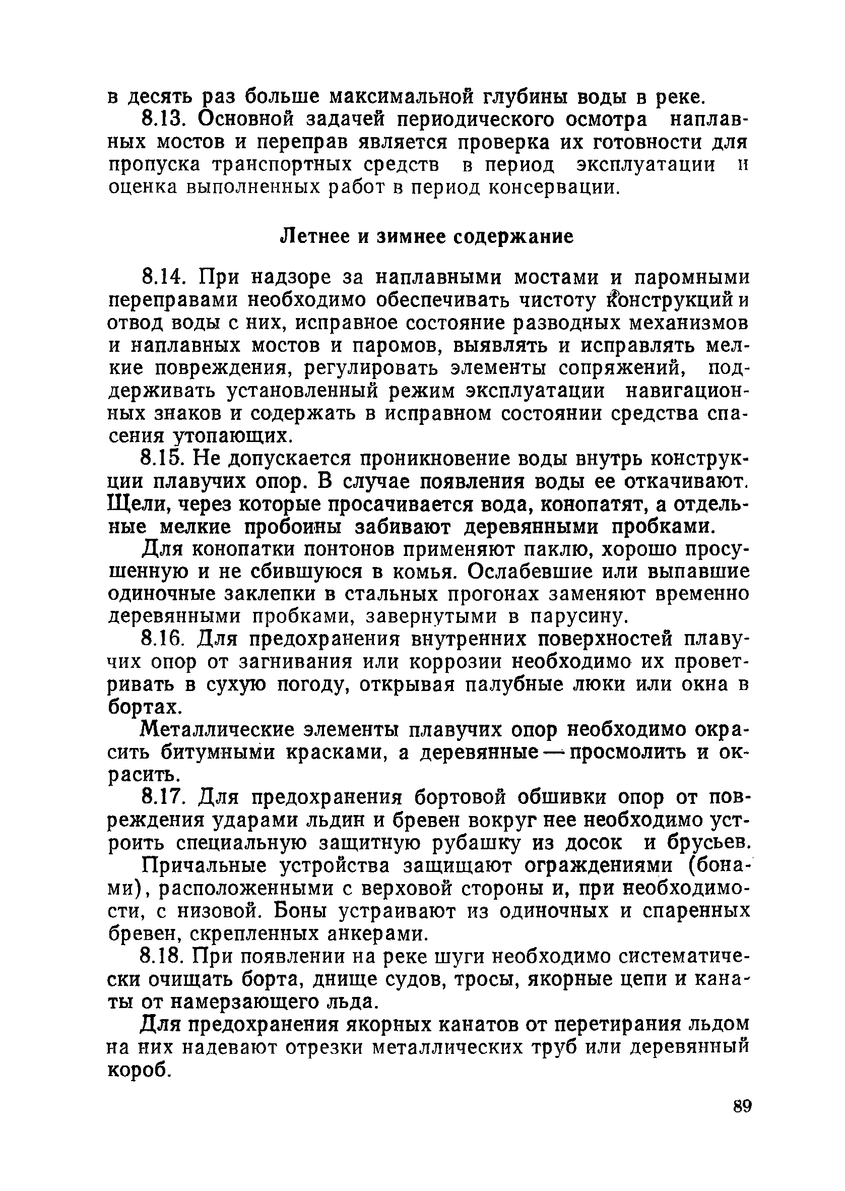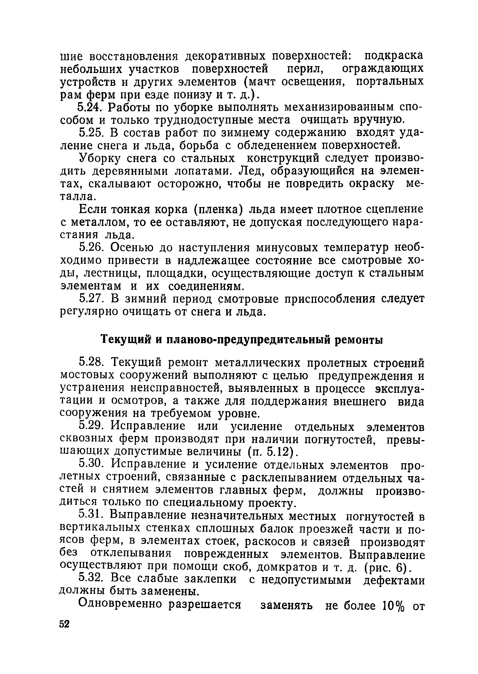 | | Нормативные ссылки: |  СНиП III-4-80* «Техника безопасности в строительстве»  СНиП 2.03.11-85 «Защита строительных конструкций от коррозии»  СНиП 2.05.03-84* «Мосты и трубы»  СНиП 3.06.04-91 «Мосты и трубы»  СНиП 3.06.07-86 «Мосты и трубы. Правила обследований и испытаний»  «Руководство по ремонту элементов мостового полотна автодорожных мостов»  ВСН 32-81 «Инструкция по устройству гидроизоляции конструкций мостов и труб на железных, автомобильных и городских дорогах»  ВСН 24-88 «Технические правила ремонта и содержания автомобильных дорог»  ВСН 37-84 «Инструкция по организации движения и ограждению мест производства дорожных работ»  ГОСТ 23457-86 «Технические средства организации дорожного движения. Правила применения»  Инструкция «Инструкция по перевозке крупногабаритных и тяжеловесных грузов автомобильным транспортом по дорогам Российской Федерации» Инструкция «Инструкция по окраске металлических конструкций, эксплуатируемых на автомобильных дорогах РСФСР, мостов, путепроводов, паромных переправ, ограждений и дорожных знаков» «Рекомендации по ремонту железобетонных мостов. (Конструктивные и технологические решения)» СНиП II-4-79 «Естественное и искусственное освещение»  ПТЭ «Правила технической эксплуатации электроустановок потребителей» ГОСТ 12.0.004-79 «Система стандартов безопасности труда. Организация обучения работающих безопасности труда. Общие положения» ГОСТ 12.1.005-76 «Система стандартов безопасности труда. Воздух рабочей зоны. Общие санитарно-гигиенические требования»  ГОСТ 9109-81 «Грунтовки ФЛ-03К и ФЛ-03Ж. Технические условия» ГОСТ 1003-73 «Сиккативы нафтенатные жидкие. Технические условия»  ГОСТ 10144-89 «Эмали ХВ-124. Технические условия» ГОСТ 10779-78 «Спирт поливиниловый. Технические условия»  ГОСТ 10834-76 «Жидкость гидрофобизирующая 136-41. Технические условия» ГОСТ 11539-83 «Фанера бакелизированная. Технические условия» ГОСТ 12.4.111-82 «Система стандартов безопасности труда. Костюмы мужские для защиты от нефти и нефтепродуктов. Технические условия» ГОСТ 12.4.112-82 «Система стандартов безопасности труда. Костюмы женские для защиты от нефти и нефтепродуктов. Технические условия»  ГОСТ 12.4.137-84 «Обувь специальная кожаная для защиты от нефти, нефтепродуктов, кислот, щелочей, нетоксичной и взрывоопасной пыли. Технические условия»  ГОСТ 12.4.059-89 «Система стандартов безопасности труда. Строительство. Ограждения предохранительные инвентарные. Общие технические условия»  ГОСТ 18188-72 «Растворители марок 645, 646, 647, 648 для лакокрасочных материалов. Технические условия» ГОСТ 19151-73 «Сурик свинцовый. Технические условия» ГОСТ 19347-84 «Купорос медный. Технические условия» ГОСТ 23143-83 «Эмали ЭП-773. Технические условия»  ГОСТ 23732-79 «Вода для бетонов и растворов. Технические условия» ГОСТ 23787.8-80 «Растворы антисептического препарата ХМ-11. Технические требования, требования безопасности и методы анализа»  ГОСТ 24258-88 «Средства подмащивания. Общие технические условия» ГОСТ 2651-78 «Натрия бихромат технический. Технические условия» ГОСТ 26600-85 «Знаки и огни навигационных внутренних водных путей. Общие технические условия»  ГОСТ 2768-84 «Ацетон технический. Технические условия»  ГОСТ 27772-88 «Прокат для строительных стальных конструкций. Общие технические условия» ГОСТ 4641-80 «Дегти каменноугольные для дорожного строительства. Технические условия» ГОСТ 5375-79 «Сапоги резиновые формовые. Техни