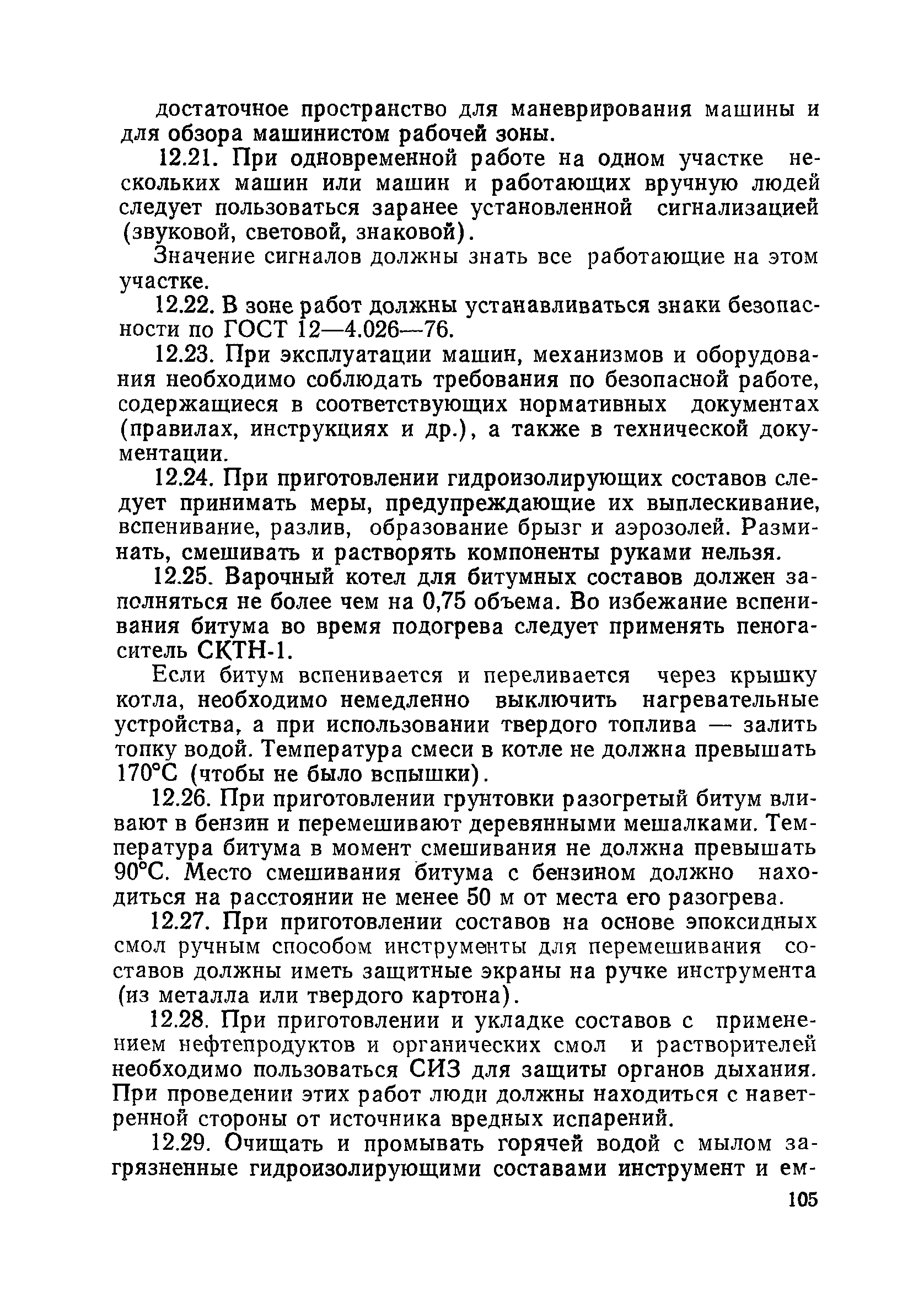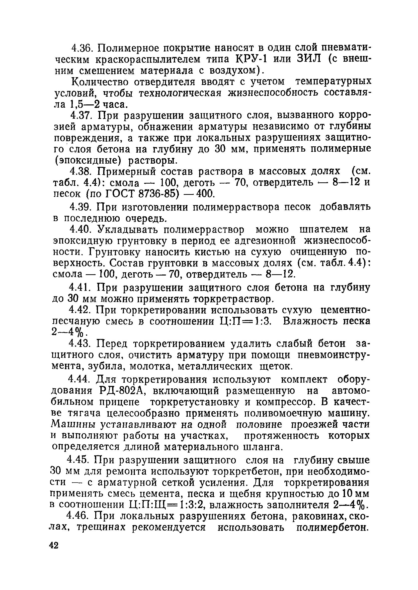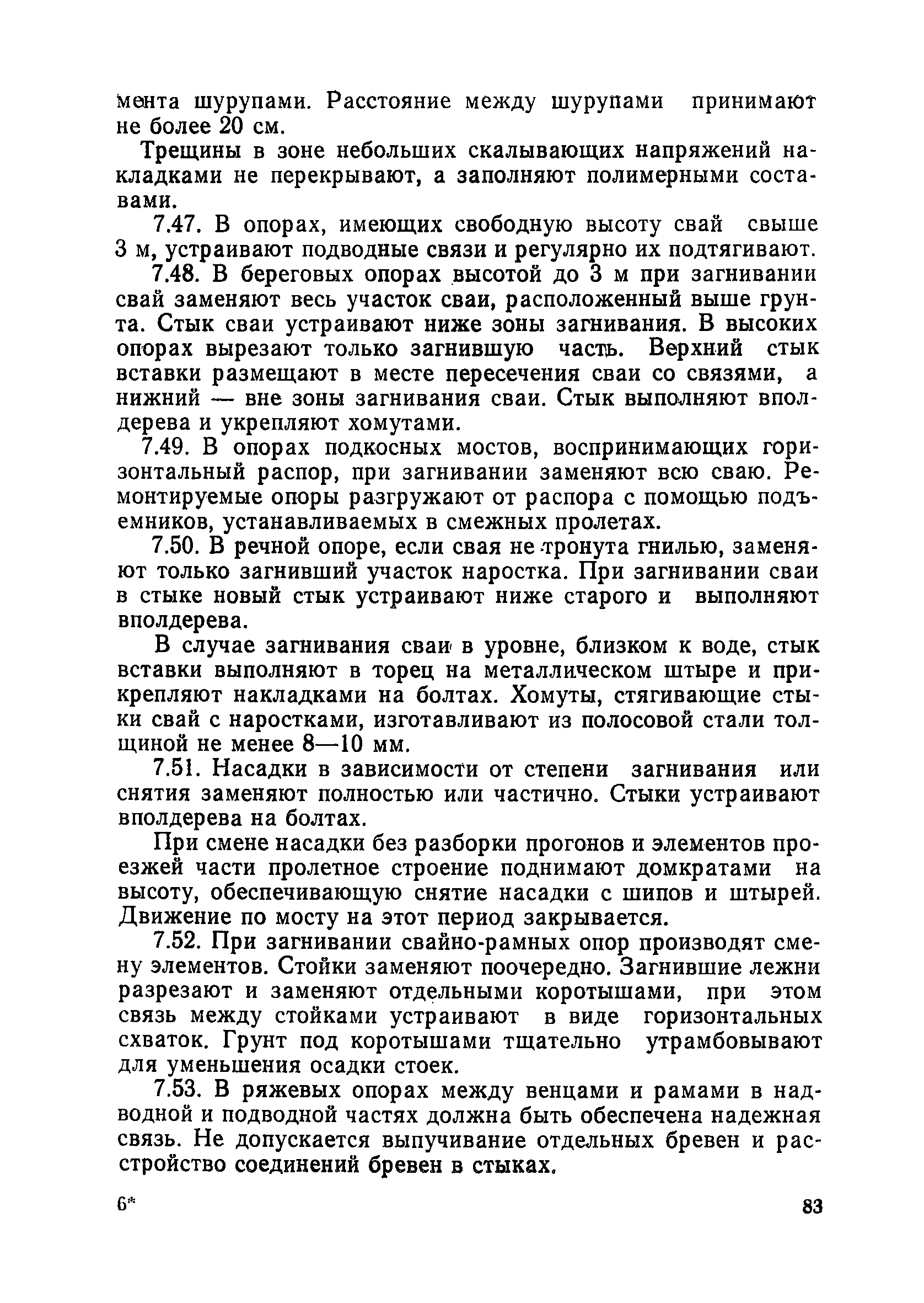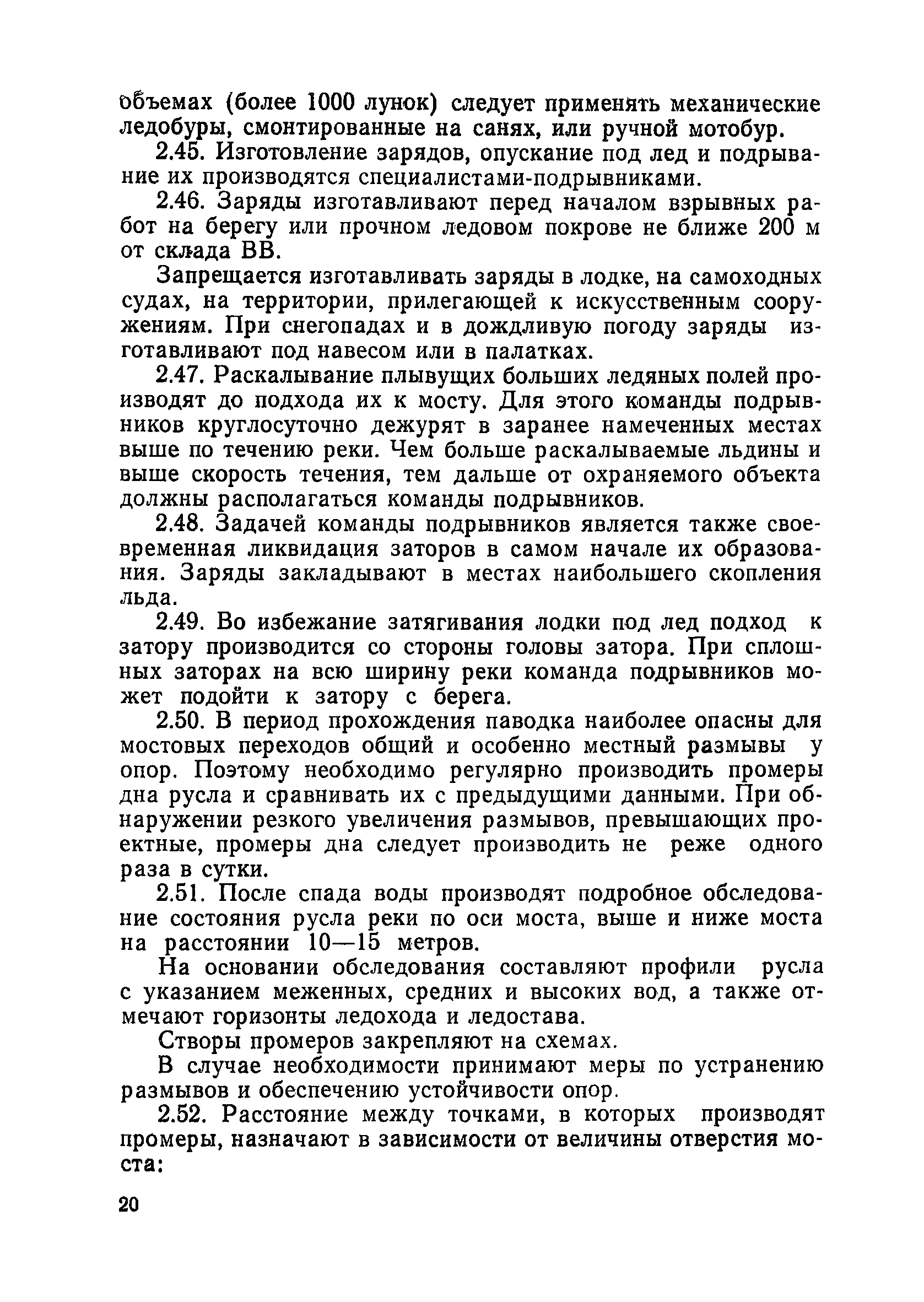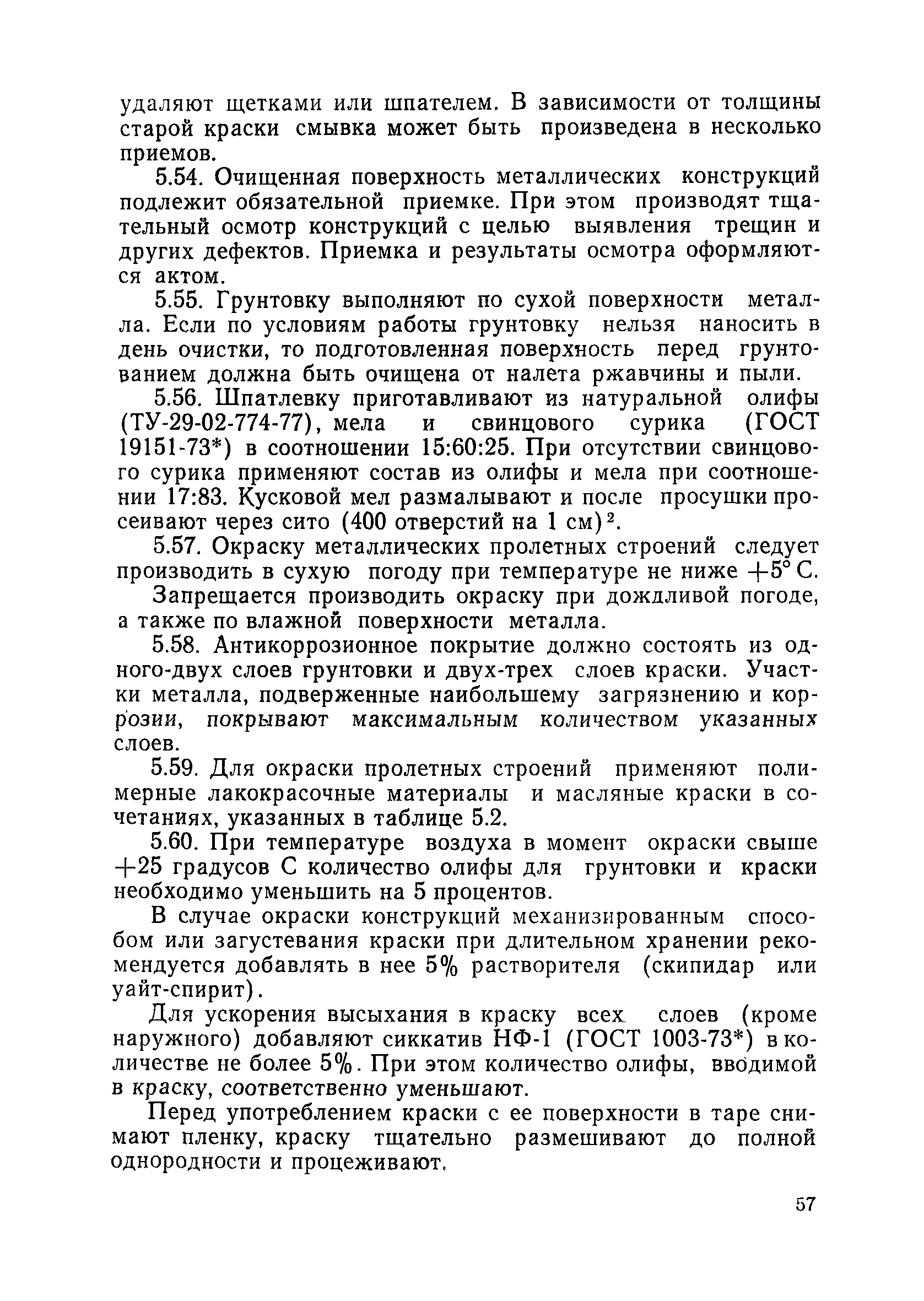 | | Нормативные ссылки: |  СНиП III-4-80* «Техника безопасности в строительстве»  СНиП 2.03.11-85 «Защита строительных конструкций от коррозии»  СНиП 2.05.03-84* «Мосты и трубы»  СНиП 3.06.04-91 «Мосты и трубы»  СНиП 3.06.07-86 «Мосты и трубы. Правила обследований и испытаний»  «Руководство по ремонту элементов мостового полотна автодорожных мостов»  ВСН 32-81 «Инструкция по устройству гидроизоляции конструкций мостов и труб на железных, автомобильных и городских дорогах»  ВСН 24-88 «Технические правила ремонта и содержания автомобильных дорог»  ВСН 37-84 «Инструкция по организации движения и ограждению мест производства дорожных работ»  ГОСТ 23457-86 «Технические средства организации дорожного движения. Правила применения»  Инструкция «Инструкция по перевозке крупногабаритных и тяжеловесных грузов автомобильным транспортом по дорогам Российской Федерации» Инструкция «Инструкция по окраске металлических конструкций, эксплуатируемых на автомобильных дорогах РСФСР, мостов, путепроводов, паромных переправ, ограждений и дорожных знаков» «Рекомендации по ремонту железобетонных мостов. (Конструктивные и технологические решения)» СНиП II-4-79 «Естественное и искусственное освещение»  ПТЭ «Правила технической эксплуатации электроустановок потребителей» ГОСТ 12.0.004-79 «Система стандартов безопасности труда. Организация обучения работающих безопасности труда. Общие положения» ГОСТ 12.1.005-76 «Система стандартов безопасности труда. Воздух рабочей зоны. Общие санитарно-гигиенические требования»  ГОСТ 9109-81 «Грунтовки ФЛ-03К и ФЛ-03Ж. Технические условия» ГОСТ 1003-73 «Сиккативы нафтенатные жидкие. Технические условия»  ГОСТ 10144-89 «Эмали ХВ-124. Технические условия» ГОСТ 10779-78 «Спирт поливиниловый. Технические условия»  ГОСТ 10834-76 «Жидкость гидрофобизирующая 136-41. Технические условия» ГОСТ 11539-83 «Фанера бакелизированная. Технические условия» ГОСТ 12.4.111-82 «Система стандартов безопасности труда. Костюмы мужские для защиты от нефти и нефтепродуктов. Технические условия» ГОСТ 12.4.112-82 «Система стандартов безопасности труда. Костюмы женские для защиты от нефти и нефтепродуктов. Технические условия»  ГОСТ 12.4.137-84 «Обувь специальная кожаная для защиты от нефти, нефтепродуктов, кислот, щелочей, нетоксичной и взрывоопасной пыли. Технические условия»  ГОСТ 12.4.059-89 «Система стандартов безопасности труда. Строительство. Ограждения предохранительные инвентарные. Общие технические условия»  ГОСТ 18188-72 «Растворители марок 645, 646, 647, 648 для лакокрасочных материалов. Технические условия» ГОСТ 19151-73 «Сурик свинцовый. Технические условия» ГОСТ 19347-84 «Купорос медный. Технические условия» ГОСТ 23143-83 «Эмали ЭП-773. Технические условия»  ГОСТ 23732-79 «Вода для бетонов и растворов. Технические условия» ГОСТ 23787.8-80 «Растворы антисептического препарата ХМ-11. Технические требования, требования безопасности и методы анализа»  ГОСТ 24258-88 «Средства подмащивания. Общие технические условия» ГОСТ 2651-78 «Натрия бихромат технический. Технические условия» ГОСТ 26600-85 «Знаки и огни навигационных внутренних водных путей. Общие технические условия»  ГОСТ 2768-84 «Ацетон технический. Технические условия»  ГОСТ 27772-88 «Прокат для строительных стальных конструкций. Общие технические условия» ГОСТ 4641-80 «Дегти каменноугольные для дорожного строительства. Технические условия» ГОСТ 5375-79 «Сапоги резиновые формовые. Техни