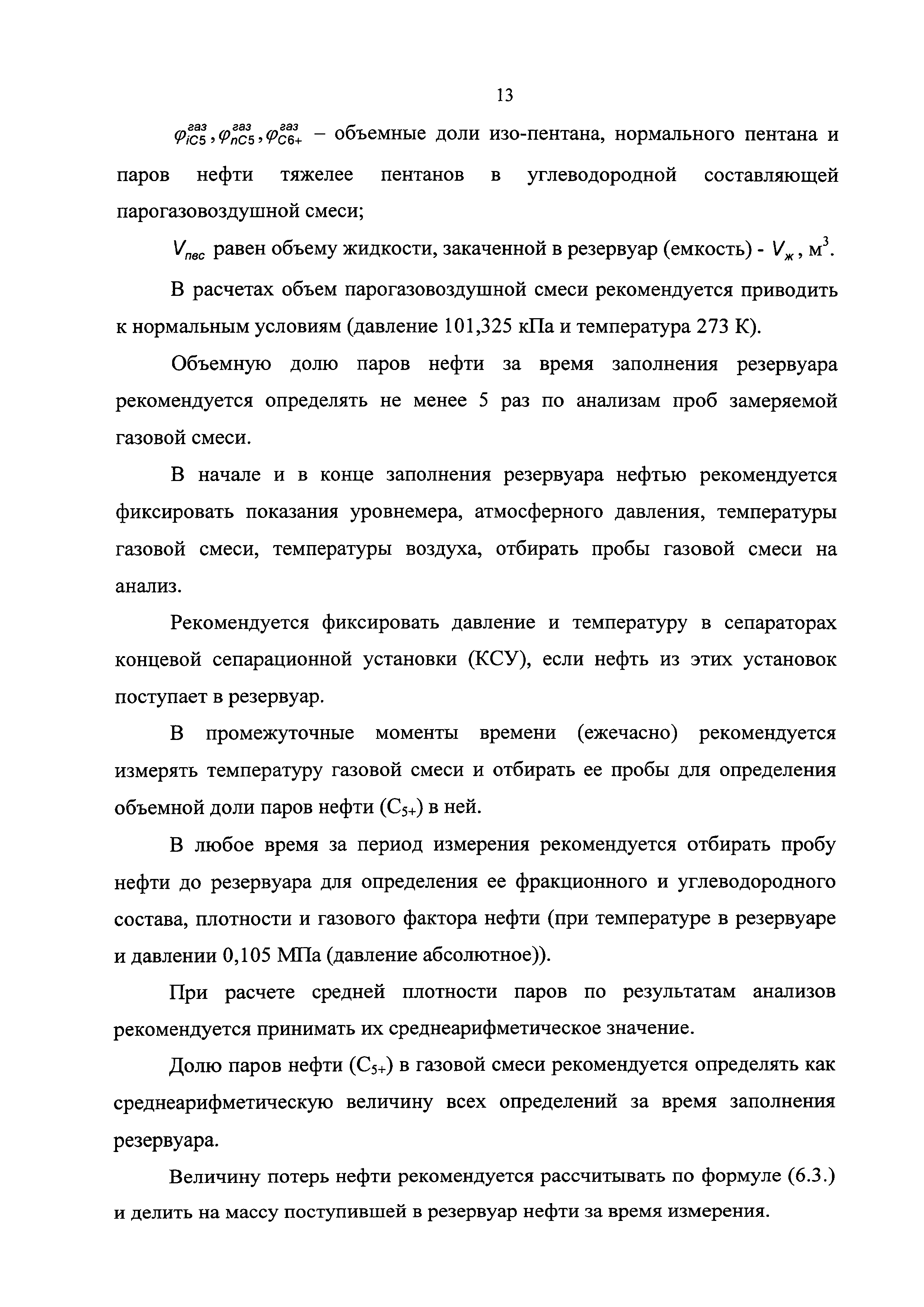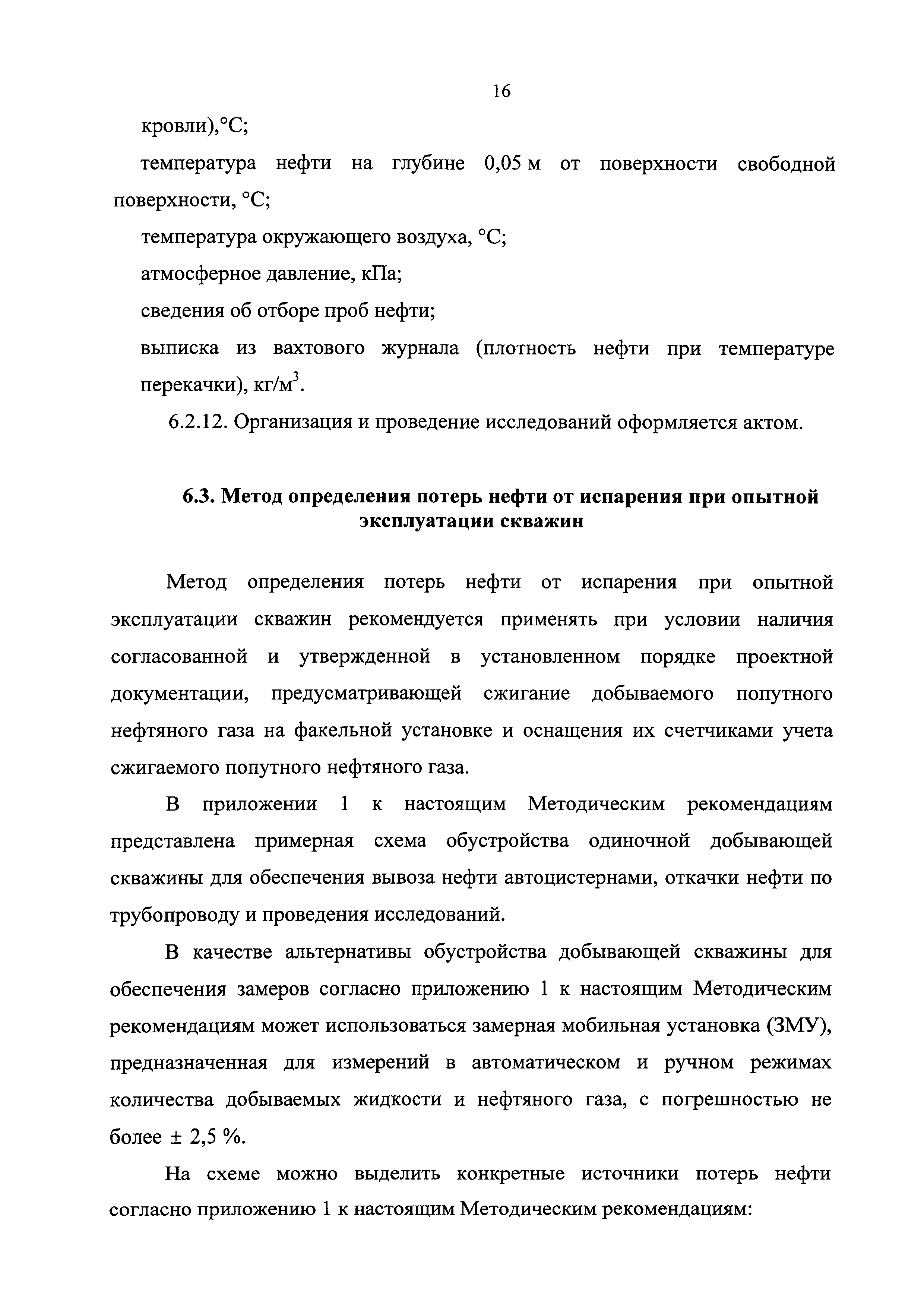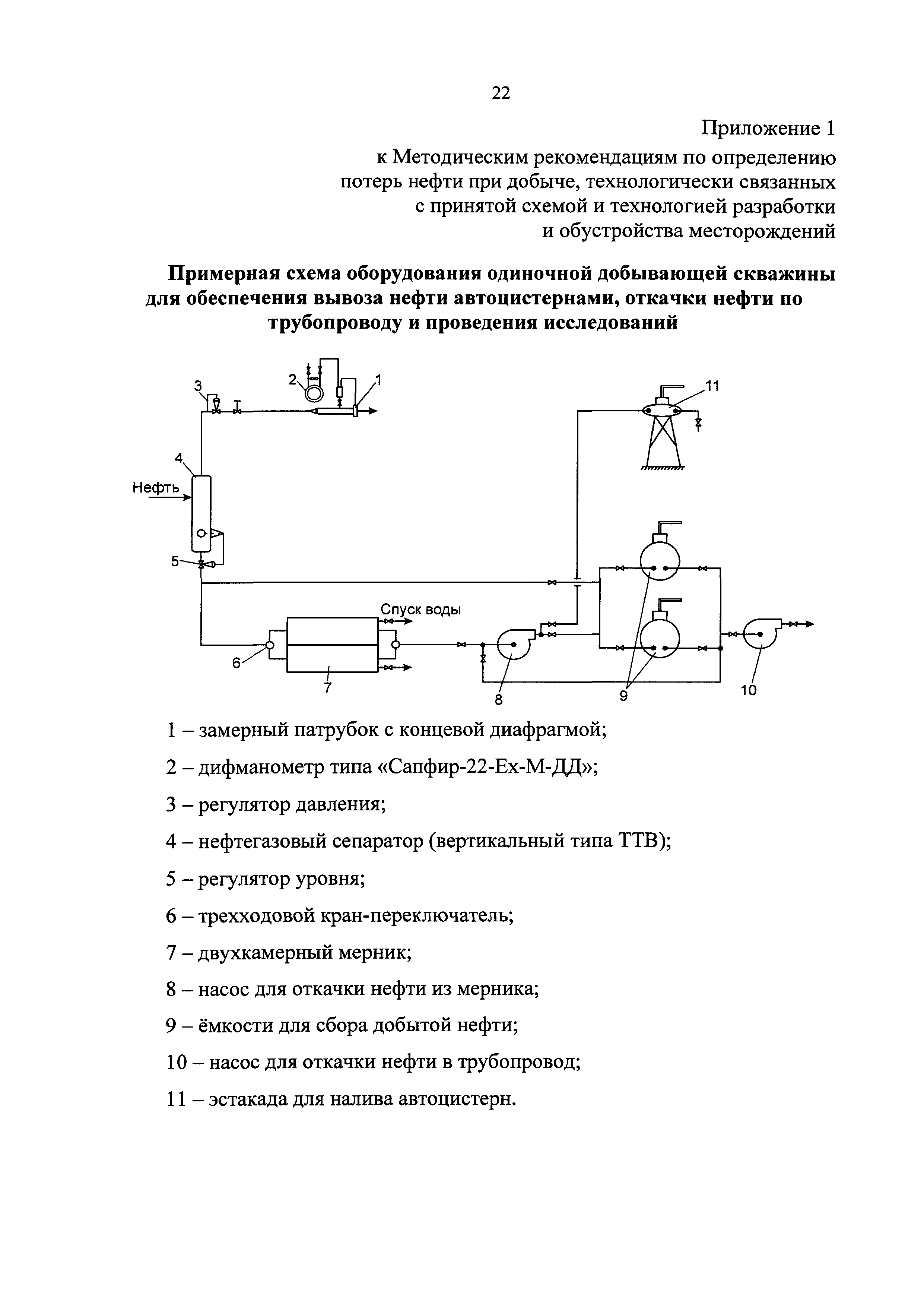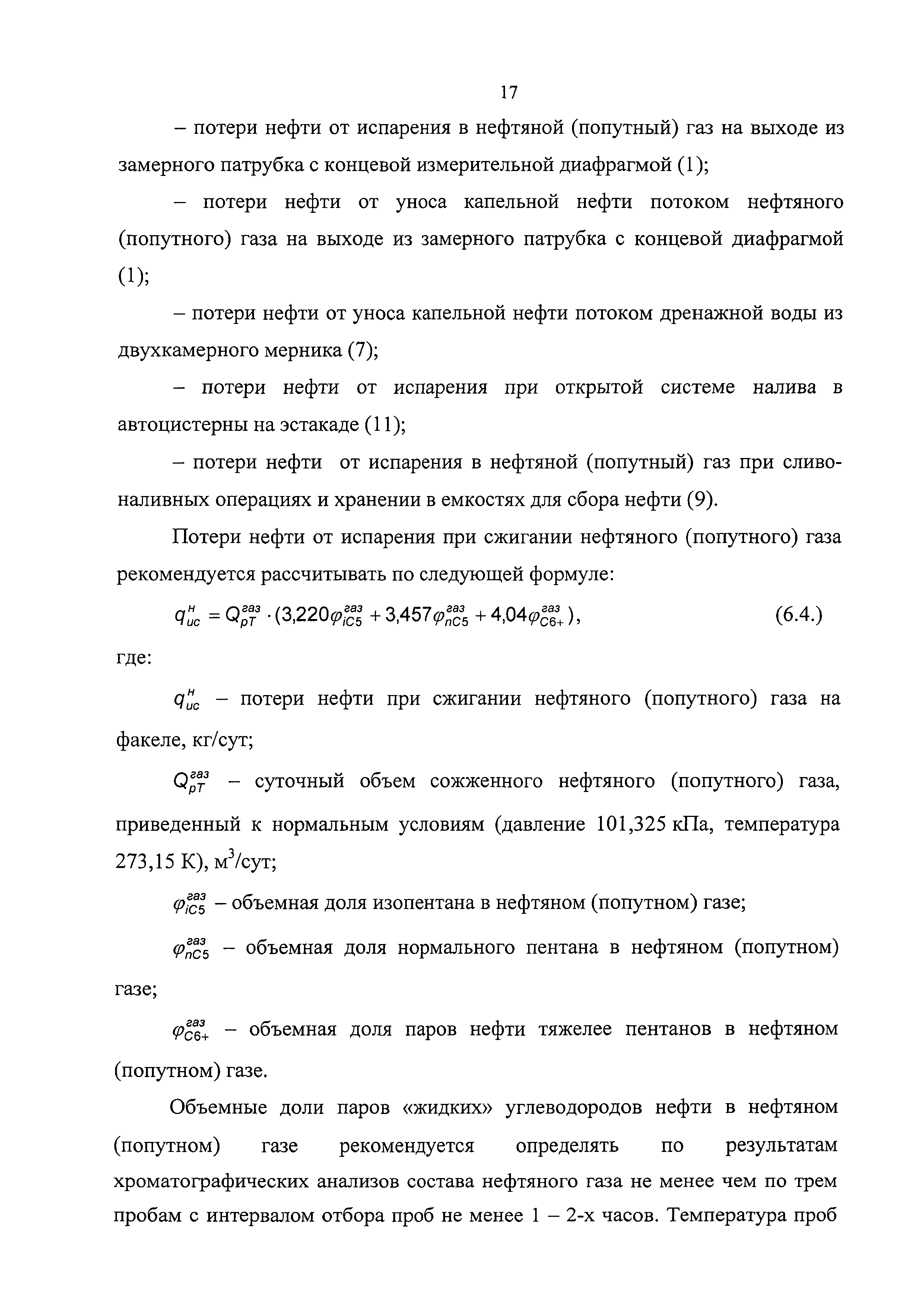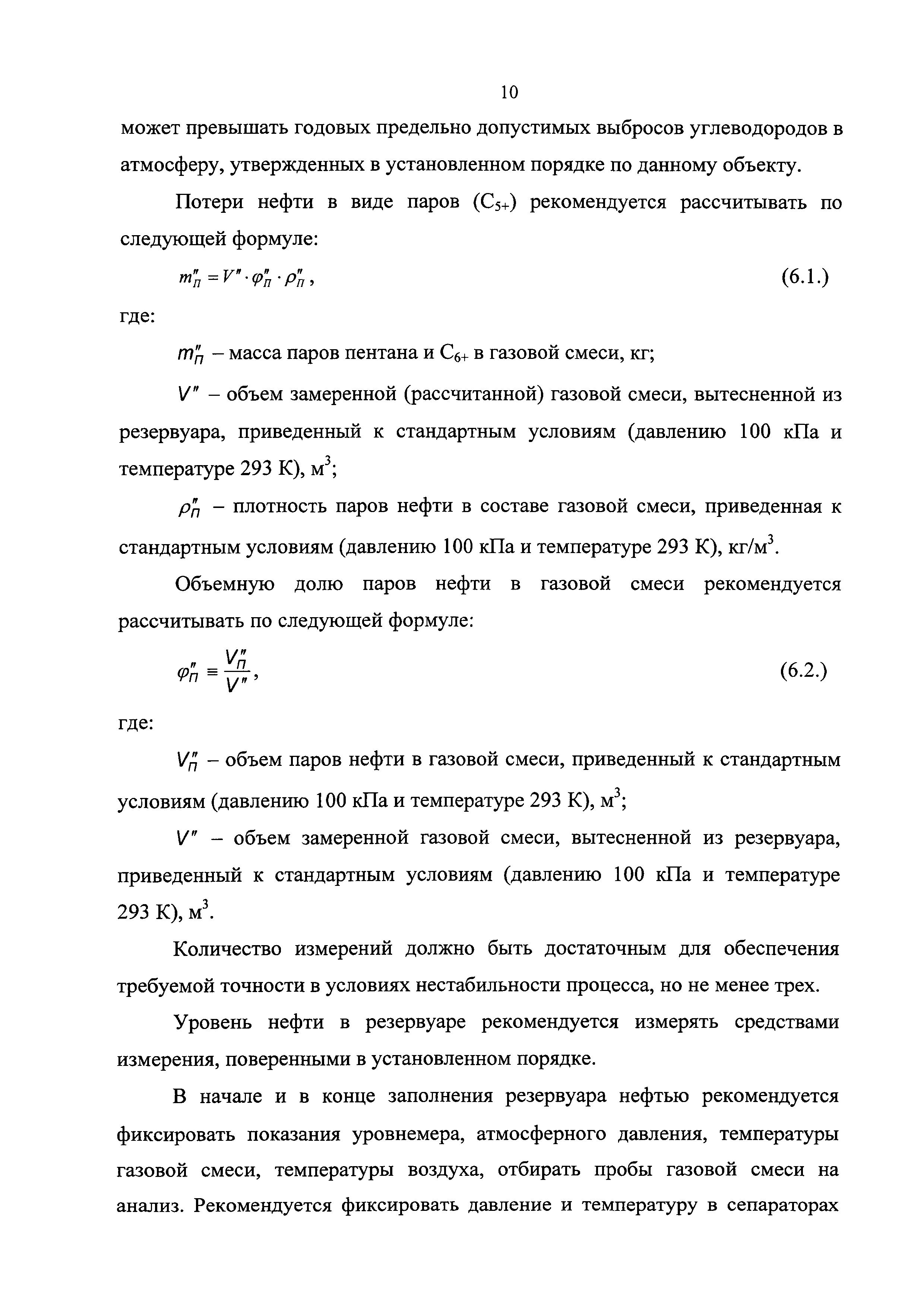 | Оглавление: | 1 Общие положения 2 Источники (места образования) технологических потерь нефти 3 Обоснования количества потерь нефти 4 Метод определения потерь нефти от уноса капельной нефти потоком нефтяного (попутного) газа 5 Методы определения потерь нефти в результате уноса капельной нефти сточными (дренажными) водами 6 Методы определения потерь нефти от испарения в сырьевых и технологических резервуарах 6.1. Метод определения потерь нефти от испарения с прямым измерением объема парогазовоздушной смеси, вытесняемой из резервуара 6.2. Метод определения потерь нефти от испарения по концентрации углеводородных паров в газе, вытесняемом из технологических резервуаров 6.3. Метод определения потерь нефти от испарения при опытной эксплуатации скважин 7 Рекомендации по отбору и подготовке к анализу проб нефти и проб газовой смеси 8 Рекомендации по организации исследований для определения технологических потерь нефти Приложение 1. Примерная схема оборудования одиночной добывающей скважины для обеспечения вывоза нефти автоцистернами, откачки нефти по трубопроводу и проведения исследований Приложение 2. Пример представления компонентного состава добываемой нефти |