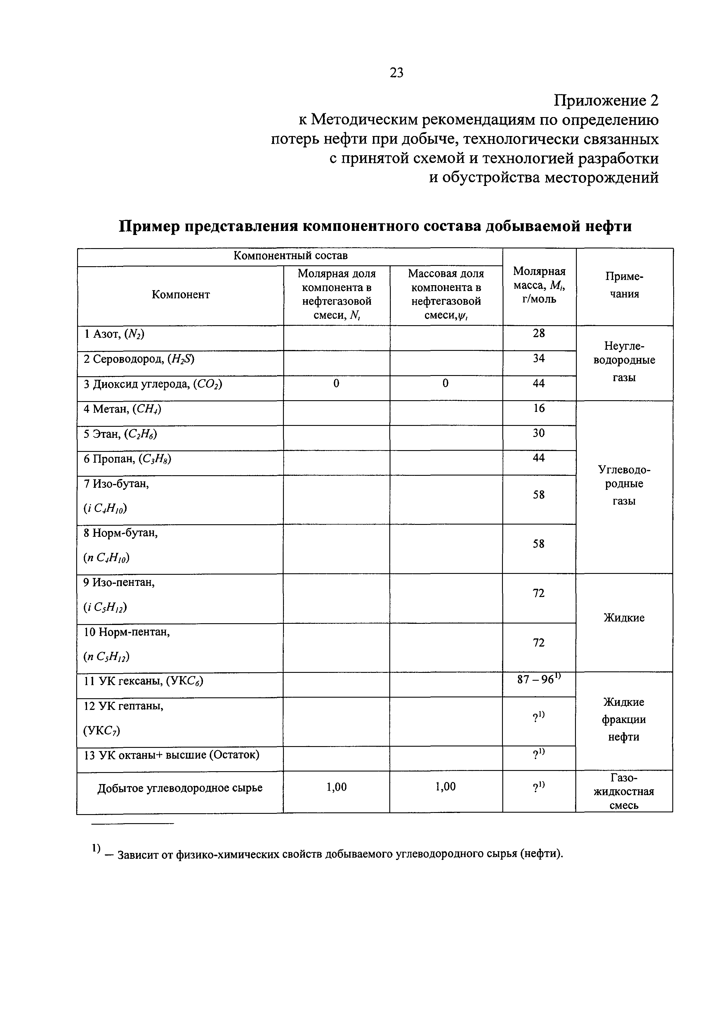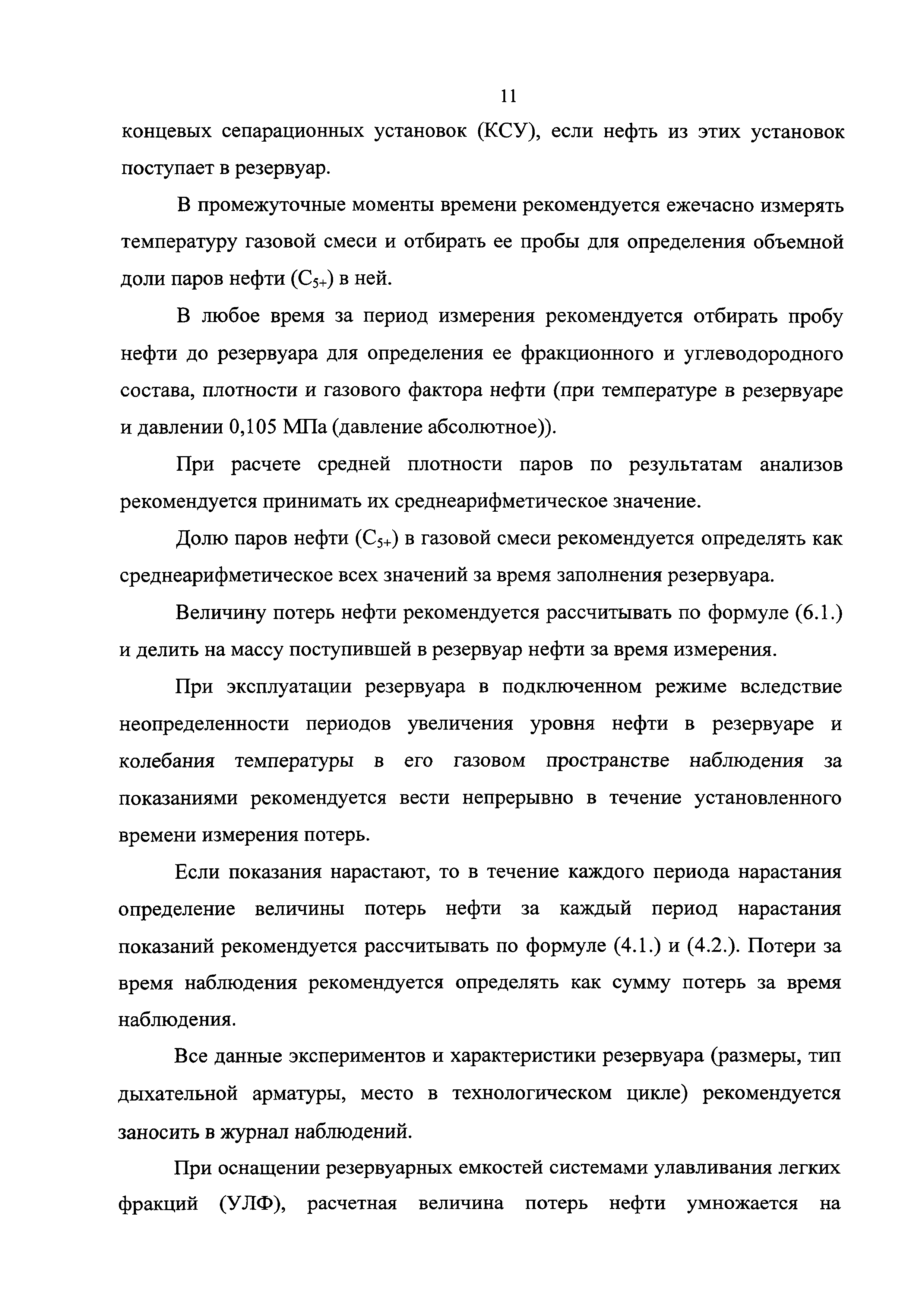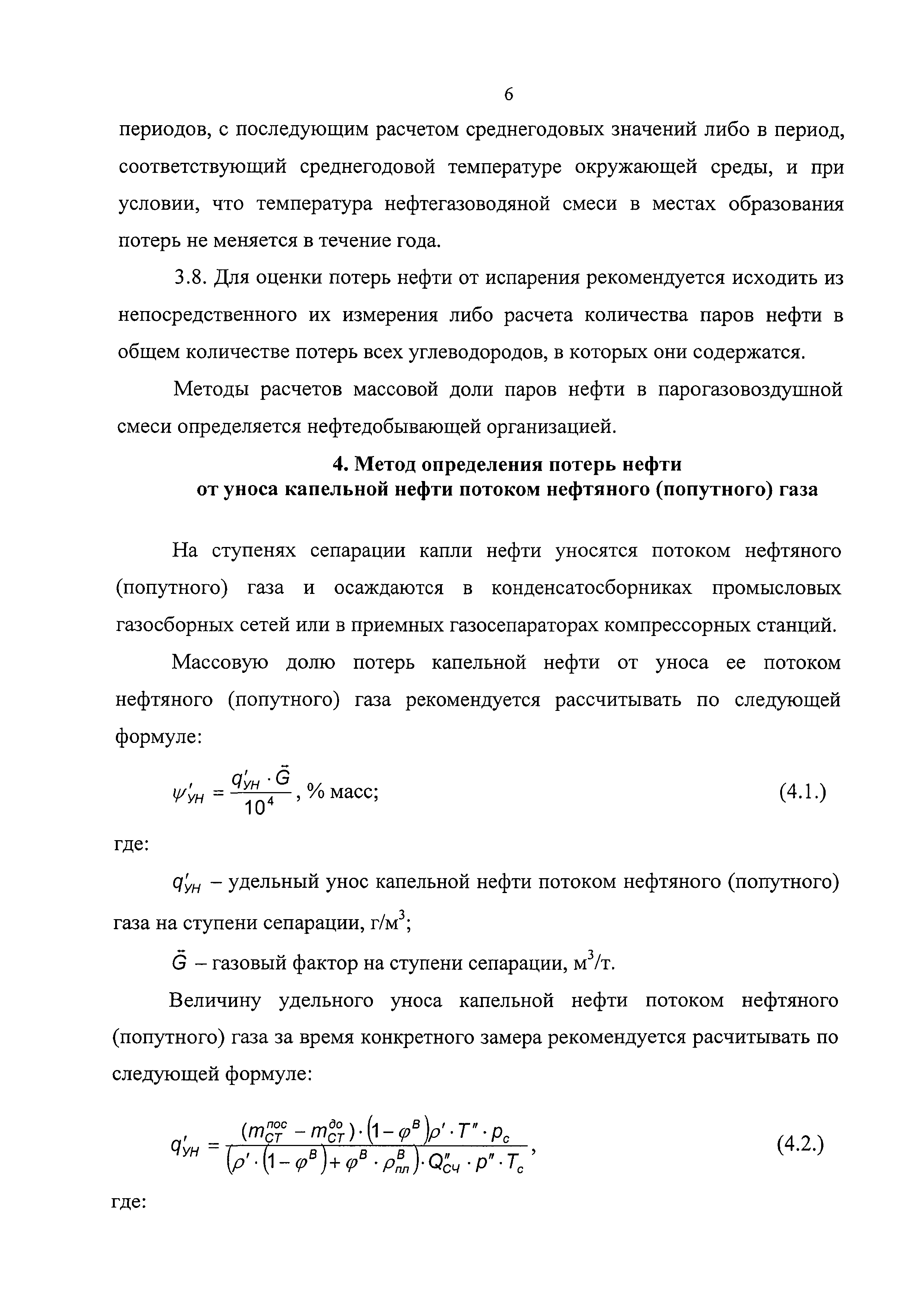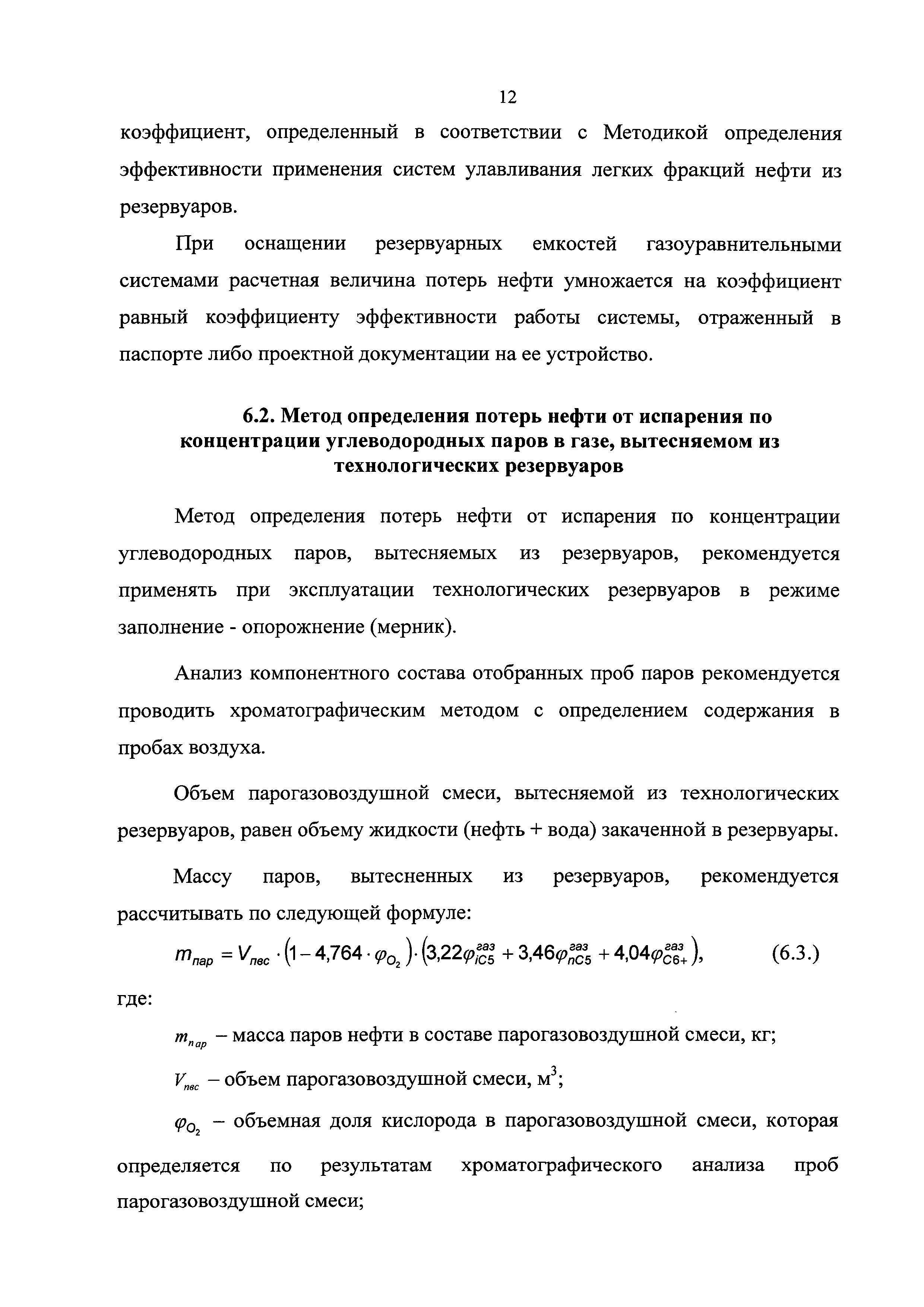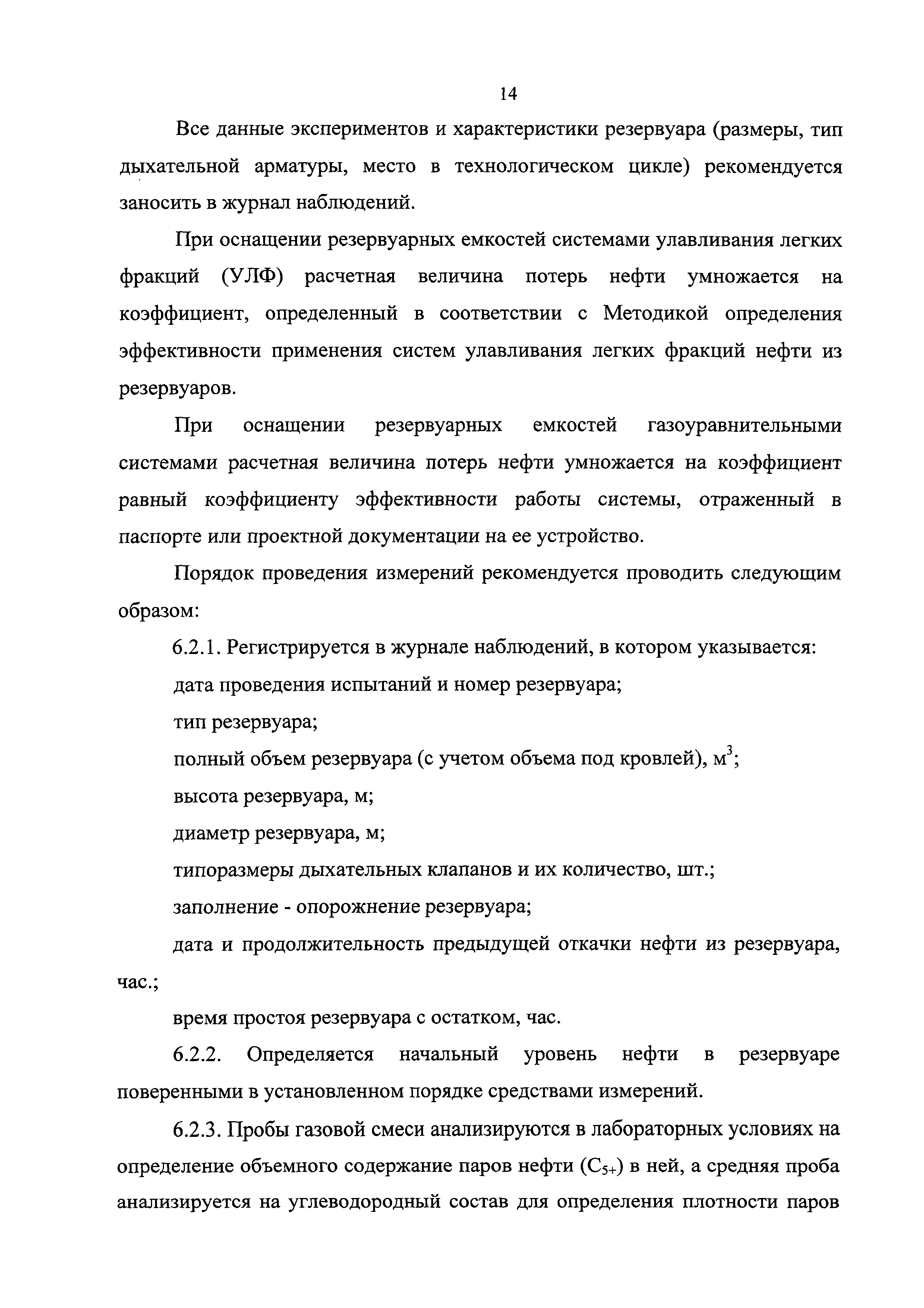 | Оглавление: | 1 Общие положения 2 Источники (места образования) технологических потерь нефти 3 Обоснования количества потерь нефти 4 Метод определения потерь нефти от уноса капельной нефти потоком нефтяного (попутного) газа 5 Методы определения потерь нефти в результате уноса капельной нефти сточными (дренажными) водами 6 Методы определения потерь нефти от испарения в сырьевых и технологических резервуарах 6.1. Метод определения потерь нефти от испарения с прямым измерением объема парогазовоздушной смеси, вытесняемой из резервуара 6.2. Метод определения потерь нефти от испарения по концентрации углеводородных паров в газе, вытесняемом из технологических резервуаров 6.3. Метод определения потерь нефти от испарения при опытной эксплуатации скважин 7 Рекомендации по отбору и подготовке к анализу проб нефти и проб газовой смеси 8 Рекомендации по организации исследований для определения технологических потерь нефти Приложение 1. Примерная схема оборудования одиночной добывающей скважины для обеспечения вывоза нефти автоцистернами, откачки нефти по трубопроводу и проведения исследований Приложение 2. Пример представления компонентного состава добываемой нефти |