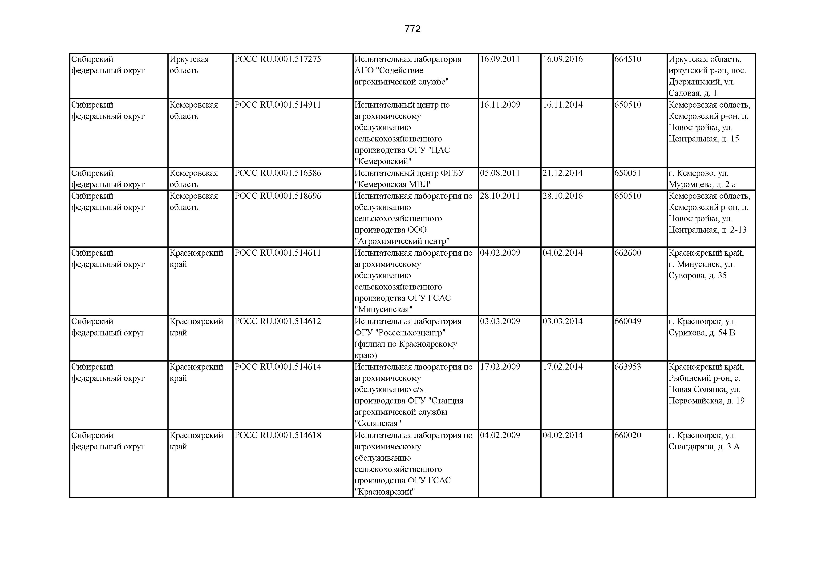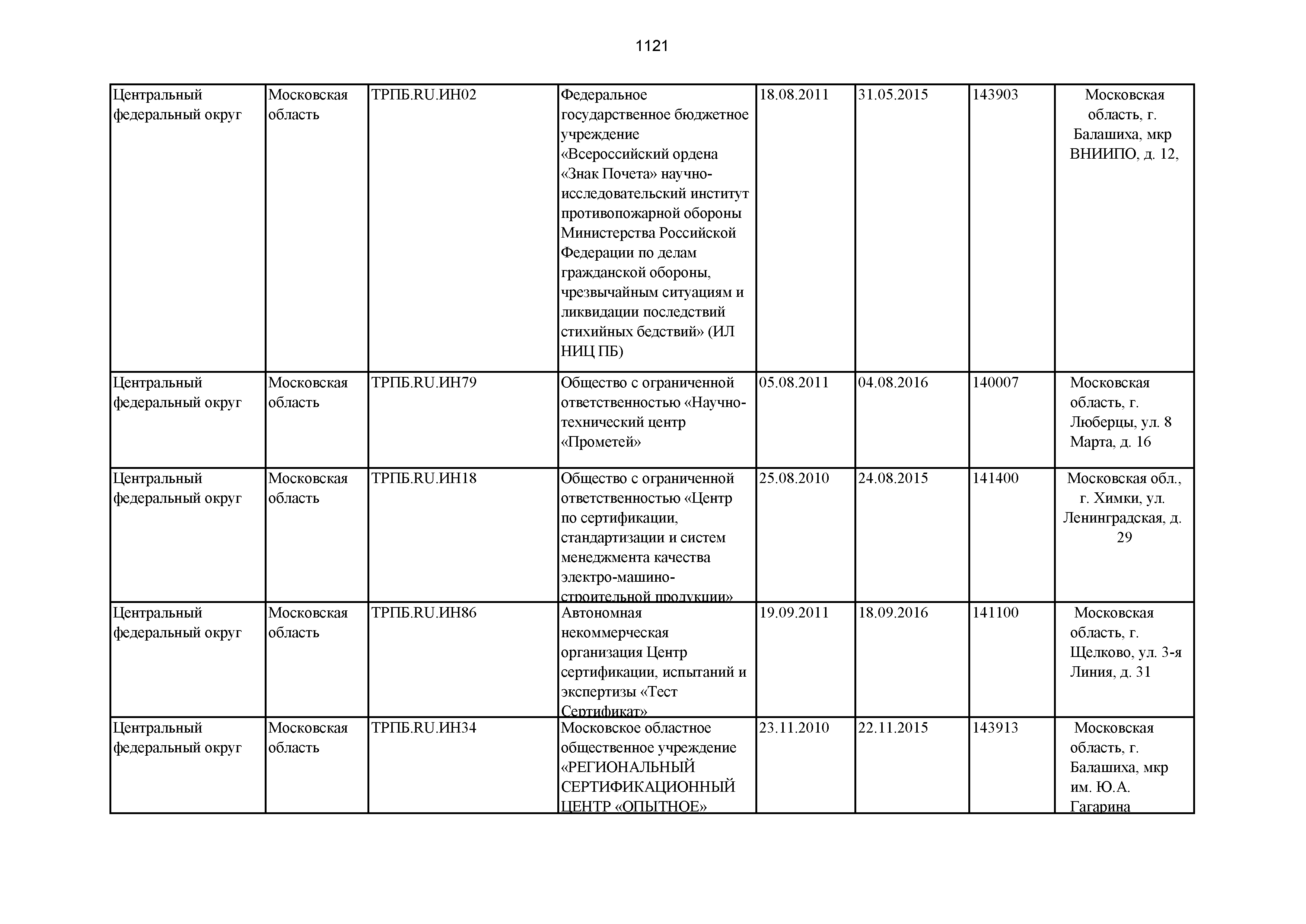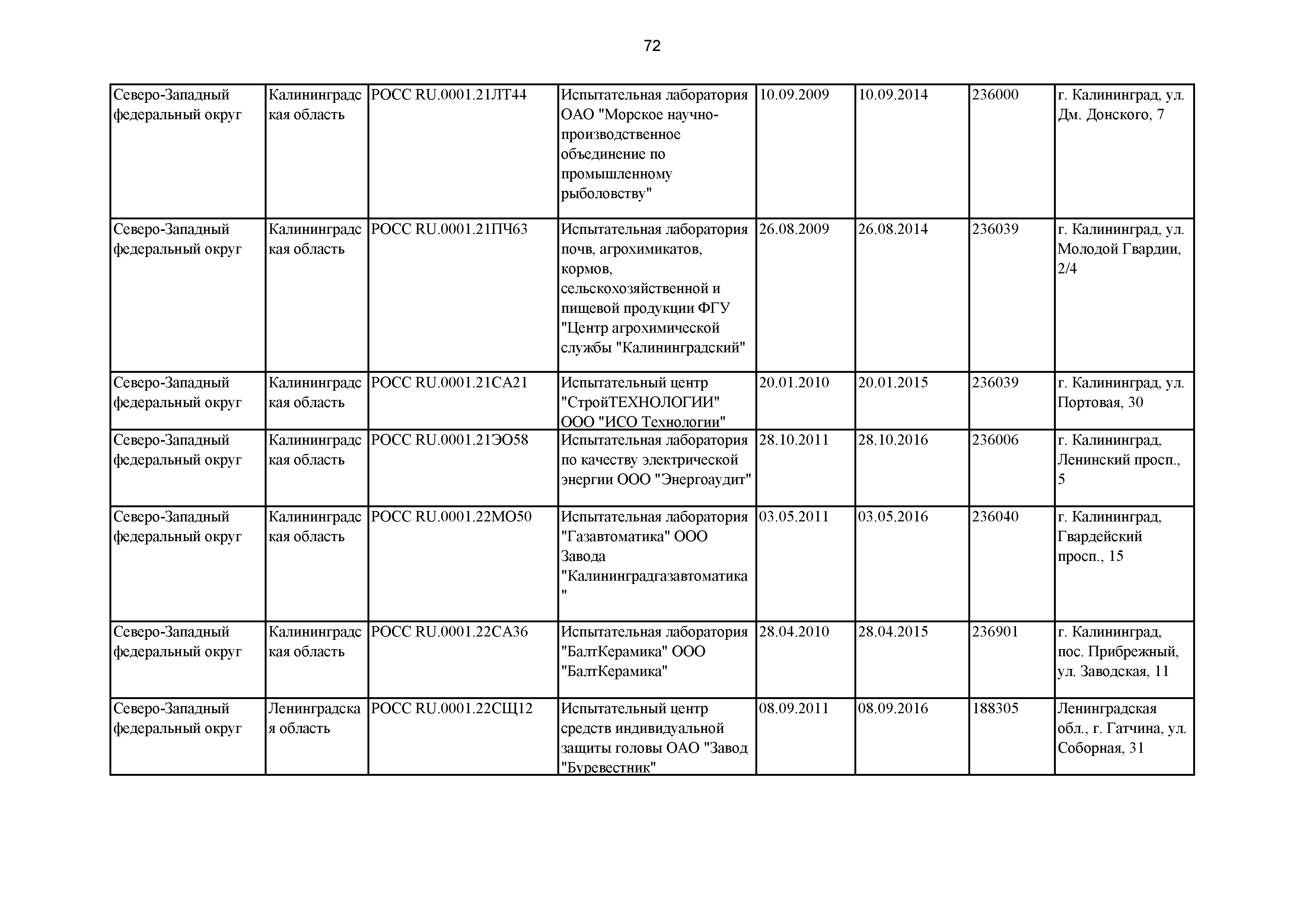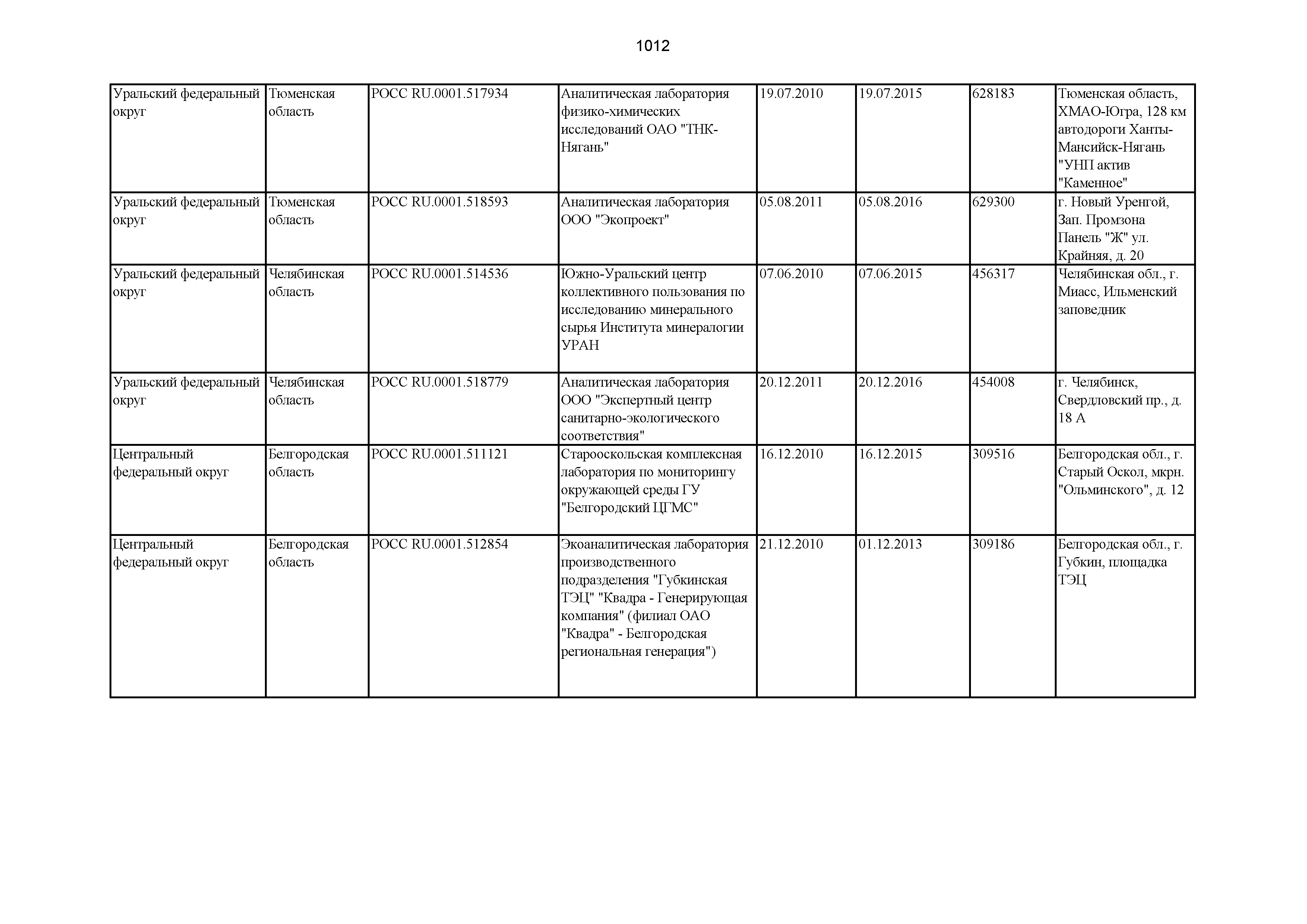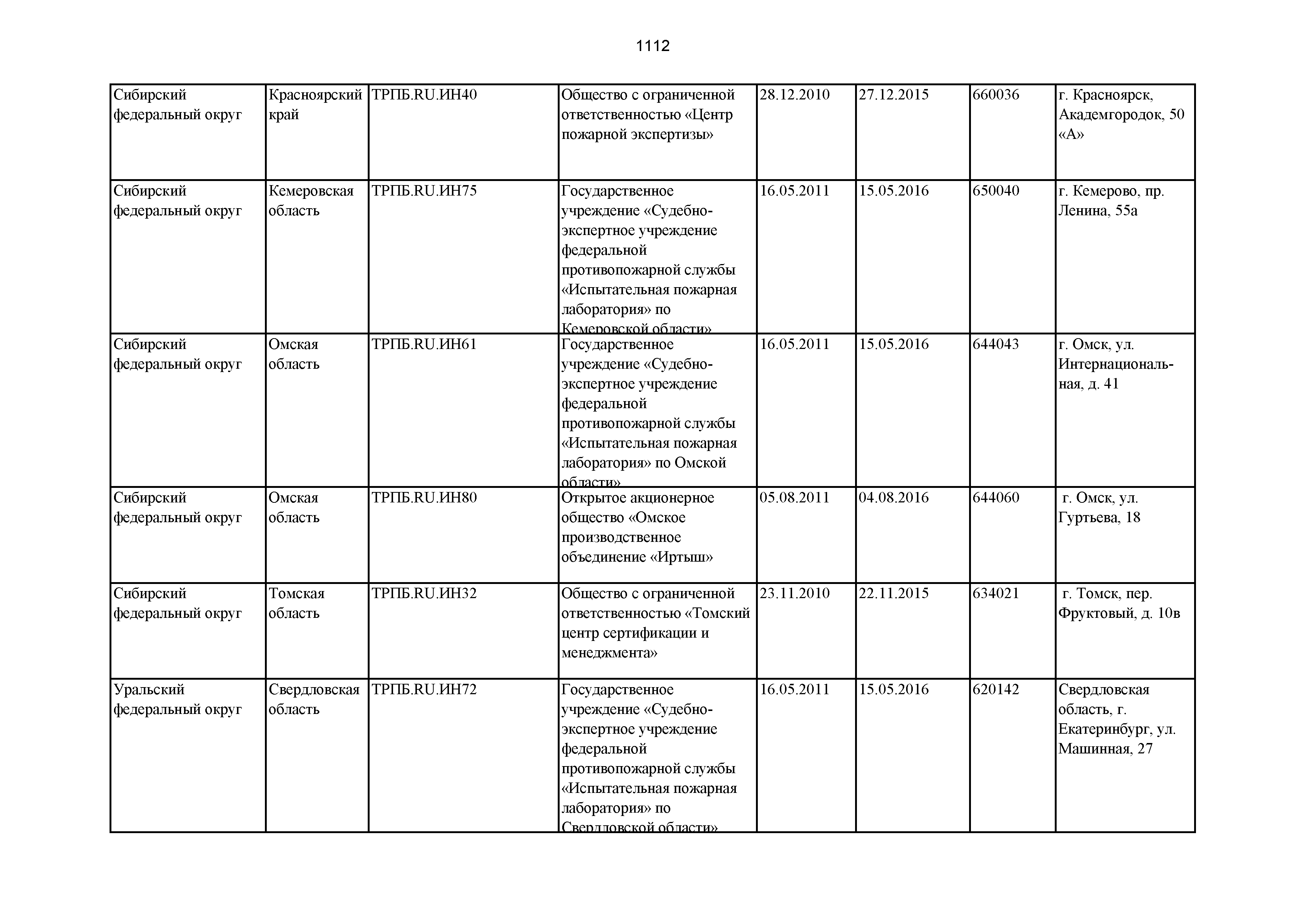 | Оглавление: | Приложение 1. План инспекционного контроля деятельности аккредитованных испытательных лабораторий (центров) и метрологической службы на 2012 год Приложение 2. План инспекционного контроля деятельности аккредитованных Органов по сертификации на 2012 год Приложение 3. План инспекционного контроля деятельности аналитических лабораторий (центров) на 2012 год Приложение 4. План инспекционного контроля в области обеспечения пожарной безопасности на 2012 год Приложение 5. План инспекционного контроля в области связи на 2012 год Приложение 6. План инспекционного контроля в области железнодорожного транспорта на 2012 год |