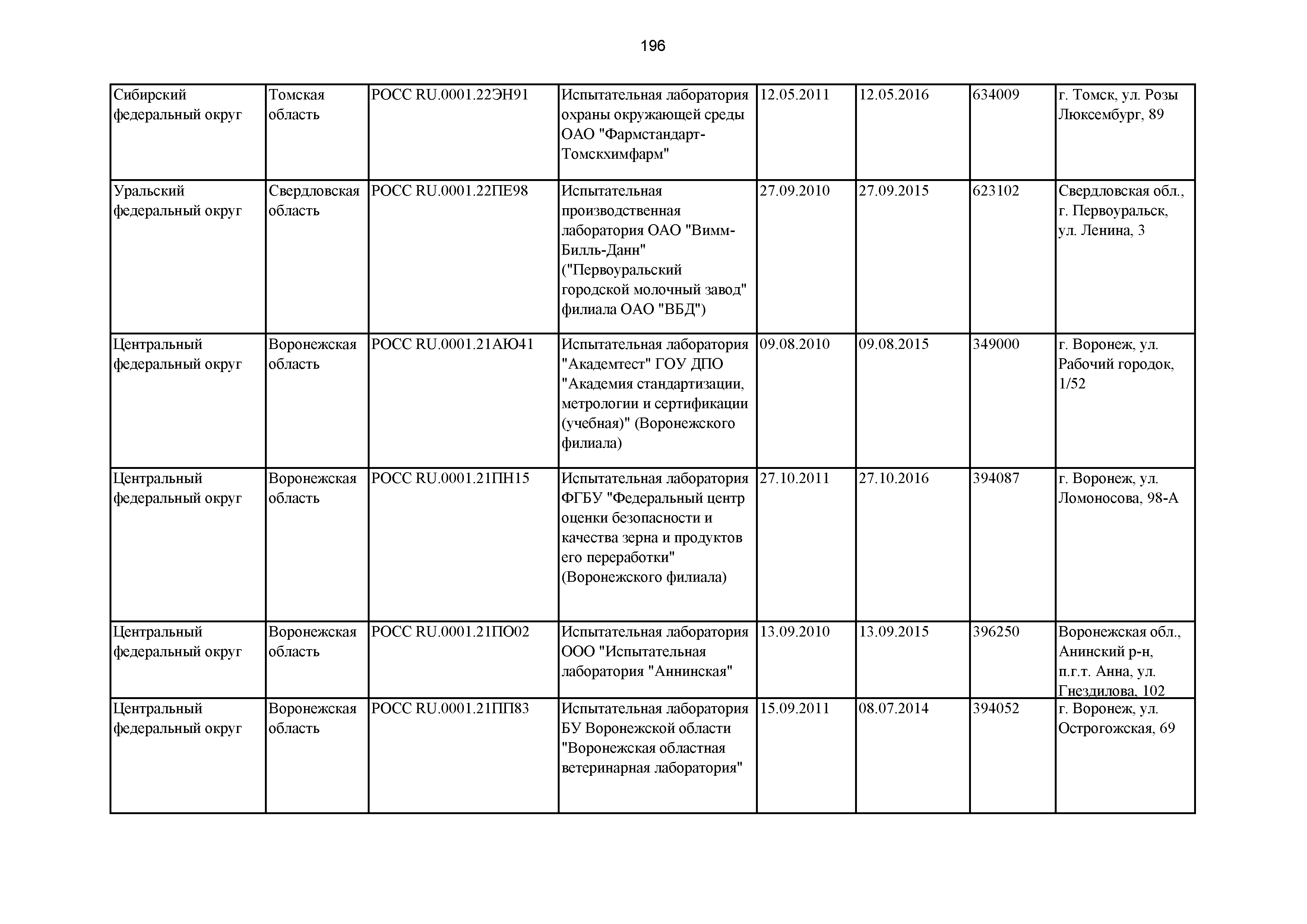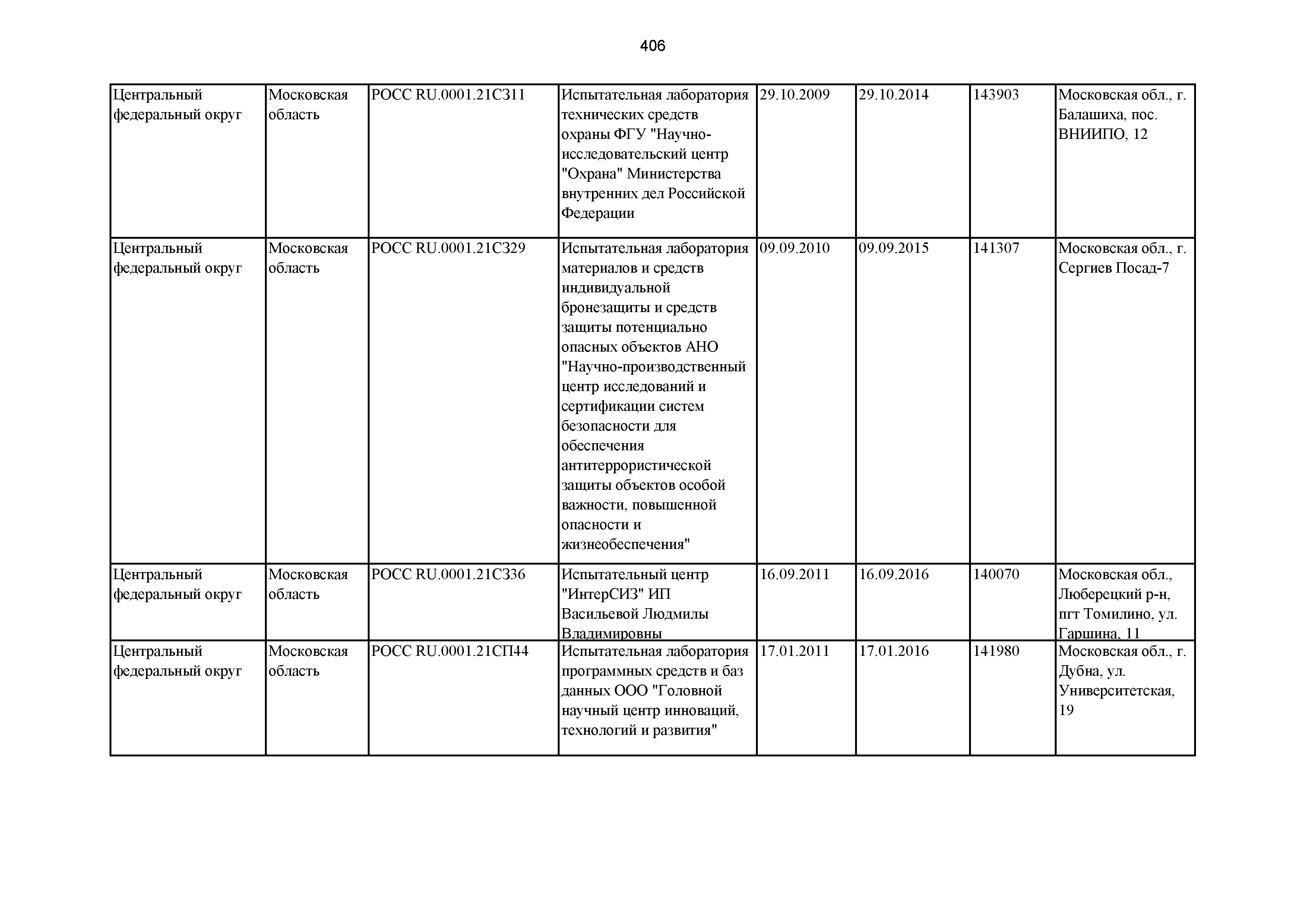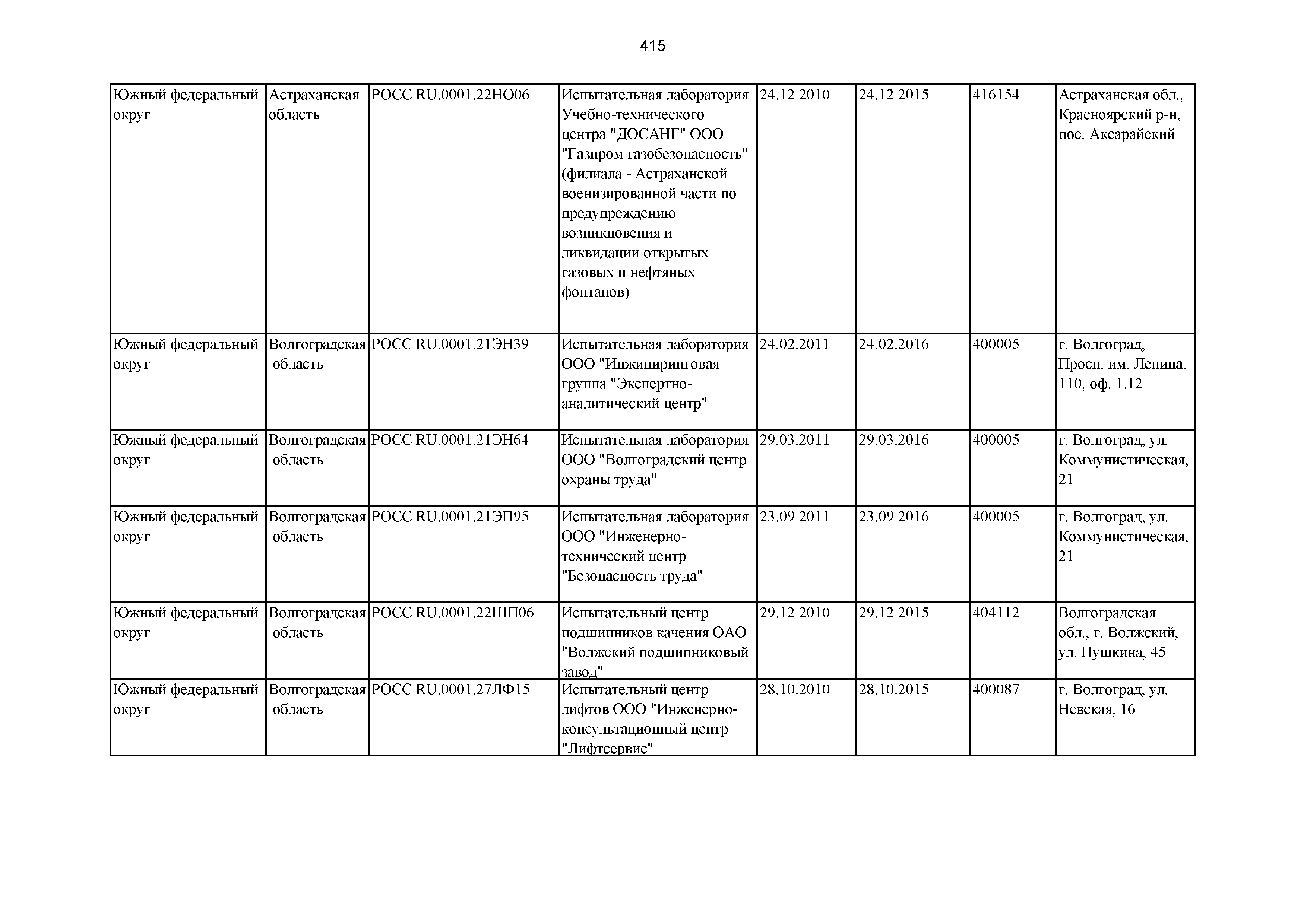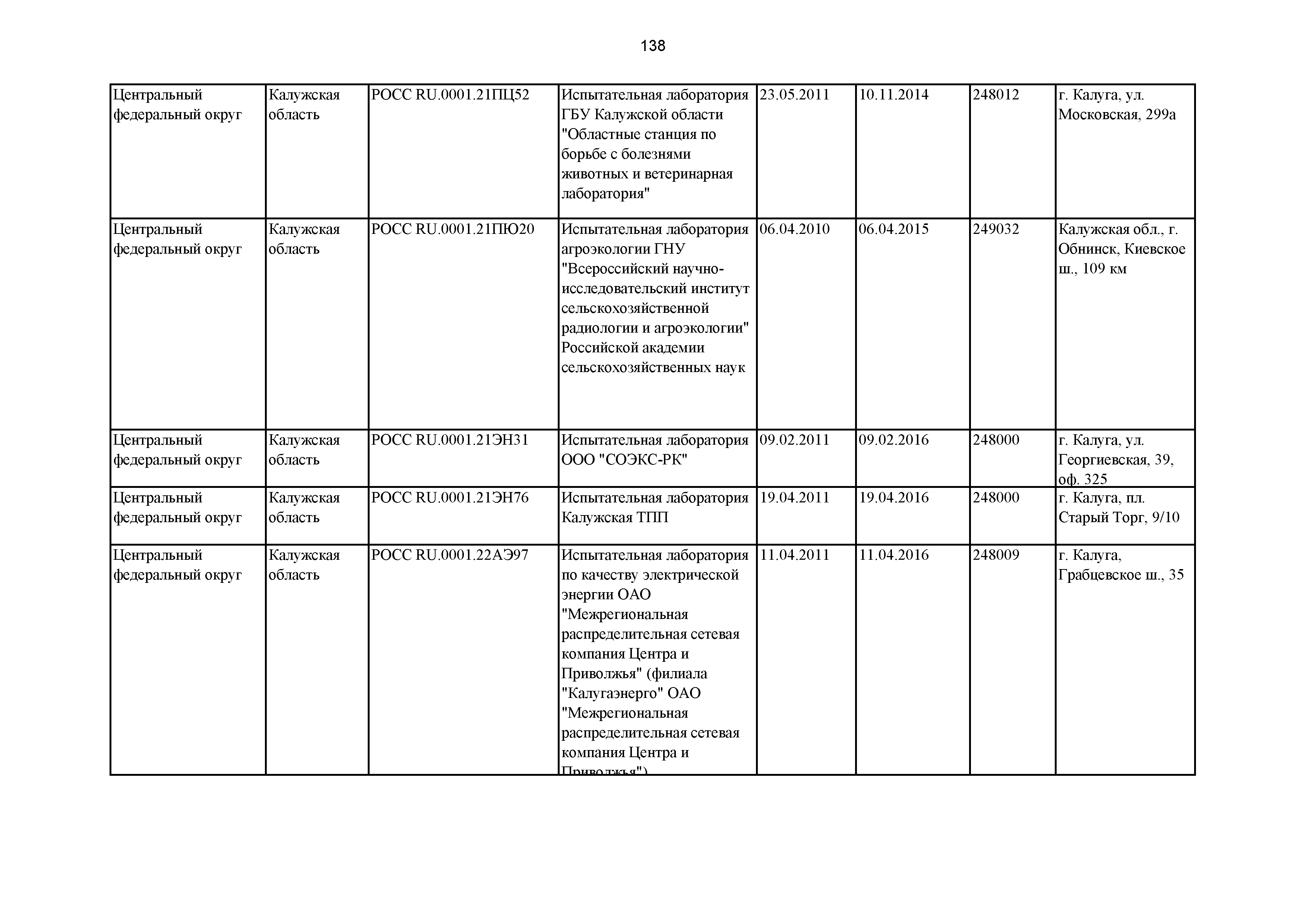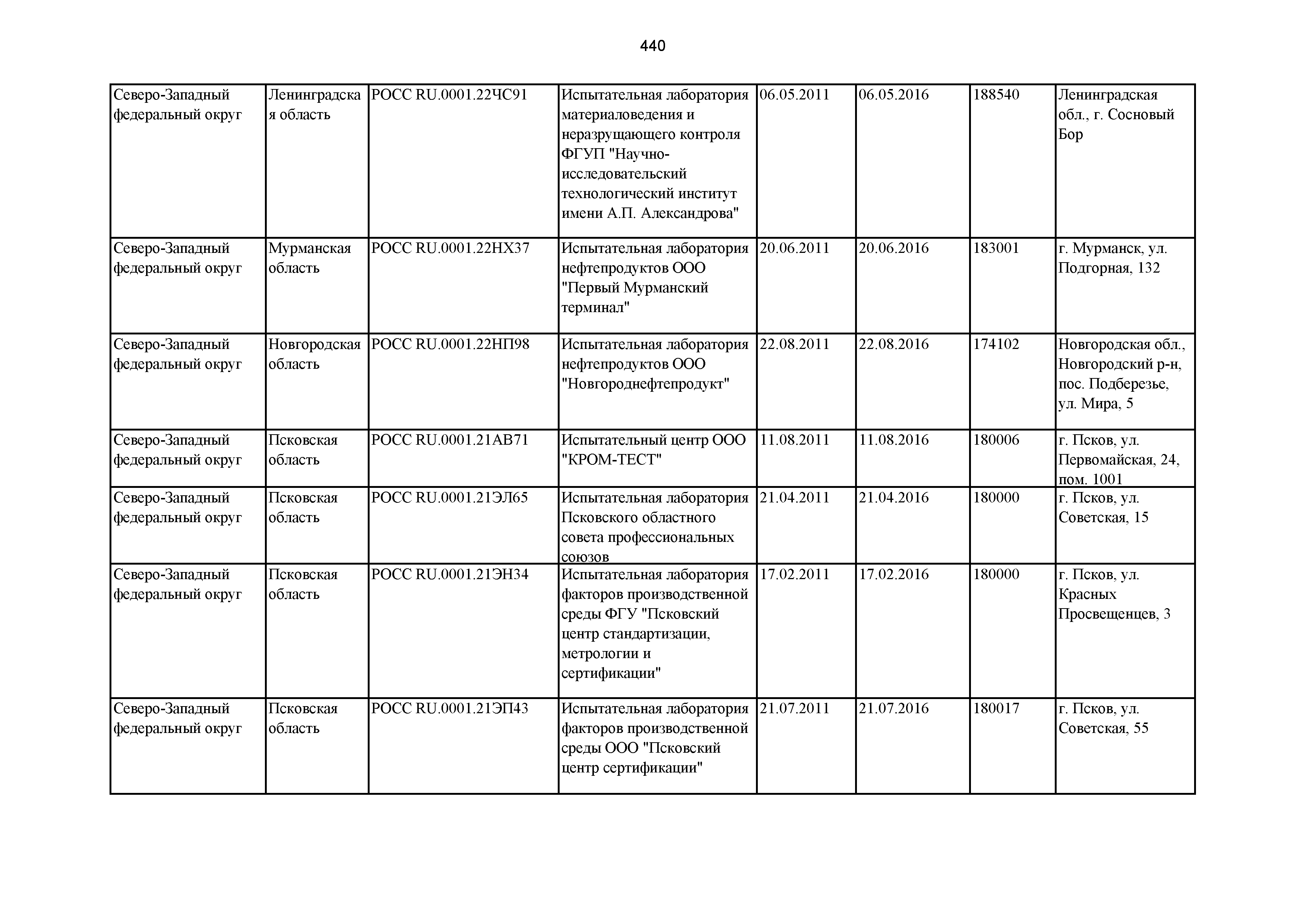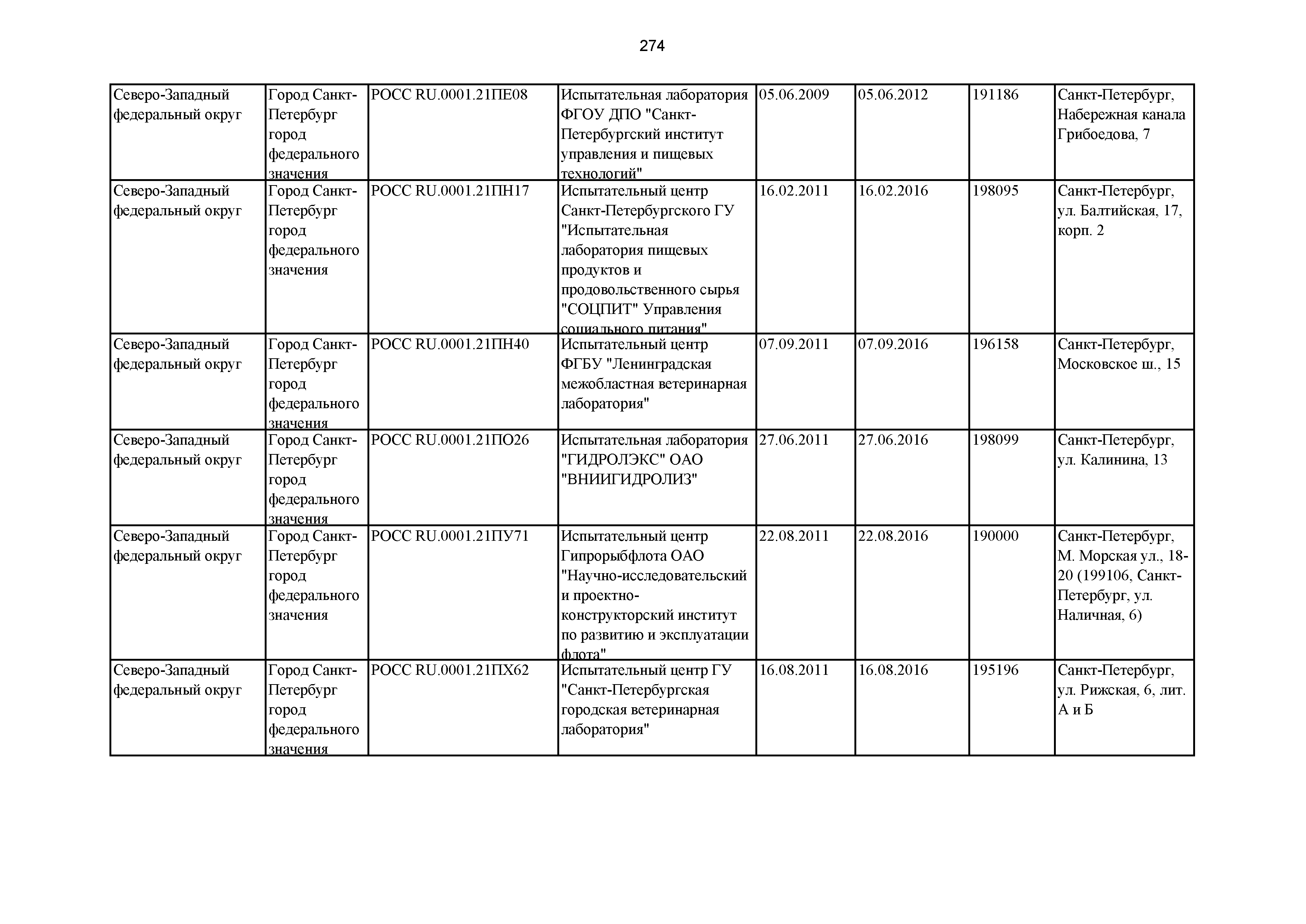 | Оглавление: | Приложение 1. План инспекционного контроля деятельности аккредитованных испытательных лабораторий (центров) и метрологической службы на 2012 год Приложение 2. План инспекционного контроля деятельности аккредитованных Органов по сертификации на 2012 год Приложение 3. План инспекционного контроля деятельности аналитических лабораторий (центров) на 2012 год Приложение 4. План инспекционного контроля в области обеспечения пожарной безопасности на 2012 год Приложение 5. План инспекционного контроля в области связи на 2012 год Приложение 6. План инспекционного контроля в области железнодорожного транспорта на 2012 год |