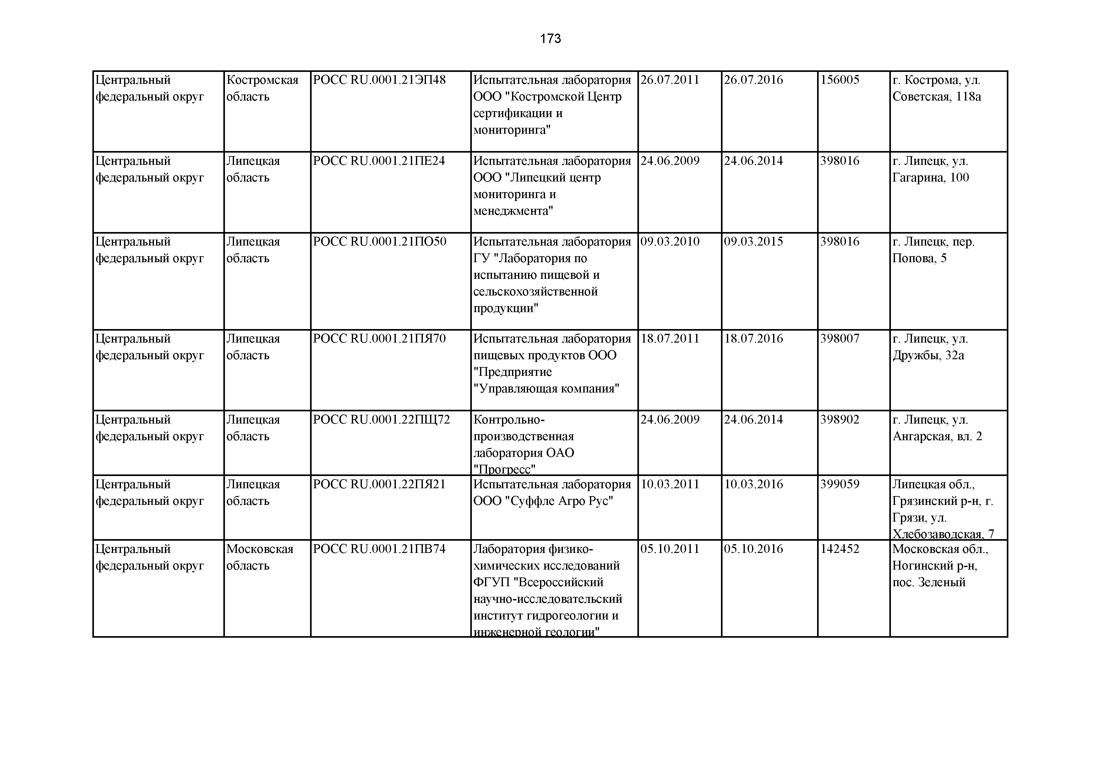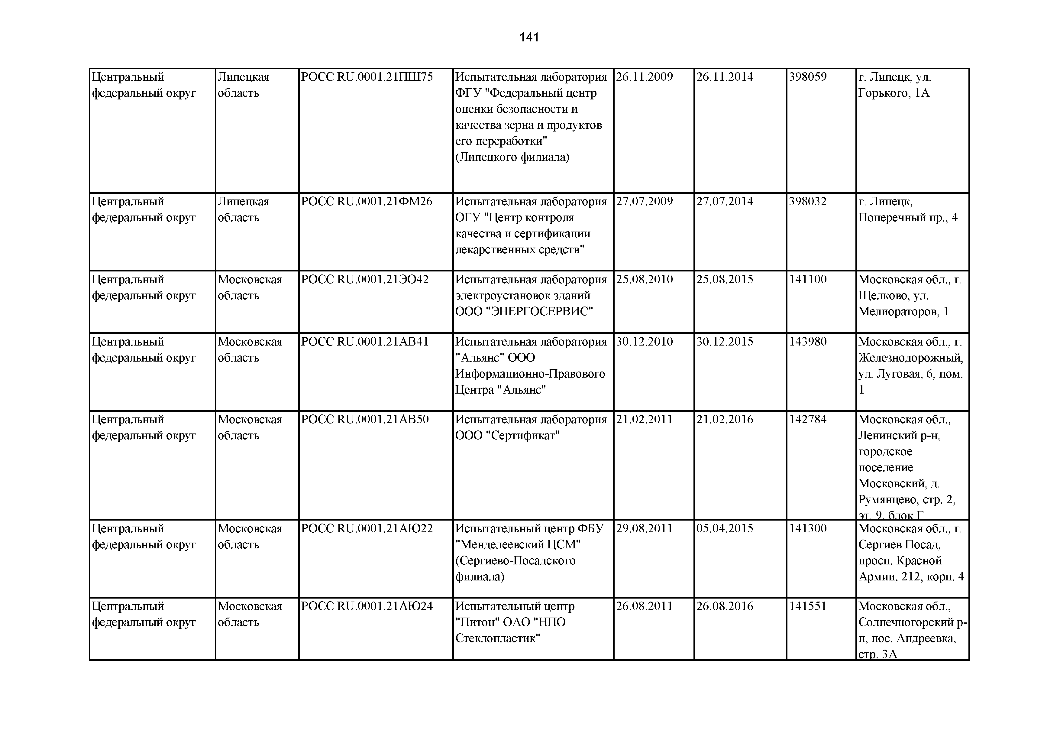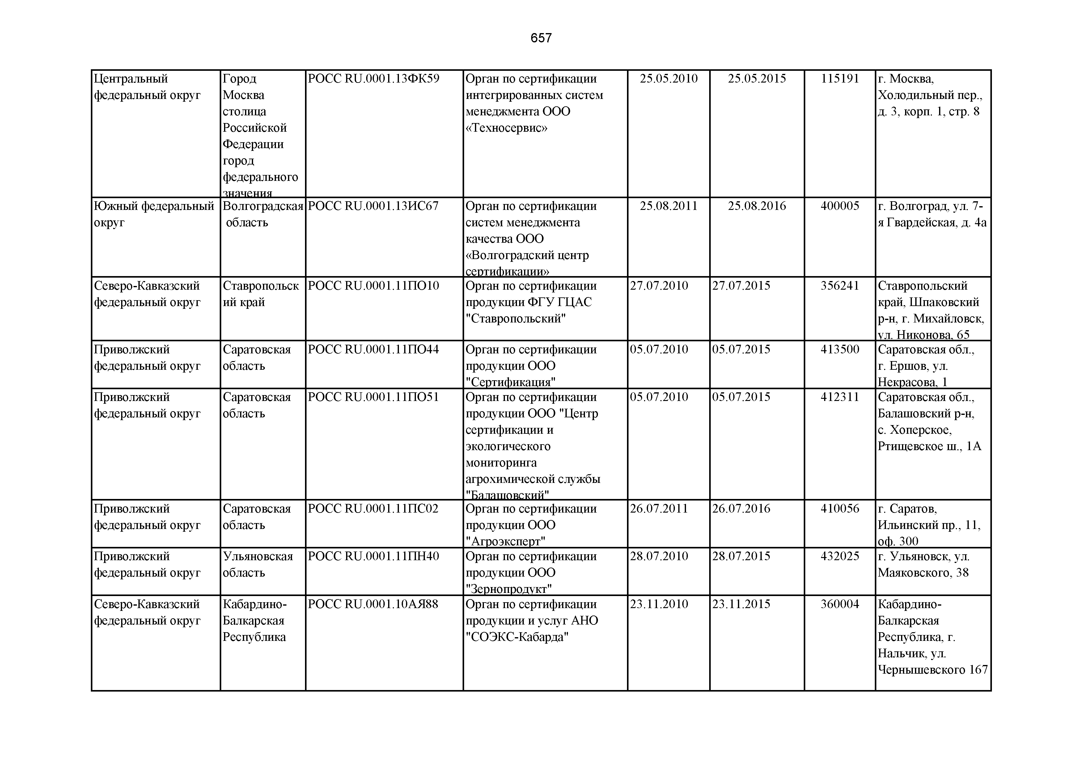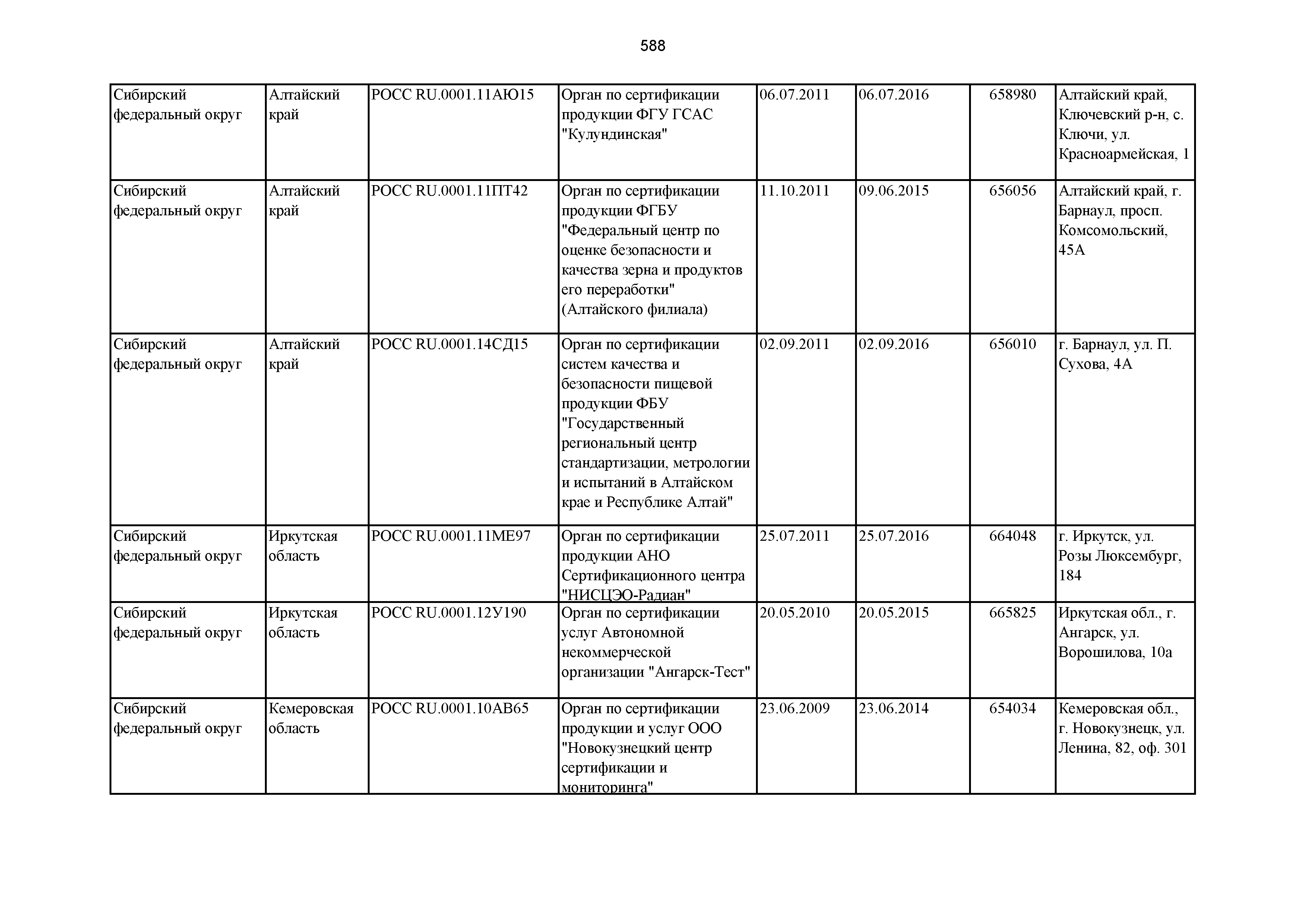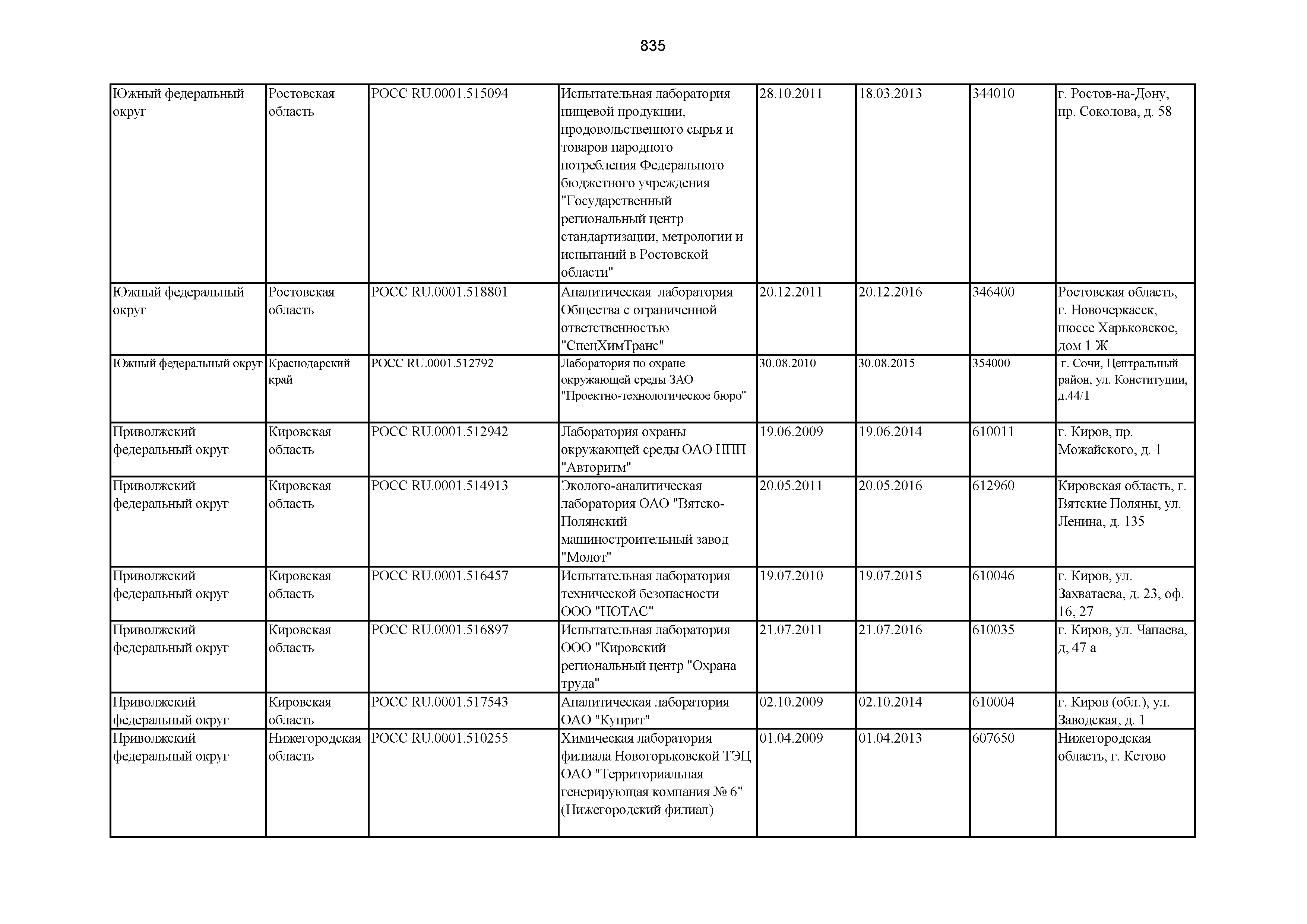 | Оглавление: | Приложение 1. План инспекционного контроля деятельности аккредитованных испытательных лабораторий (центров) и метрологической службы на 2012 год Приложение 2. План инспекционного контроля деятельности аккредитованных Органов по сертификации на 2012 год Приложение 3. План инспекционного контроля деятельности аналитических лабораторий (центров) на 2012 год Приложение 4. План инспекционного контроля в области обеспечения пожарной безопасности на 2012 год Приложение 5. План инспекционного контроля в области связи на 2012 год Приложение 6. План инспекционного контроля в области железнодорожного транспорта на 2012 год |