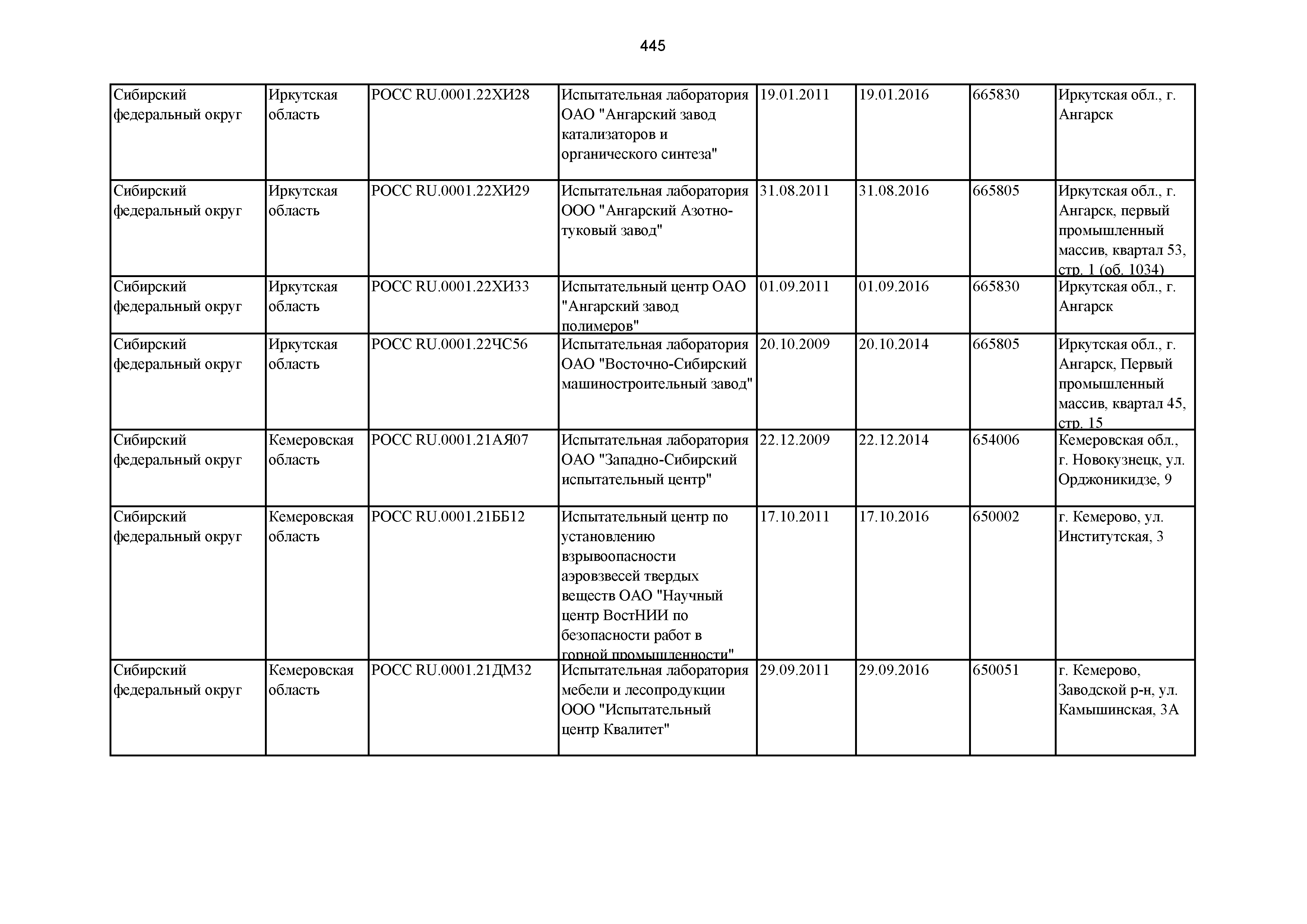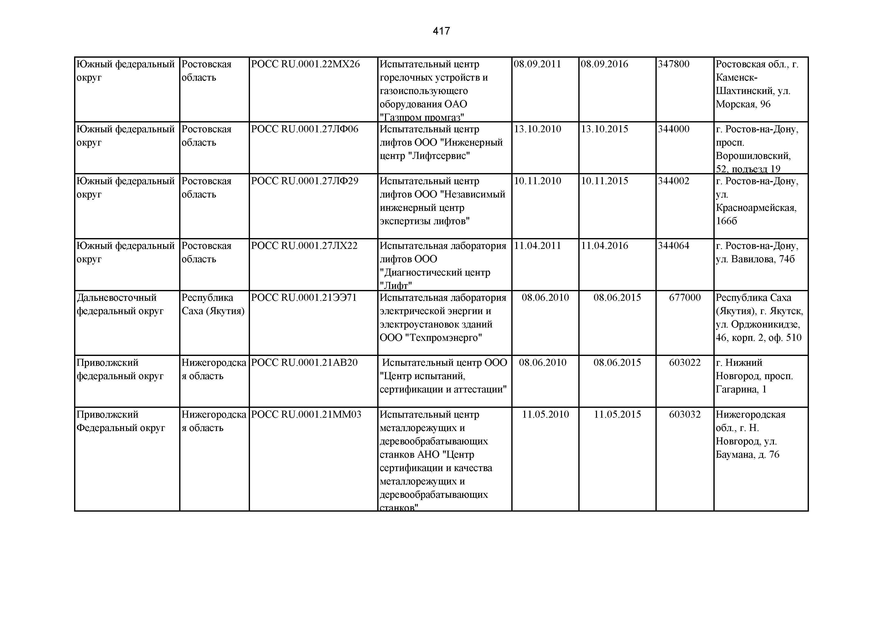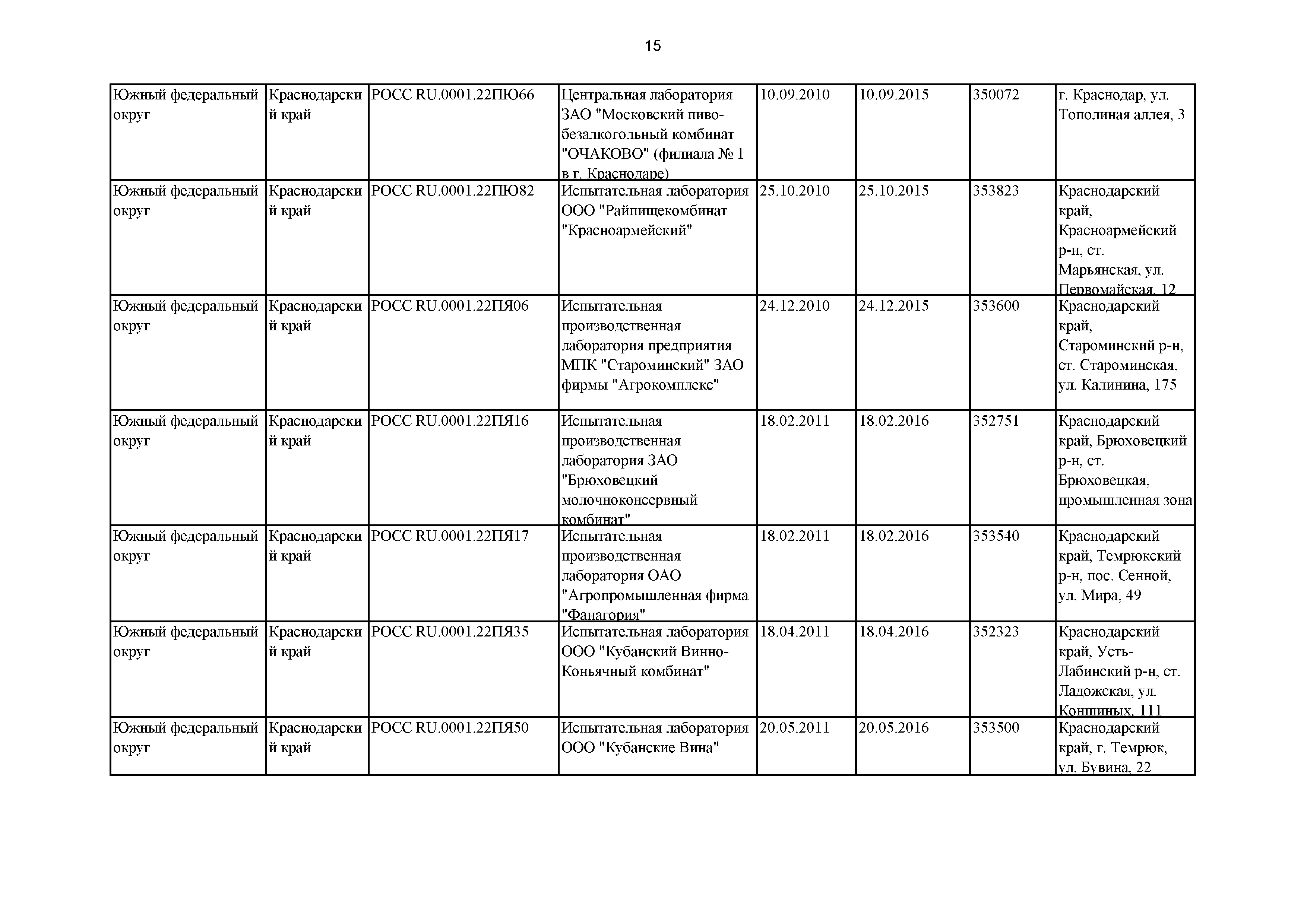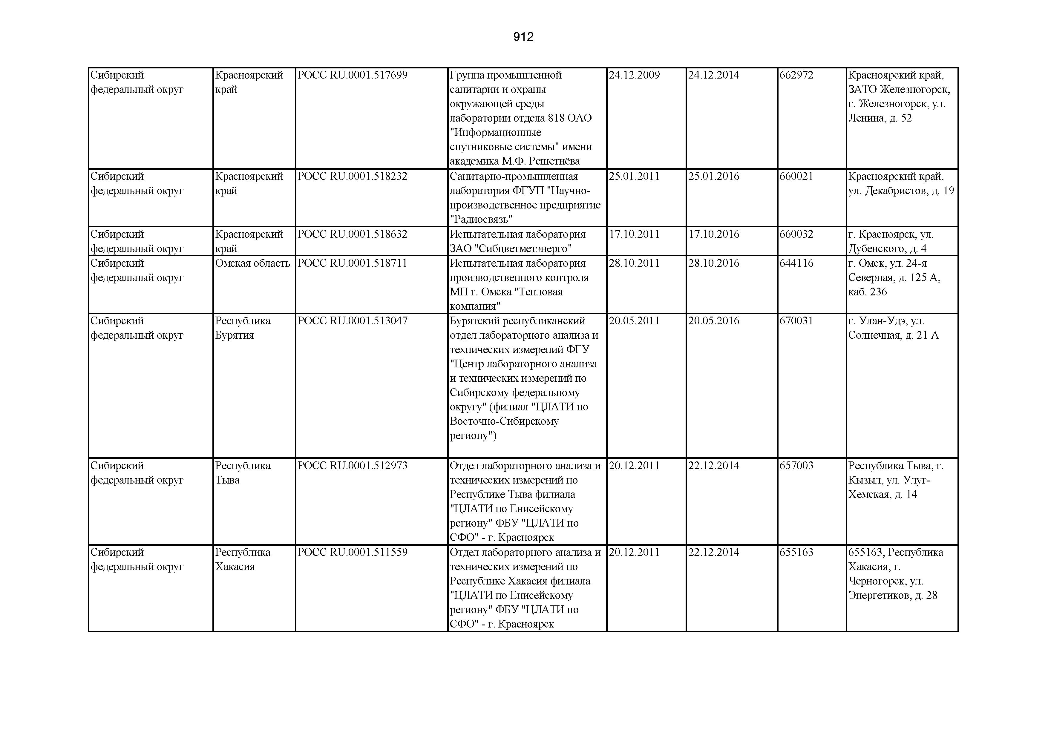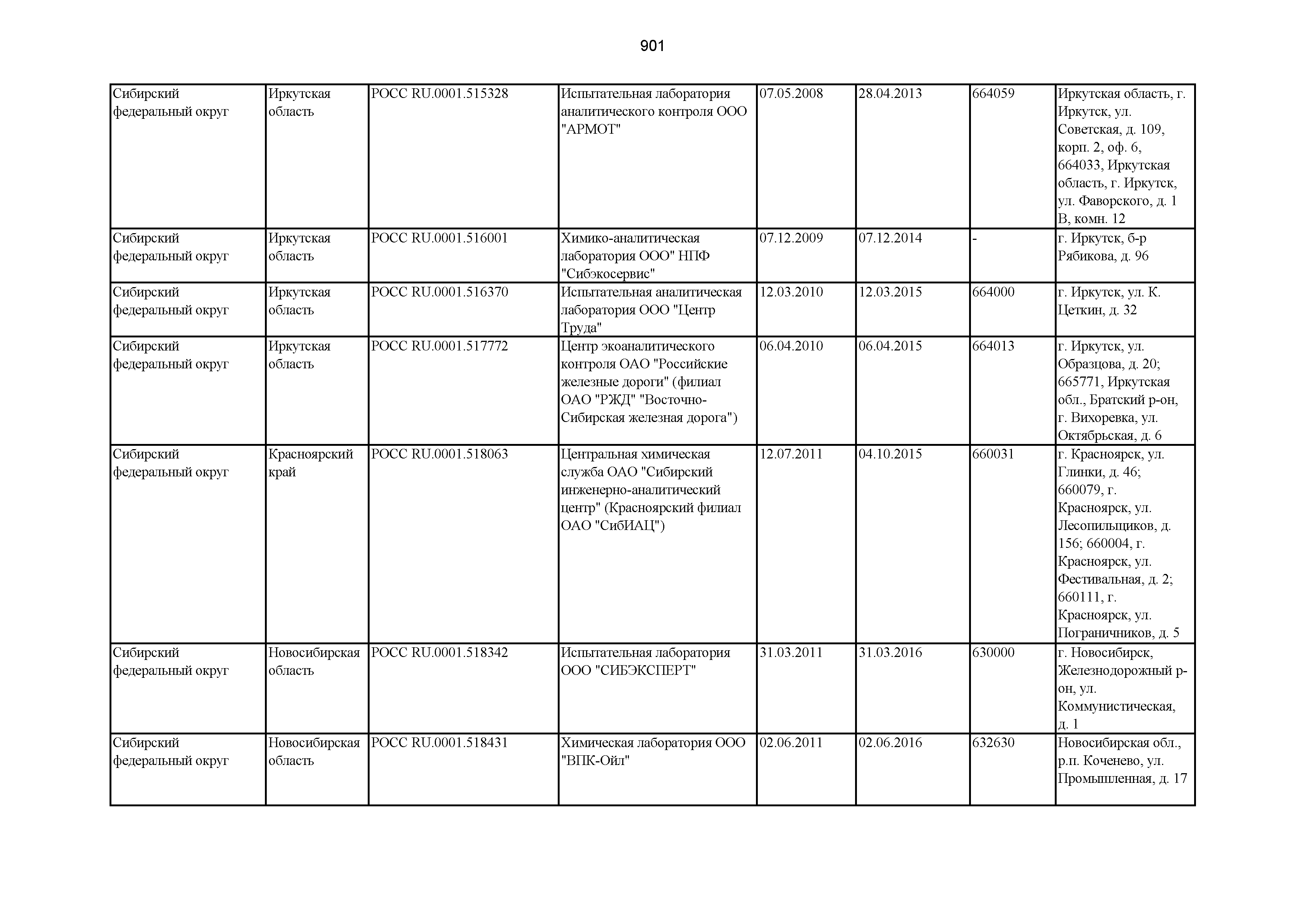 | Оглавление: | Приложение 1. План инспекционного контроля деятельности аккредитованных испытательных лабораторий (центров) и метрологической службы на 2012 год Приложение 2. План инспекционного контроля деятельности аккредитованных Органов по сертификации на 2012 год Приложение 3. План инспекционного контроля деятельности аналитических лабораторий (центров) на 2012 год Приложение 4. План инспекционного контроля в области обеспечения пожарной безопасности на 2012 год Приложение 5. План инспекционного контроля в области связи на 2012 год Приложение 6. План инспекционного контроля в области железнодорожного транспорта на 2012 год |