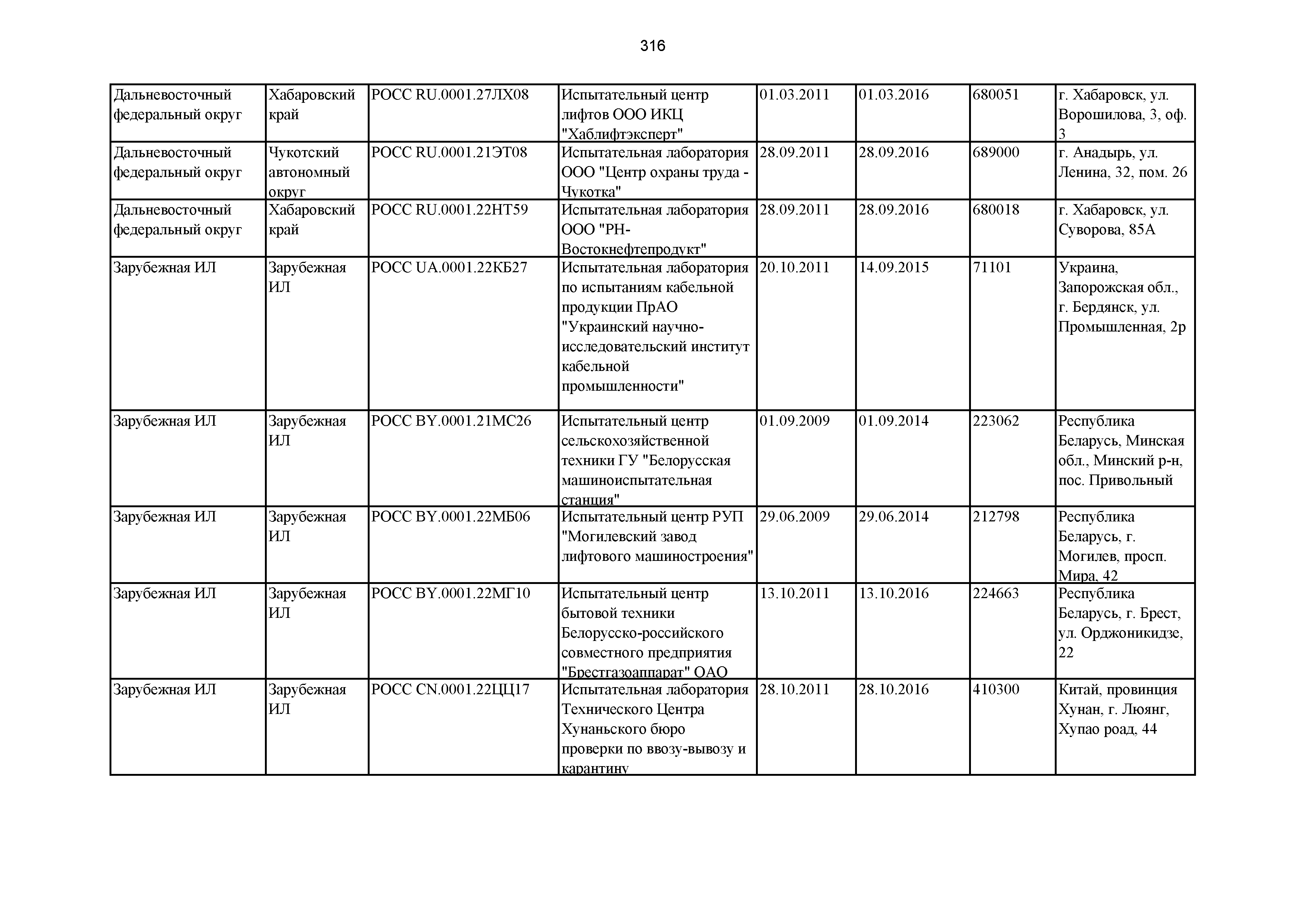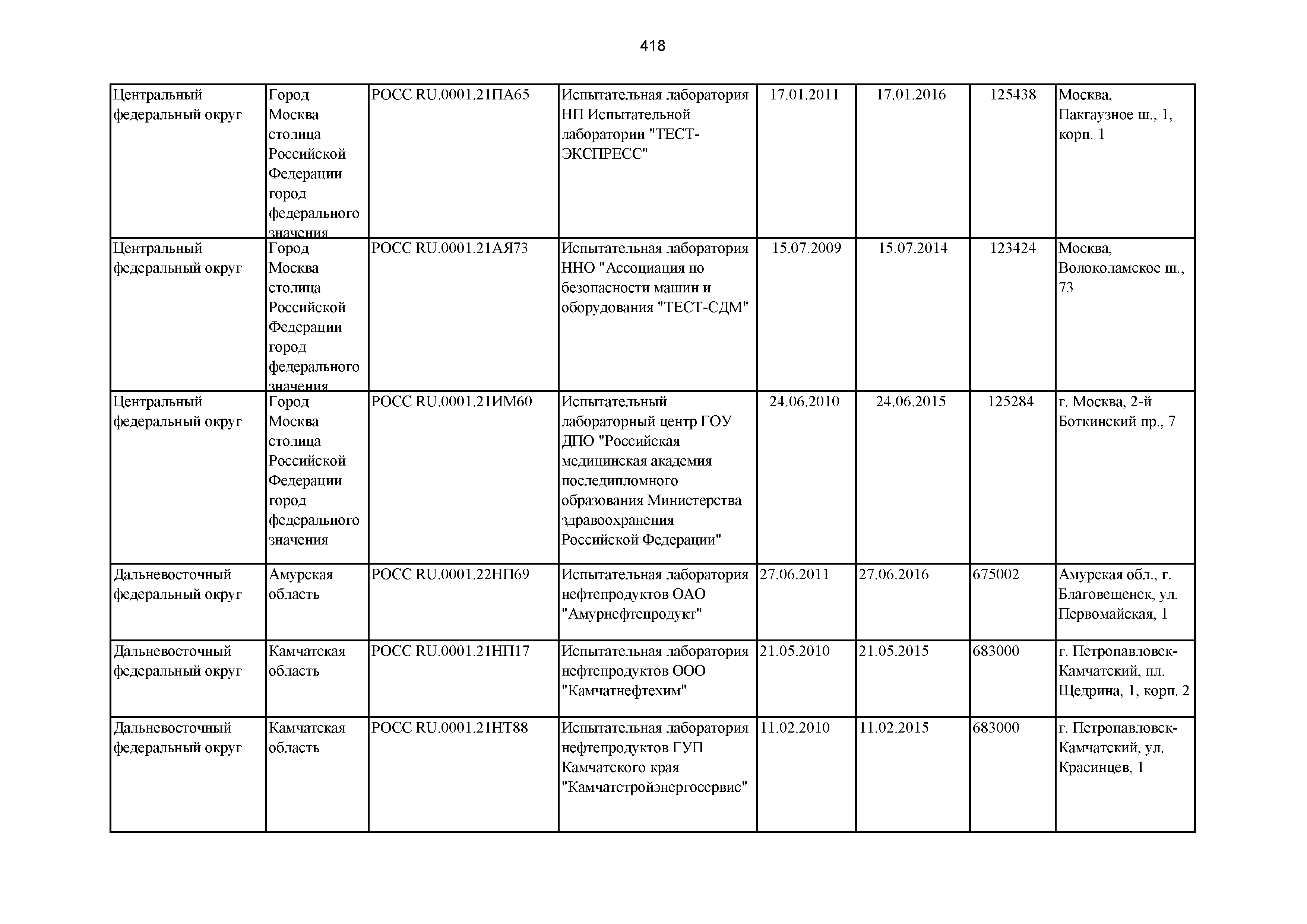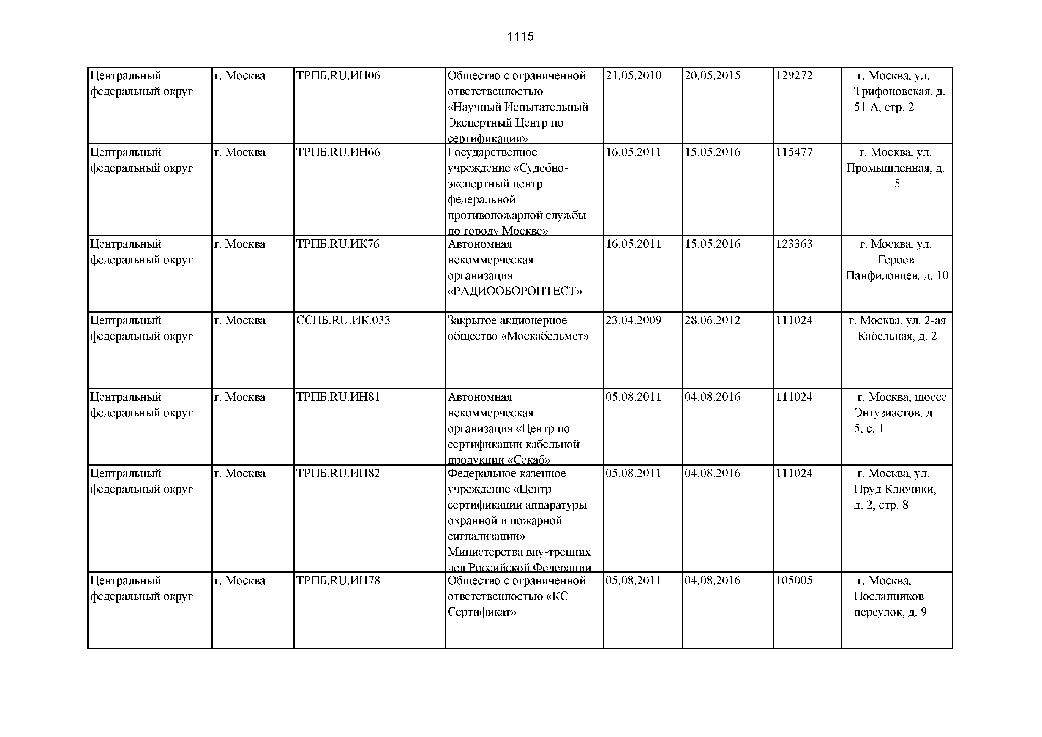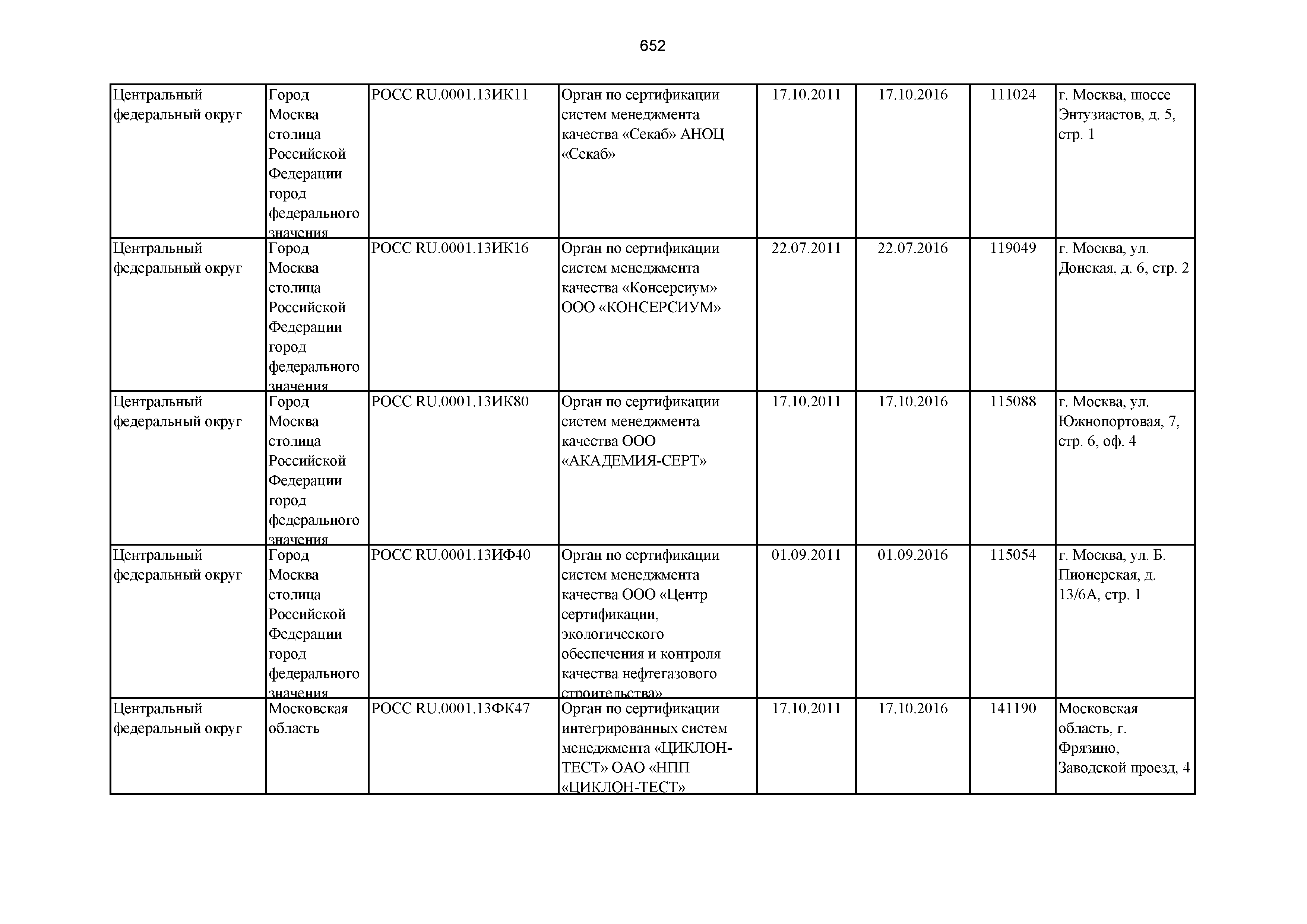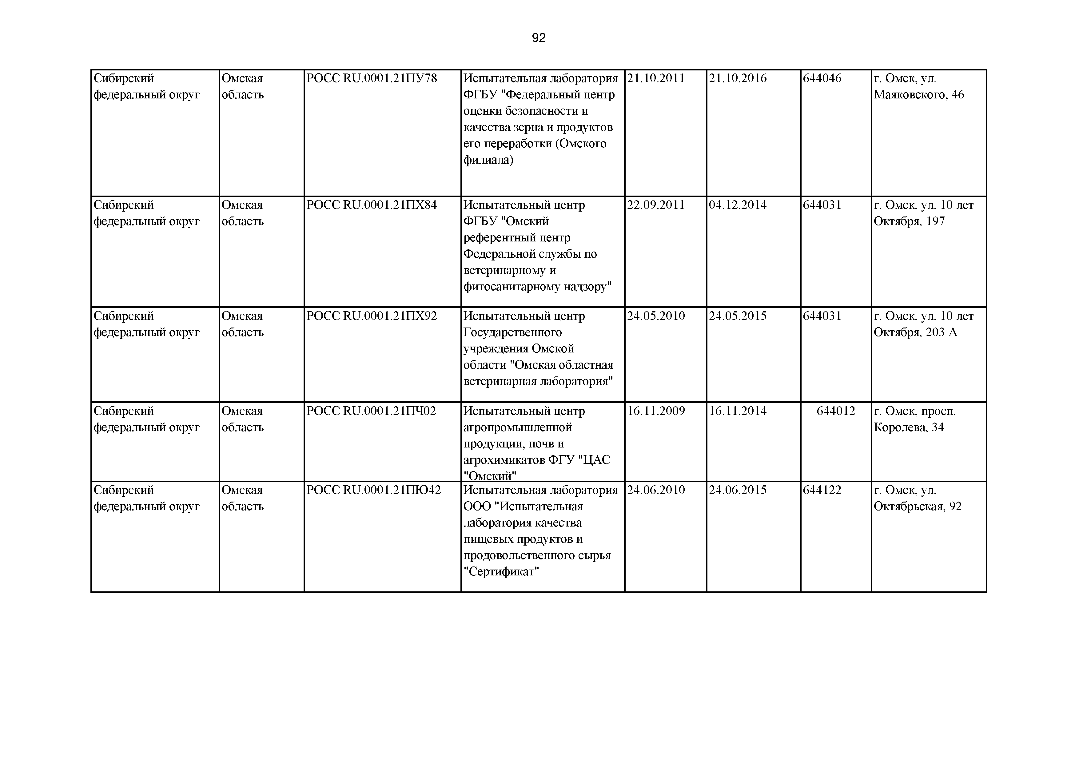 | Оглавление: | Приложение 1. План инспекционного контроля деятельности аккредитованных испытательных лабораторий (центров) и метрологической службы на 2012 год Приложение 2. План инспекционного контроля деятельности аккредитованных Органов по сертификации на 2012 год Приложение 3. План инспекционного контроля деятельности аналитических лабораторий (центров) на 2012 год Приложение 4. План инспекционного контроля в области обеспечения пожарной безопасности на 2012 год Приложение 5. План инспекционного контроля в области связи на 2012 год Приложение 6. План инспекционного контроля в области железнодорожного транспорта на 2012 год |