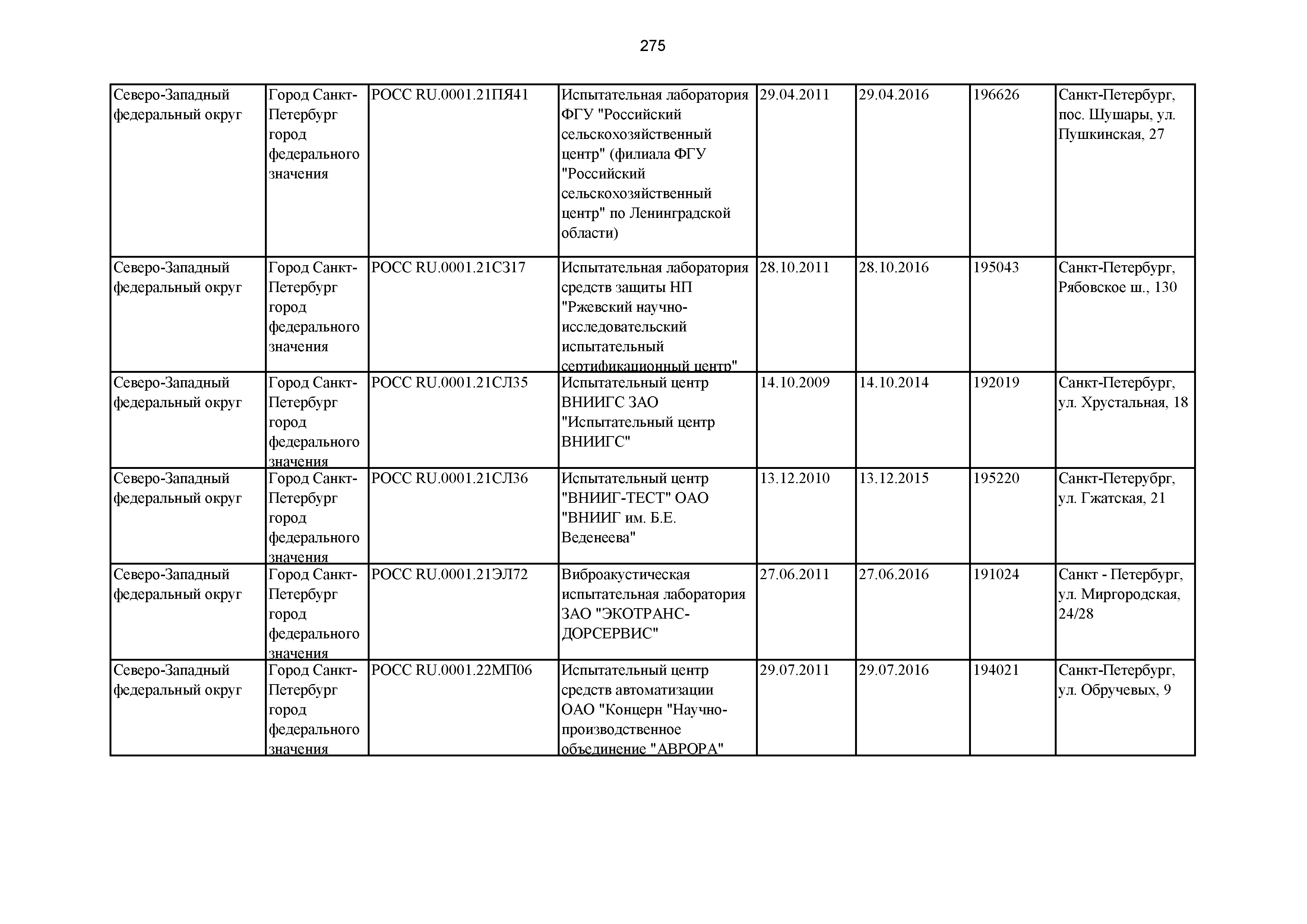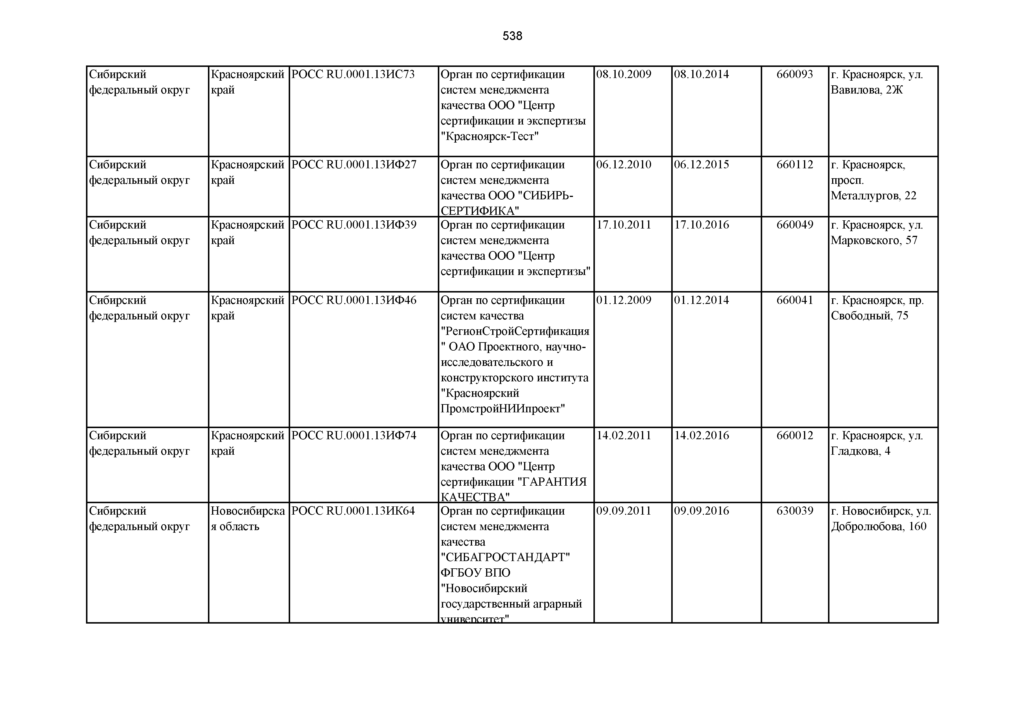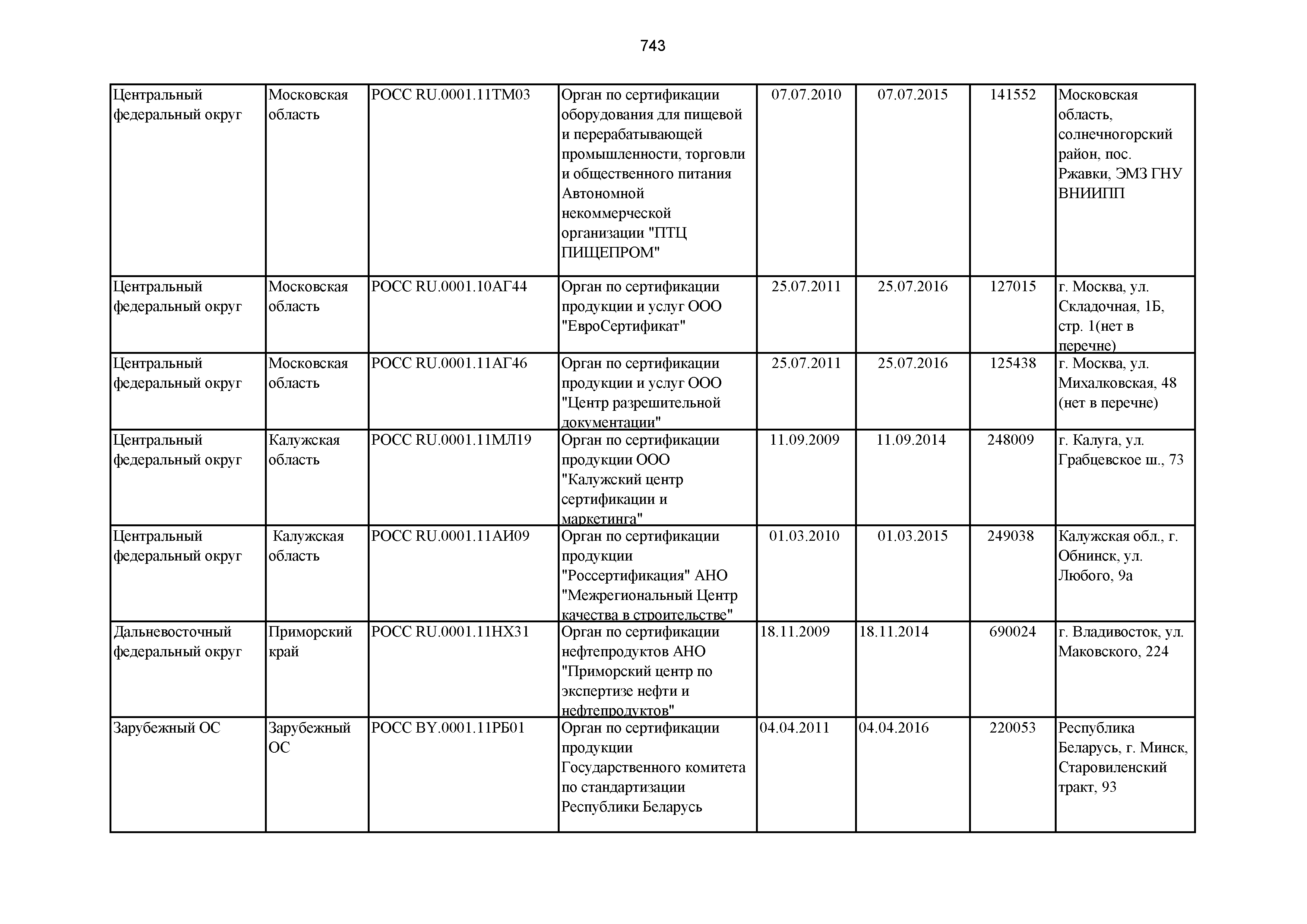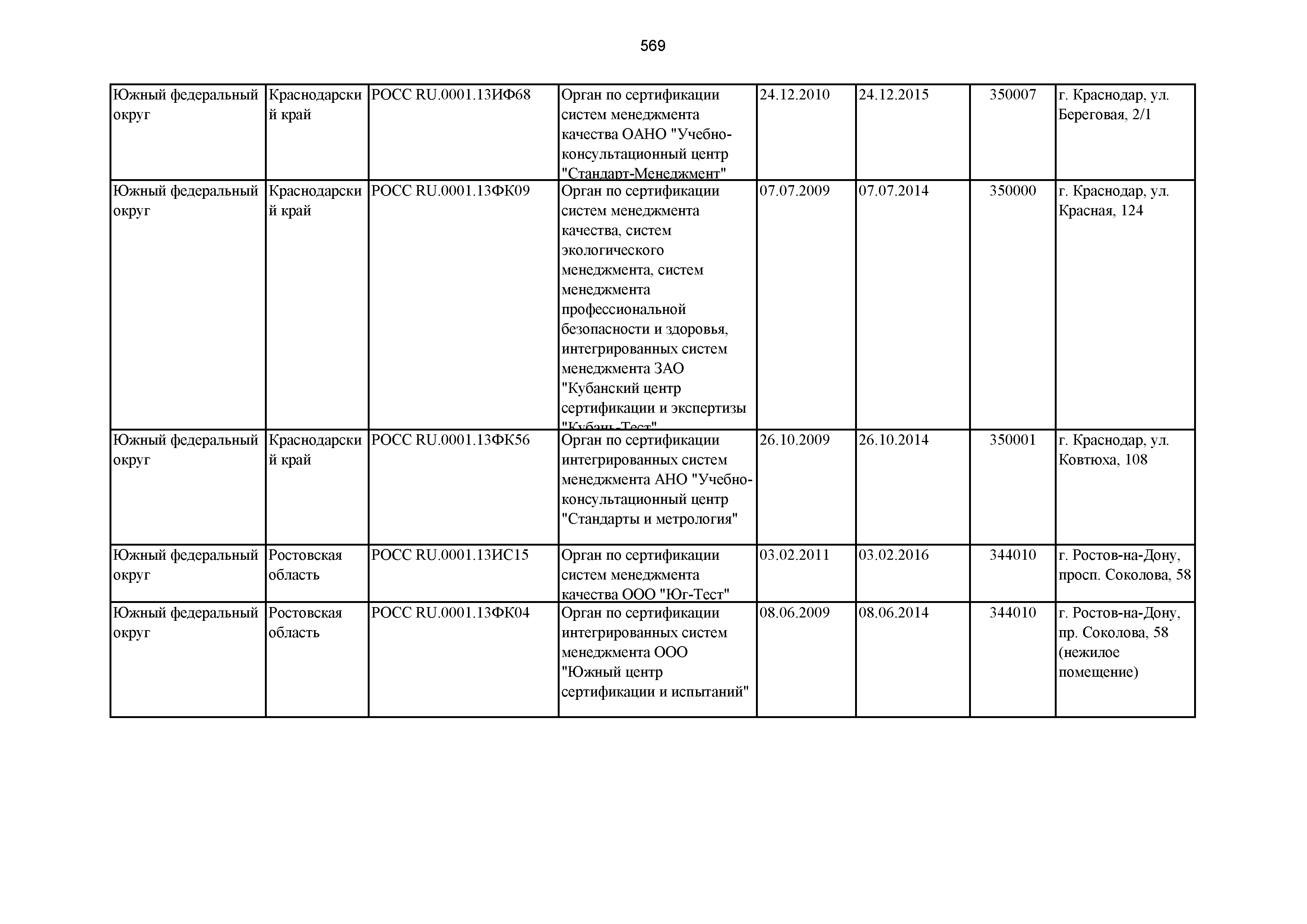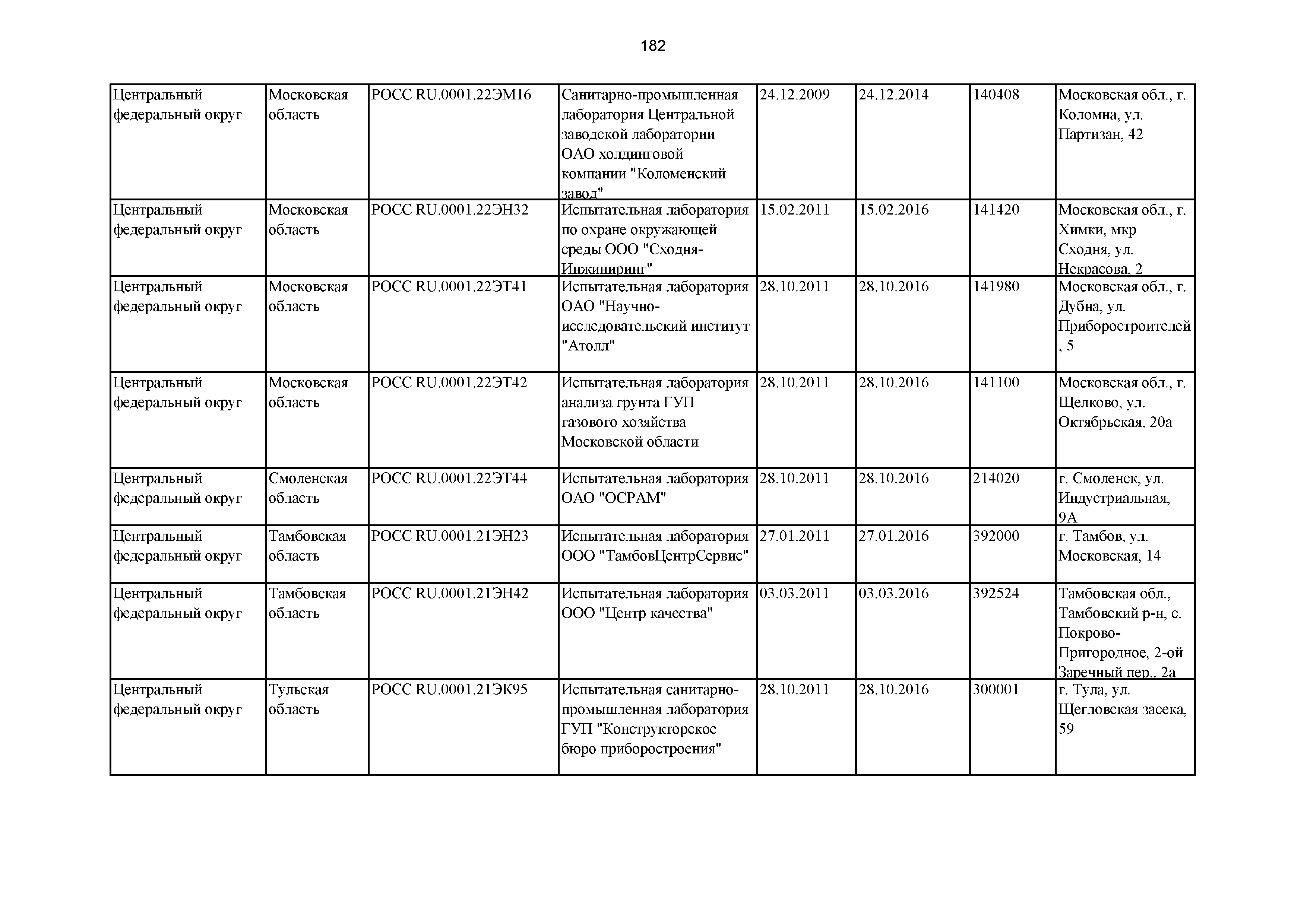 | Оглавление: | Приложение 1. План инспекционного контроля деятельности аккредитованных испытательных лабораторий (центров) и метрологической службы на 2012 год Приложение 2. План инспекционного контроля деятельности аккредитованных Органов по сертификации на 2012 год Приложение 3. План инспекционного контроля деятельности аналитических лабораторий (центров) на 2012 год Приложение 4. План инспекционного контроля в области обеспечения пожарной безопасности на 2012 год Приложение 5. План инспекционного контроля в области связи на 2012 год Приложение 6. План инспекционного контроля в области железнодорожного транспорта на 2012 год |