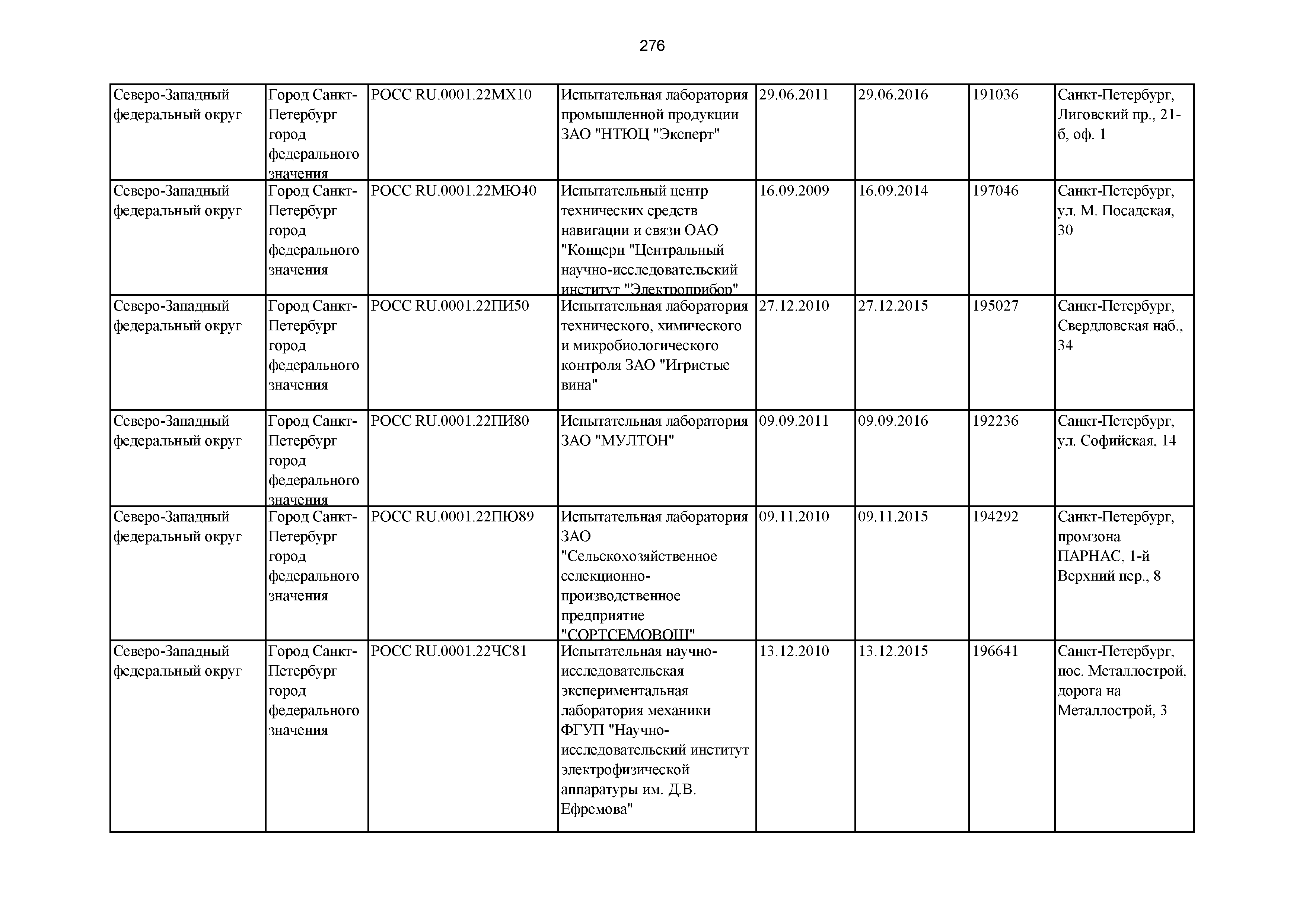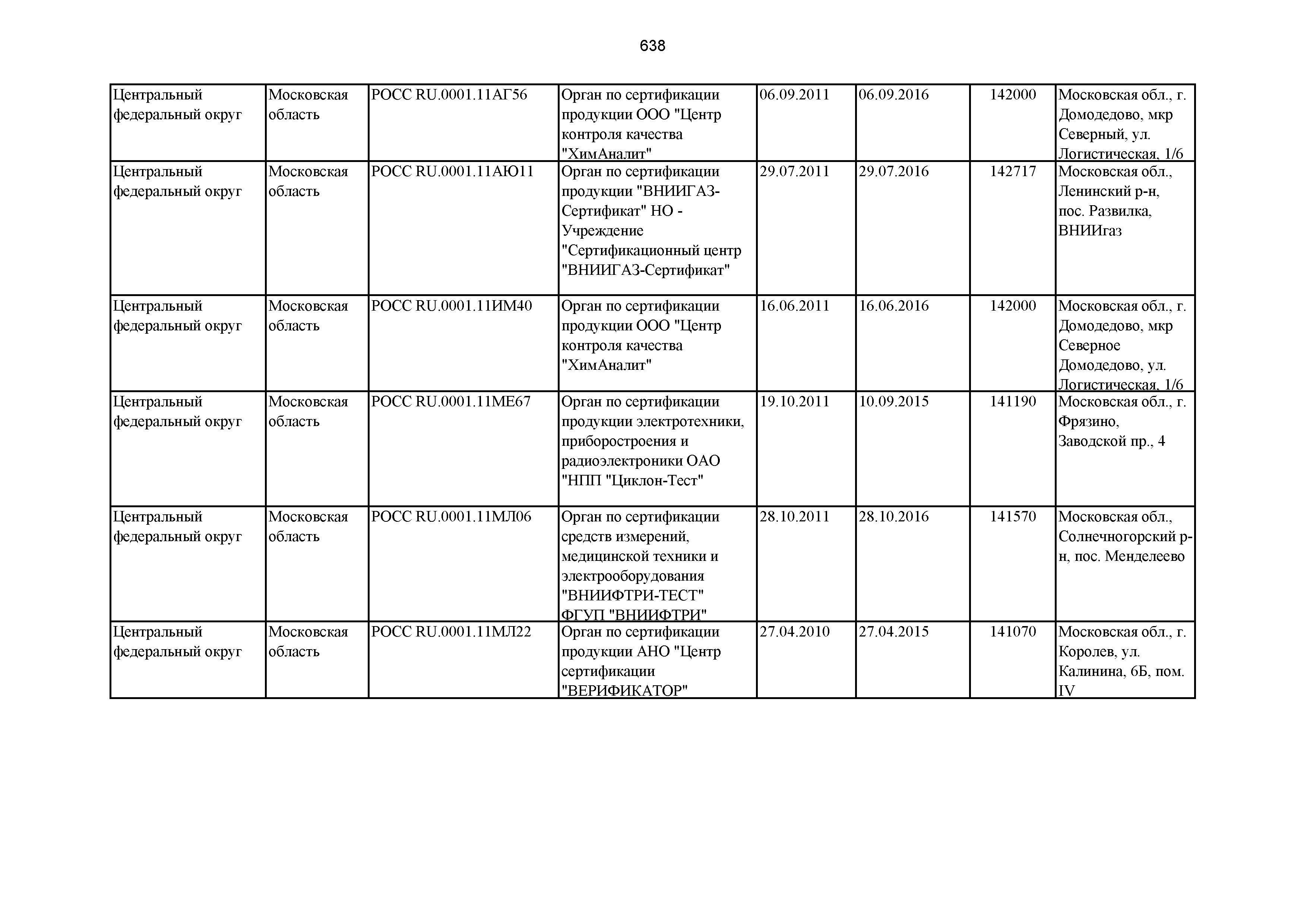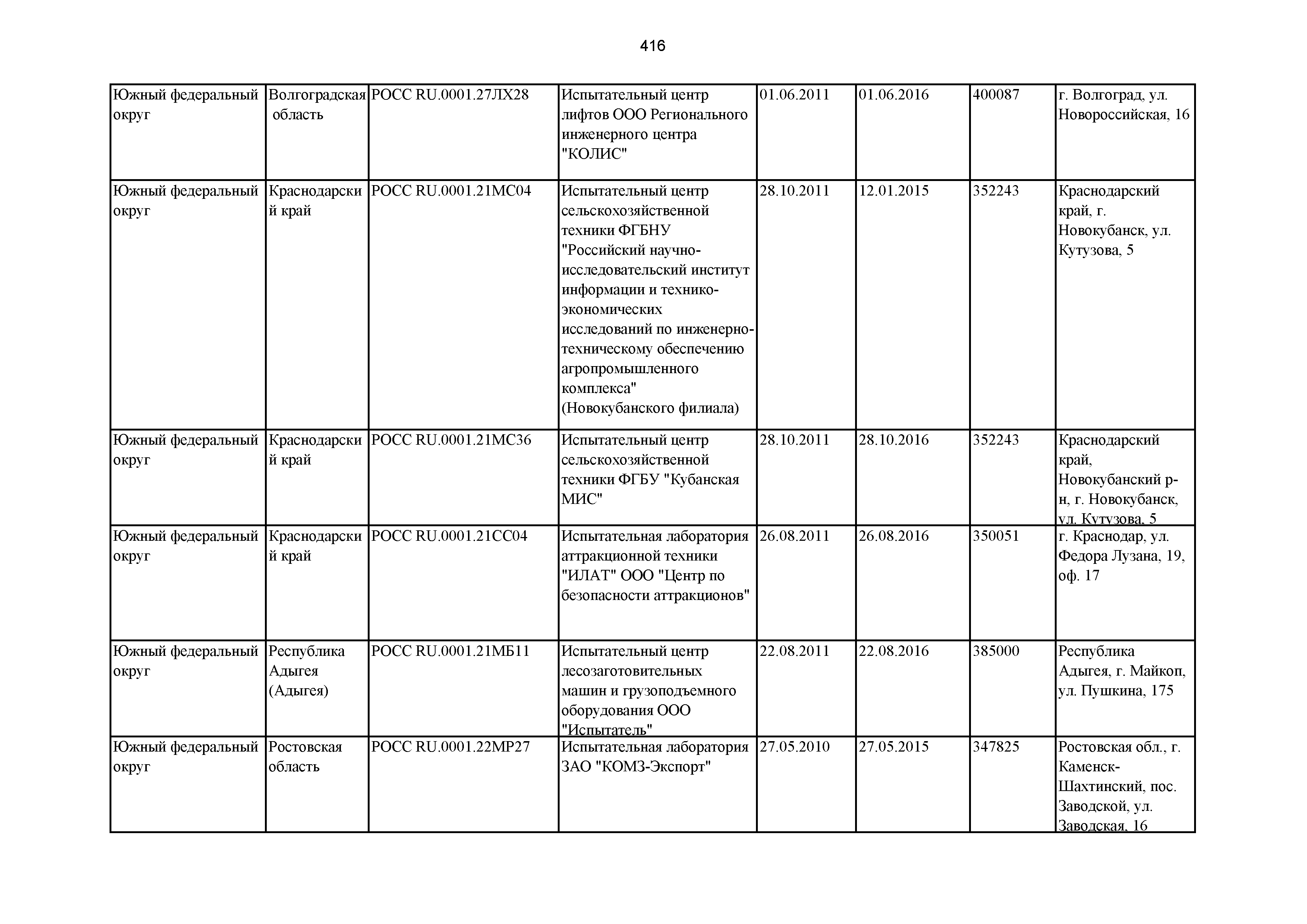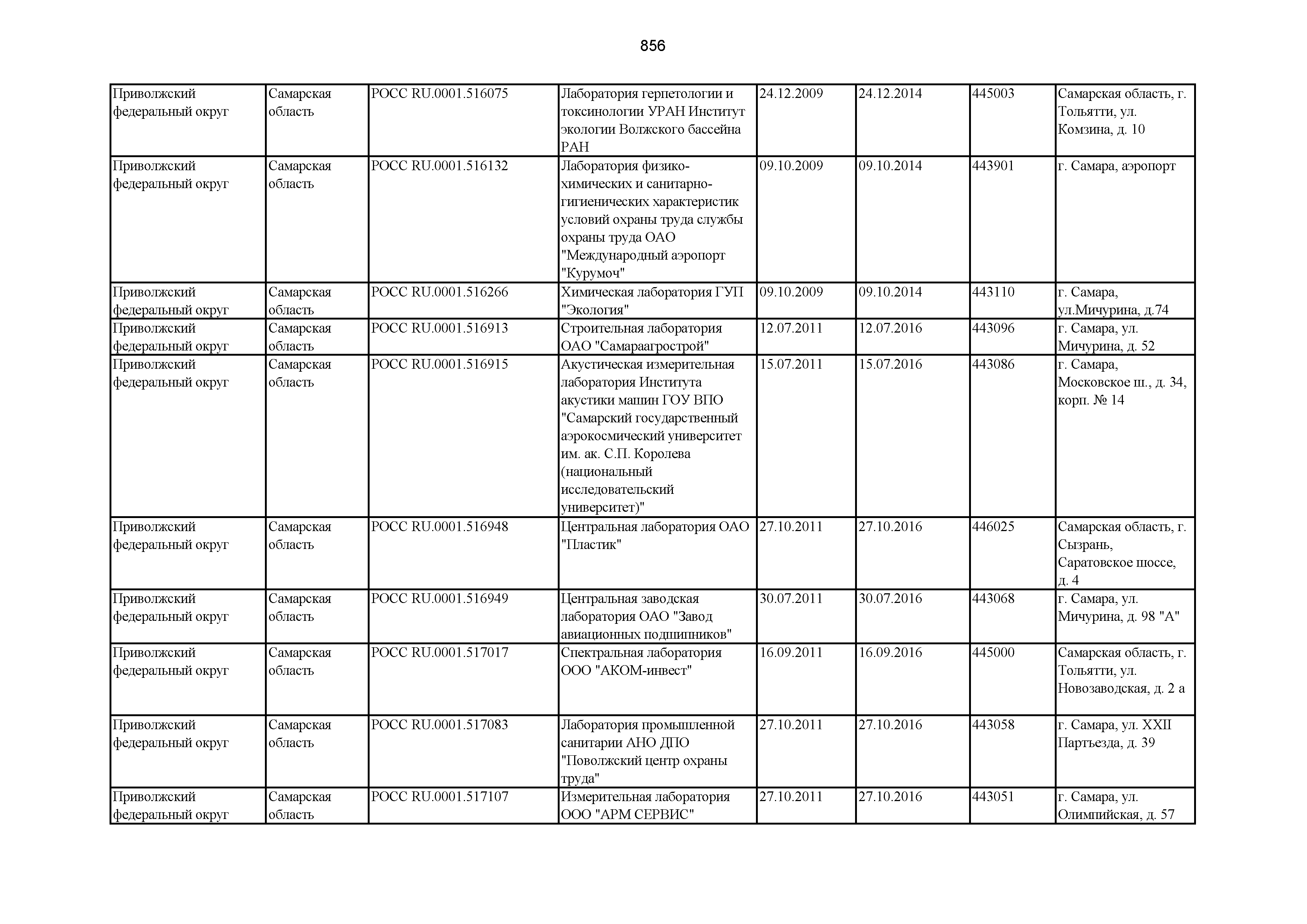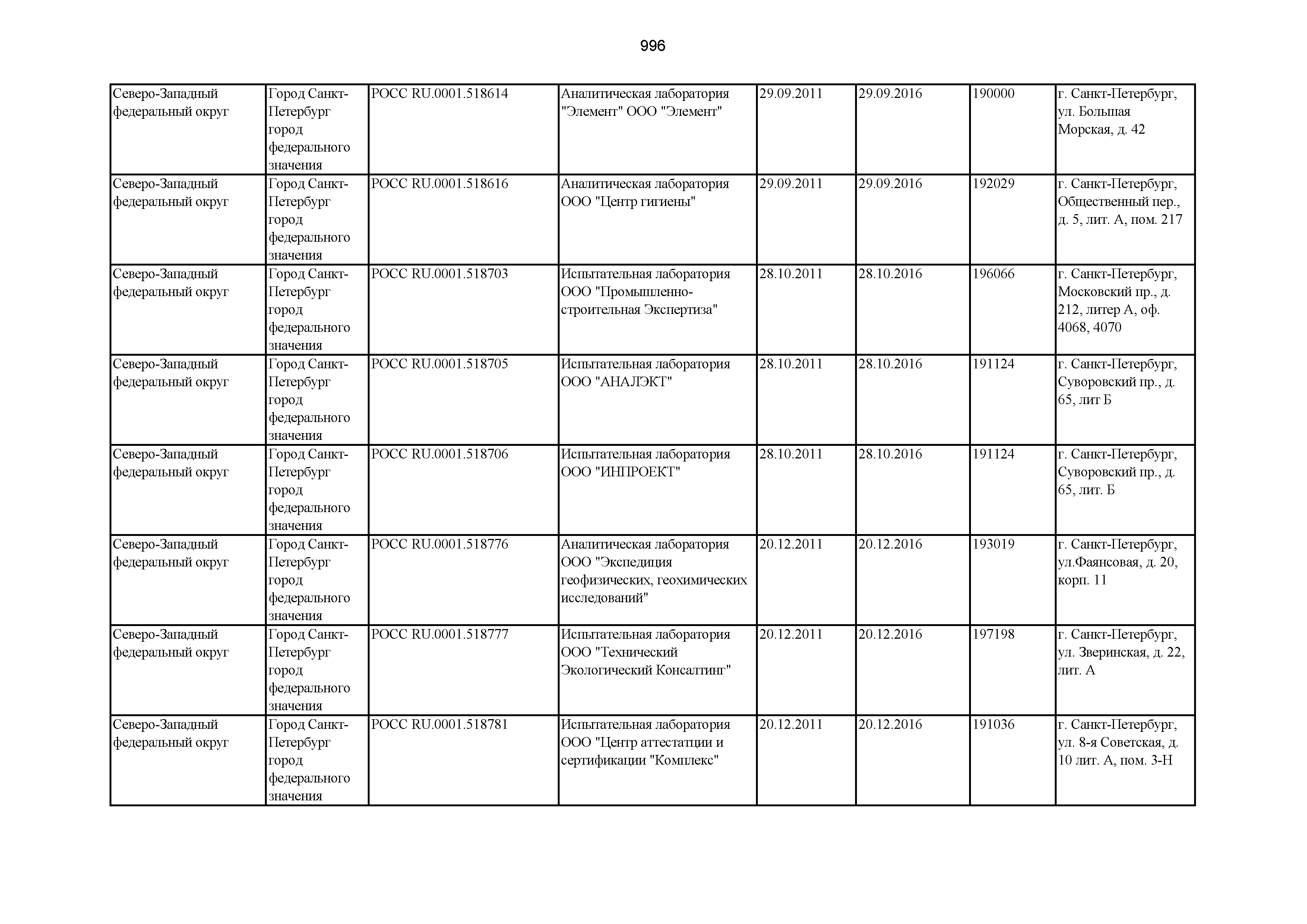| Оглавление: | Приложение 1. План инспекционного контроля деятельности аккредитованных испытательных лабораторий (центров) и метрологической службы на 2012 год Приложение 2. План инспекционного контроля деятельности аккредитованных Органов по сертификации на 2012 год Приложение 3. План инспекционного контроля деятельности аналитических лабораторий (центров) на 2012 год Приложение 4. План инспекционного контроля в области обеспечения пожарной безопасности на 2012 год Приложение 5. План инспекционного контроля в области связи на 2012 год Приложение 6. План инспекционного контроля в области железнодорожного транспорта на 2012 год |