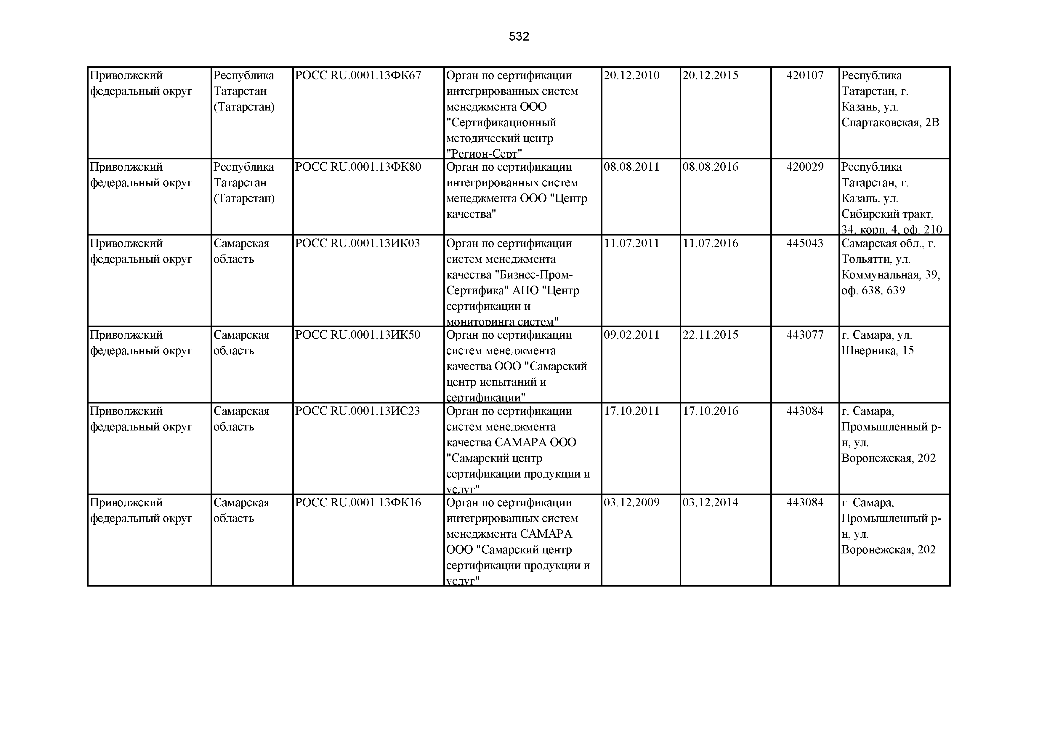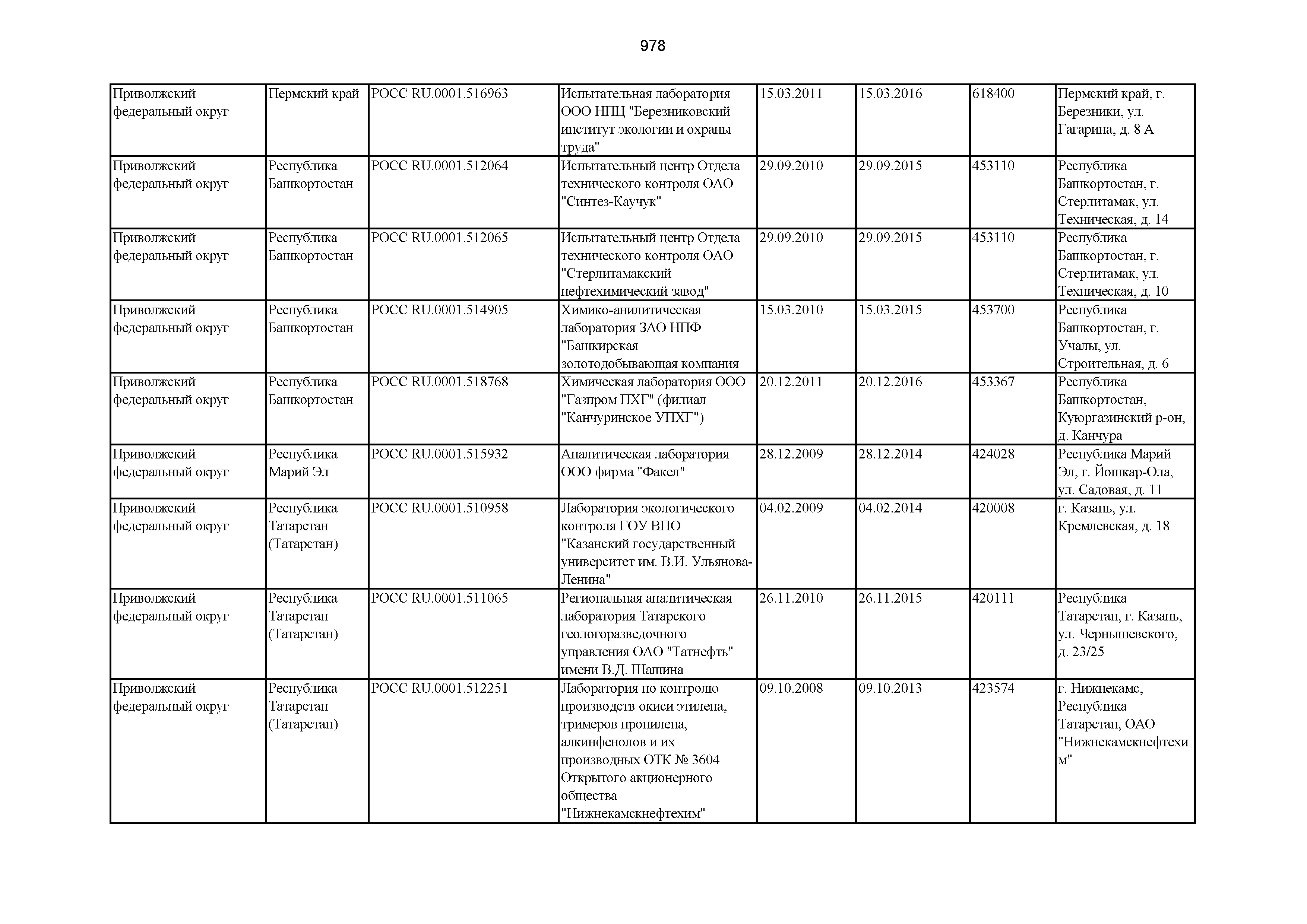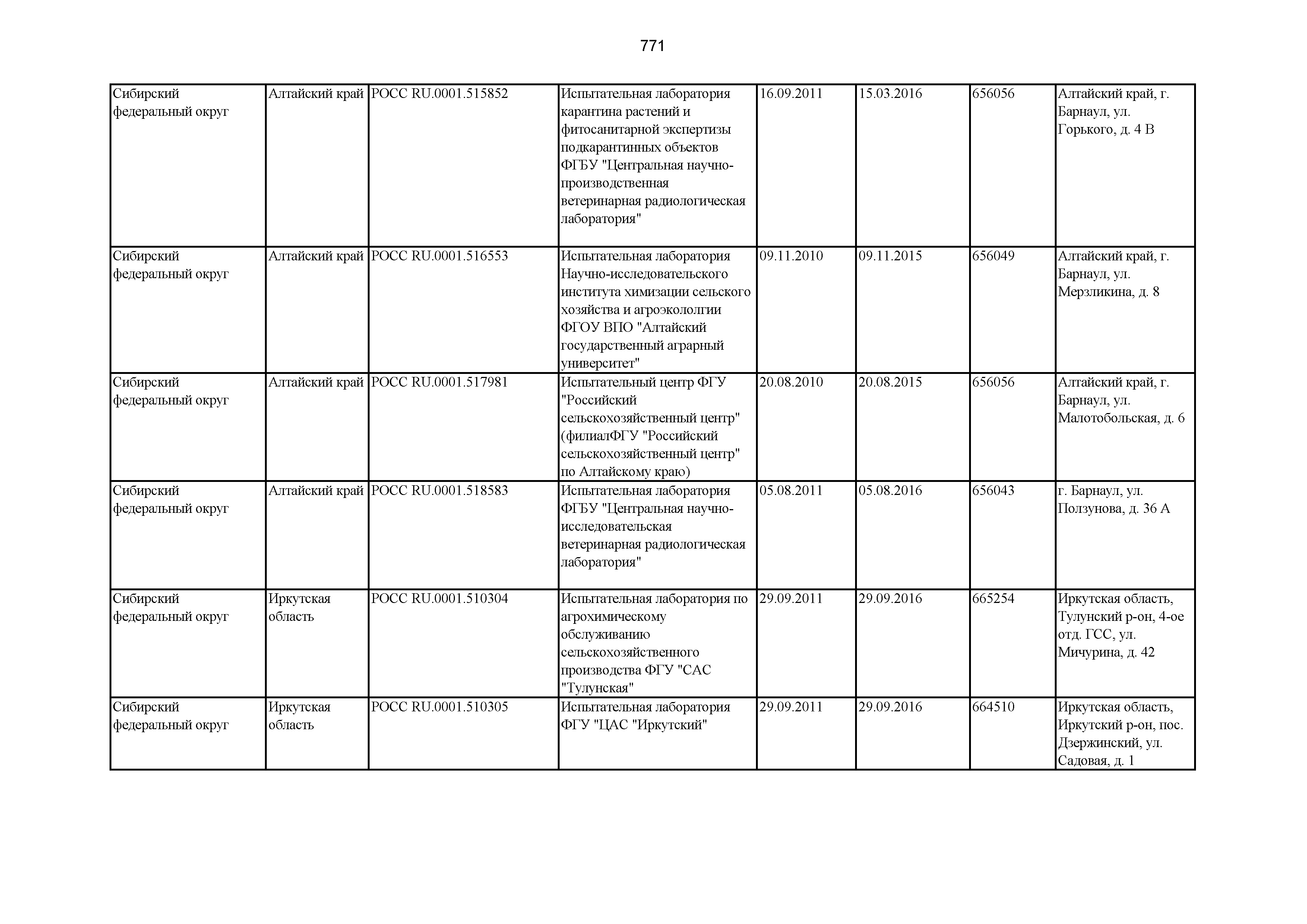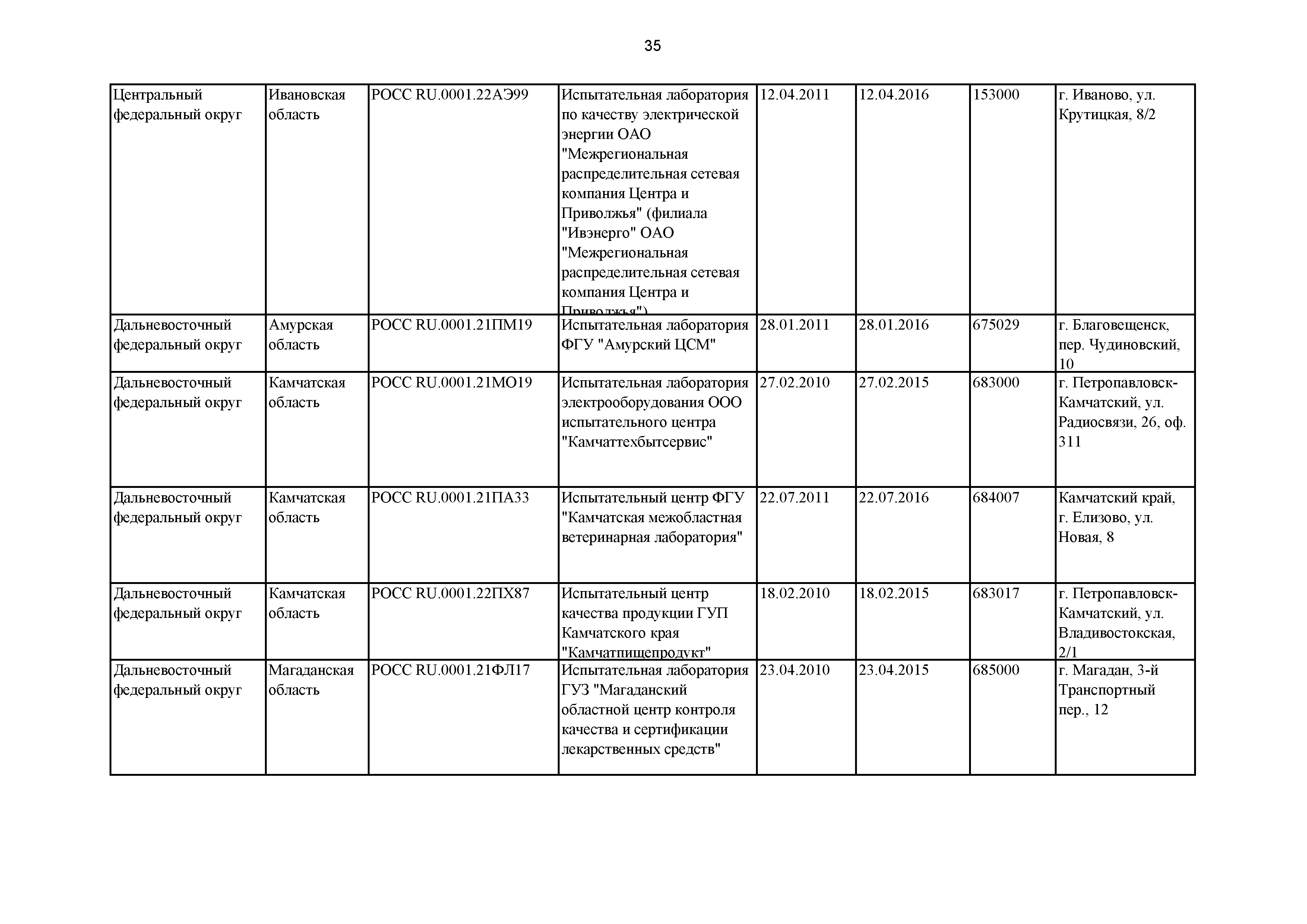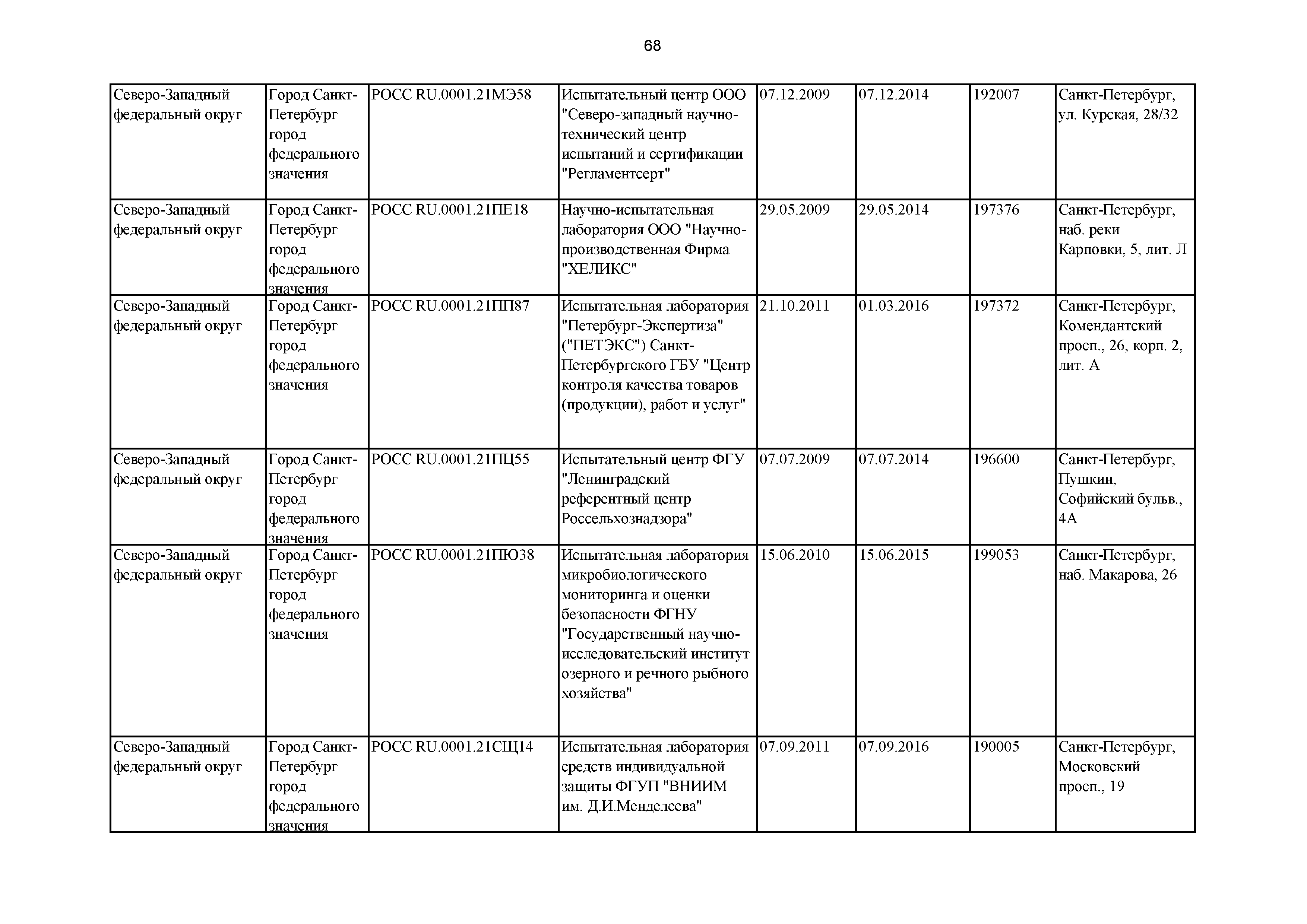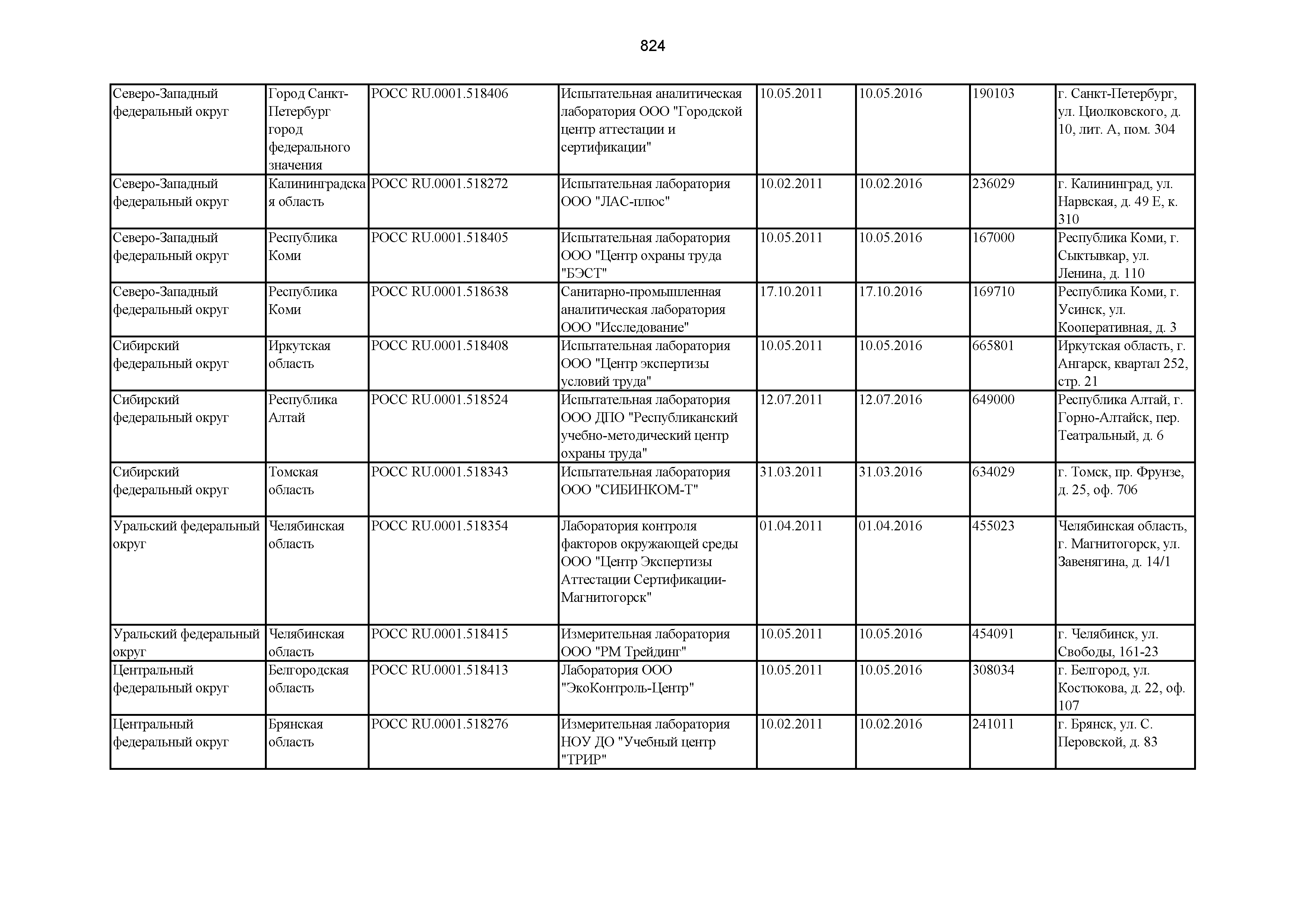 | Оглавление: | Приложение 1. План инспекционного контроля деятельности аккредитованных испытательных лабораторий (центров) и метрологической службы на 2012 год Приложение 2. План инспекционного контроля деятельности аккредитованных Органов по сертификации на 2012 год Приложение 3. План инспекционного контроля деятельности аналитических лабораторий (центров) на 2012 год Приложение 4. План инспекционного контроля в области обеспечения пожарной безопасности на 2012 год Приложение 5. План инспекционного контроля в области связи на 2012 год Приложение 6. План инспекционного контроля в области железнодорожного транспорта на 2012 год |