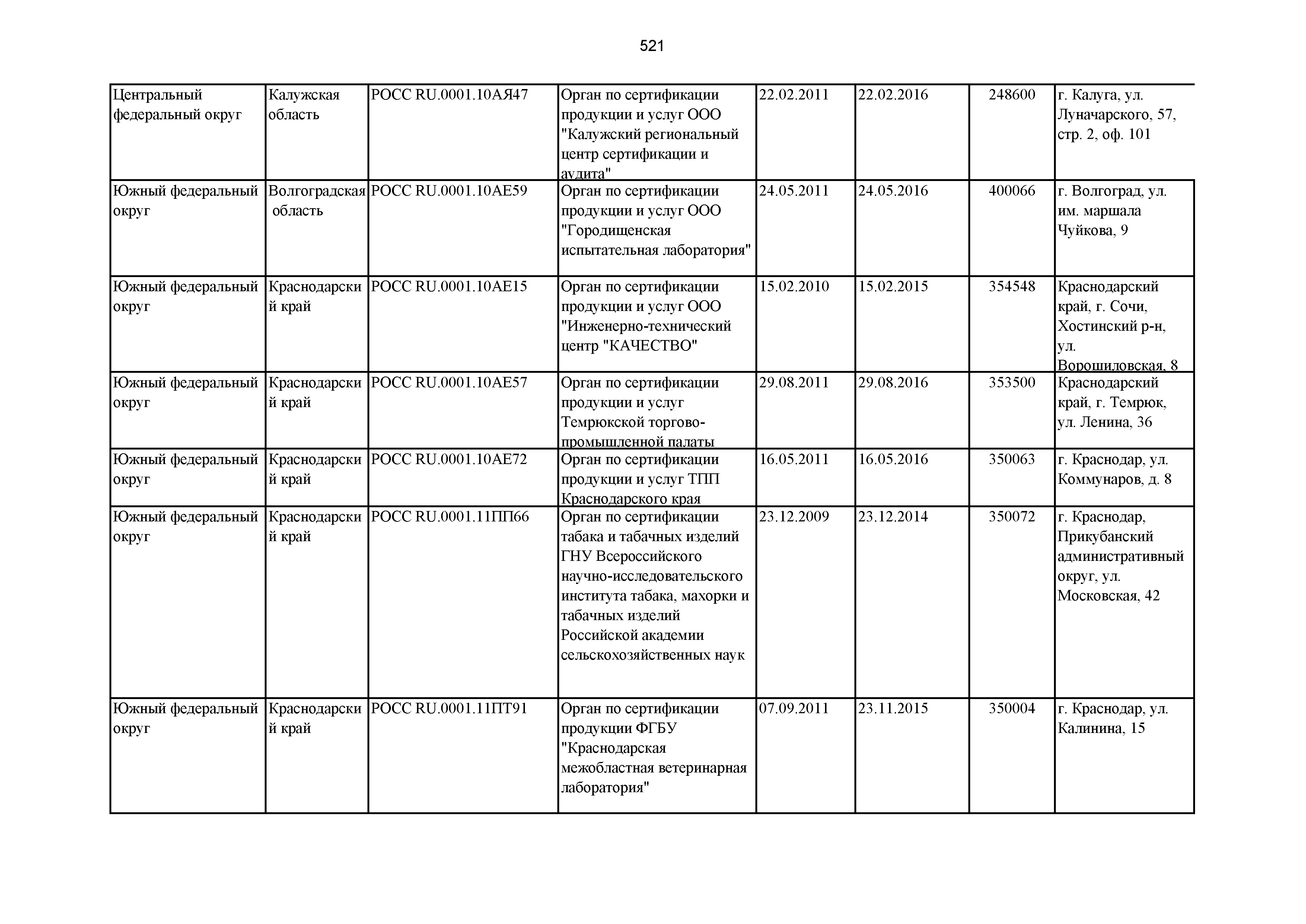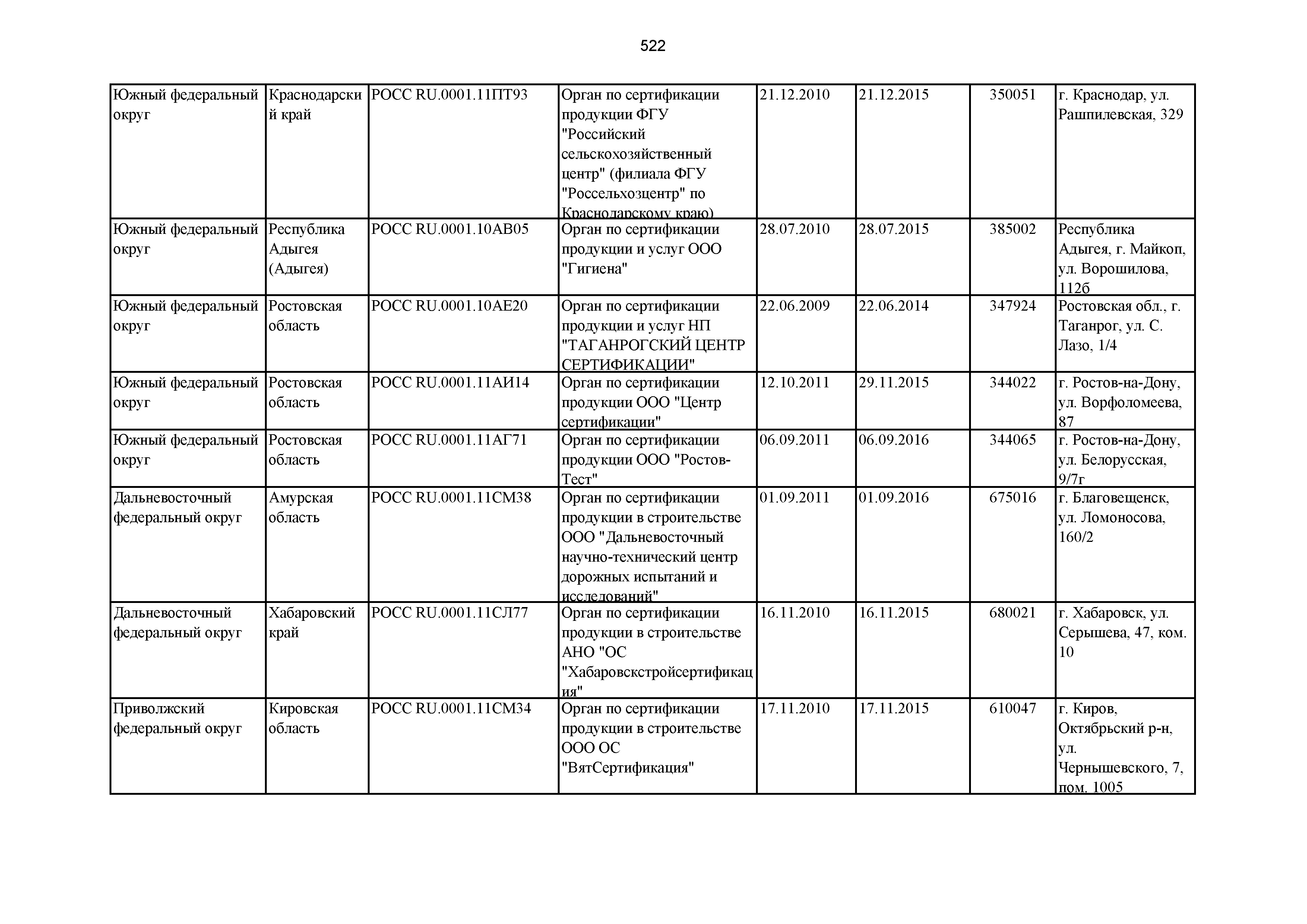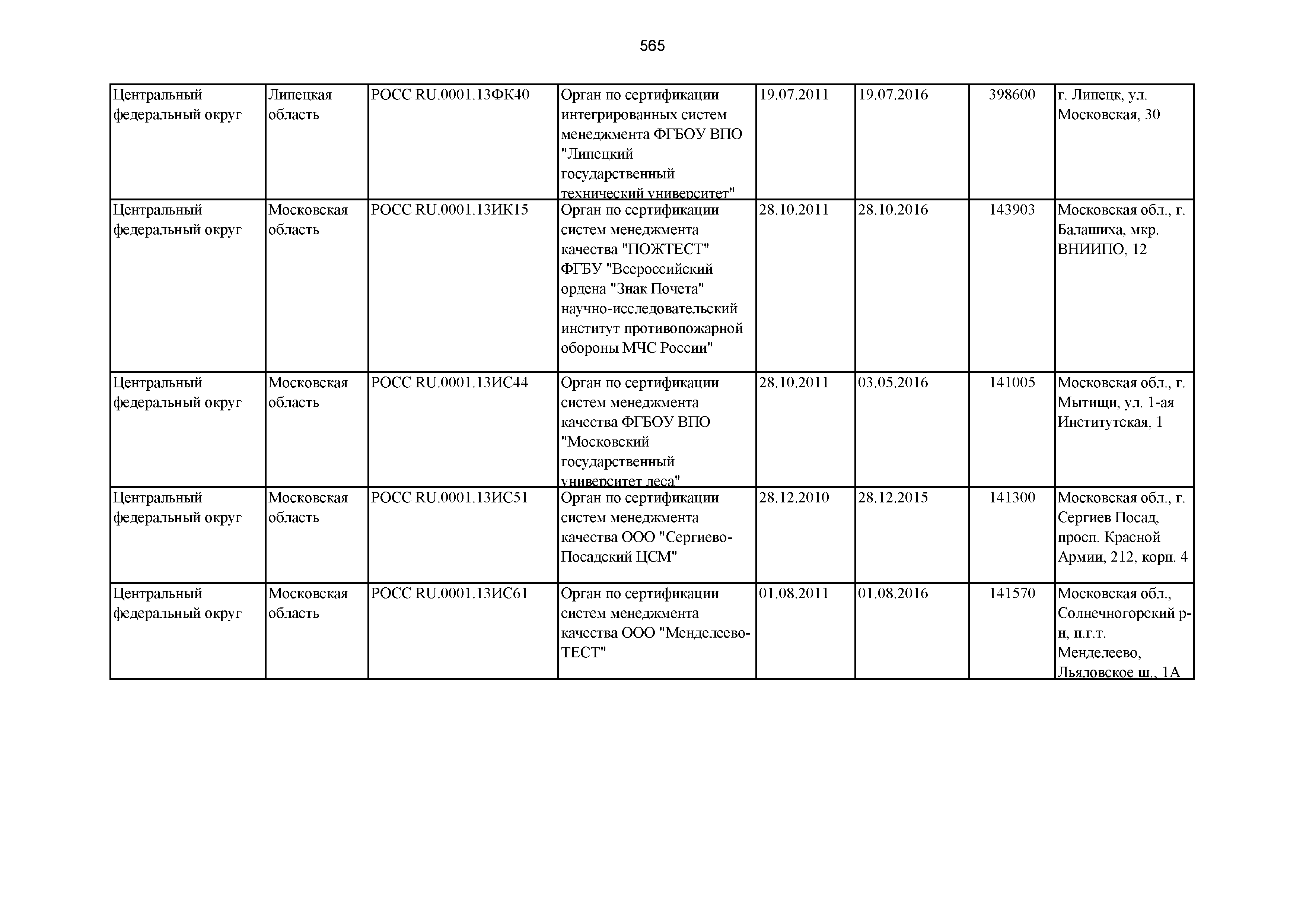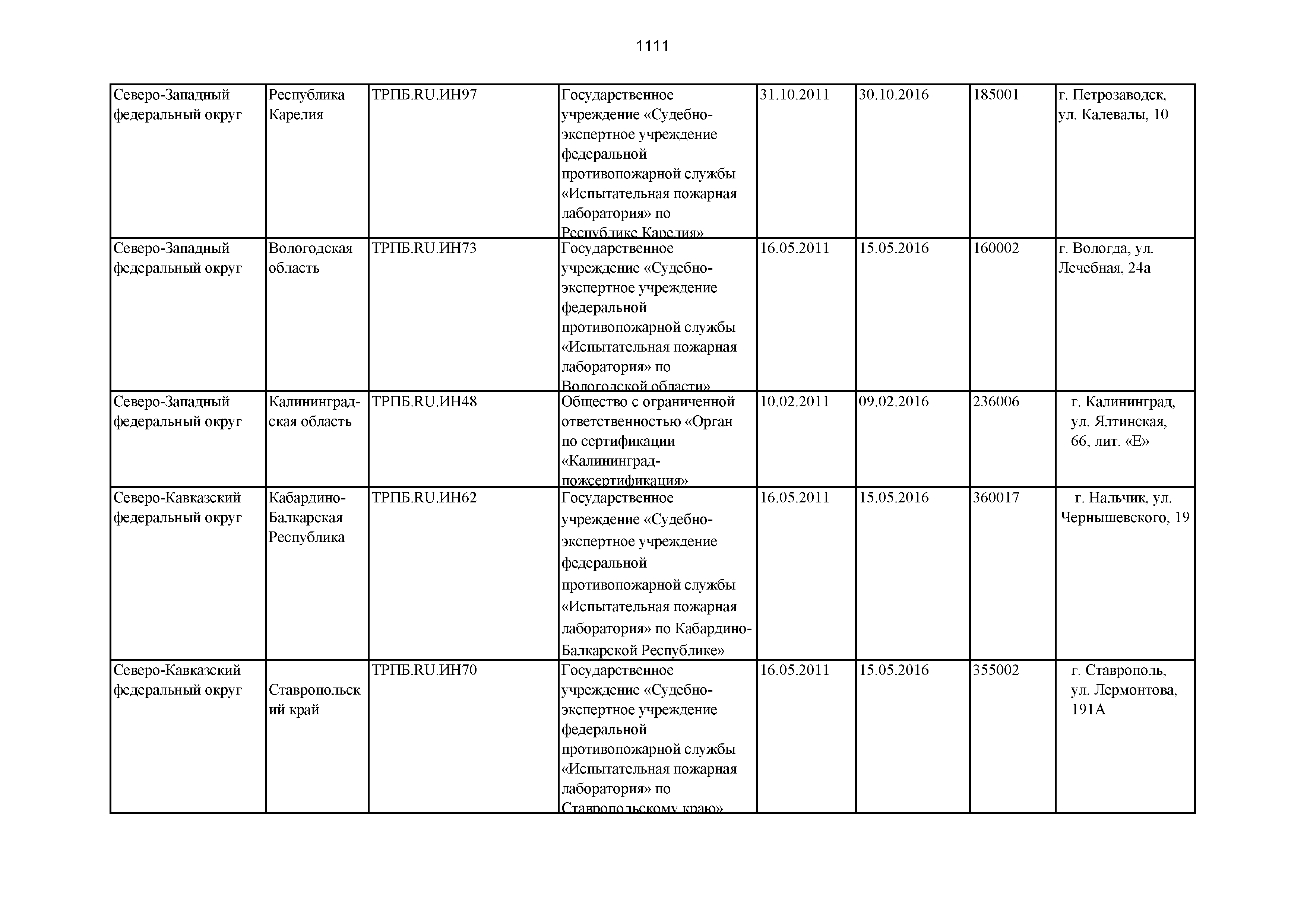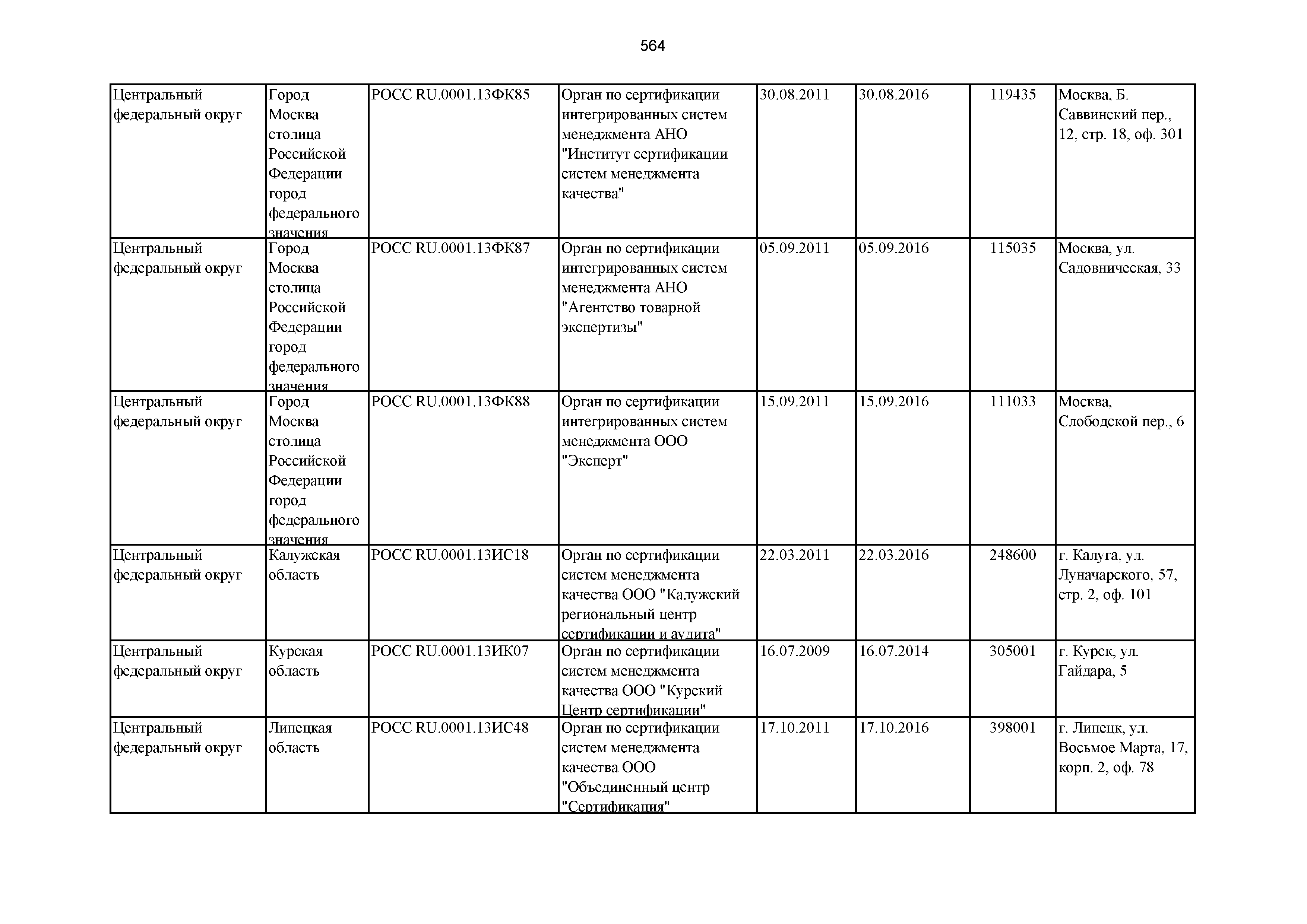 | Оглавление: | Приложение 1. План инспекционного контроля деятельности аккредитованных испытательных лабораторий (центров) и метрологической службы на 2012 год Приложение 2. План инспекционного контроля деятельности аккредитованных Органов по сертификации на 2012 год Приложение 3. План инспекционного контроля деятельности аналитических лабораторий (центров) на 2012 год Приложение 4. План инспекционного контроля в области обеспечения пожарной безопасности на 2012 год Приложение 5. План инспекционного контроля в области связи на 2012 год Приложение 6. План инспекционного контроля в области железнодорожного транспорта на 2012 год |