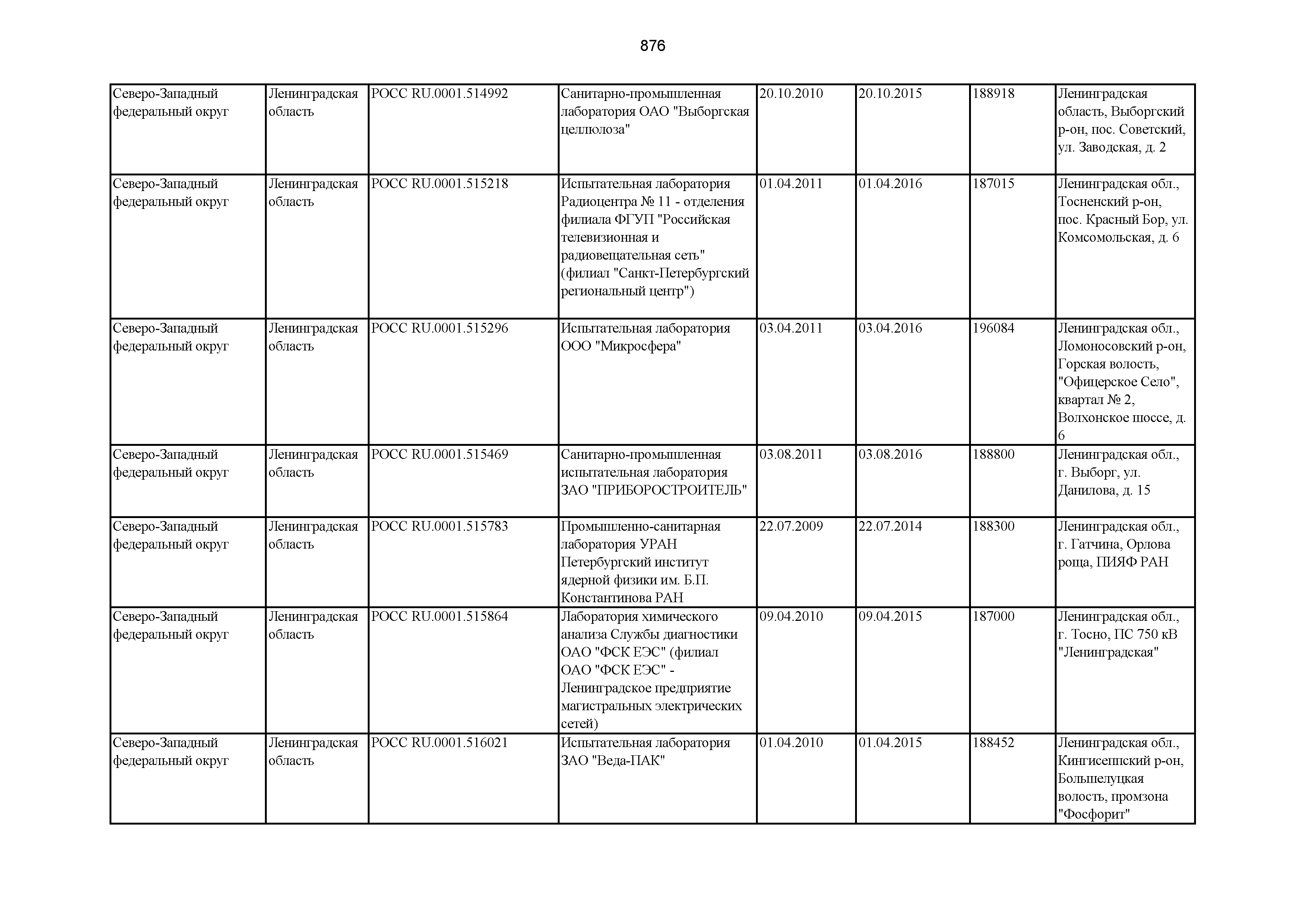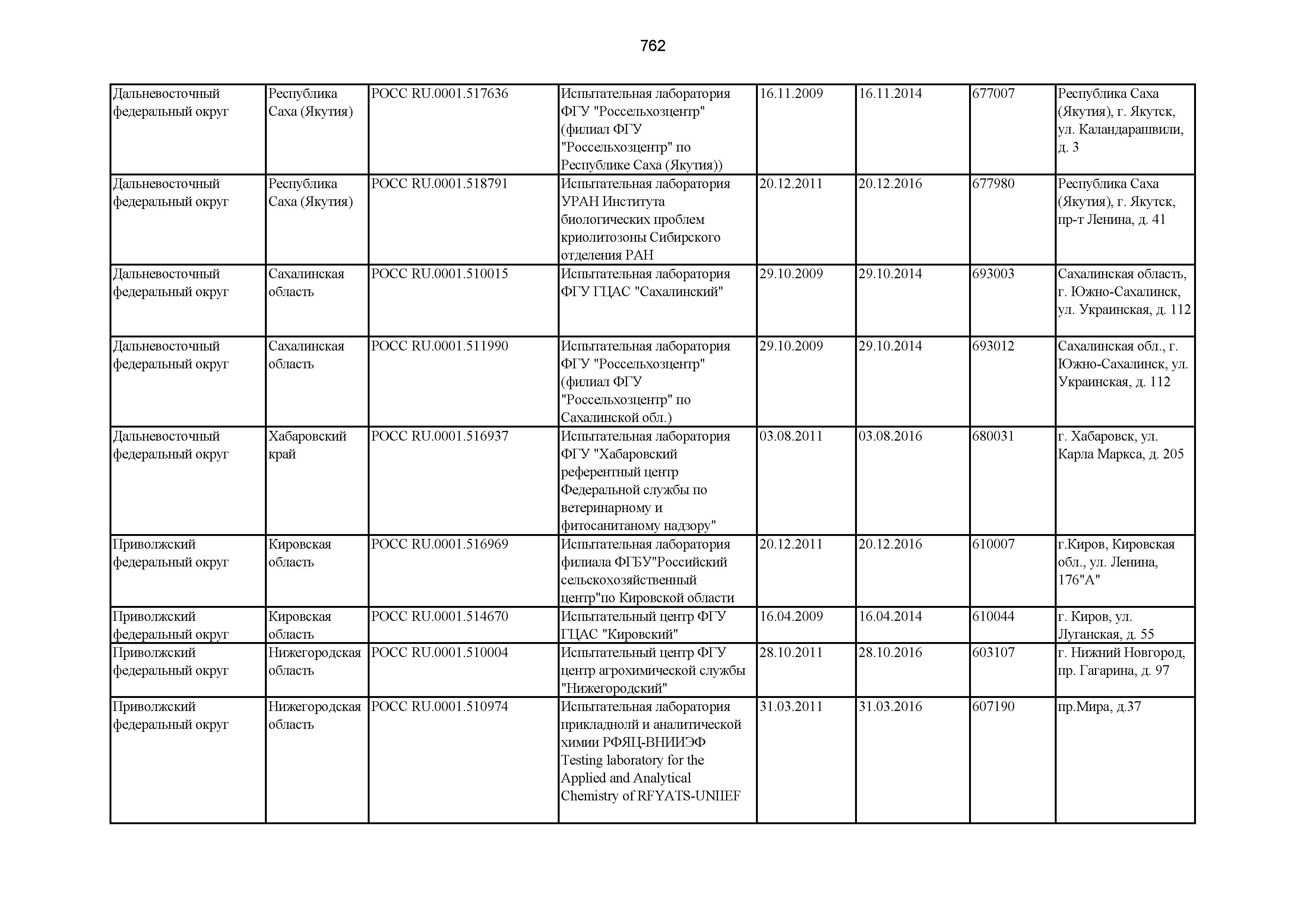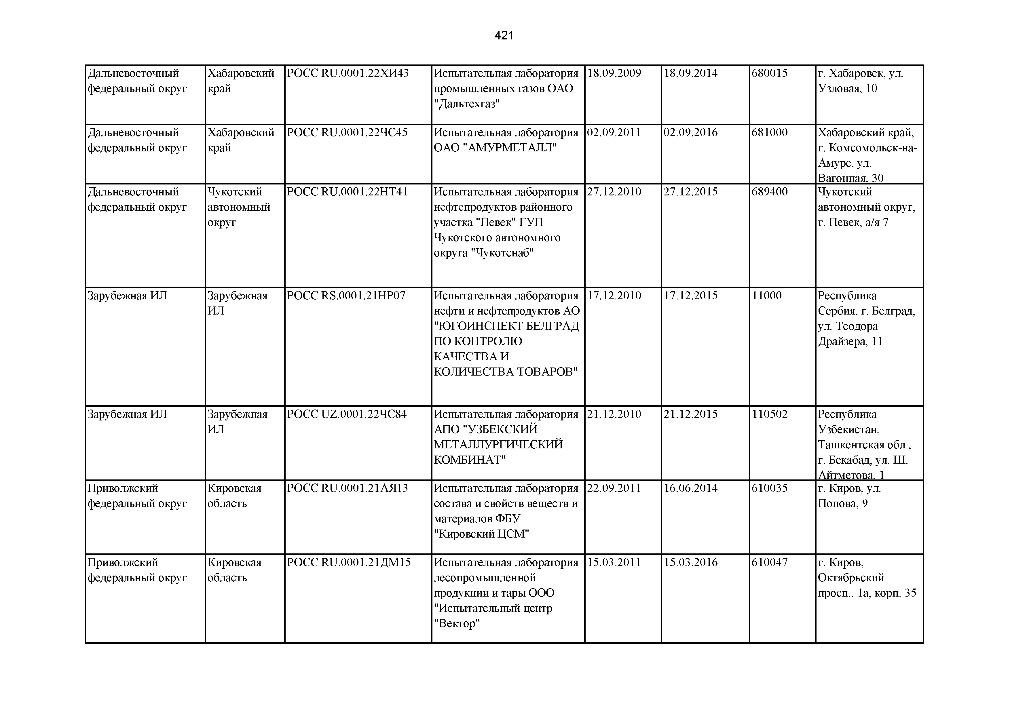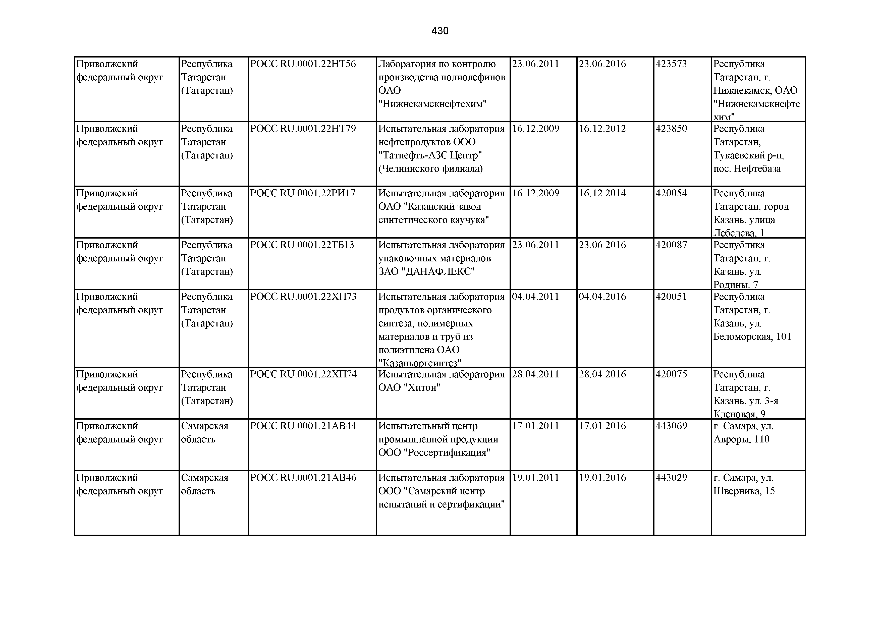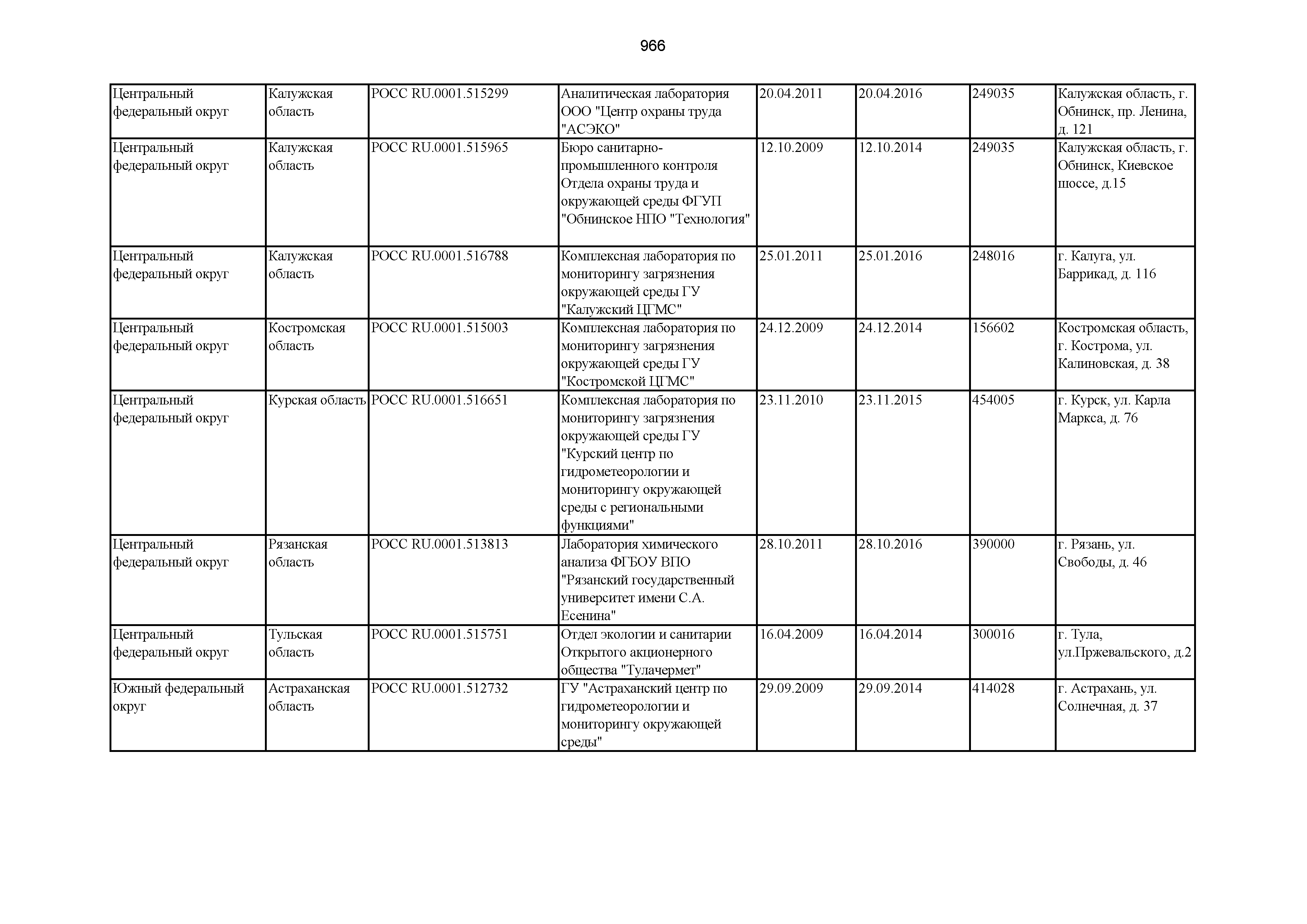 | Оглавление: | Приложение 1. План инспекционного контроля деятельности аккредитованных испытательных лабораторий (центров) и метрологической службы на 2012 год Приложение 2. План инспекционного контроля деятельности аккредитованных Органов по сертификации на 2012 год Приложение 3. План инспекционного контроля деятельности аналитических лабораторий (центров) на 2012 год Приложение 4. План инспекционного контроля в области обеспечения пожарной безопасности на 2012 год Приложение 5. План инспекционного контроля в области связи на 2012 год Приложение 6. План инспекционного контроля в области железнодорожного транспорта на 2012 год |