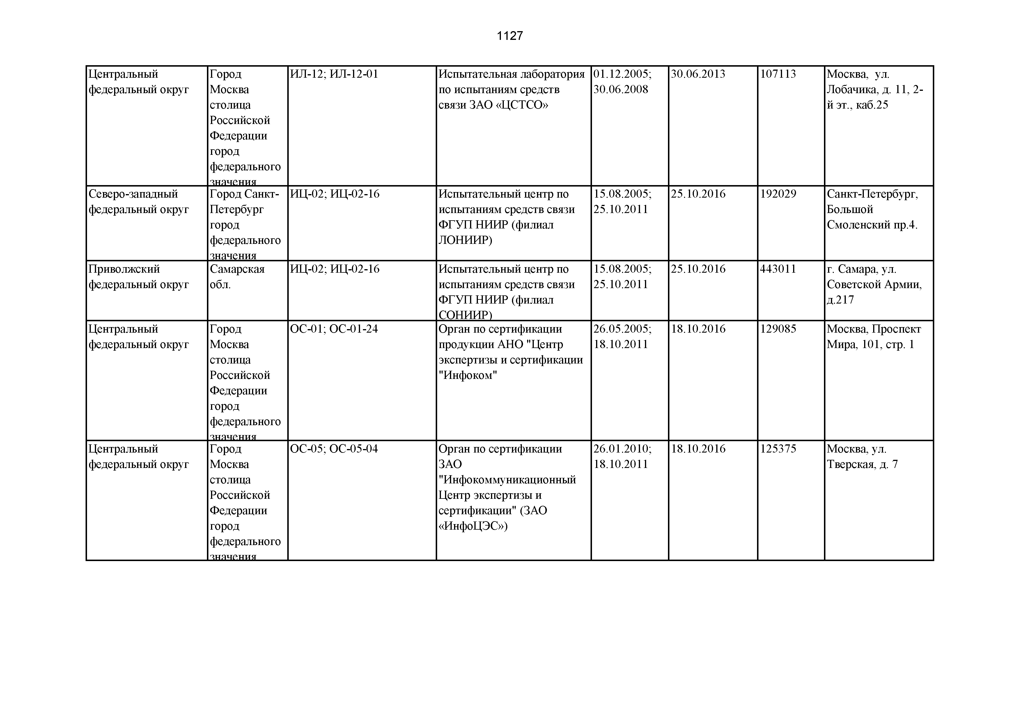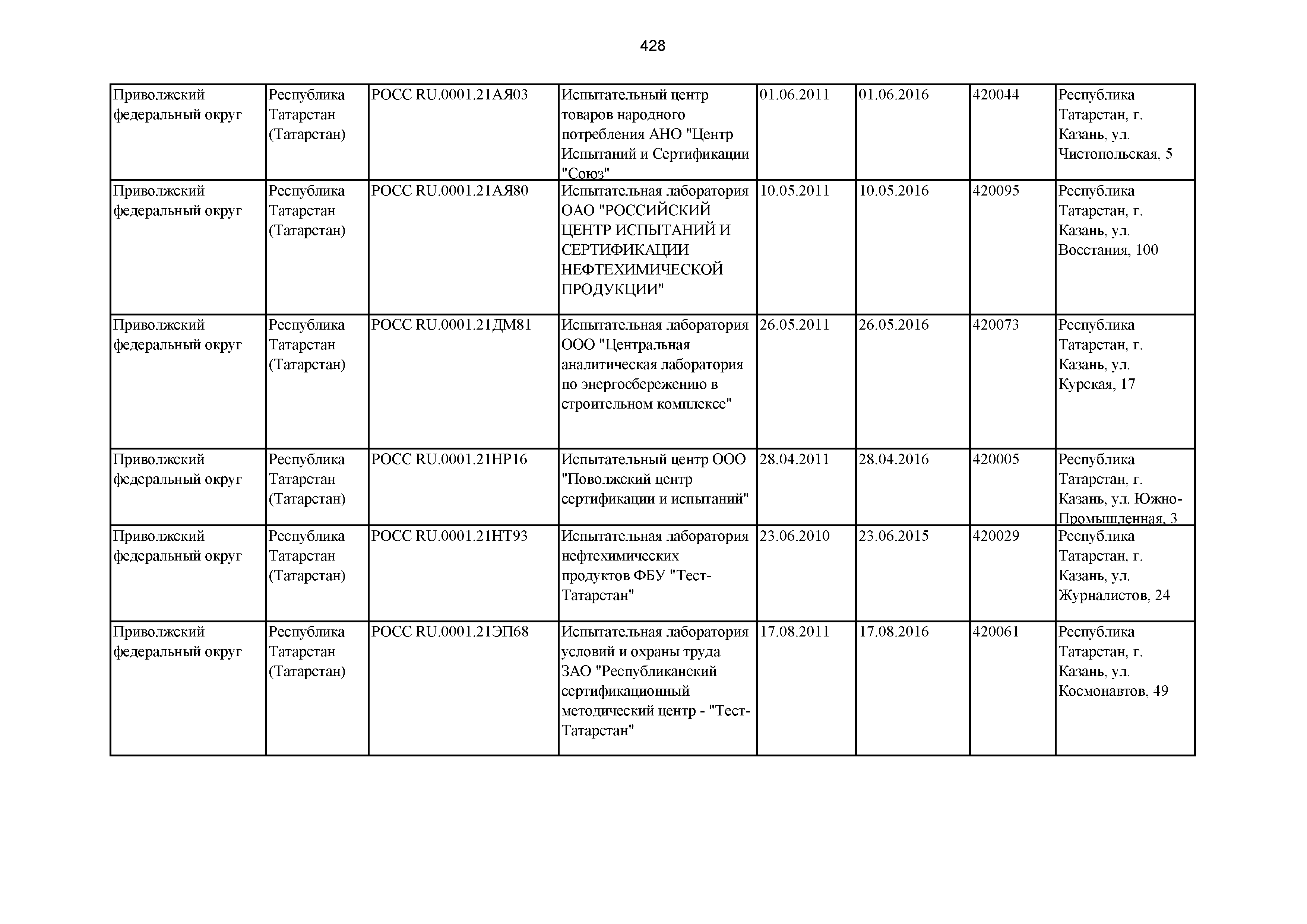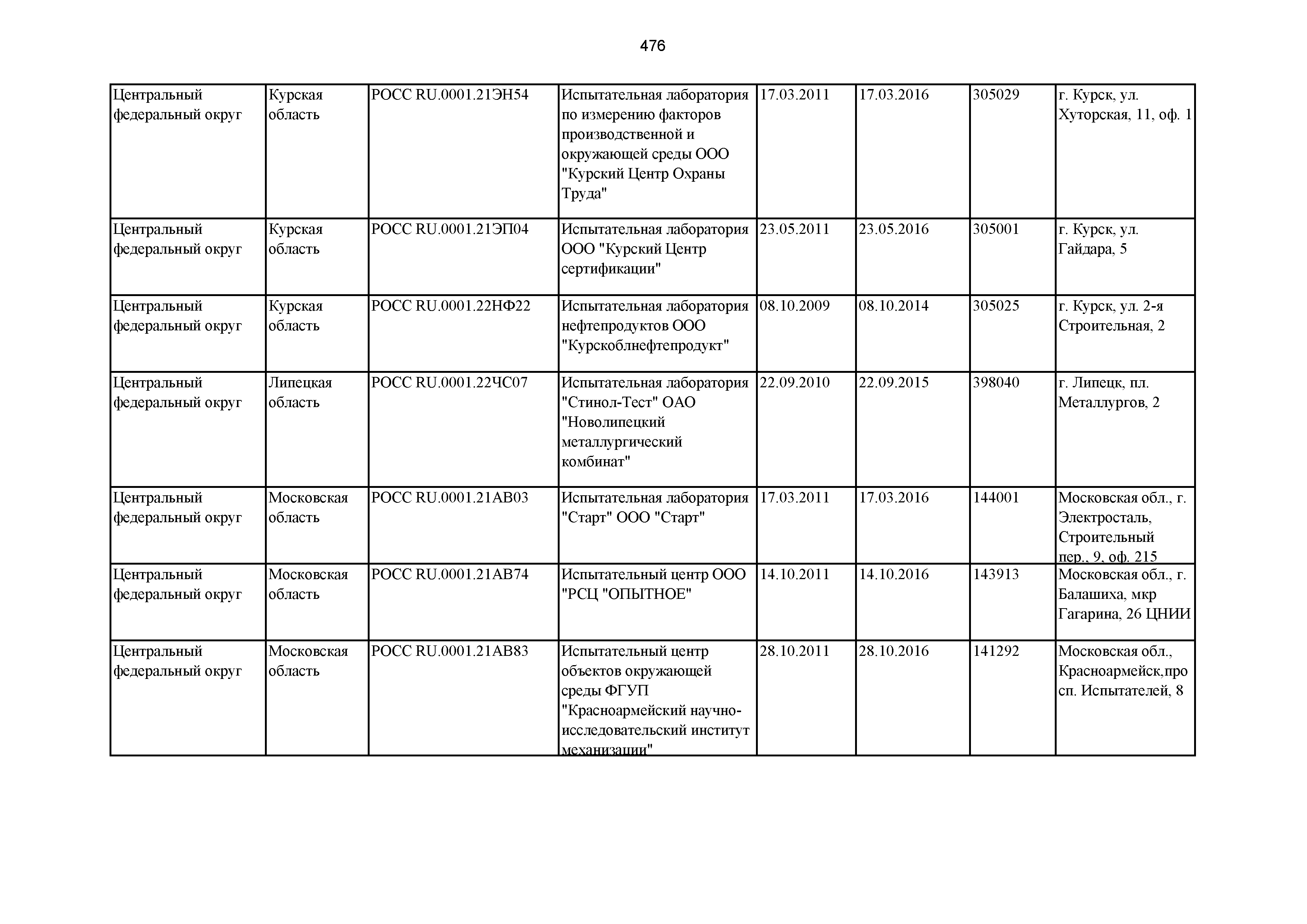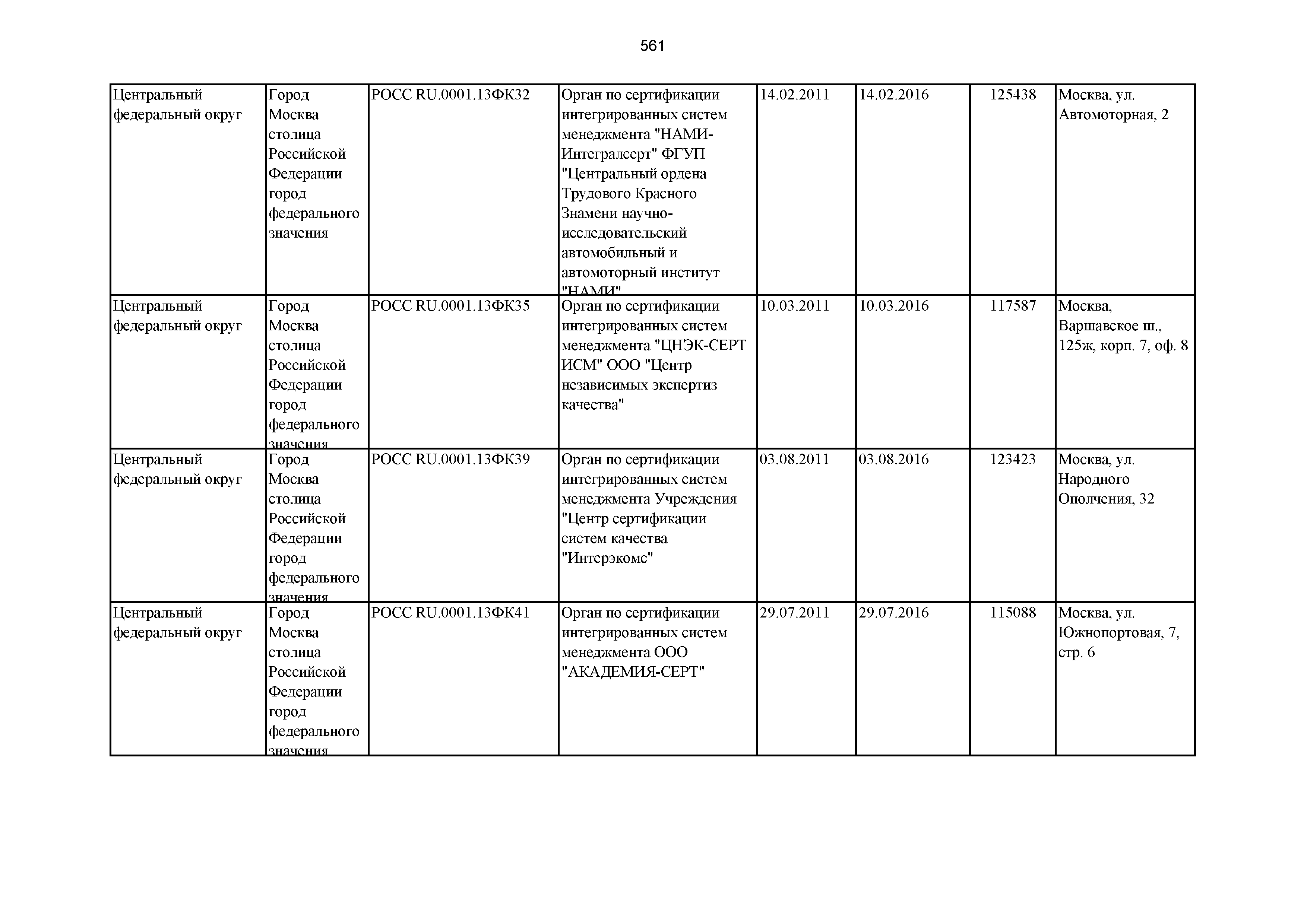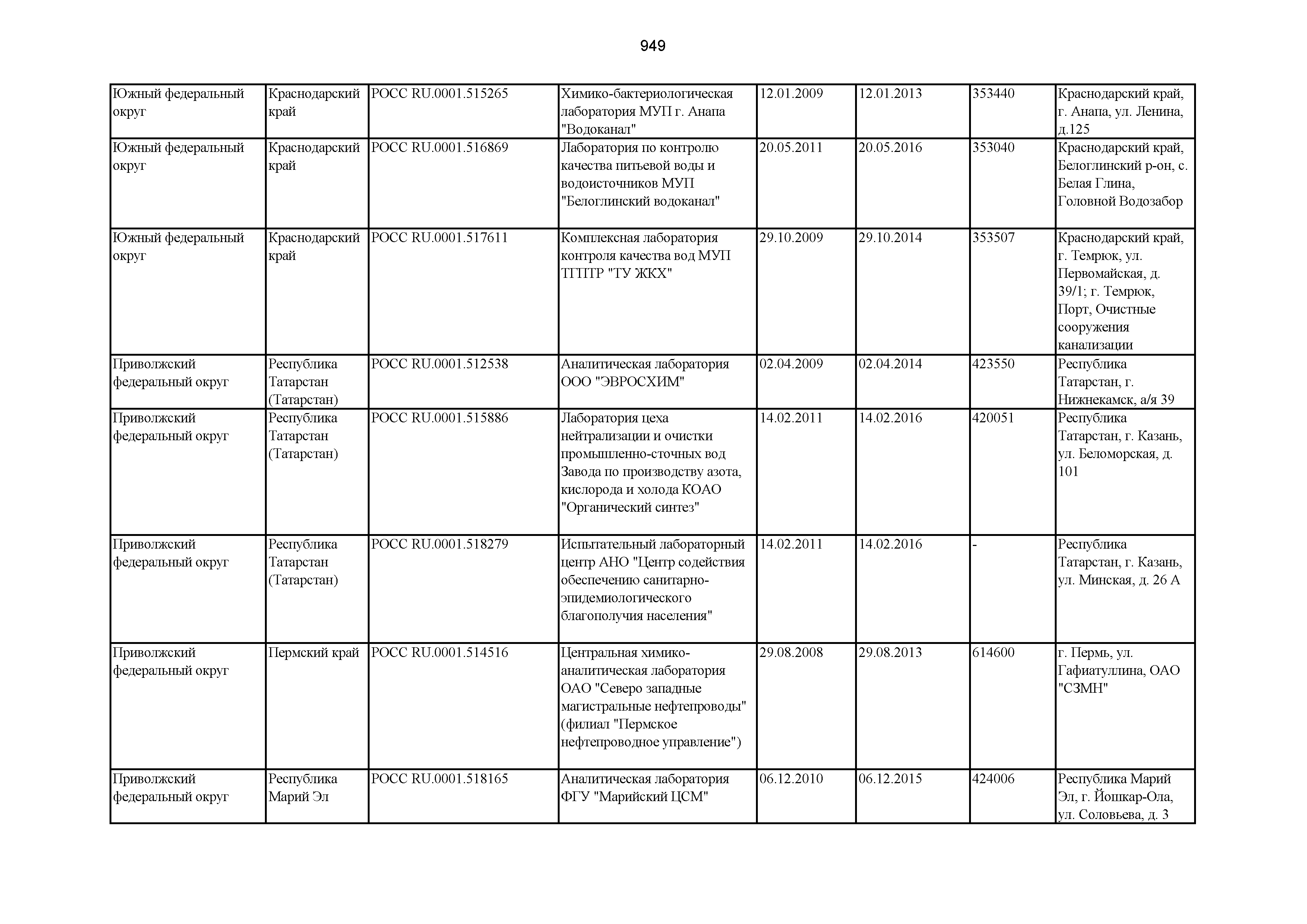 | Оглавление: | Приложение 1. План инспекционного контроля деятельности аккредитованных испытательных лабораторий (центров) и метрологической службы на 2012 год Приложение 2. План инспекционного контроля деятельности аккредитованных Органов по сертификации на 2012 год Приложение 3. План инспекционного контроля деятельности аналитических лабораторий (центров) на 2012 год Приложение 4. План инспекционного контроля в области обеспечения пожарной безопасности на 2012 год Приложение 5. План инспекционного контроля в области связи на 2012 год Приложение 6. План инспекционного контроля в области железнодорожного транспорта на 2012 год |