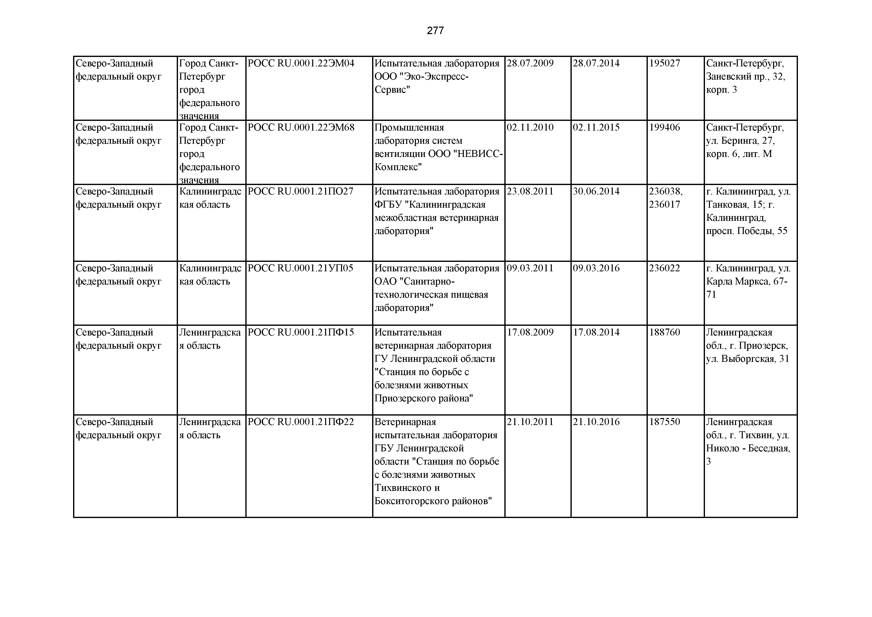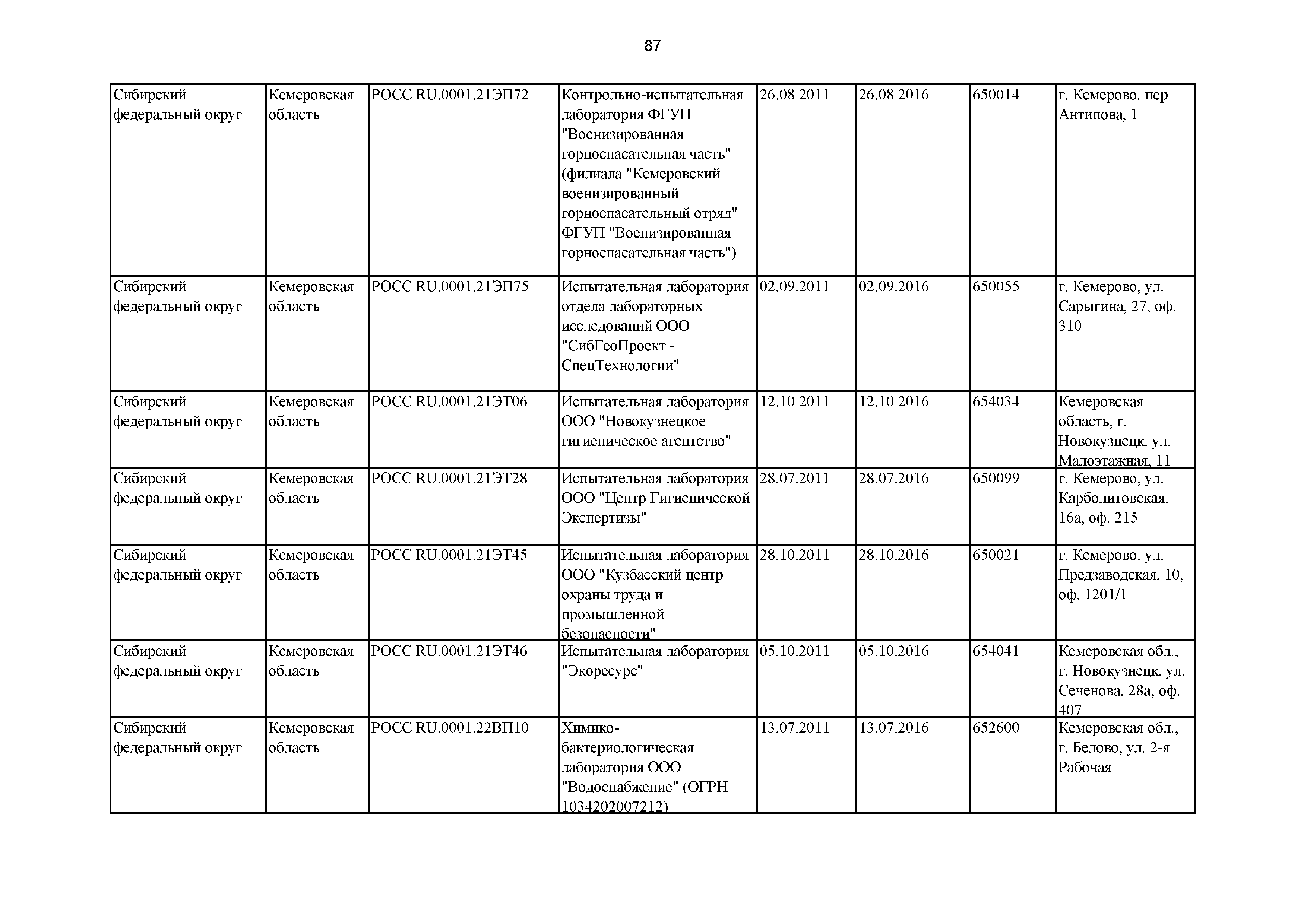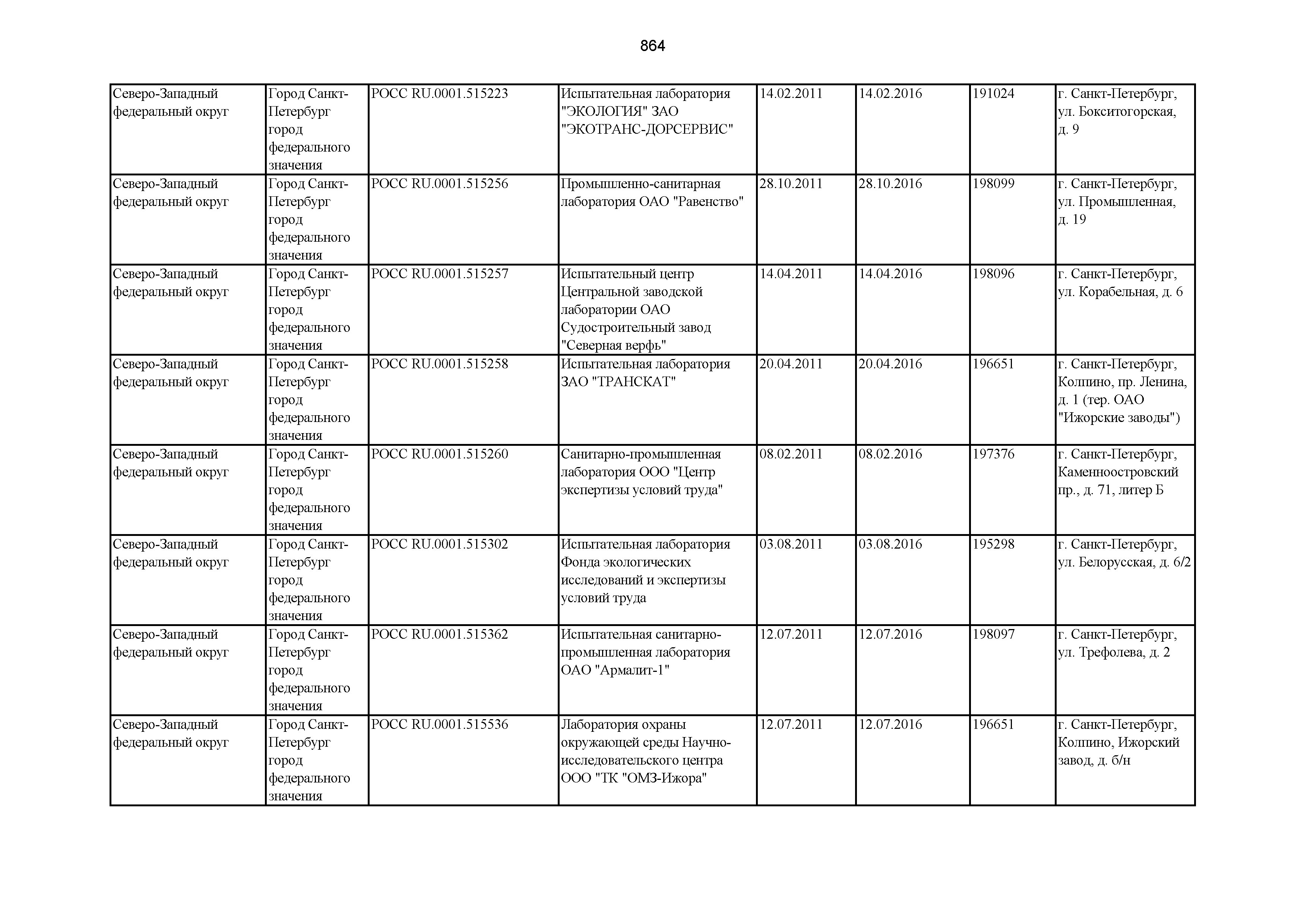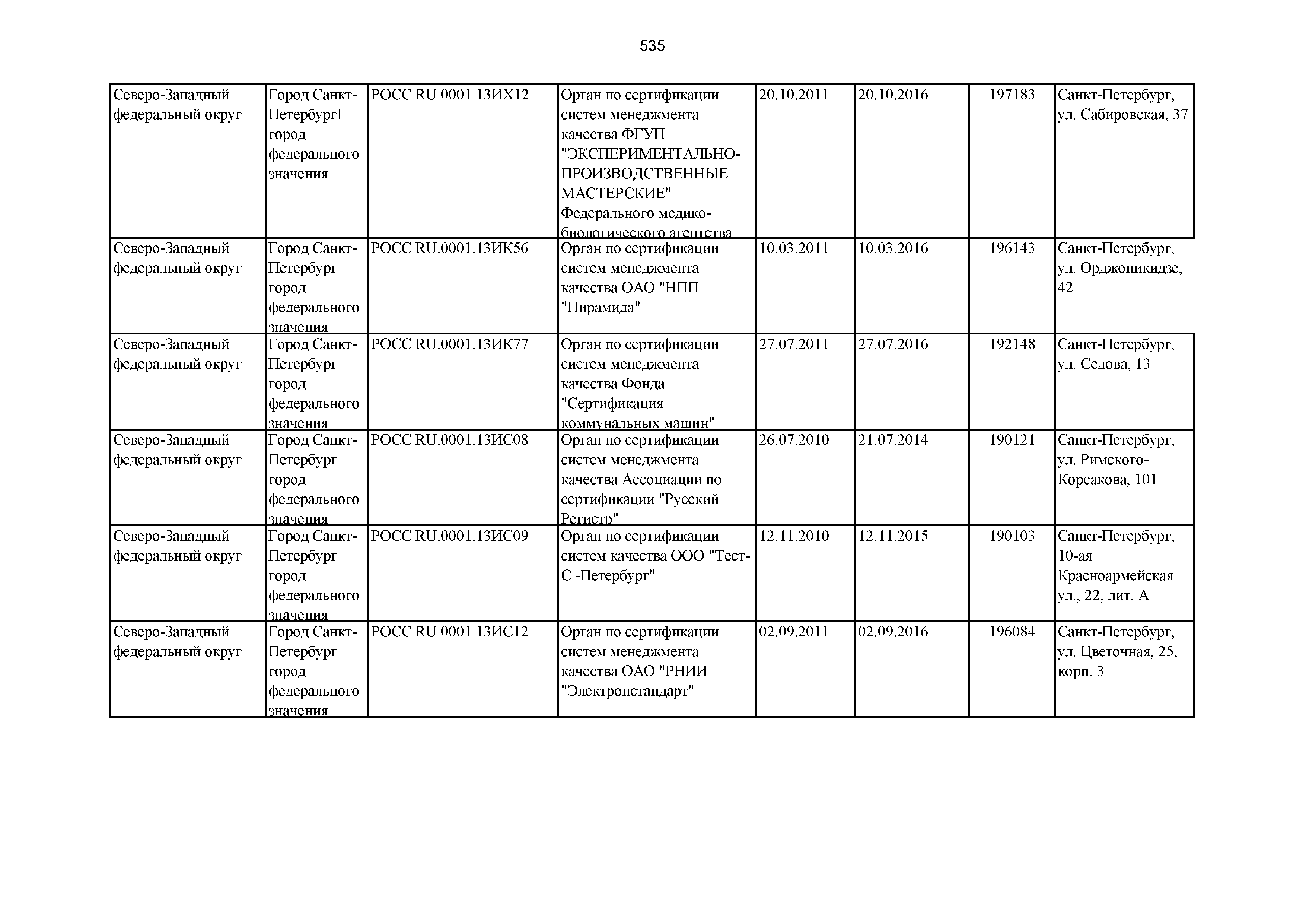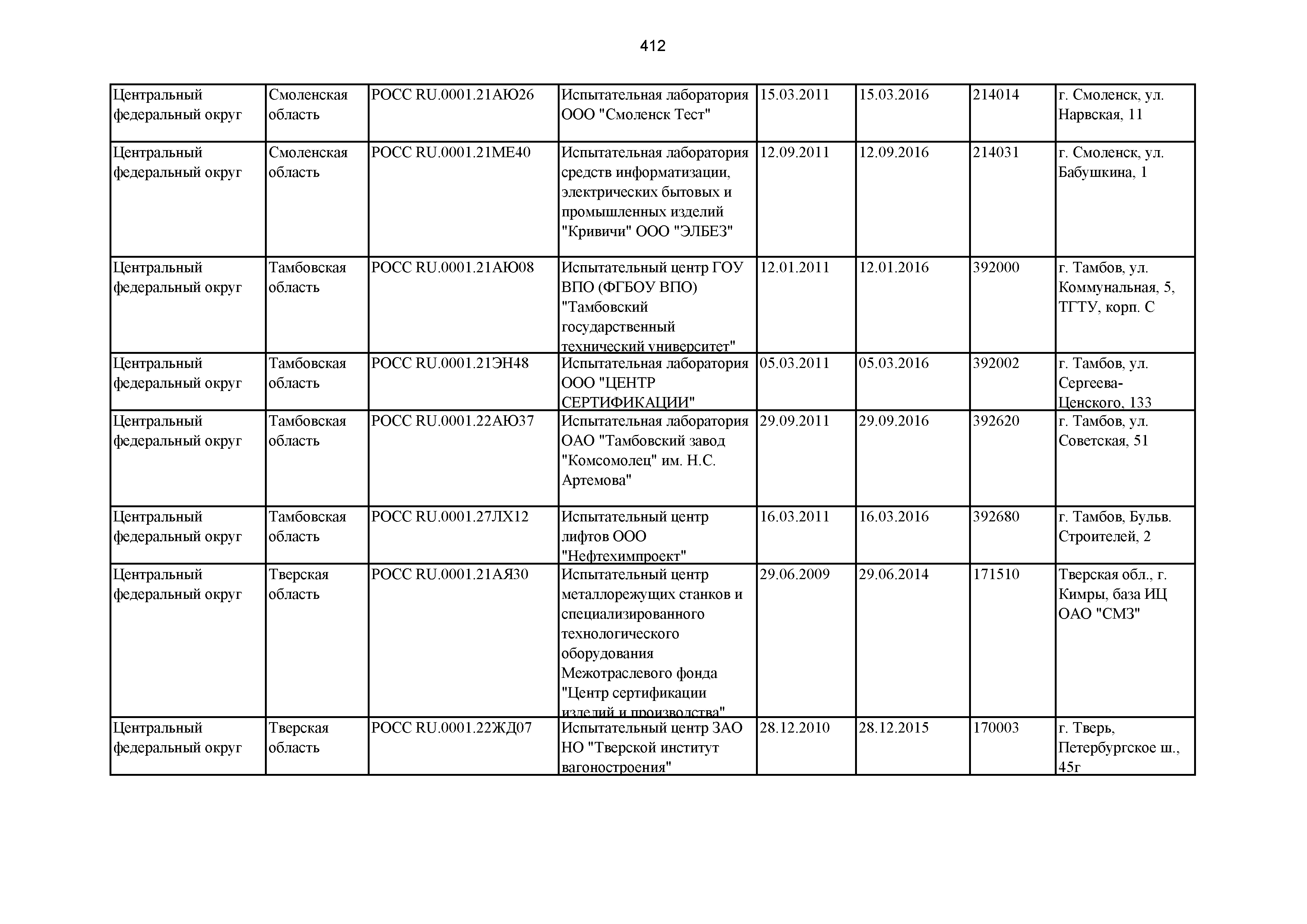 | Оглавление: | Приложение 1. План инспекционного контроля деятельности аккредитованных испытательных лабораторий (центров) и метрологической службы на 2012 год Приложение 2. План инспекционного контроля деятельности аккредитованных Органов по сертификации на 2012 год Приложение 3. План инспекционного контроля деятельности аналитических лабораторий (центров) на 2012 год Приложение 4. План инспекционного контроля в области обеспечения пожарной безопасности на 2012 год Приложение 5. План инспекционного контроля в области связи на 2012 год Приложение 6. План инспекционного контроля в области железнодорожного транспорта на 2012 год |