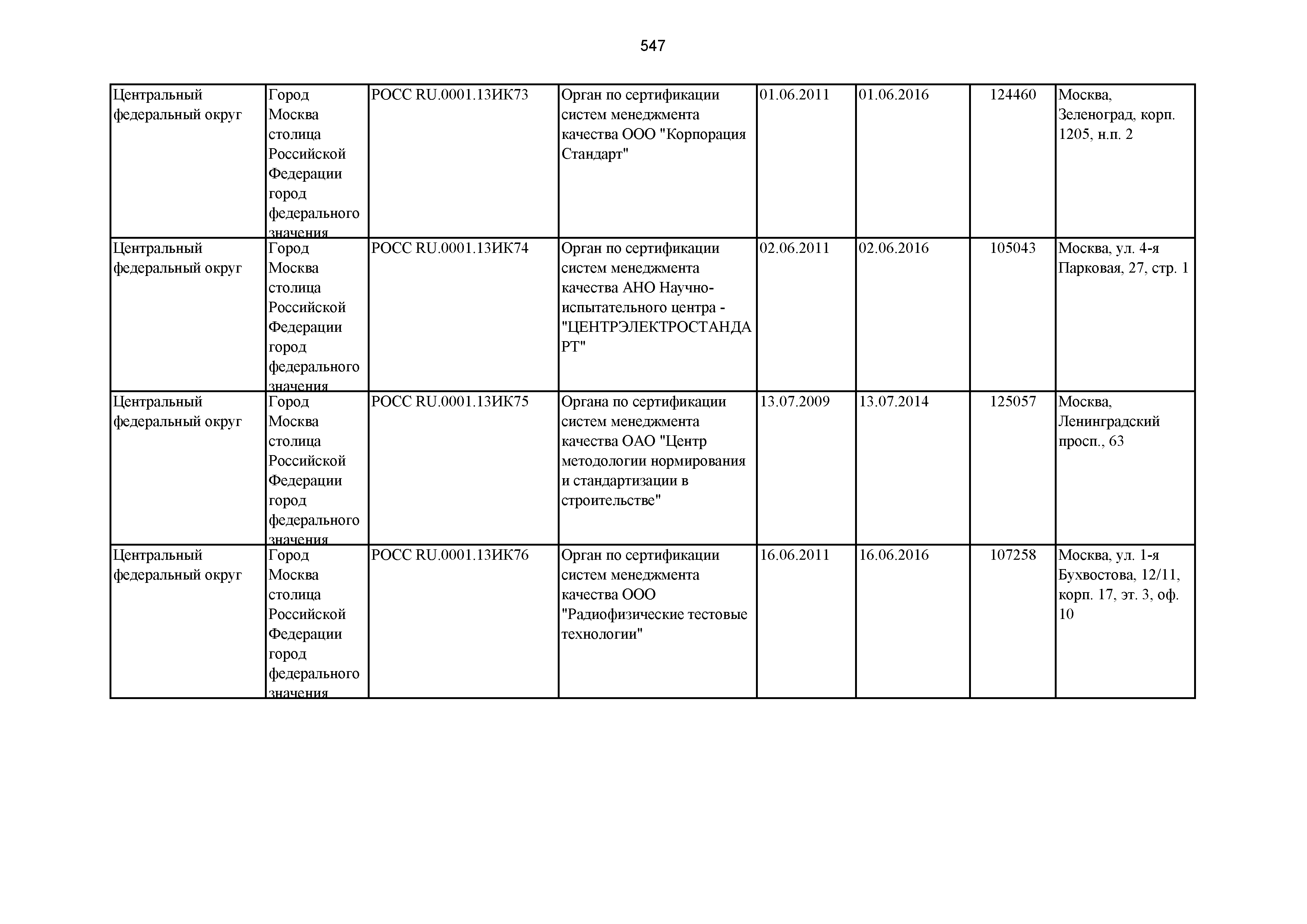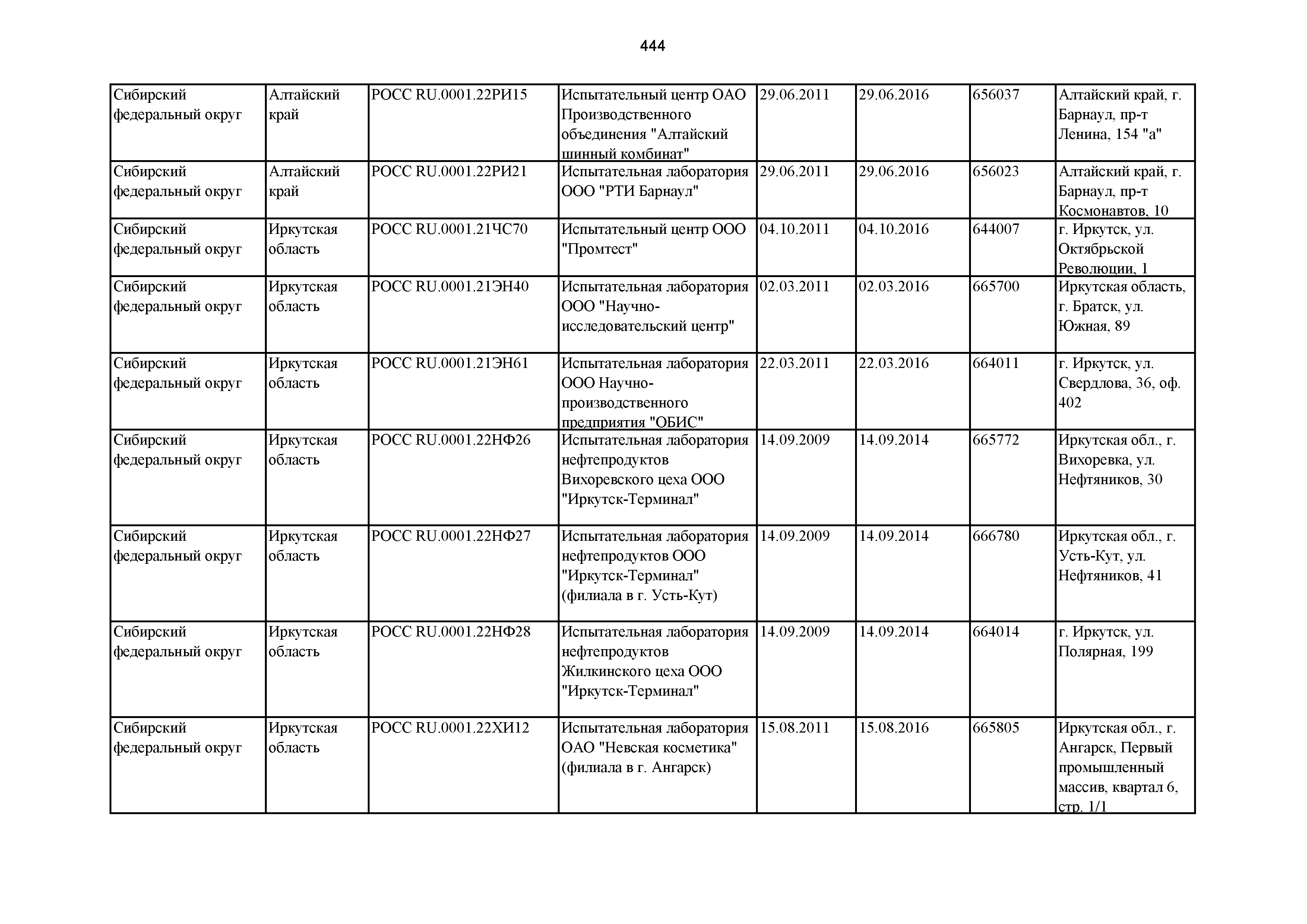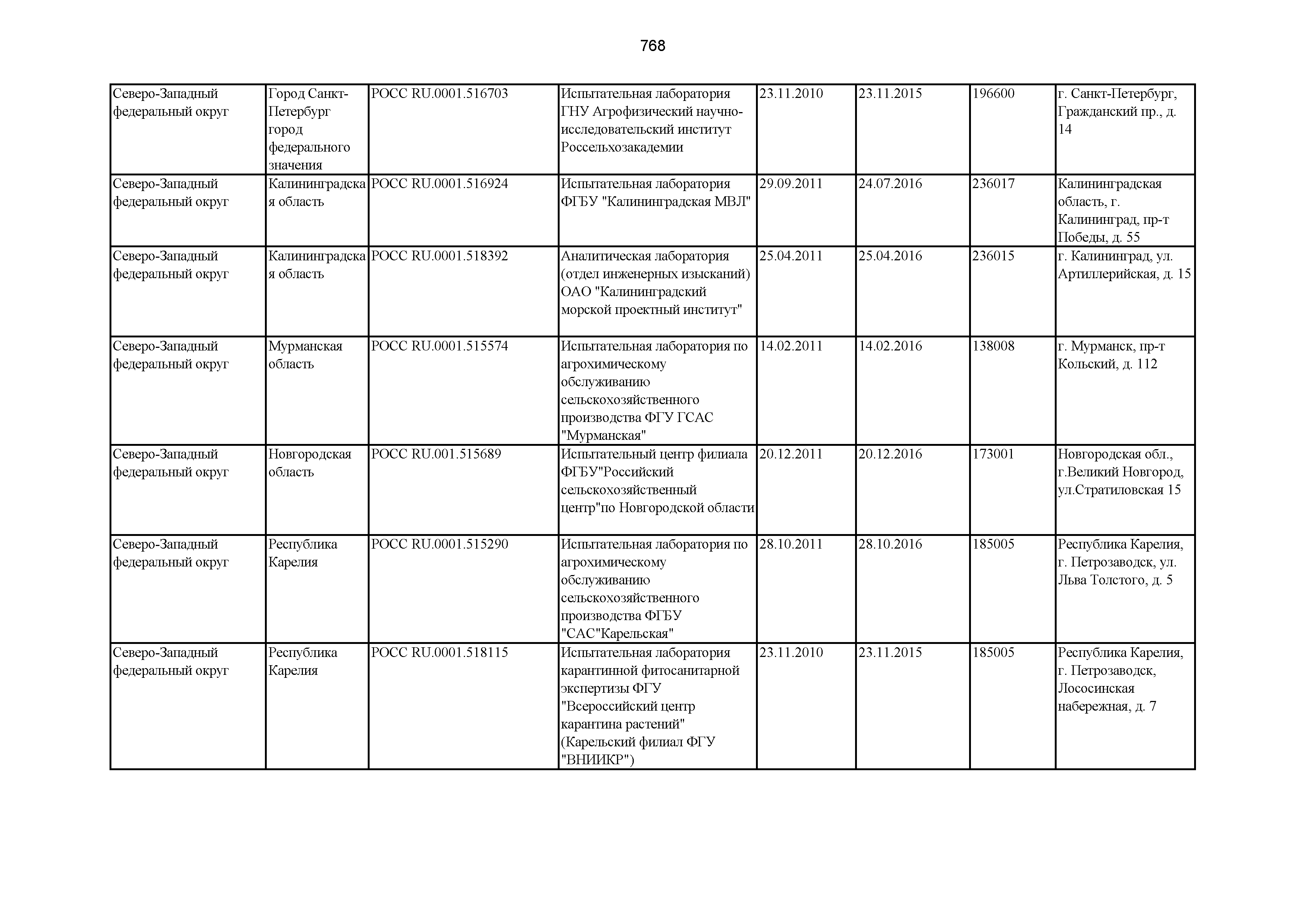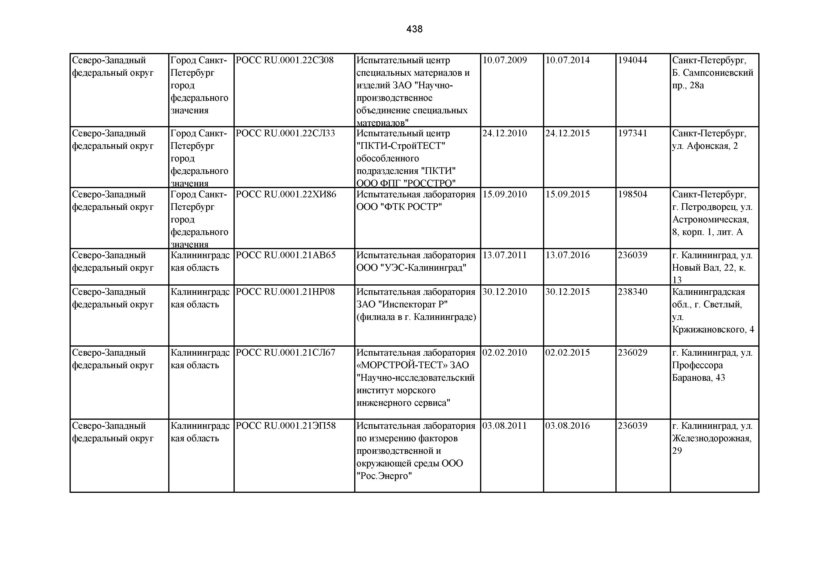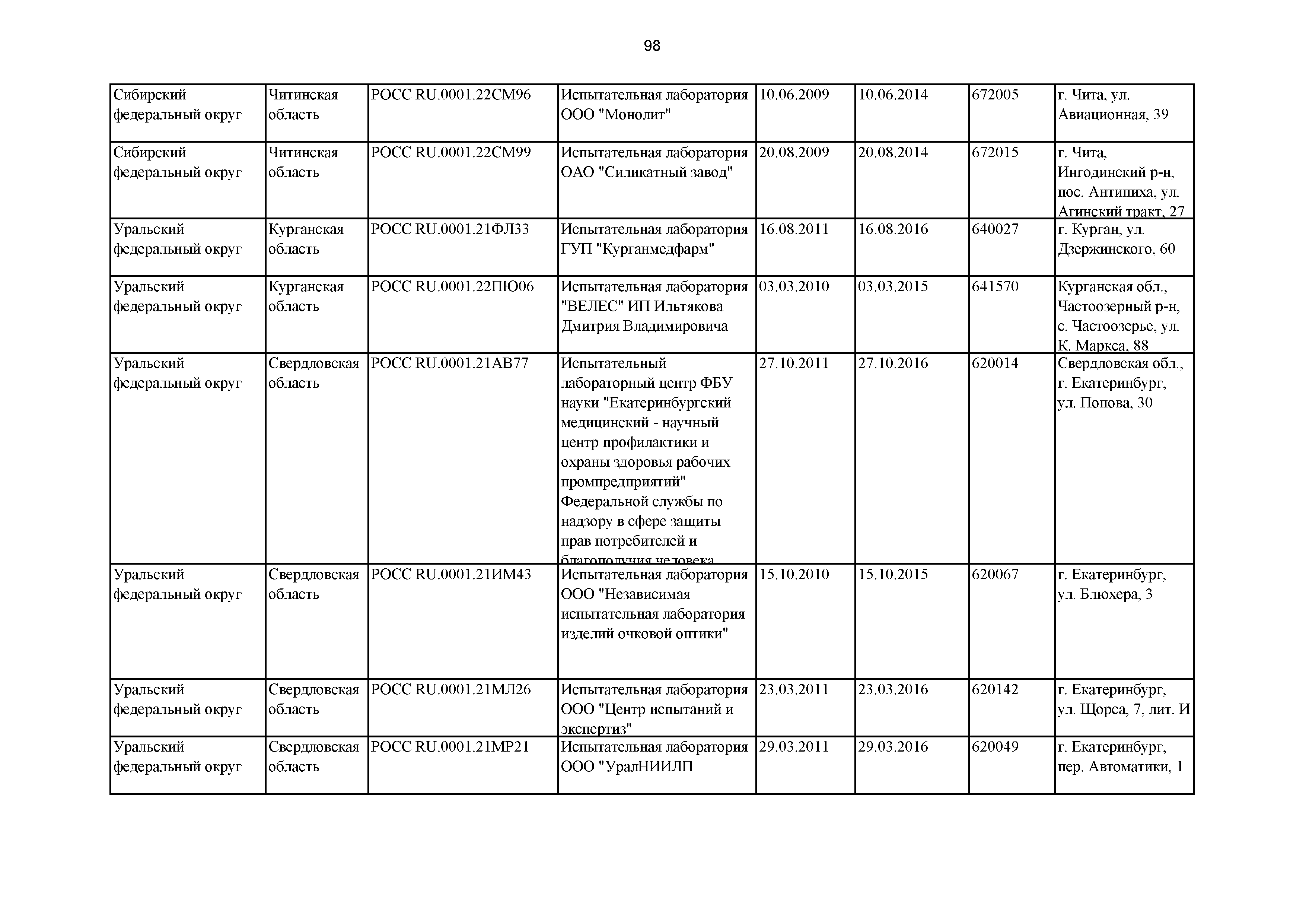 | Оглавление: | Приложение 1. План инспекционного контроля деятельности аккредитованных испытательных лабораторий (центров) и метрологической службы на 2012 год Приложение 2. План инспекционного контроля деятельности аккредитованных Органов по сертификации на 2012 год Приложение 3. План инспекционного контроля деятельности аналитических лабораторий (центров) на 2012 год Приложение 4. План инспекционного контроля в области обеспечения пожарной безопасности на 2012 год Приложение 5. План инспекционного контроля в области связи на 2012 год Приложение 6. План инспекционного контроля в области железнодорожного транспорта на 2012 год |