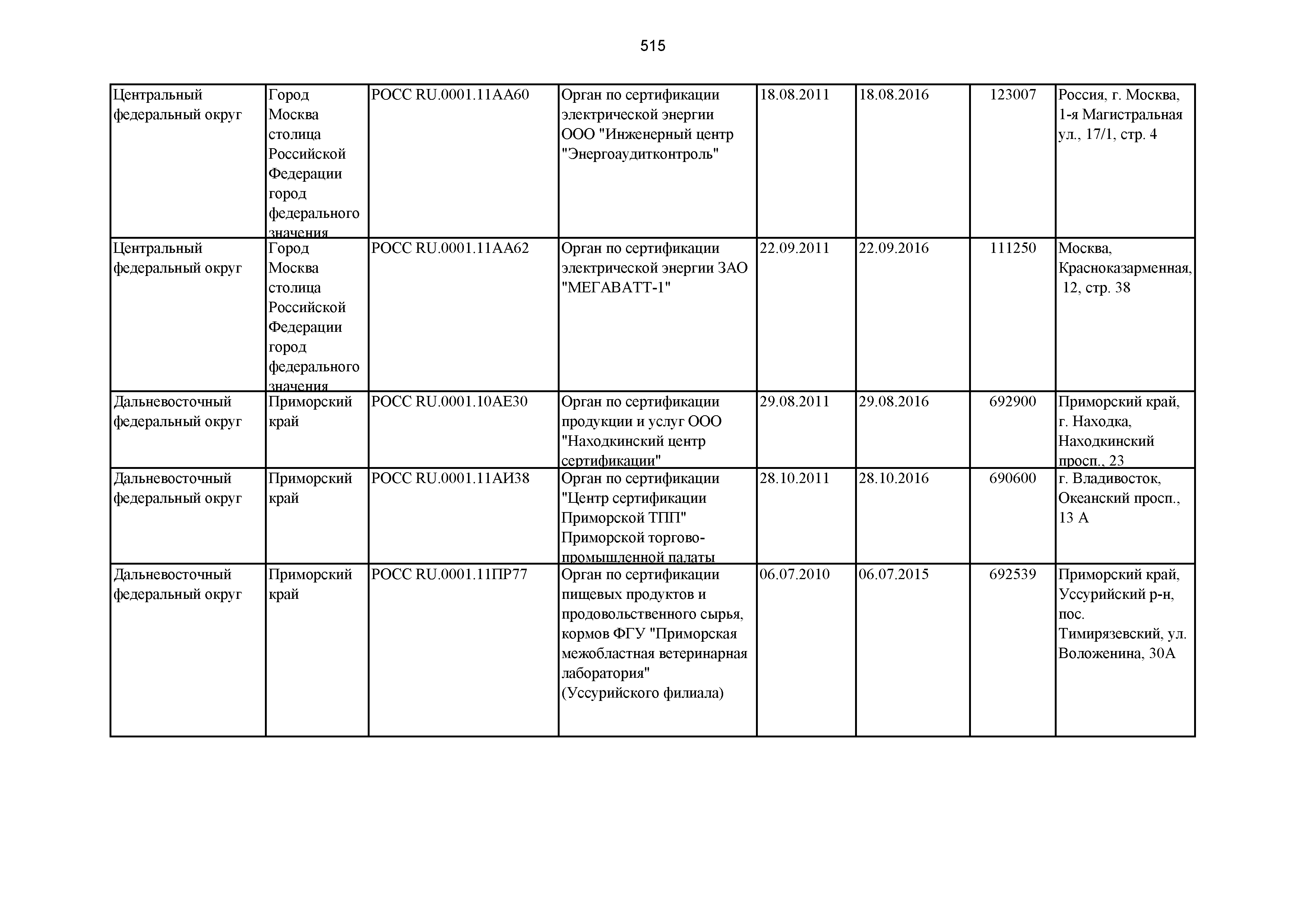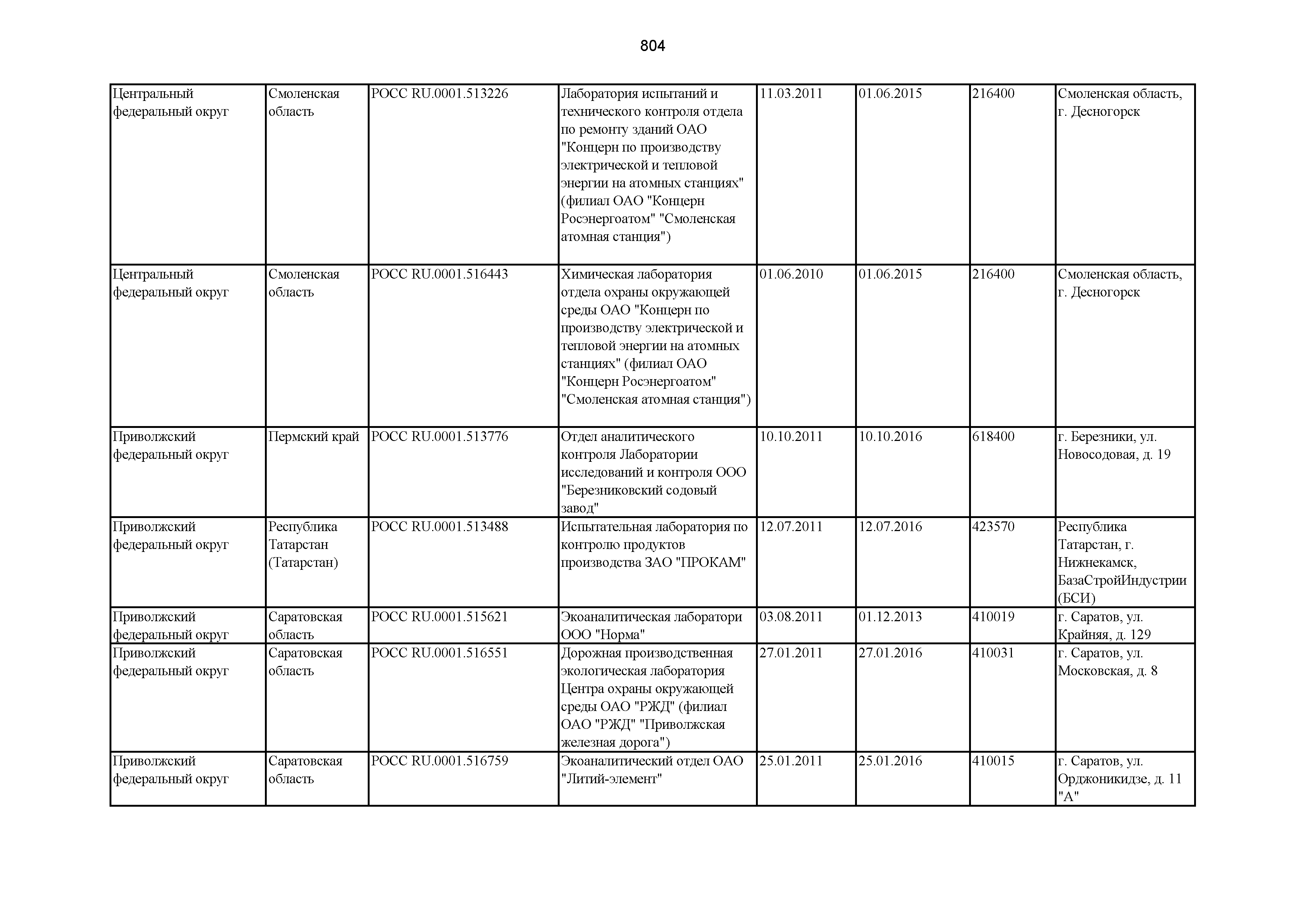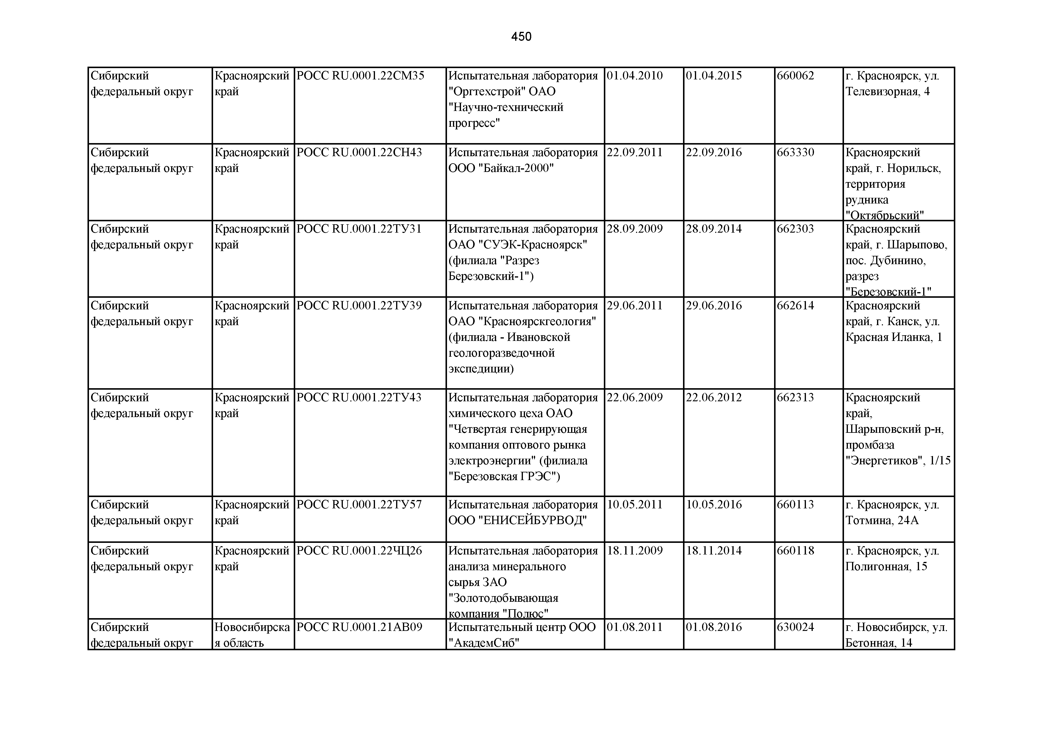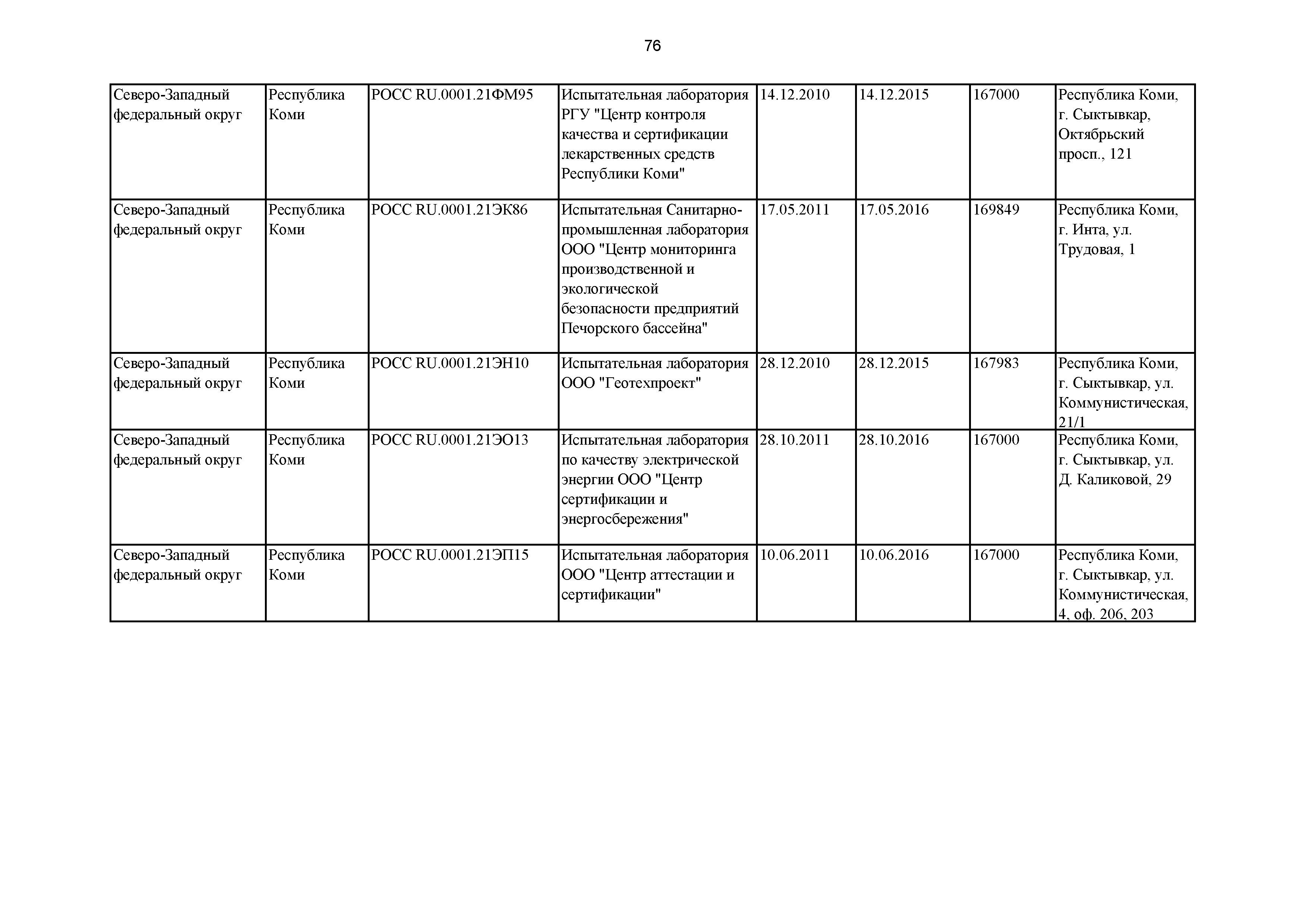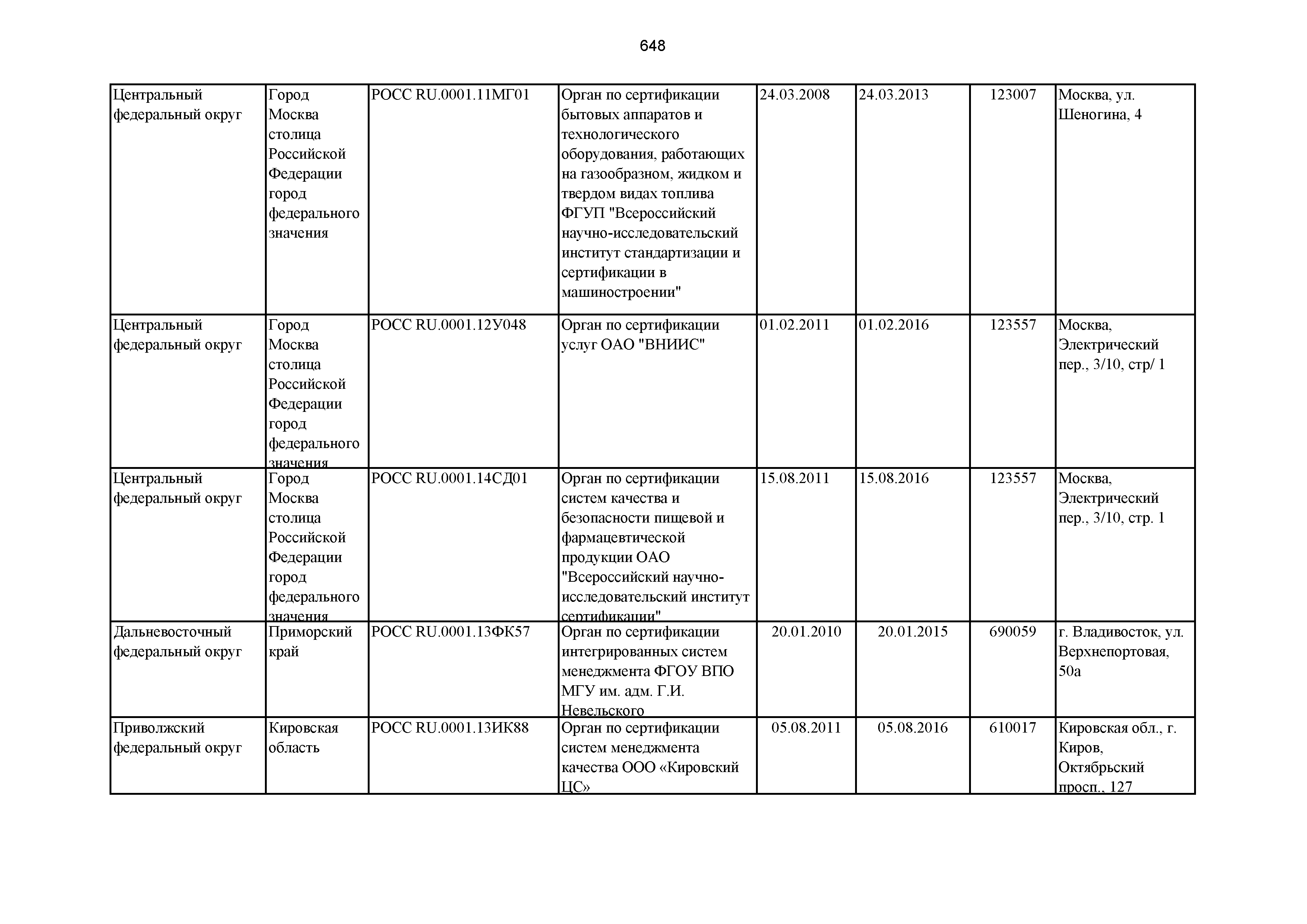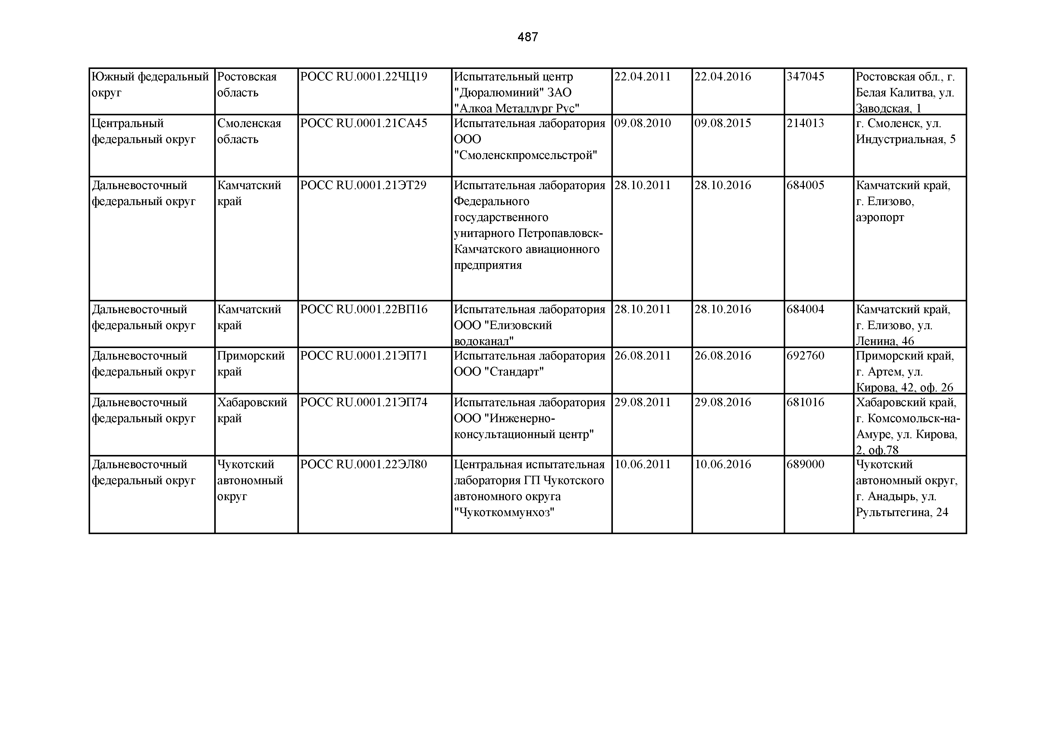 | Оглавление: | Приложение 1. План инспекционного контроля деятельности аккредитованных испытательных лабораторий (центров) и метрологической службы на 2012 год Приложение 2. План инспекционного контроля деятельности аккредитованных Органов по сертификации на 2012 год Приложение 3. План инспекционного контроля деятельности аналитических лабораторий (центров) на 2012 год Приложение 4. План инспекционного контроля в области обеспечения пожарной безопасности на 2012 год Приложение 5. План инспекционного контроля в области связи на 2012 год Приложение 6. План инспекционного контроля в области железнодорожного транспорта на 2012 год |