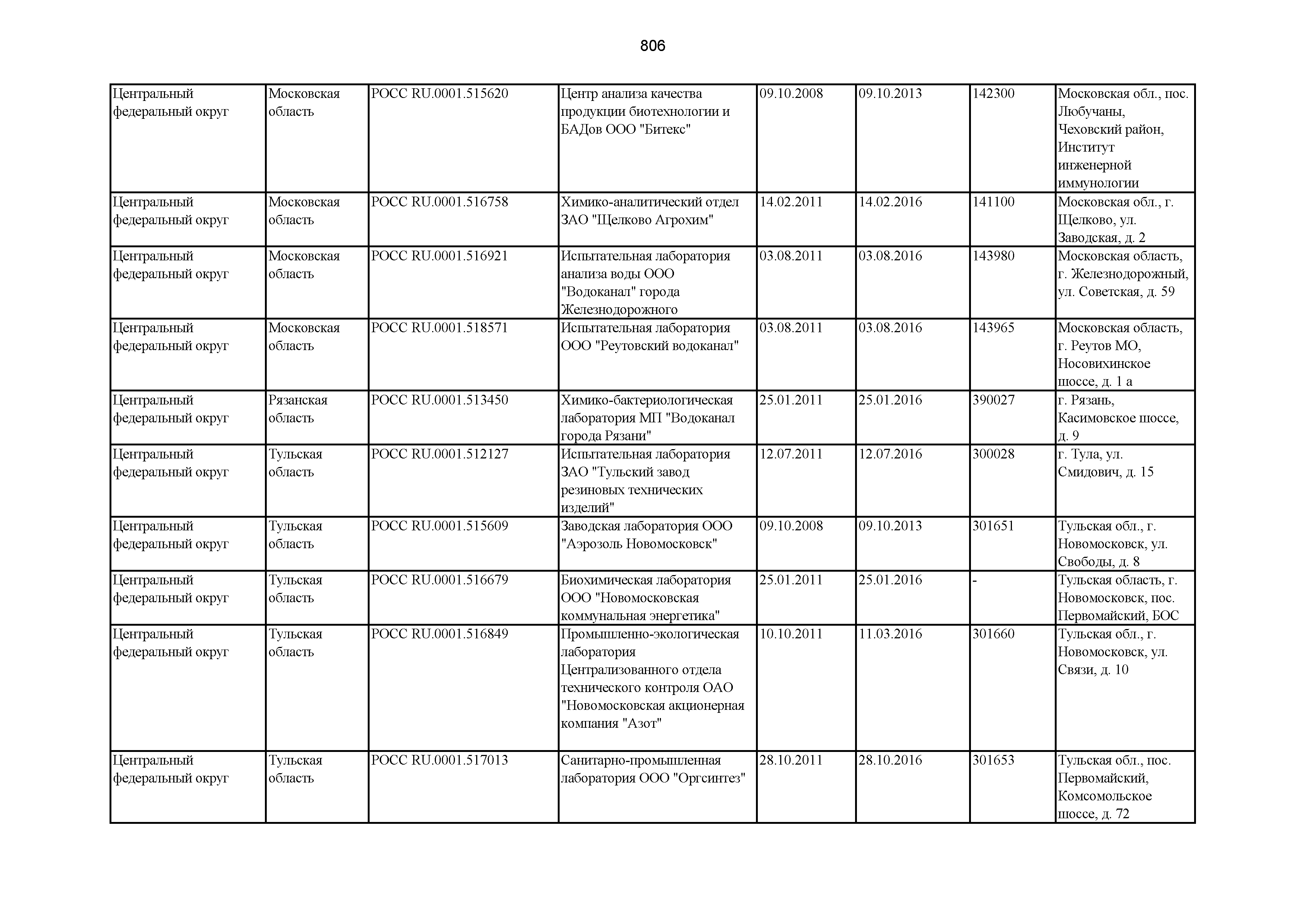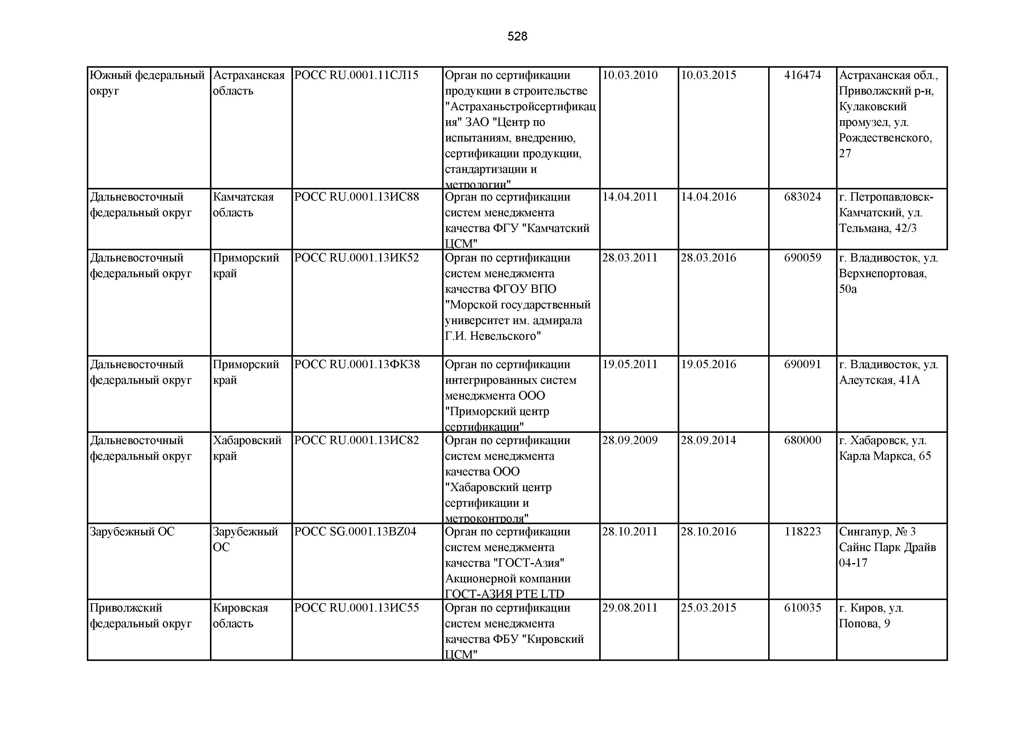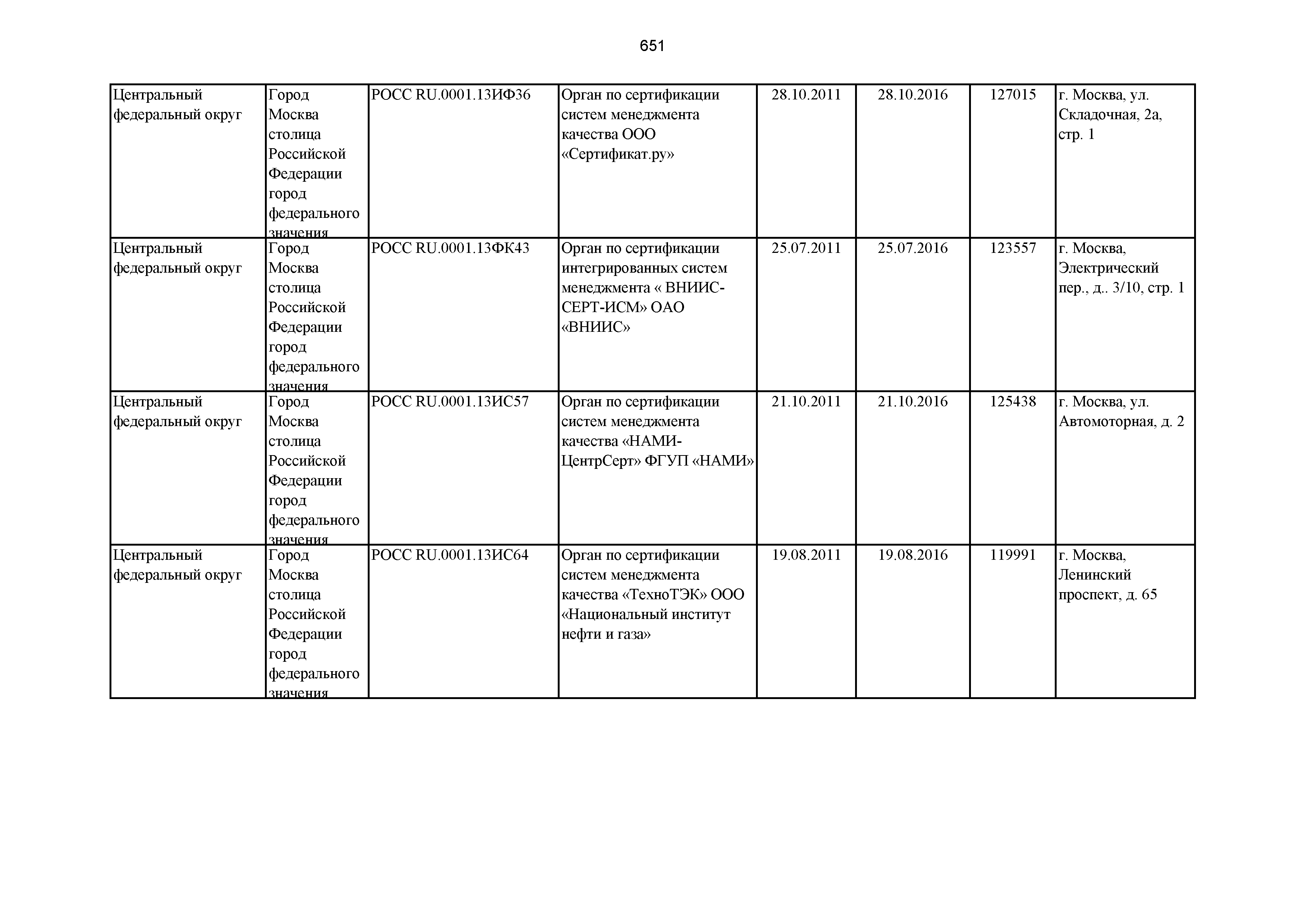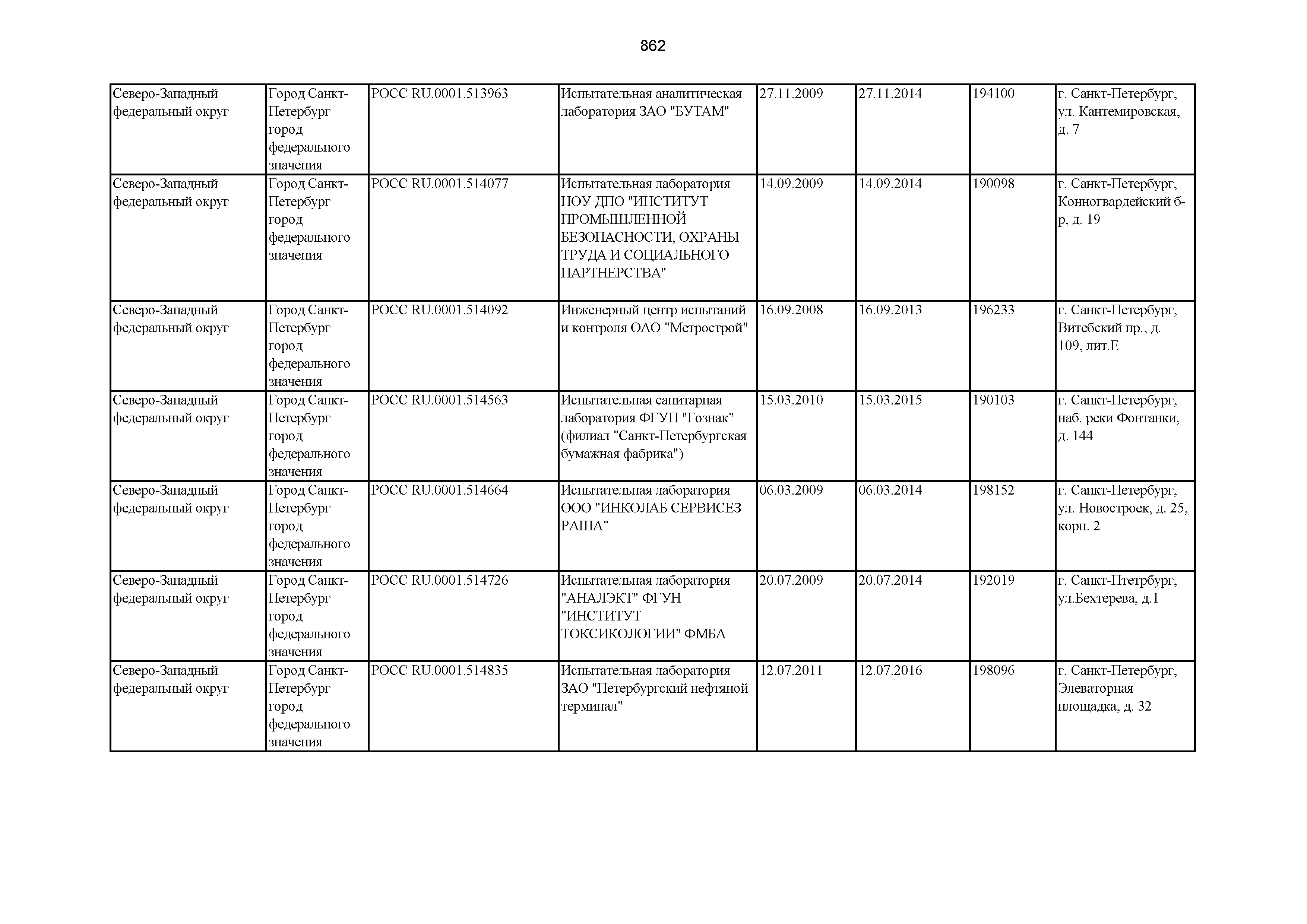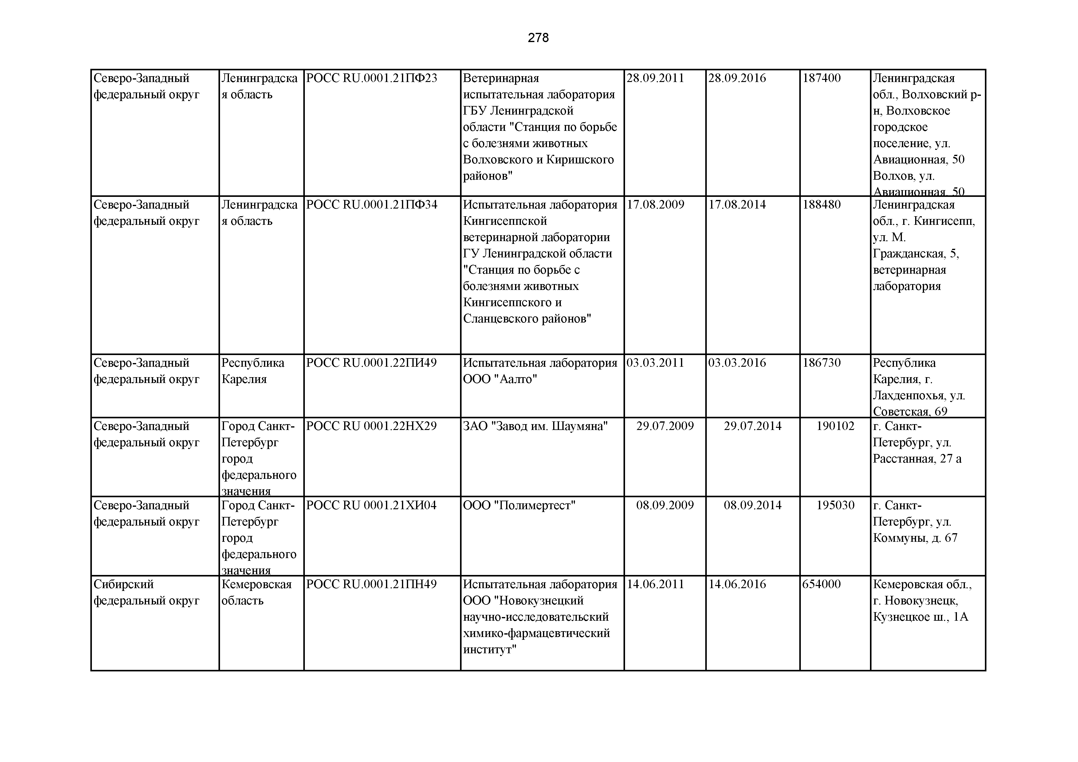 | Оглавление: | Приложение 1. План инспекционного контроля деятельности аккредитованных испытательных лабораторий (центров) и метрологической службы на 2012 год Приложение 2. План инспекционного контроля деятельности аккредитованных Органов по сертификации на 2012 год Приложение 3. План инспекционного контроля деятельности аналитических лабораторий (центров) на 2012 год Приложение 4. План инспекционного контроля в области обеспечения пожарной безопасности на 2012 год Приложение 5. План инспекционного контроля в области связи на 2012 год Приложение 6. План инспекционного контроля в области железнодорожного транспорта на 2012 год |