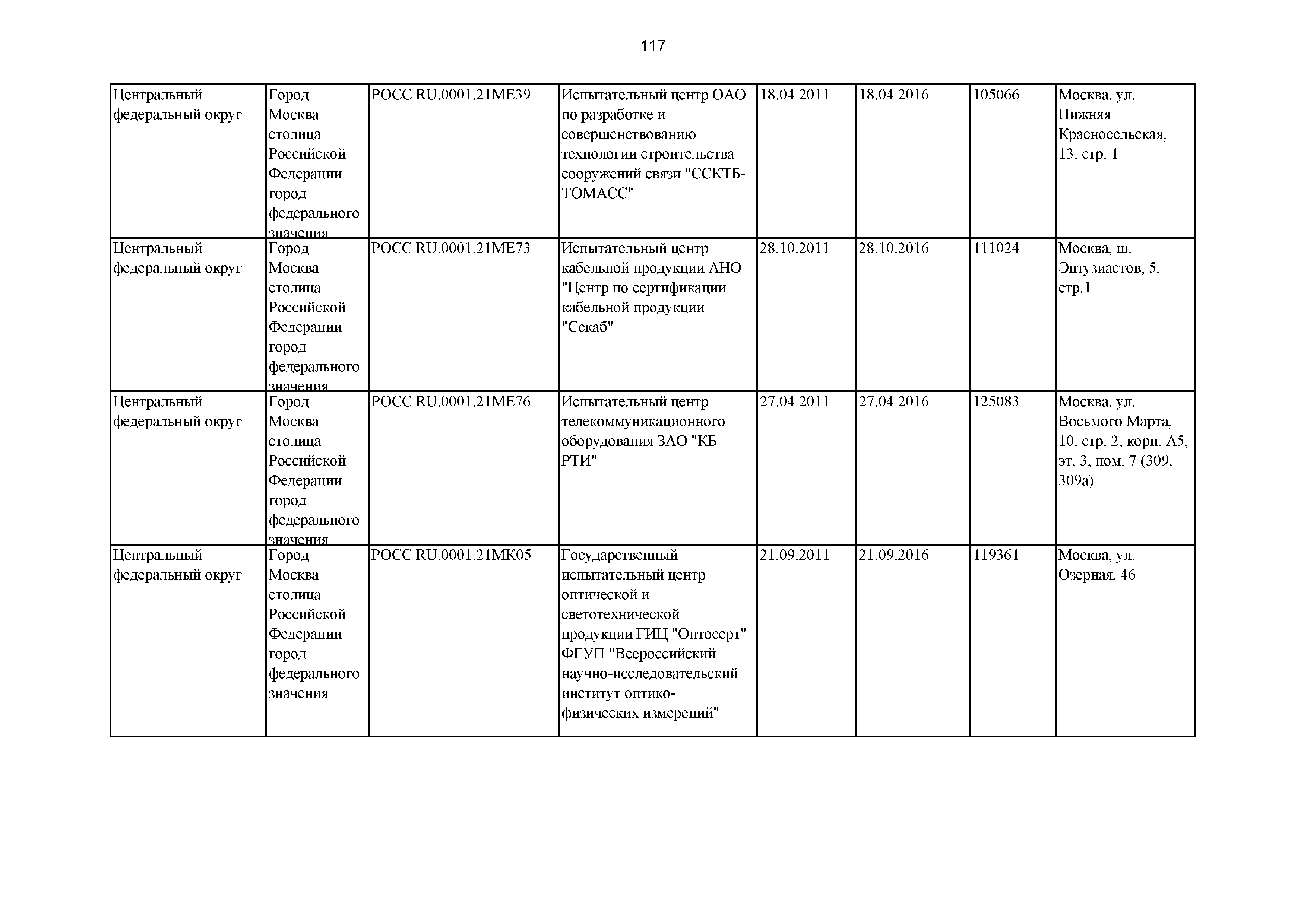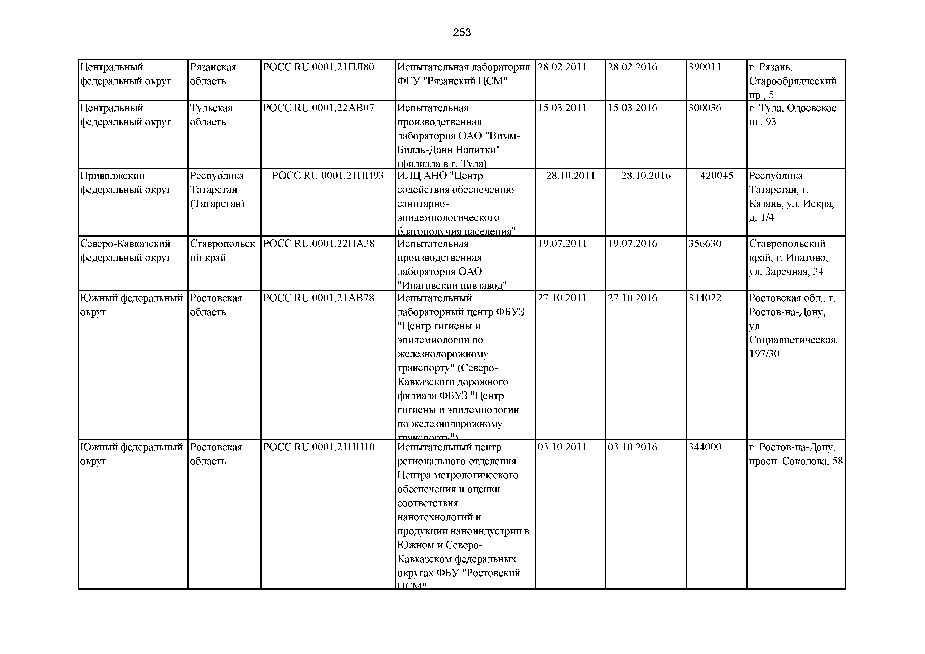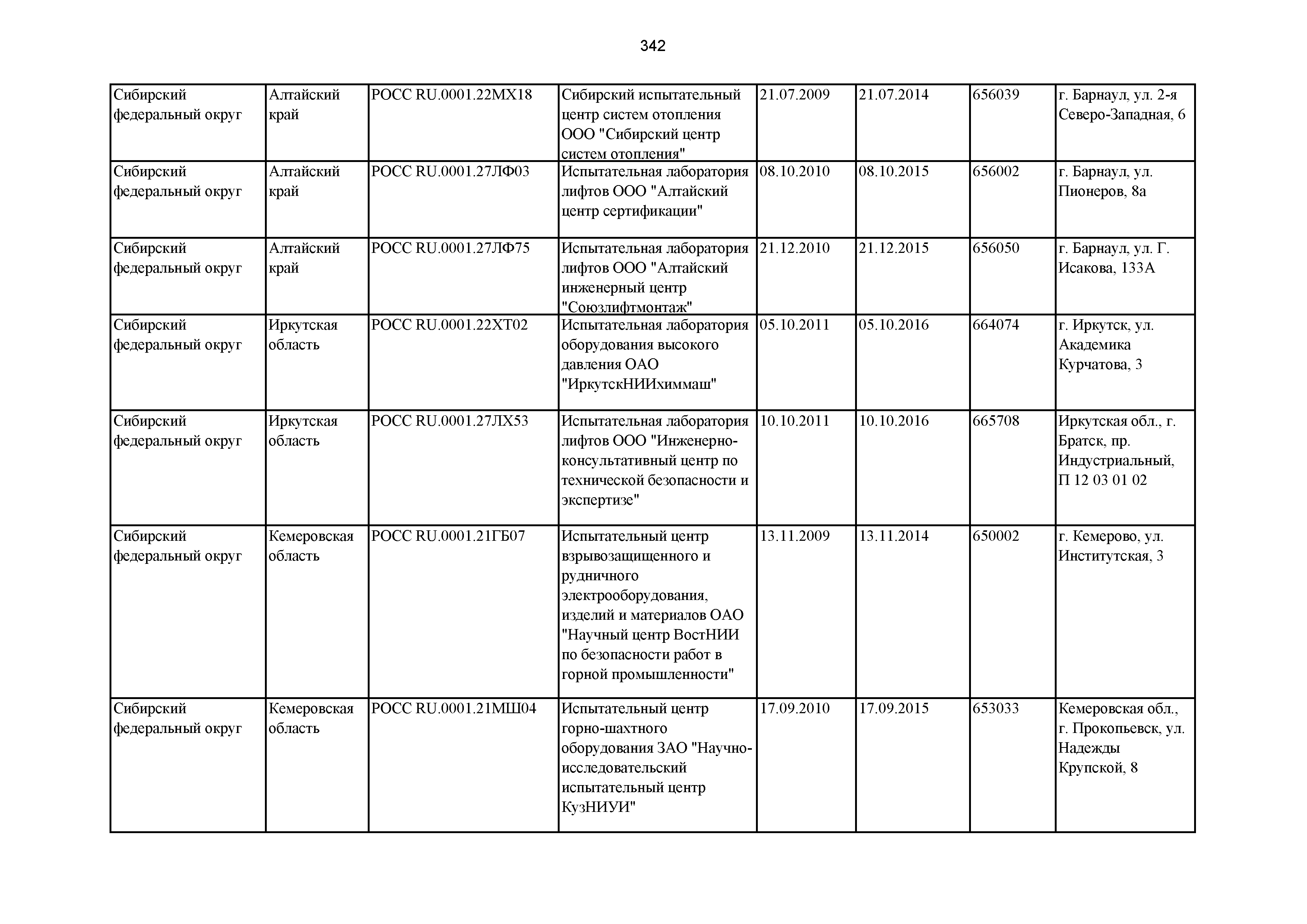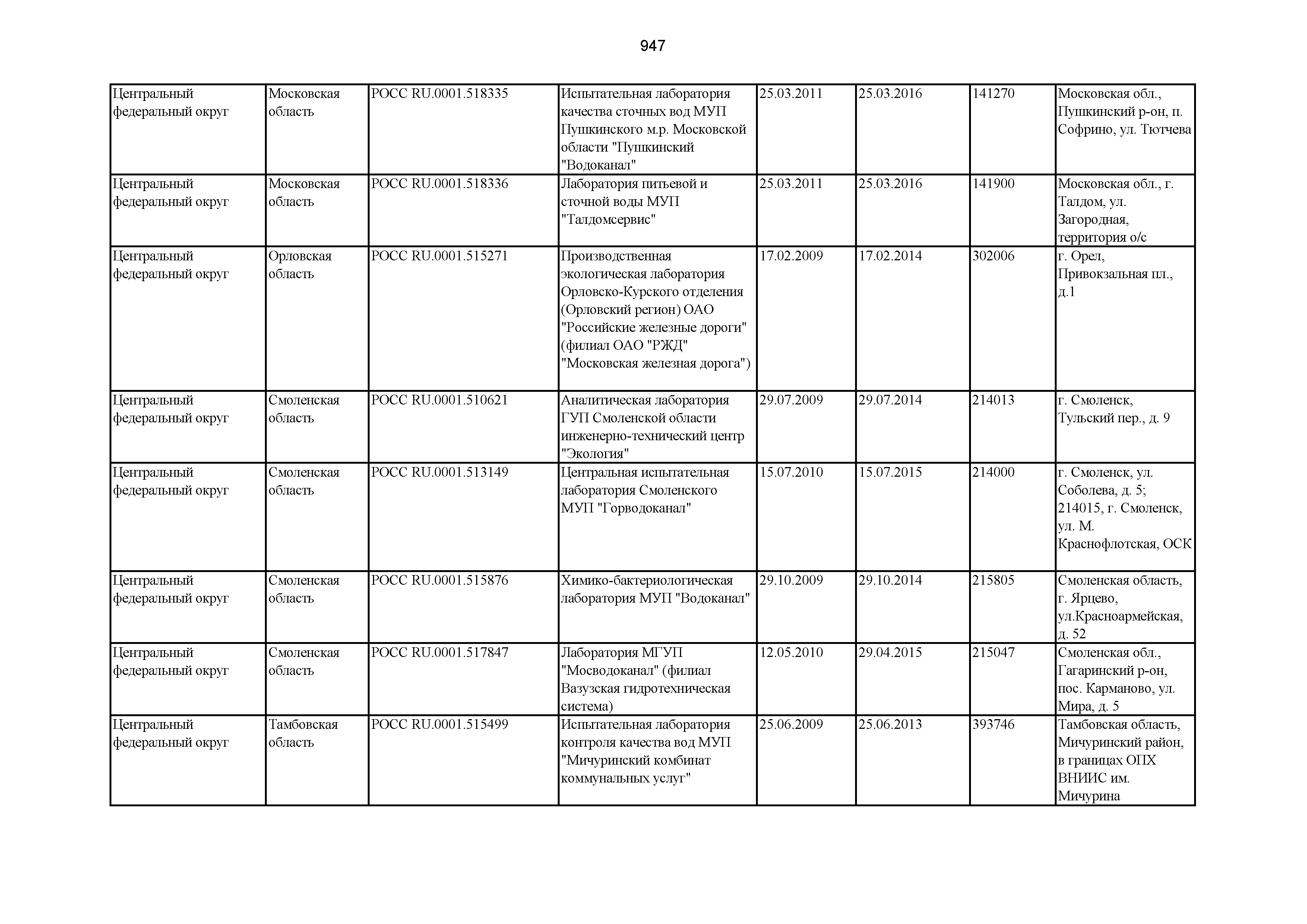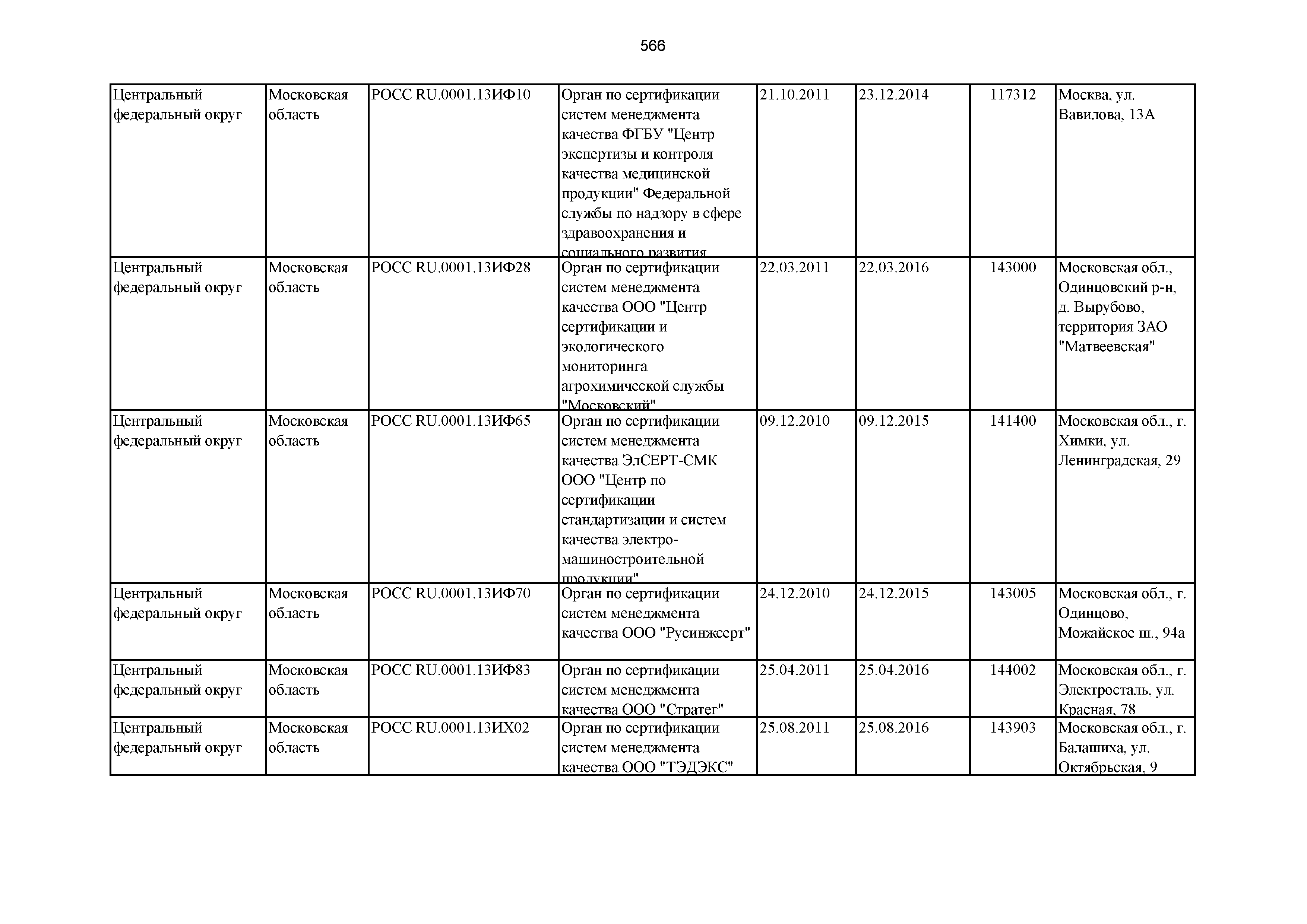 | Оглавление: | Приложение 1. План инспекционного контроля деятельности аккредитованных испытательных лабораторий (центров) и метрологической службы на 2012 год Приложение 2. План инспекционного контроля деятельности аккредитованных Органов по сертификации на 2012 год Приложение 3. План инспекционного контроля деятельности аналитических лабораторий (центров) на 2012 год Приложение 4. План инспекционного контроля в области обеспечения пожарной безопасности на 2012 год Приложение 5. План инспекционного контроля в области связи на 2012 год Приложение 6. План инспекционного контроля в области железнодорожного транспорта на 2012 год |