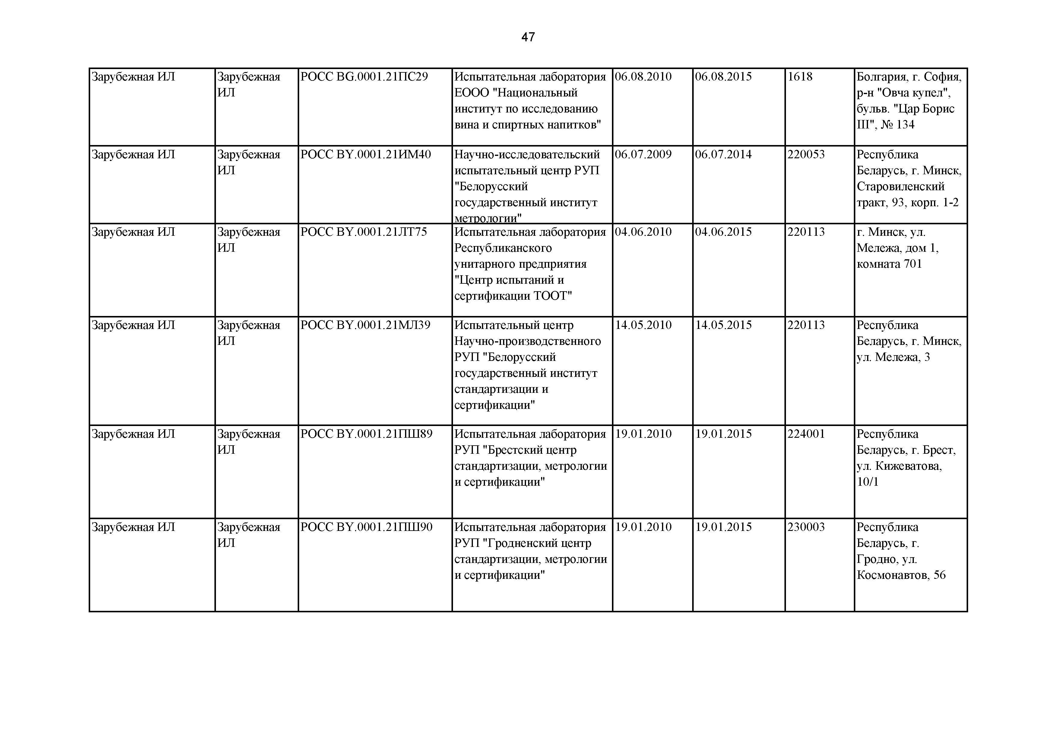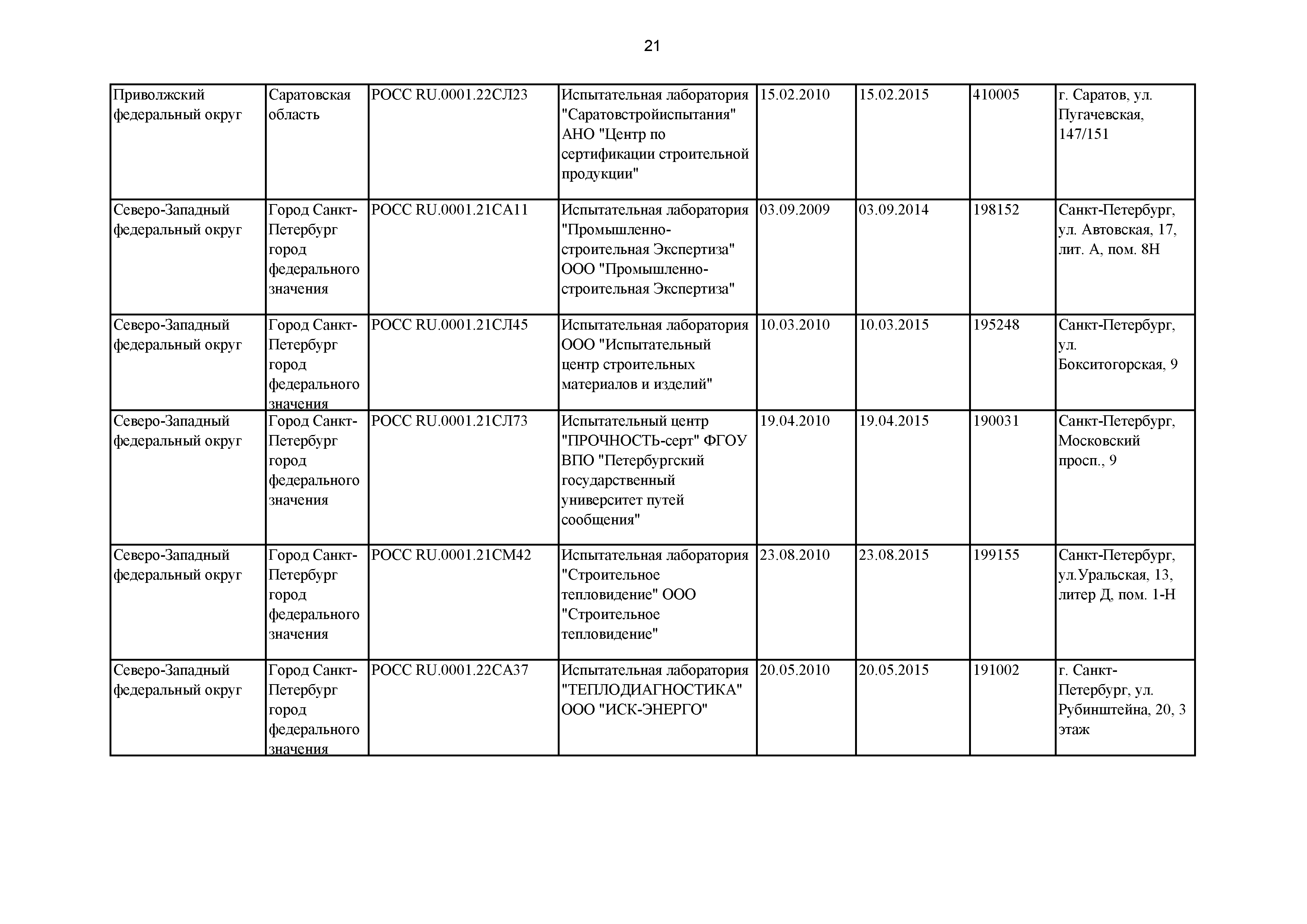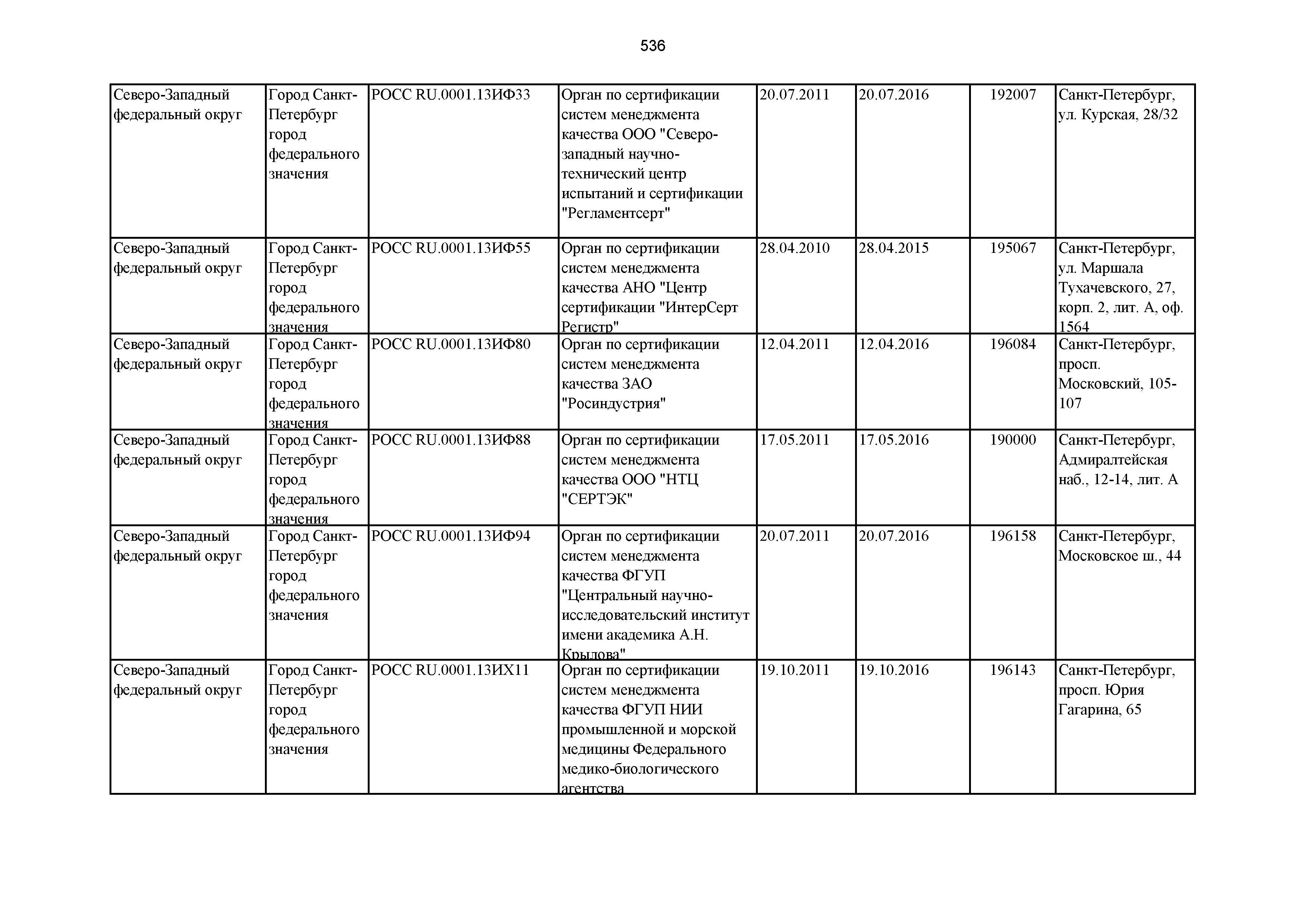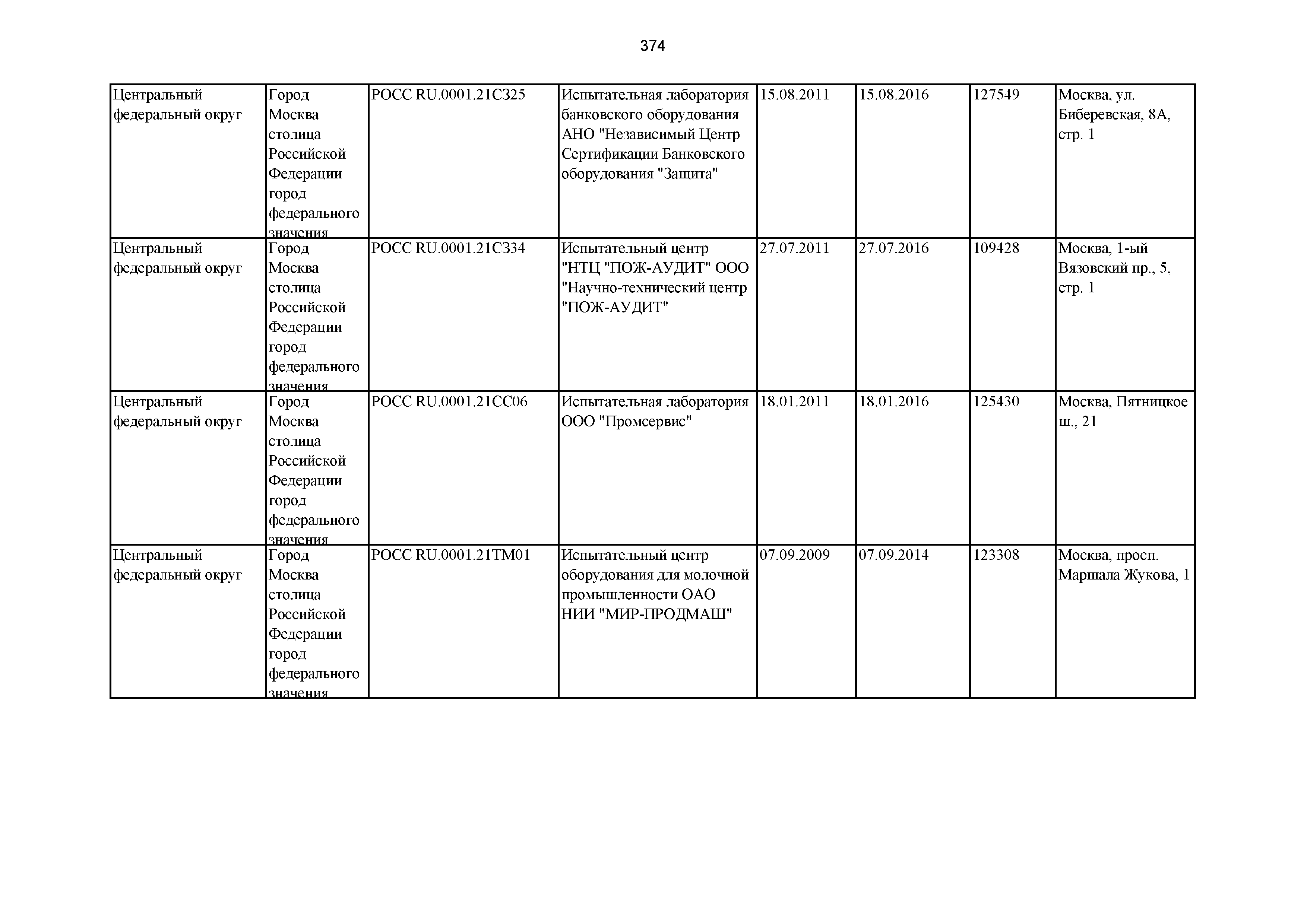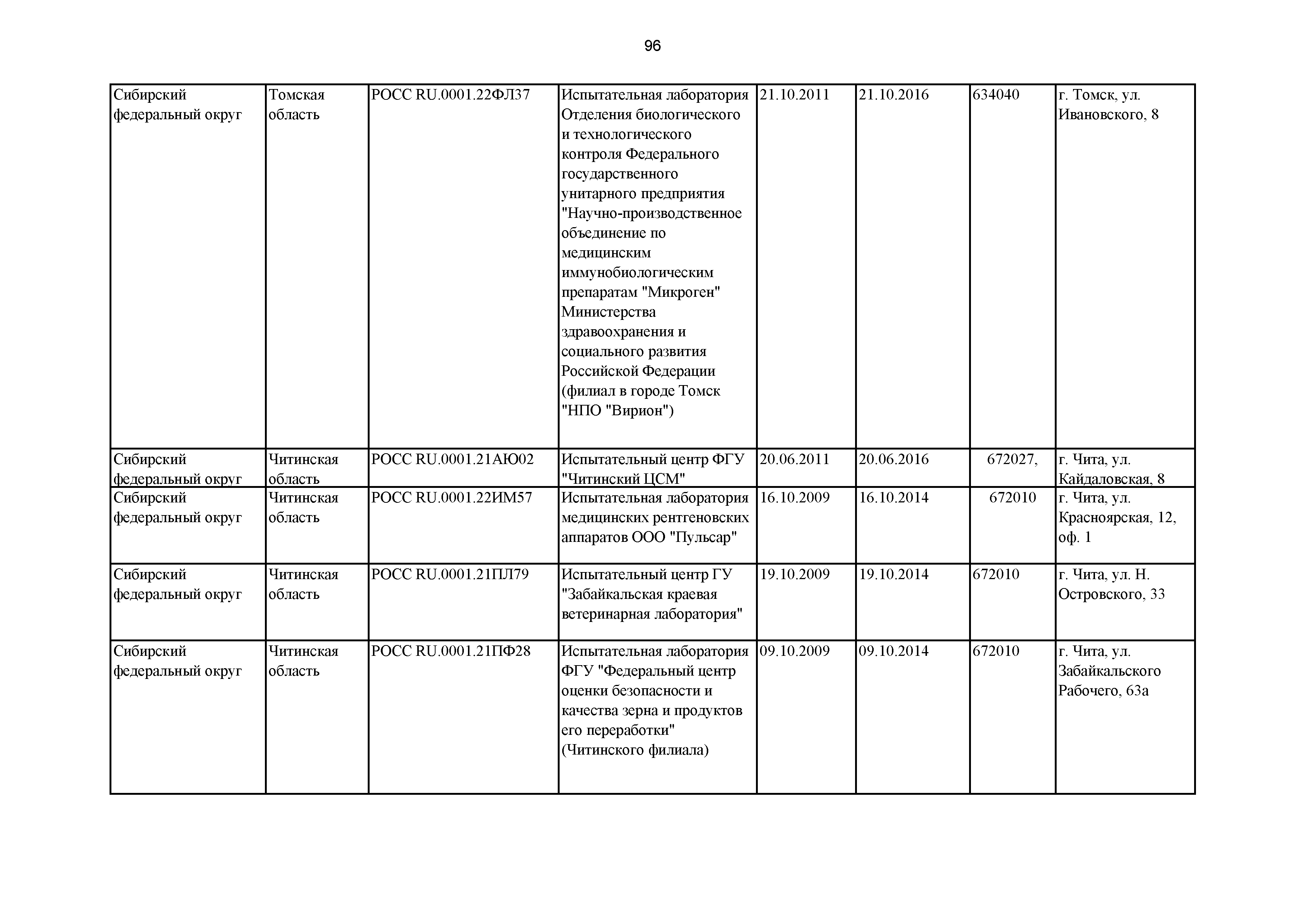 | Оглавление: | Приложение 1. План инспекционного контроля деятельности аккредитованных испытательных лабораторий (центров) и метрологической службы на 2012 год Приложение 2. План инспекционного контроля деятельности аккредитованных Органов по сертификации на 2012 год Приложение 3. План инспекционного контроля деятельности аналитических лабораторий (центров) на 2012 год Приложение 4. План инспекционного контроля в области обеспечения пожарной безопасности на 2012 год Приложение 5. План инспекционного контроля в области связи на 2012 год Приложение 6. План инспекционного контроля в области железнодорожного транспорта на 2012 год |