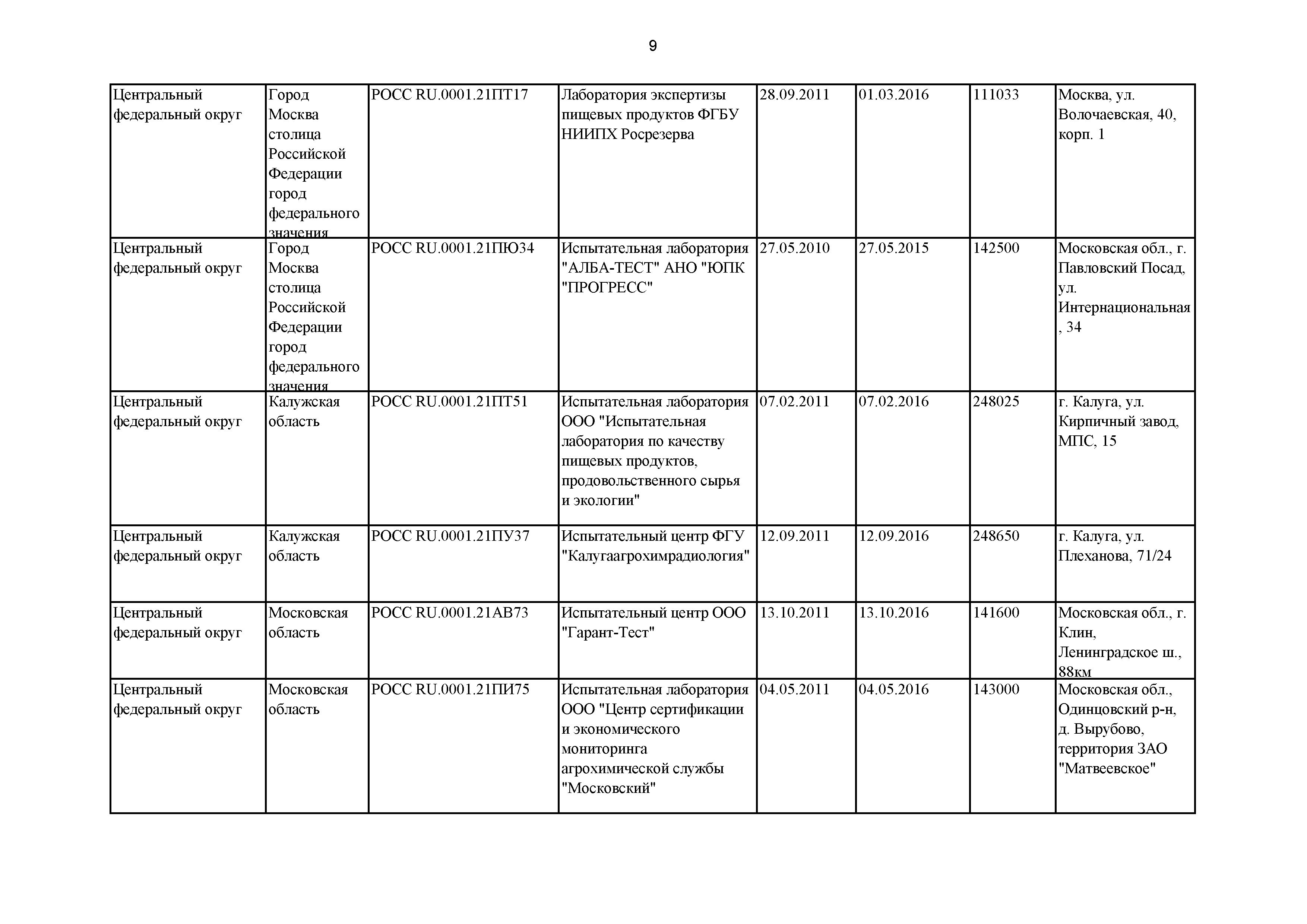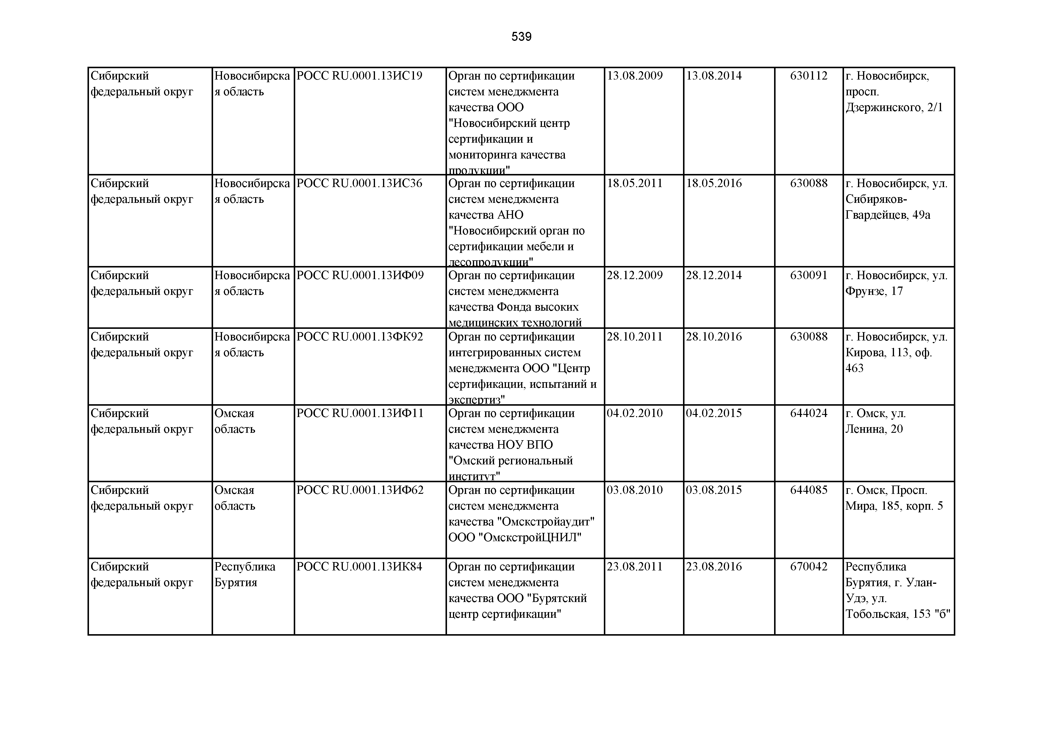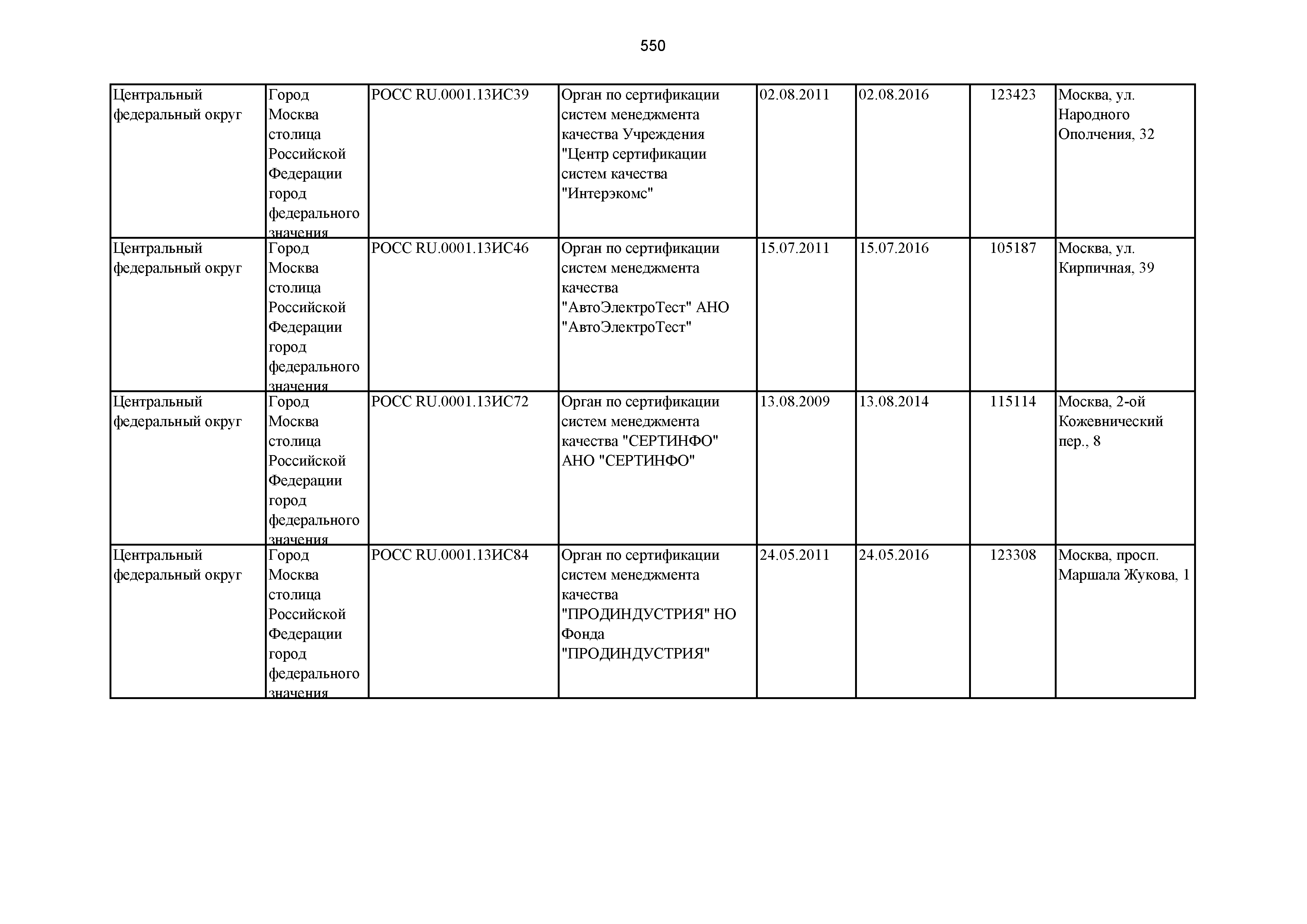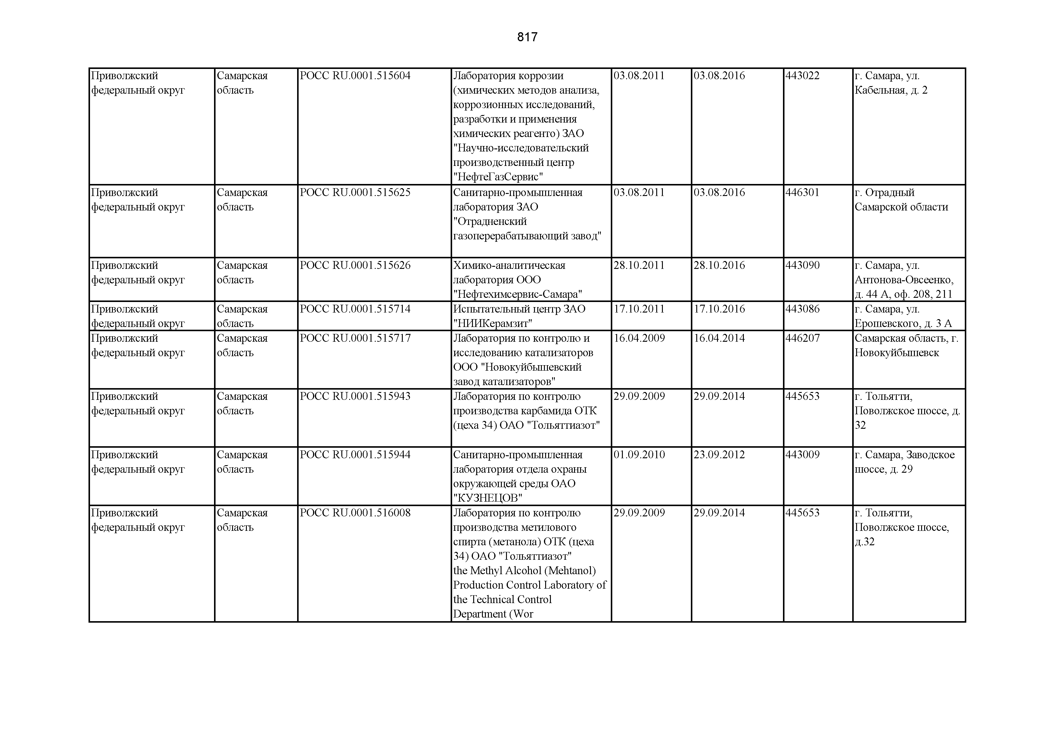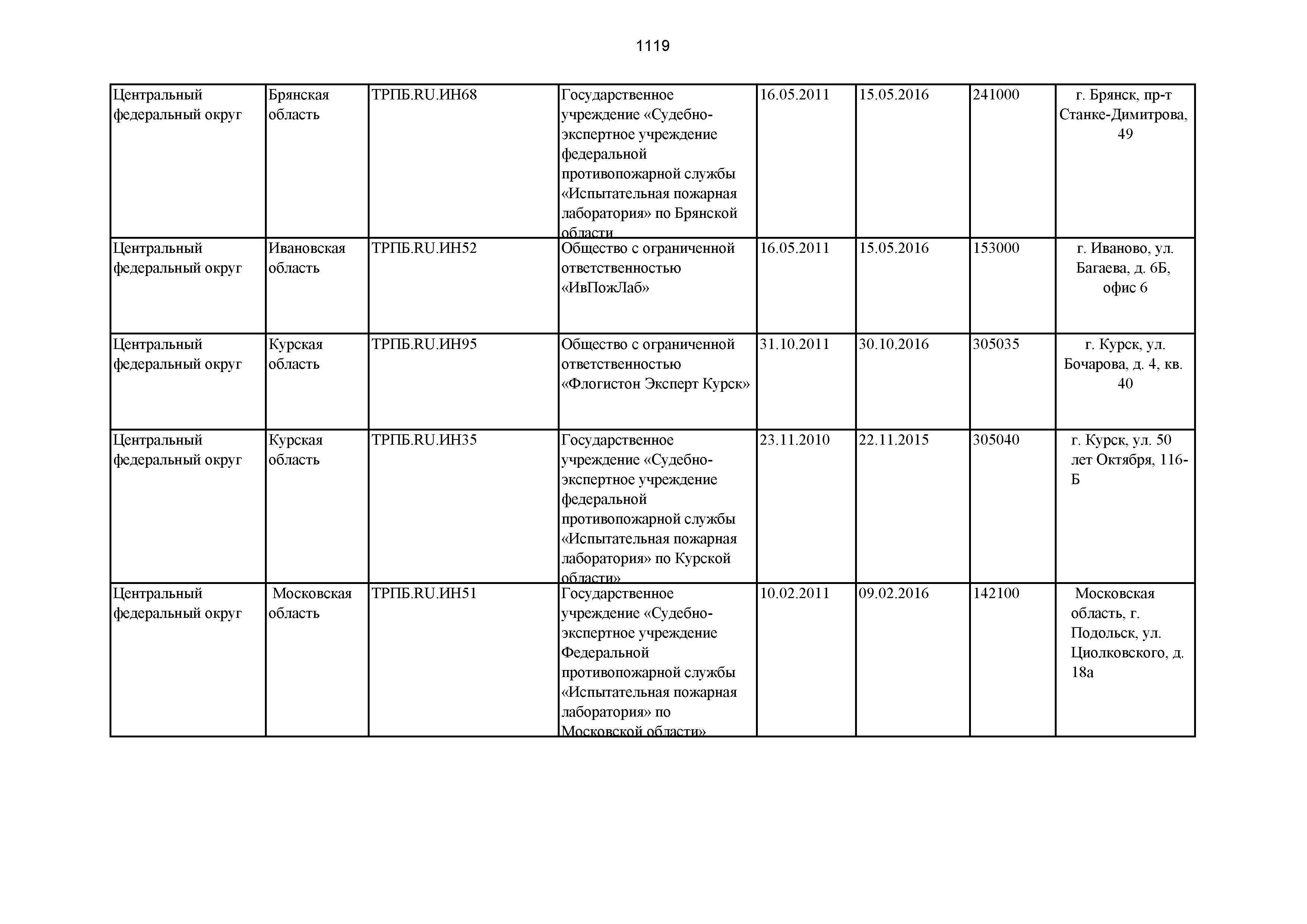 | Оглавление: | Приложение 1. План инспекционного контроля деятельности аккредитованных испытательных лабораторий (центров) и метрологической службы на 2012 год Приложение 2. План инспекционного контроля деятельности аккредитованных Органов по сертификации на 2012 год Приложение 3. План инспекционного контроля деятельности аналитических лабораторий (центров) на 2012 год Приложение 4. План инспекционного контроля в области обеспечения пожарной безопасности на 2012 год Приложение 5. План инспекционного контроля в области связи на 2012 год Приложение 6. План инспекционного контроля в области железнодорожного транспорта на 2012 год |