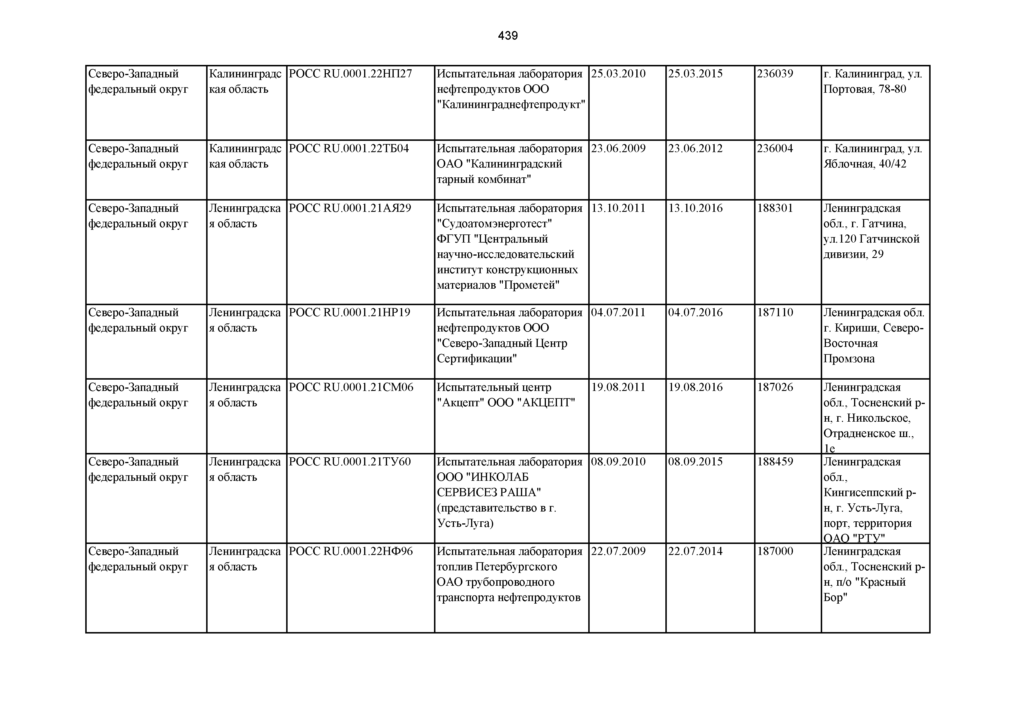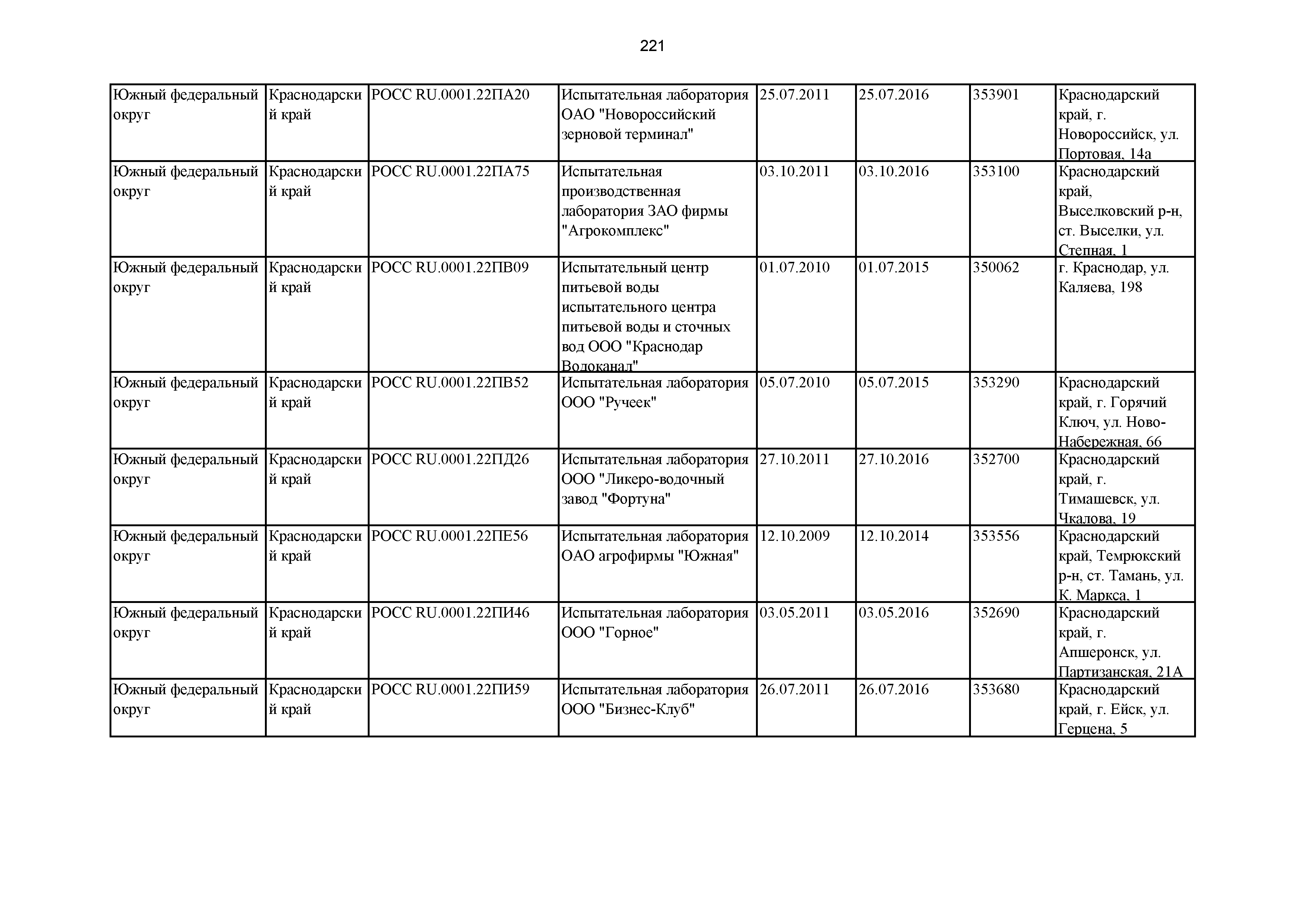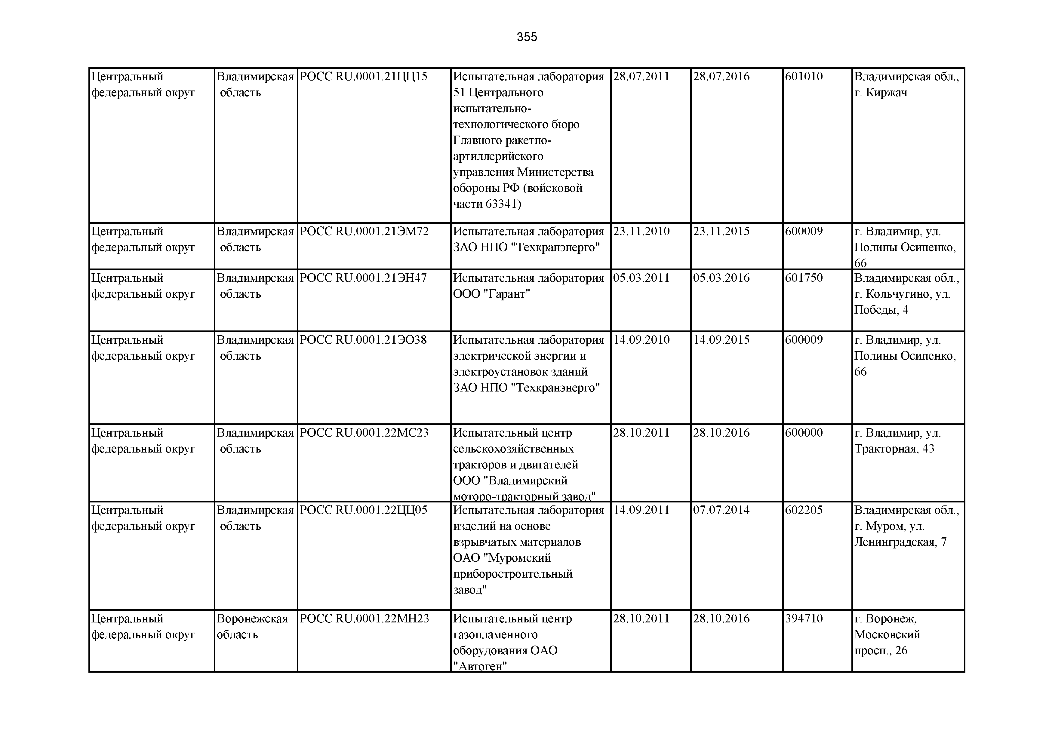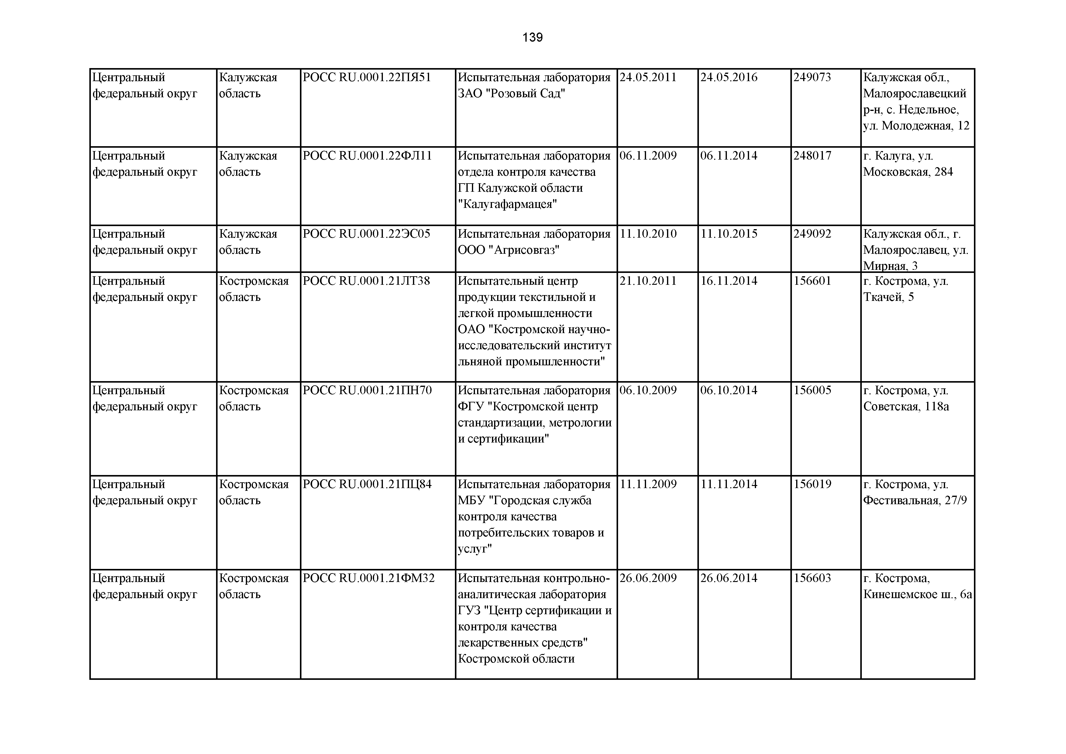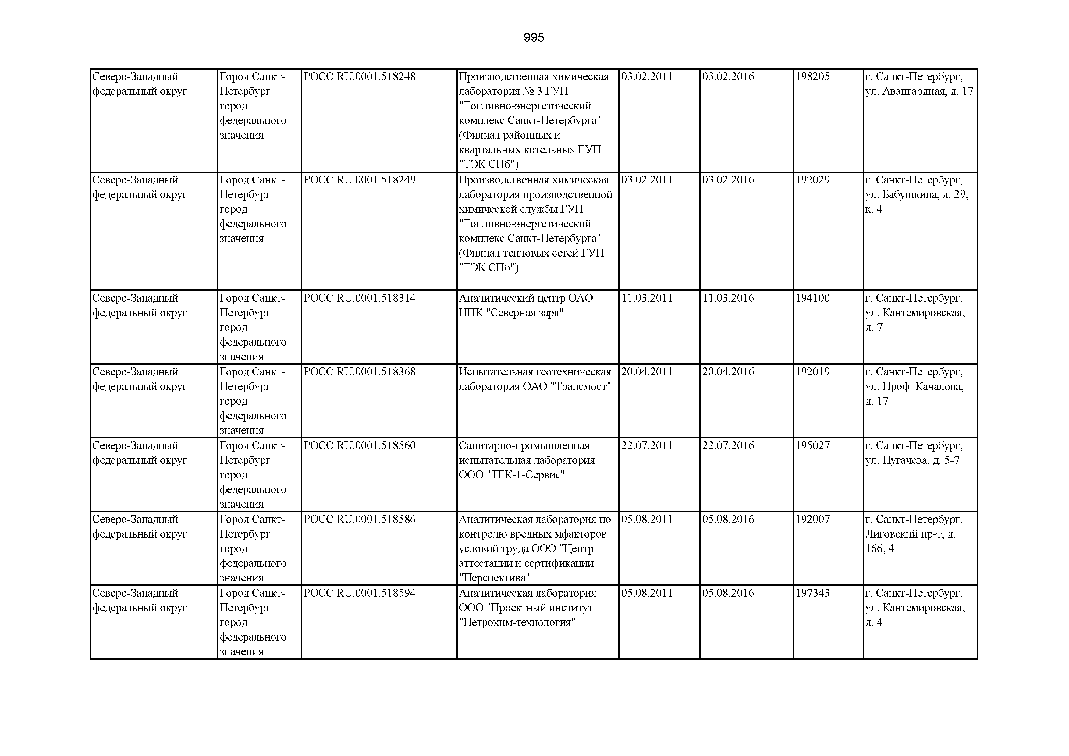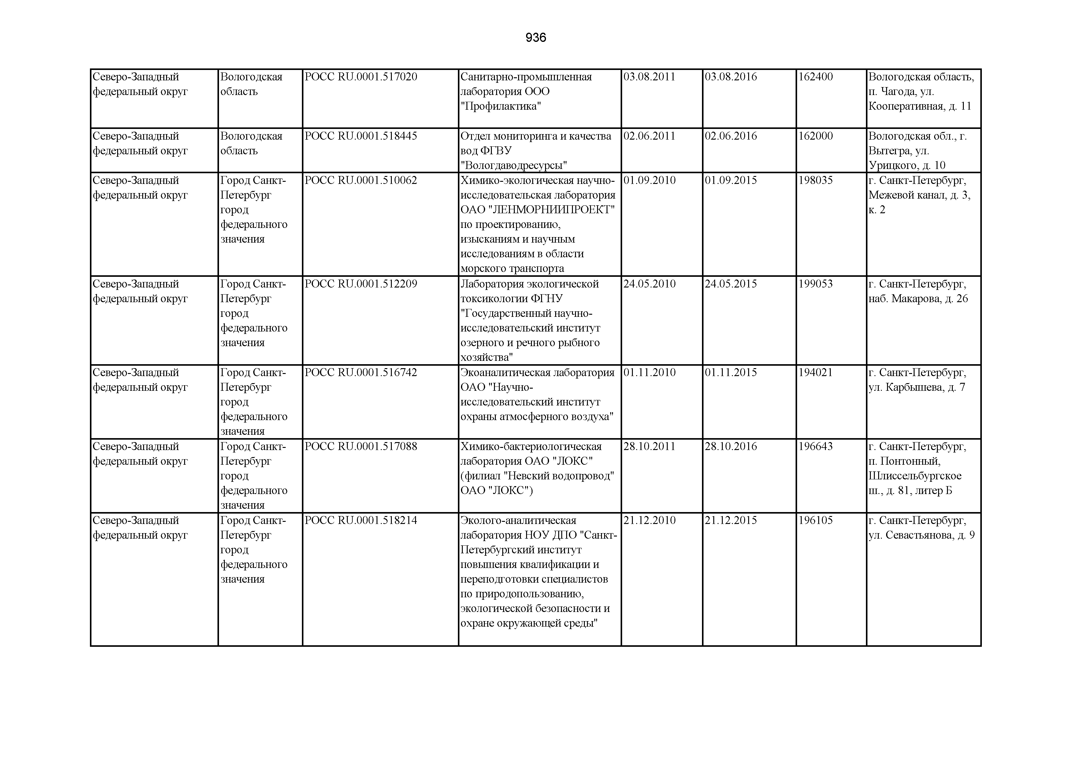 | Оглавление: | Приложение 1. План инспекционного контроля деятельности аккредитованных испытательных лабораторий (центров) и метрологической службы на 2012 год Приложение 2. План инспекционного контроля деятельности аккредитованных Органов по сертификации на 2012 год Приложение 3. План инспекционного контроля деятельности аналитических лабораторий (центров) на 2012 год Приложение 4. План инспекционного контроля в области обеспечения пожарной безопасности на 2012 год Приложение 5. План инспекционного контроля в области связи на 2012 год Приложение 6. План инспекционного контроля в области железнодорожного транспорта на 2012 год |