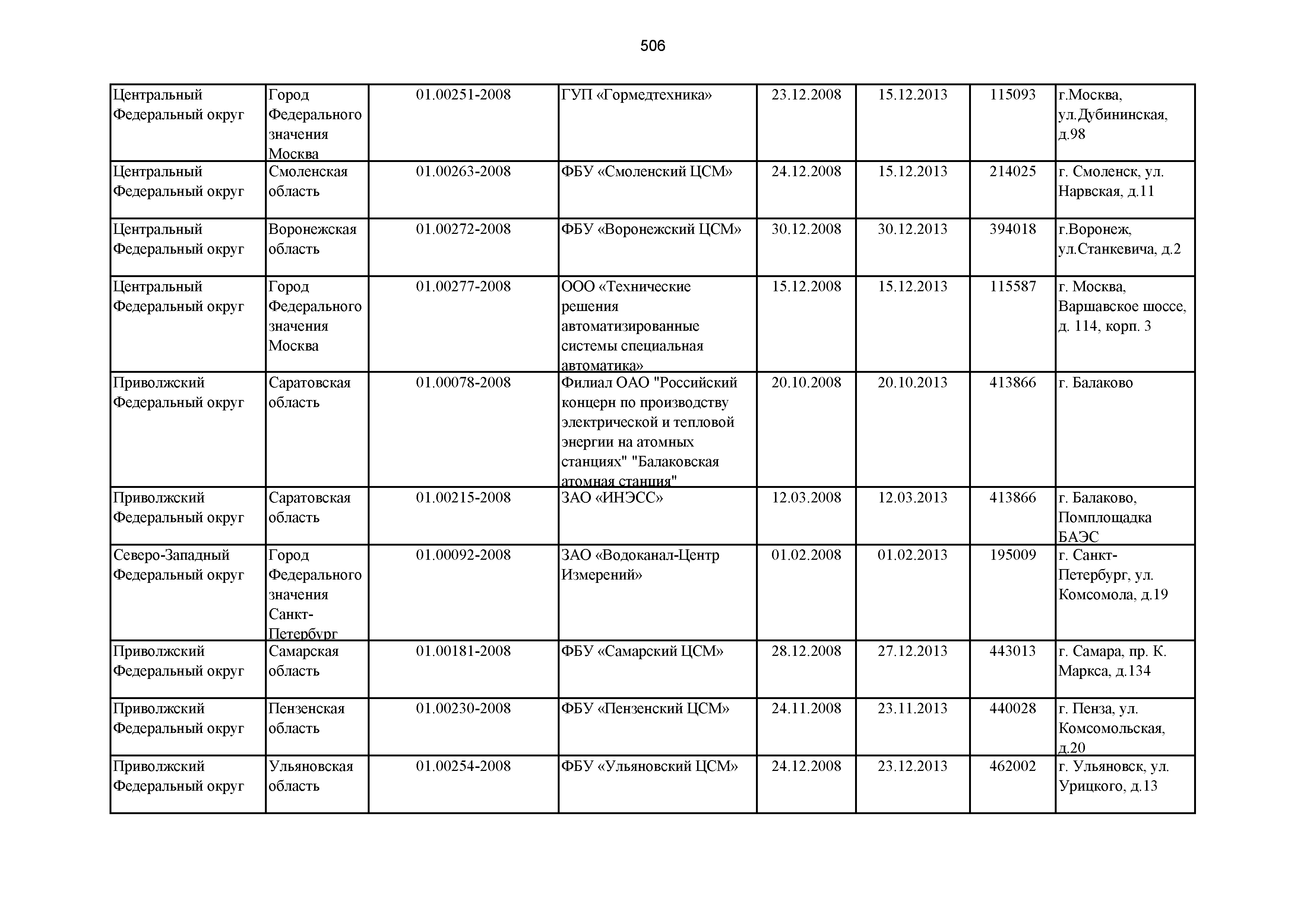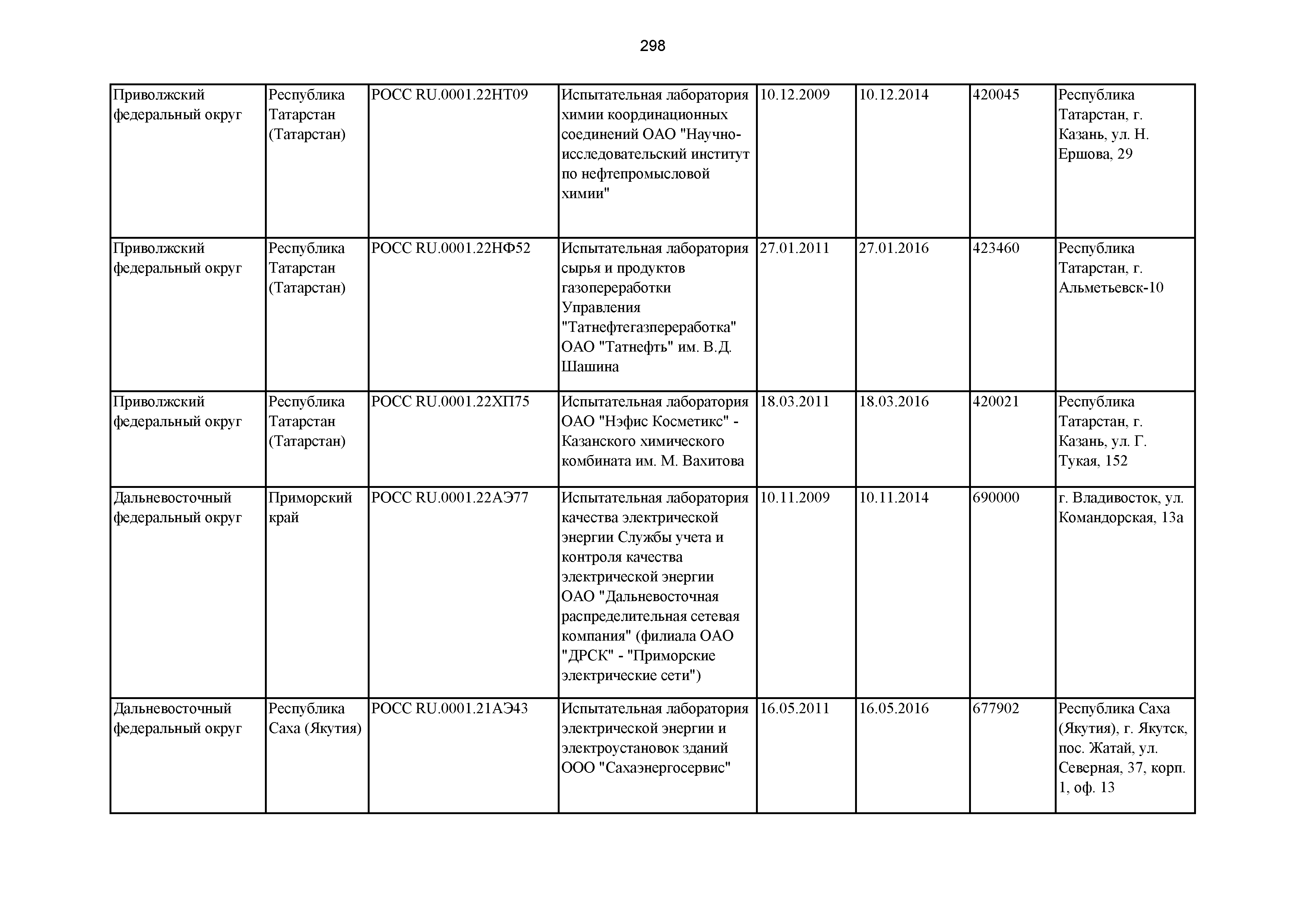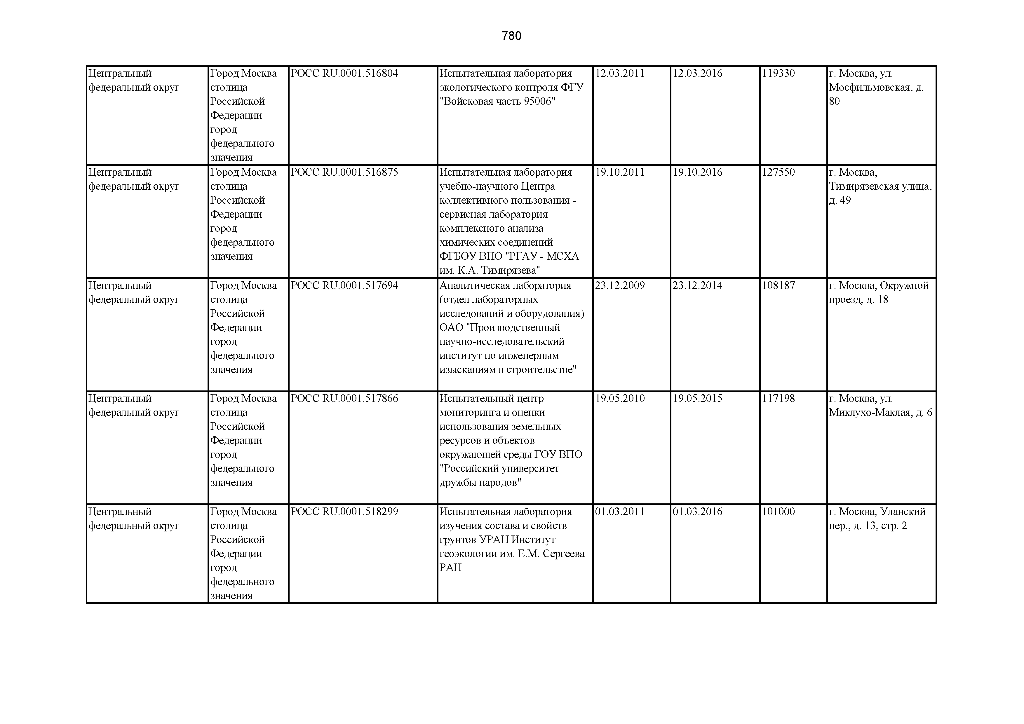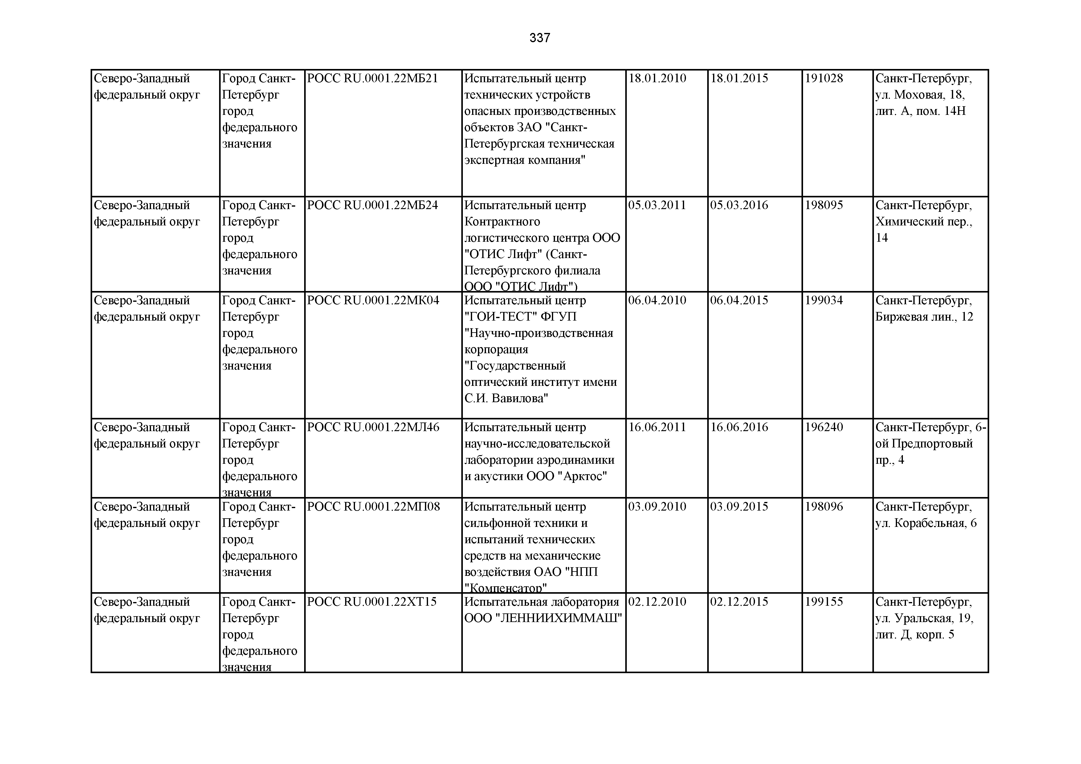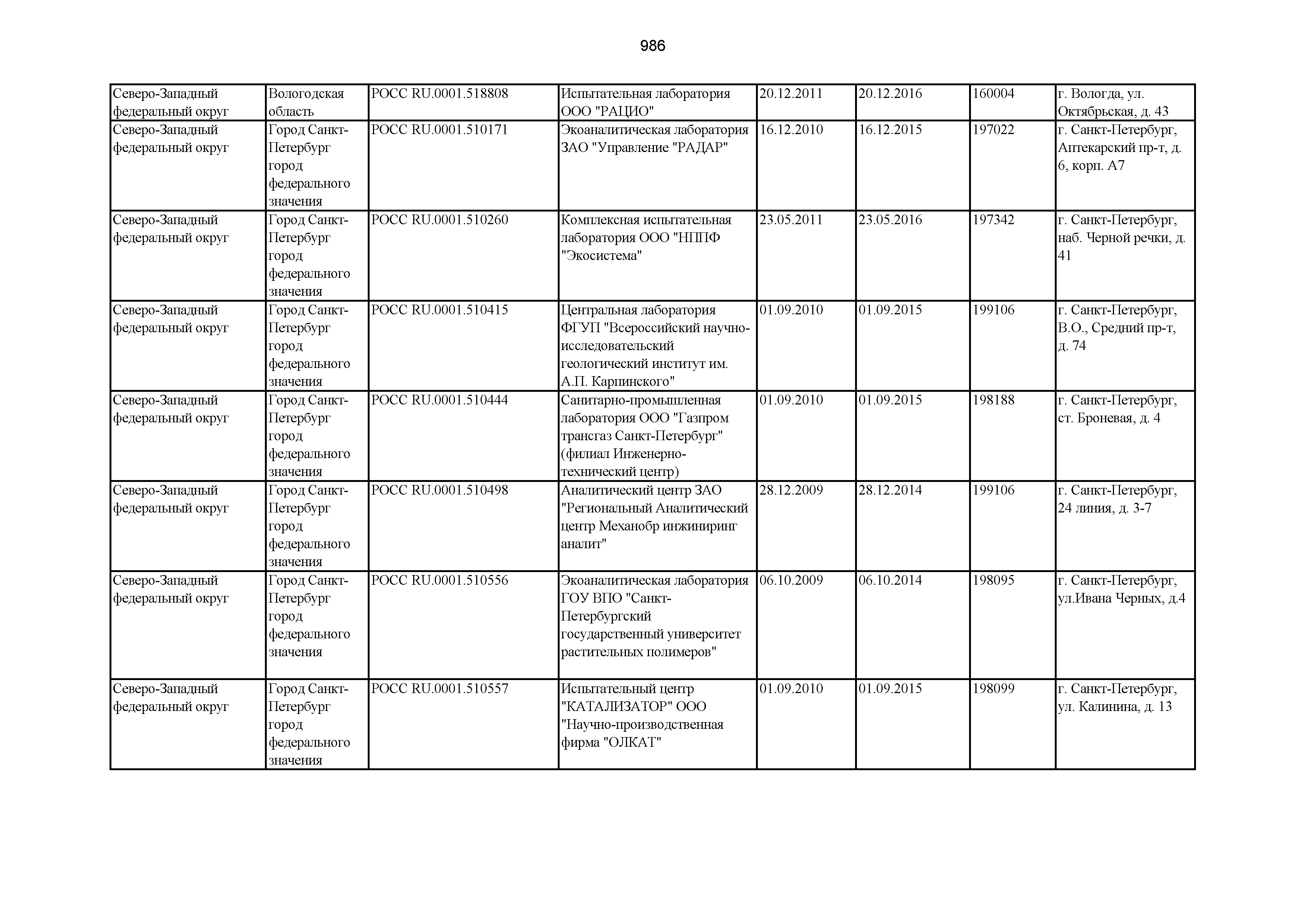 | Оглавление: | Приложение 1. План инспекционного контроля деятельности аккредитованных испытательных лабораторий (центров) и метрологической службы на 2012 год Приложение 2. План инспекционного контроля деятельности аккредитованных Органов по сертификации на 2012 год Приложение 3. План инспекционного контроля деятельности аналитических лабораторий (центров) на 2012 год Приложение 4. План инспекционного контроля в области обеспечения пожарной безопасности на 2012 год Приложение 5. План инспекционного контроля в области связи на 2012 год Приложение 6. План инспекционного контроля в области железнодорожного транспорта на 2012 год |