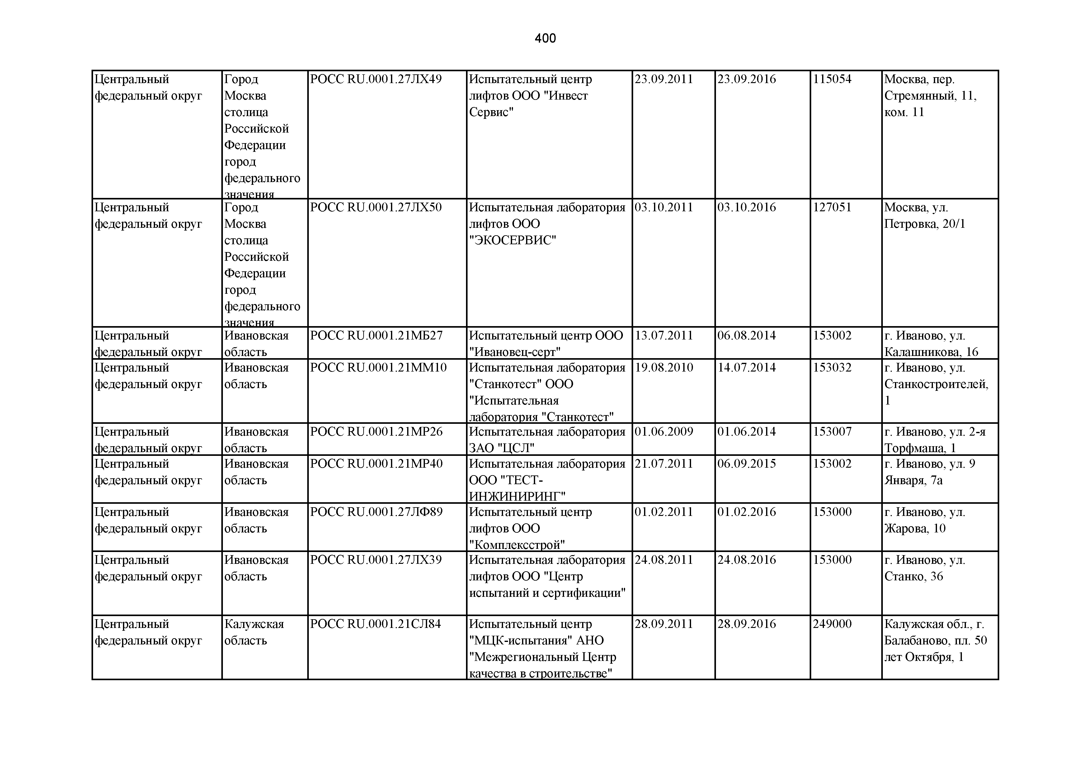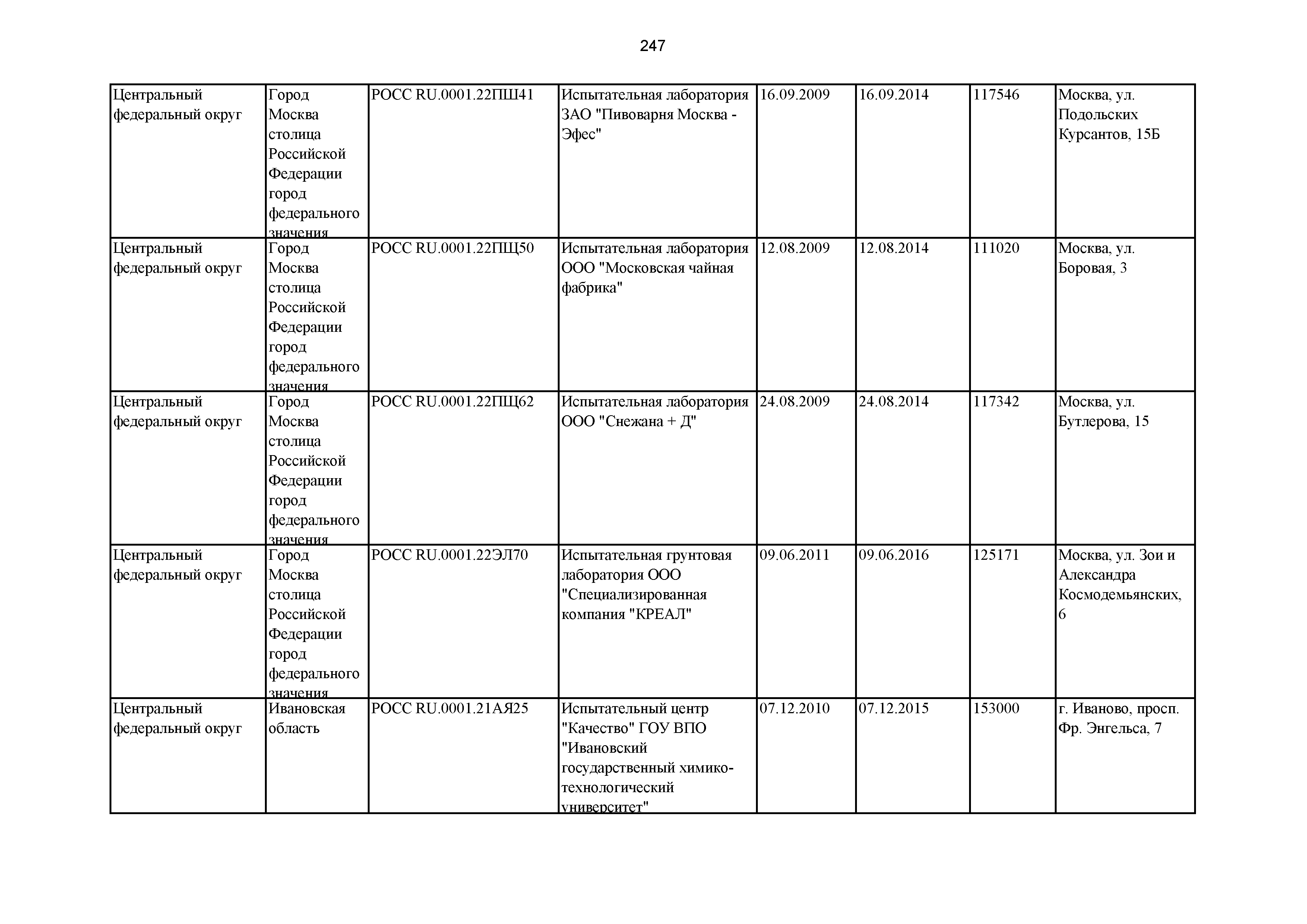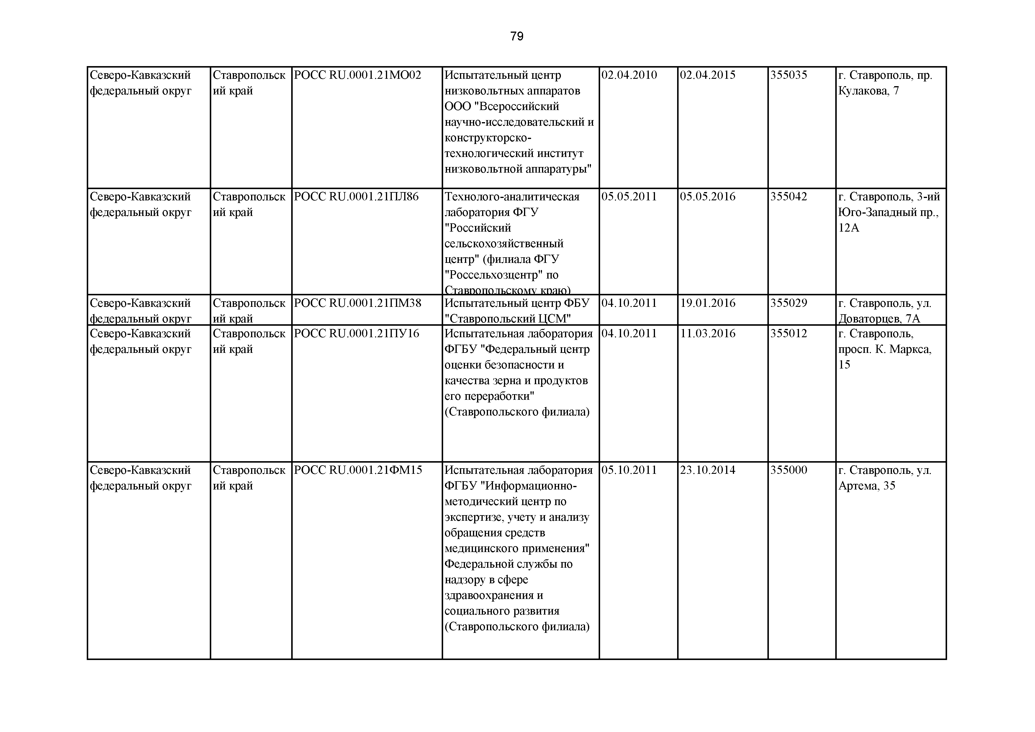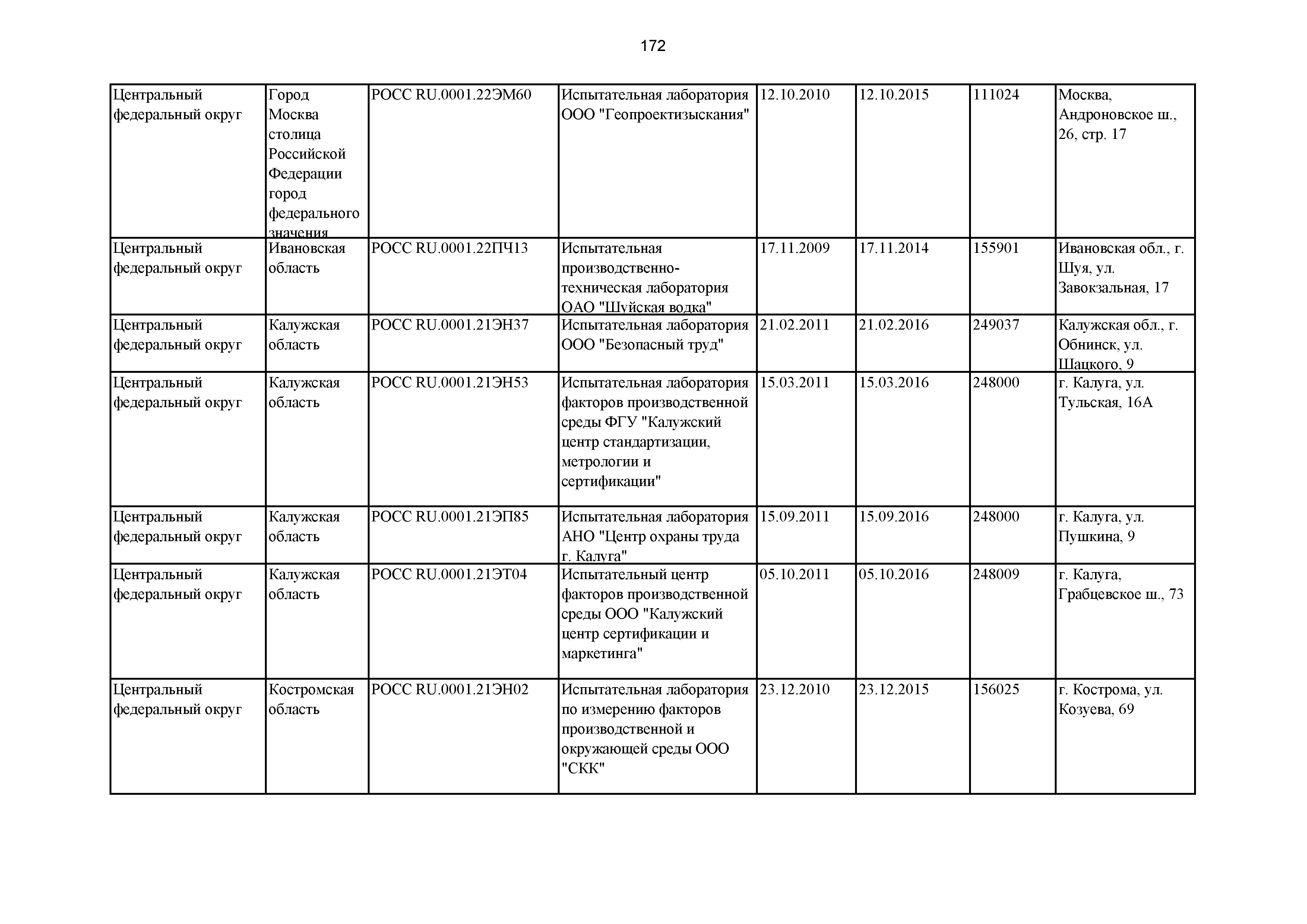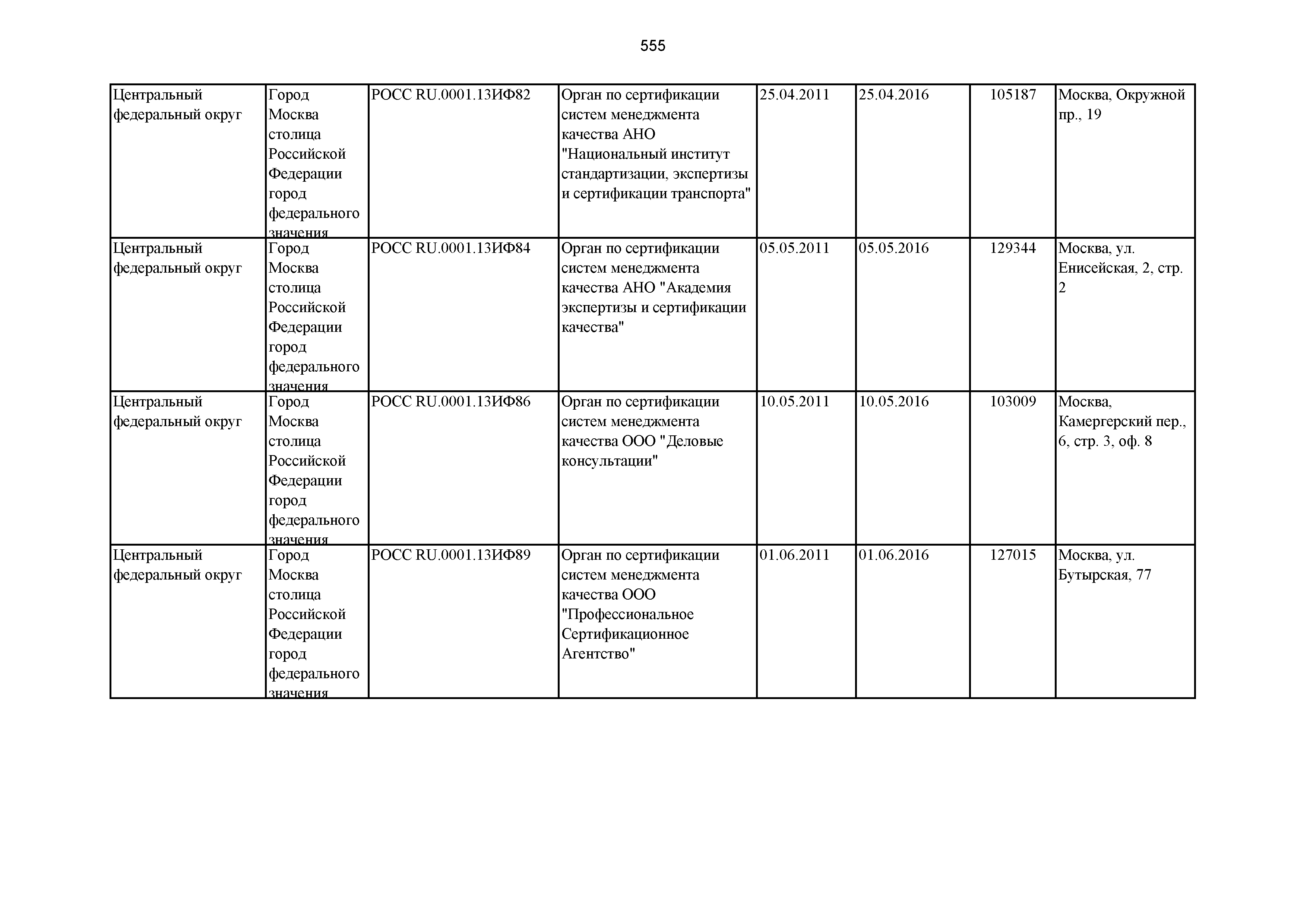 | Оглавление: | Приложение 1. План инспекционного контроля деятельности аккредитованных испытательных лабораторий (центров) и метрологической службы на 2012 год Приложение 2. План инспекционного контроля деятельности аккредитованных Органов по сертификации на 2012 год Приложение 3. План инспекционного контроля деятельности аналитических лабораторий (центров) на 2012 год Приложение 4. План инспекционного контроля в области обеспечения пожарной безопасности на 2012 год Приложение 5. План инспекционного контроля в области связи на 2012 год Приложение 6. План инспекционного контроля в области железнодорожного транспорта на 2012 год |