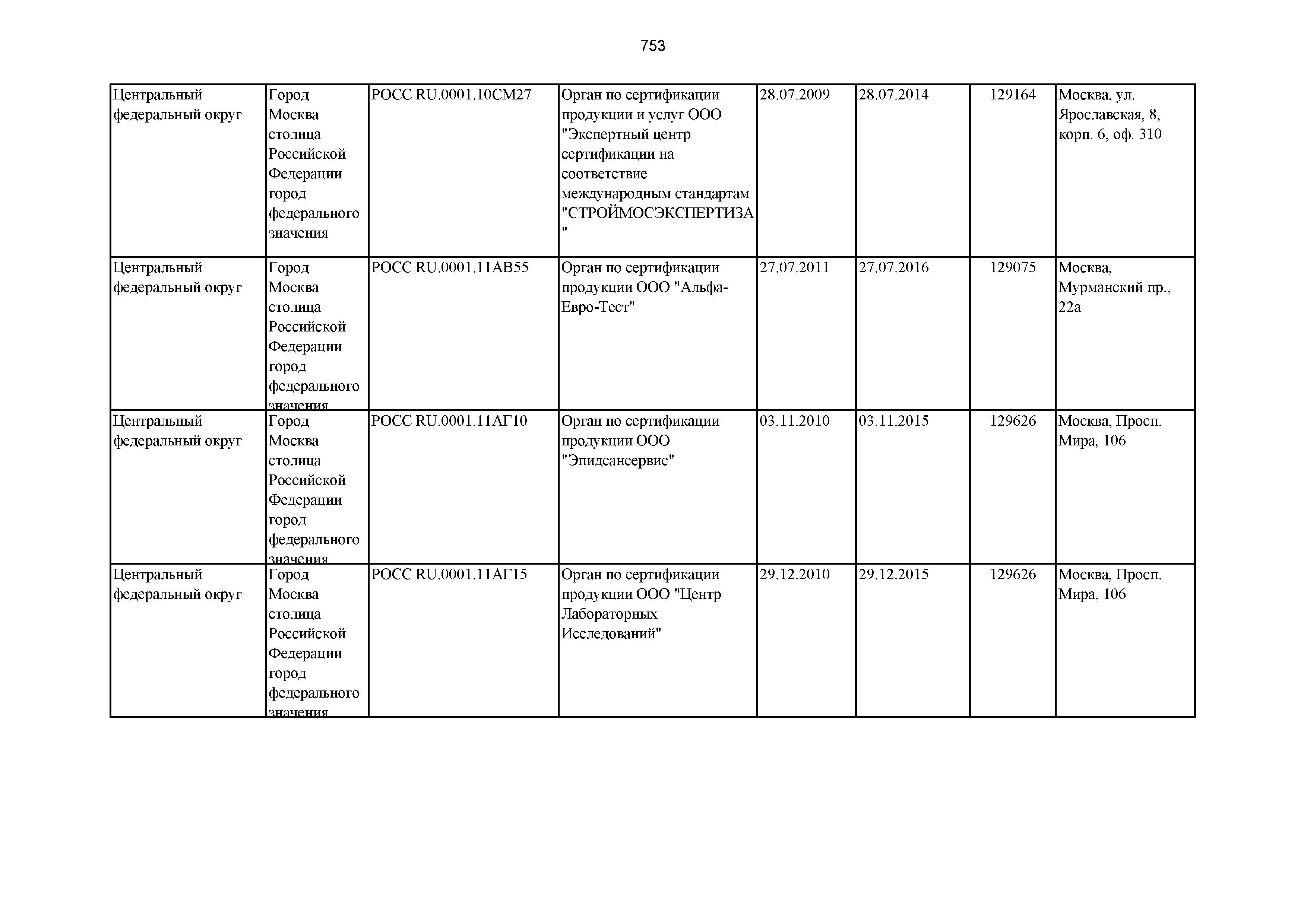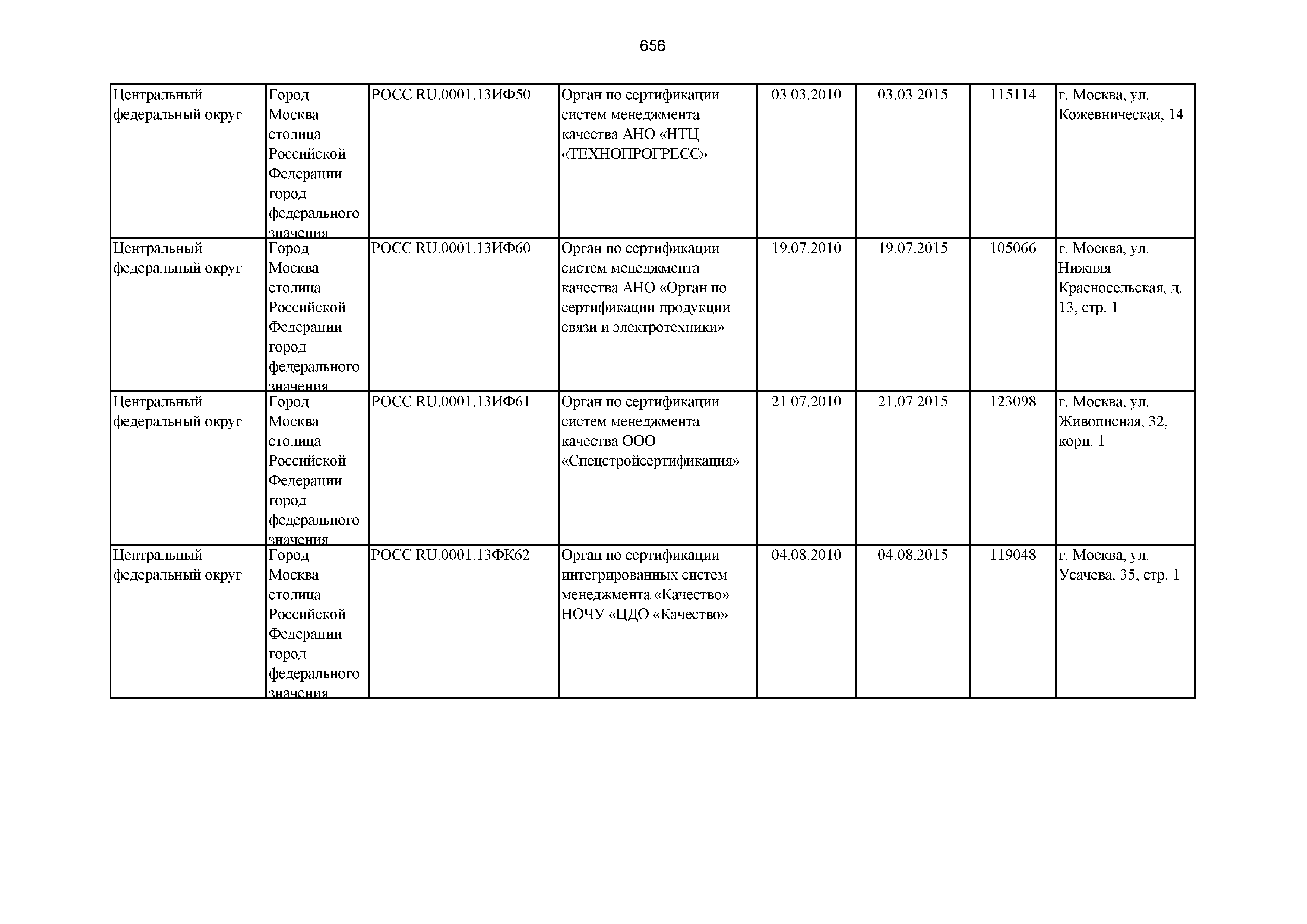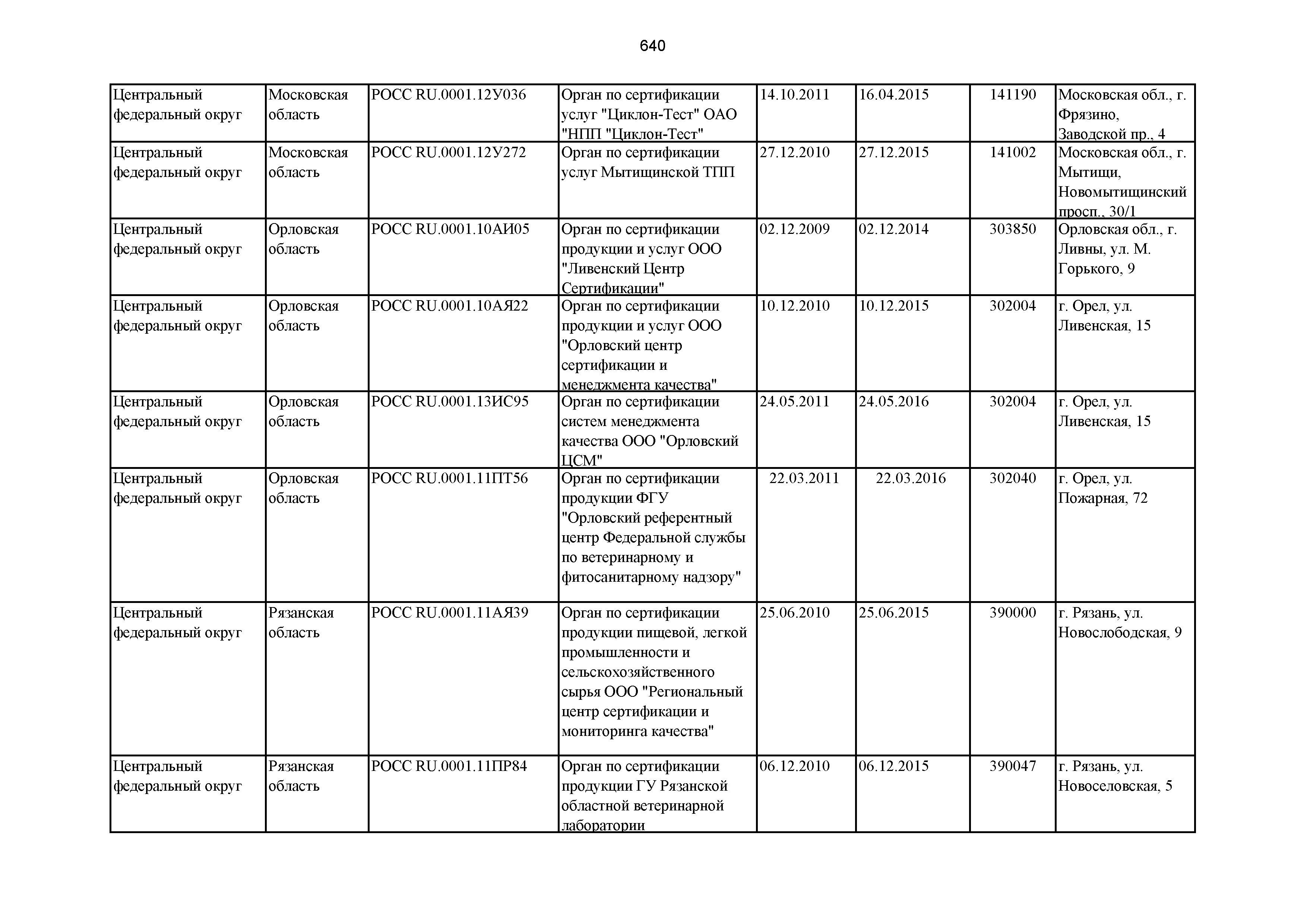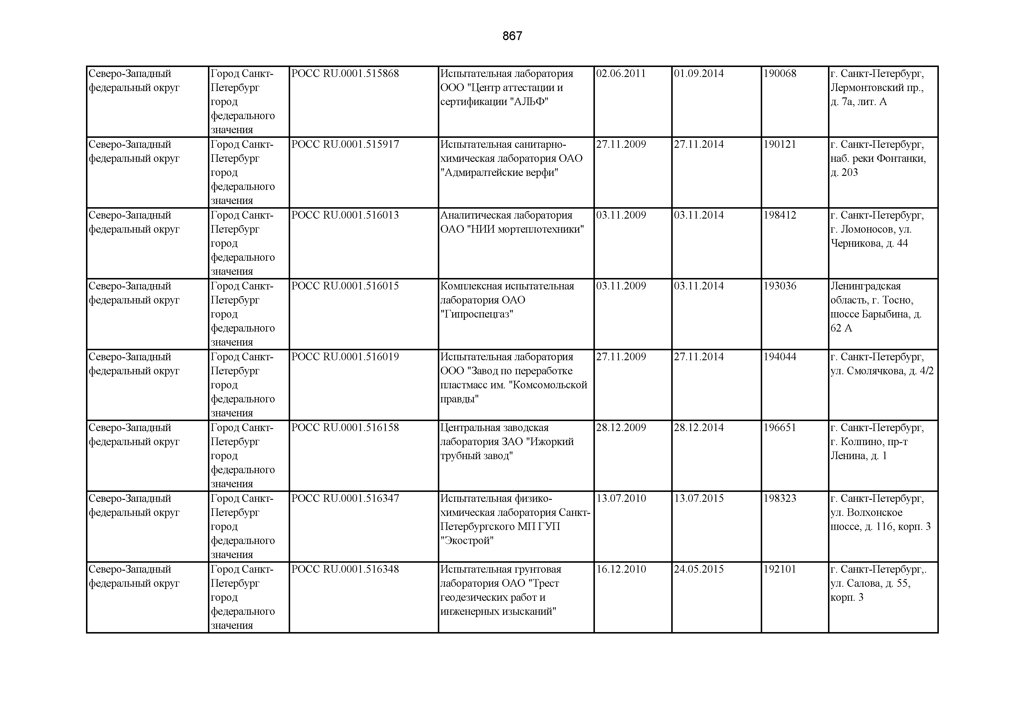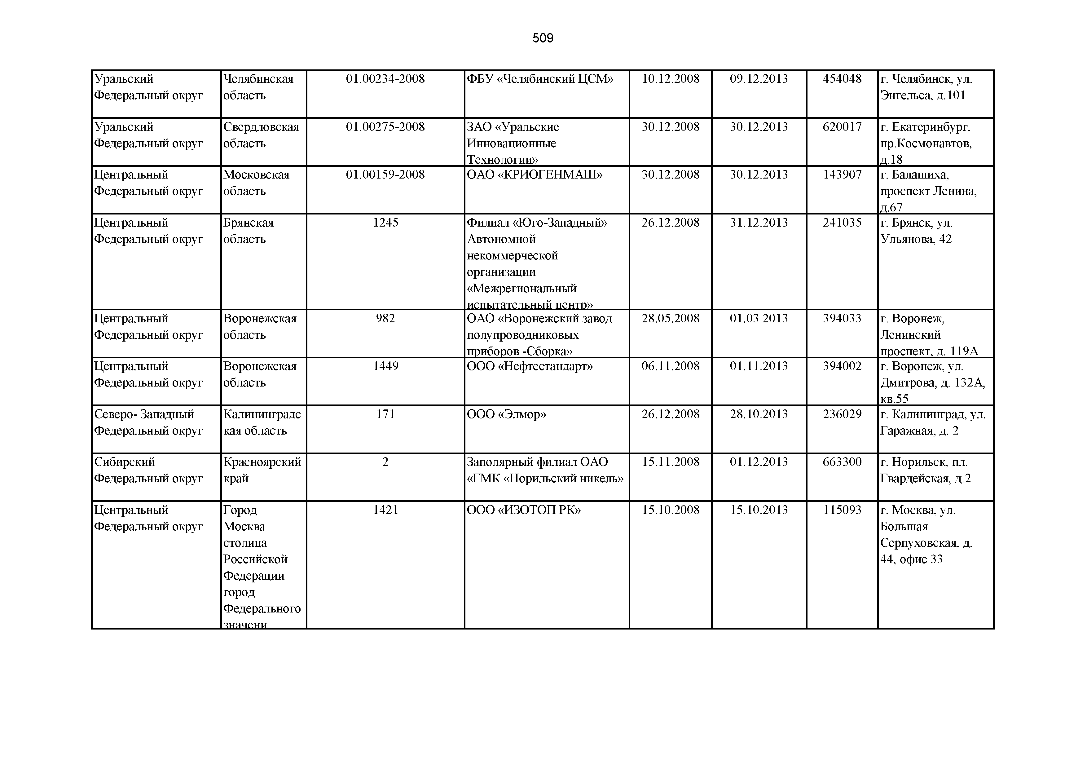 | Оглавление: | Приложение 1. План инспекционного контроля деятельности аккредитованных испытательных лабораторий (центров) и метрологической службы на 2012 год Приложение 2. План инспекционного контроля деятельности аккредитованных Органов по сертификации на 2012 год Приложение 3. План инспекционного контроля деятельности аналитических лабораторий (центров) на 2012 год Приложение 4. План инспекционного контроля в области обеспечения пожарной безопасности на 2012 год Приложение 5. План инспекционного контроля в области связи на 2012 год Приложение 6. План инспекционного контроля в области железнодорожного транспорта на 2012 год |