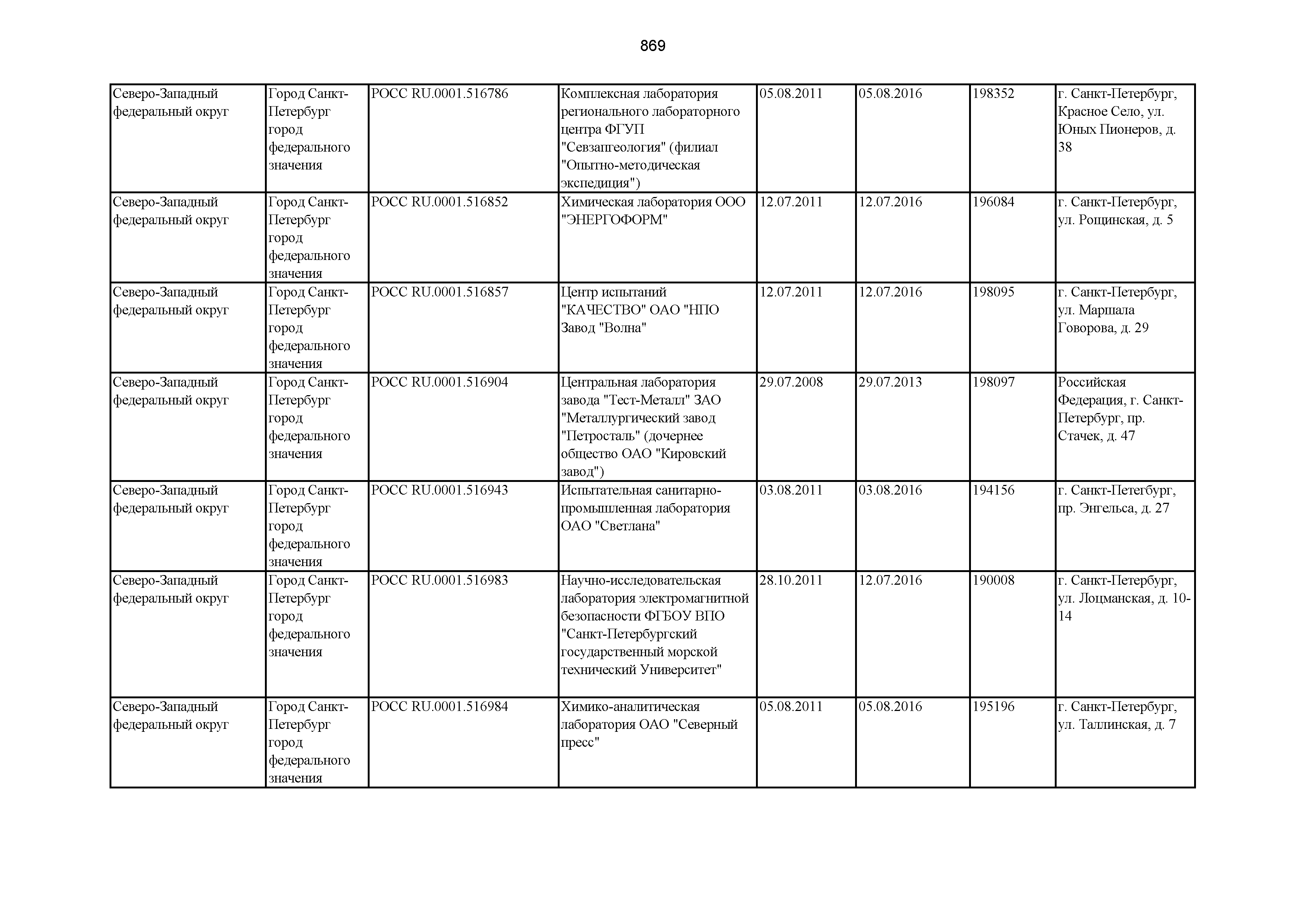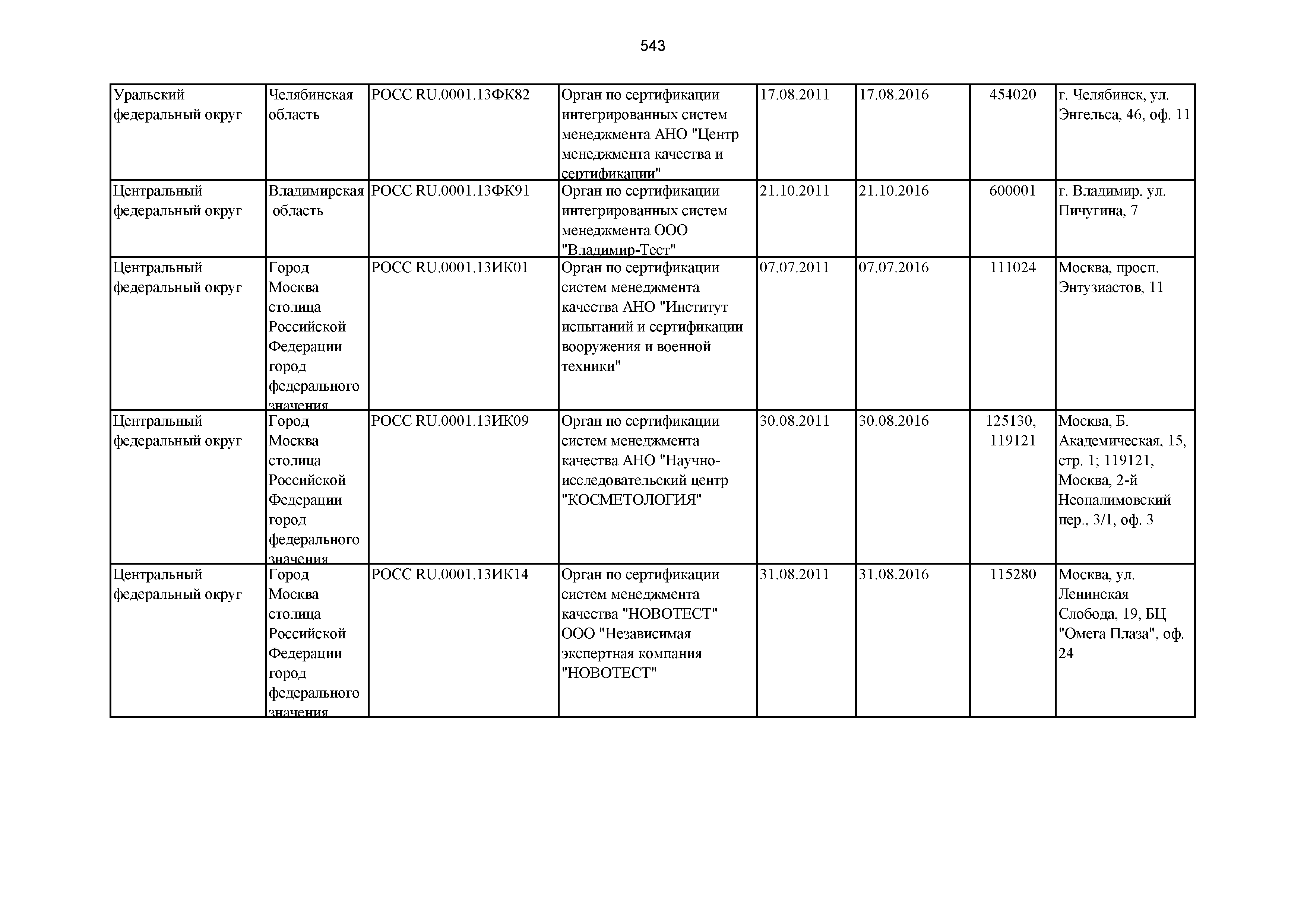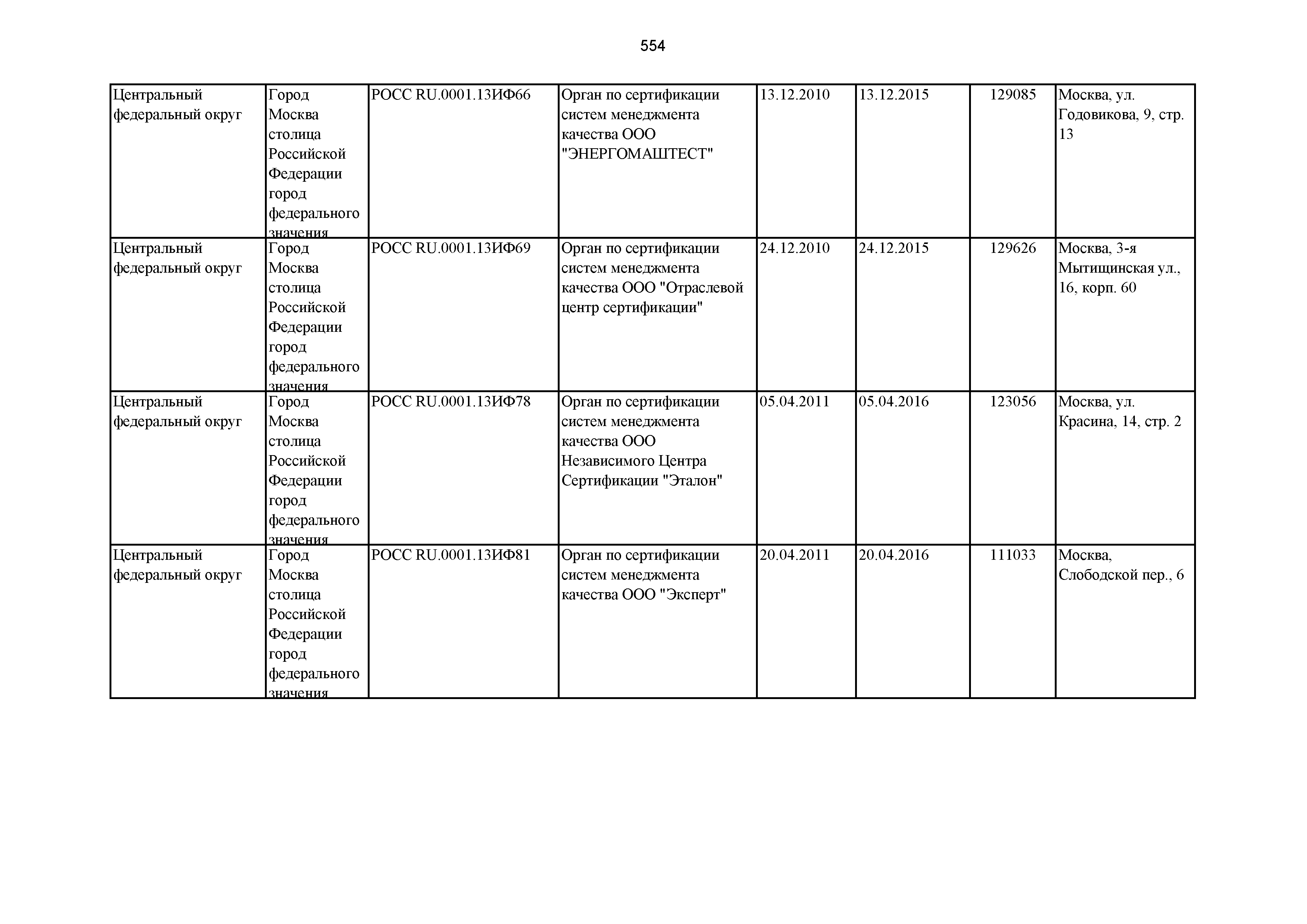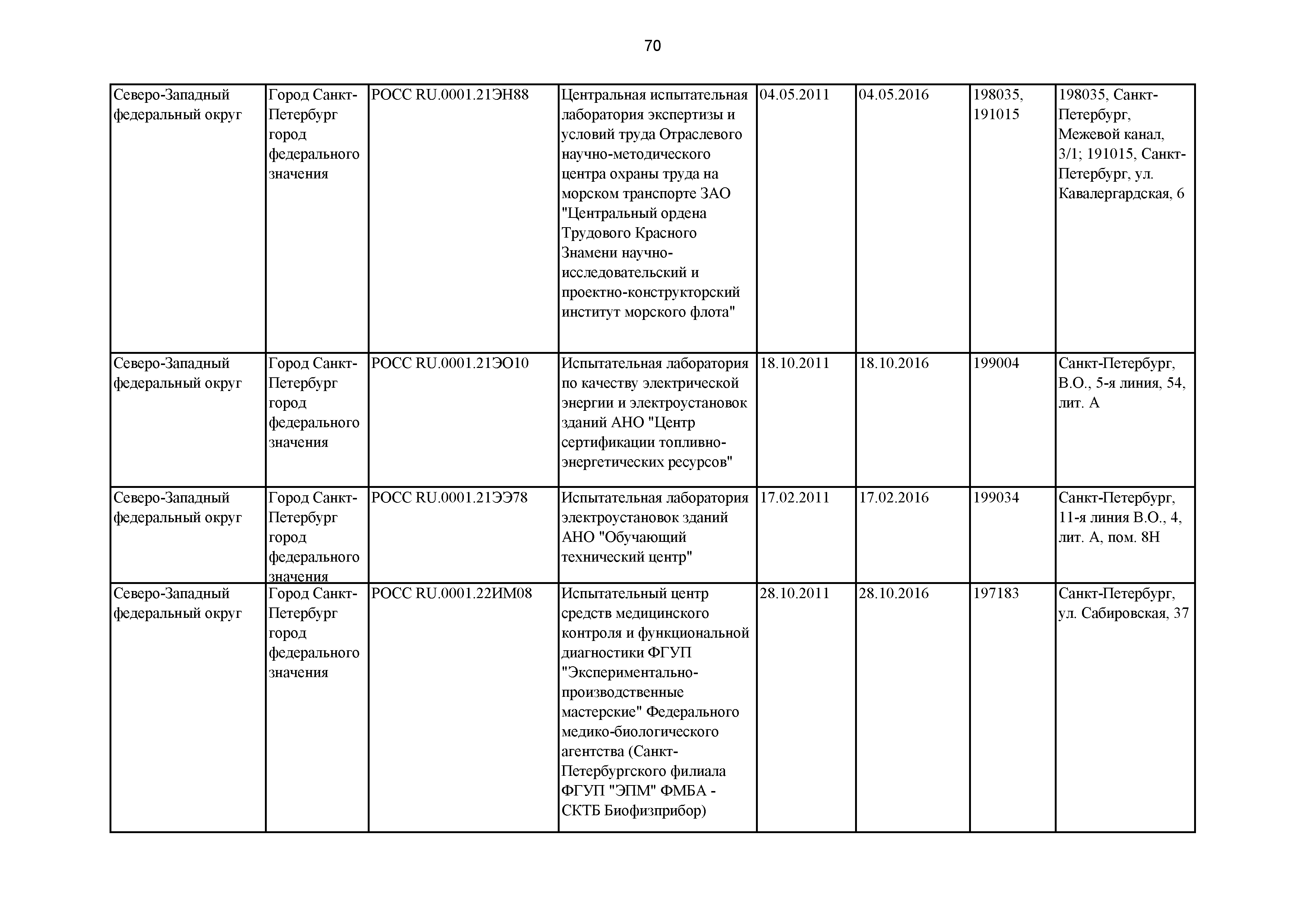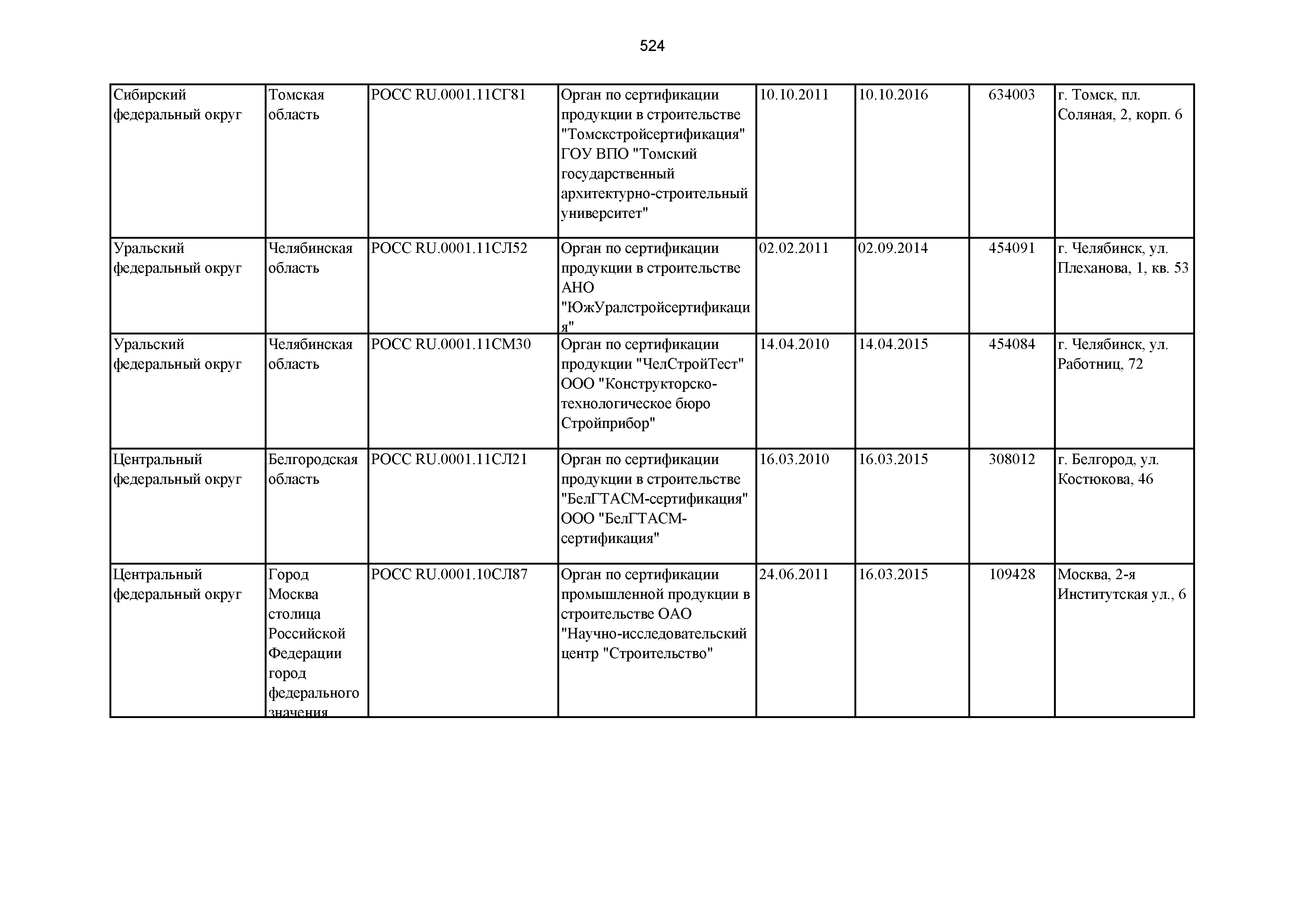 | Оглавление: | Приложение 1. План инспекционного контроля деятельности аккредитованных испытательных лабораторий (центров) и метрологической службы на 2012 год Приложение 2. План инспекционного контроля деятельности аккредитованных Органов по сертификации на 2012 год Приложение 3. План инспекционного контроля деятельности аналитических лабораторий (центров) на 2012 год Приложение 4. План инспекционного контроля в области обеспечения пожарной безопасности на 2012 год Приложение 5. План инспекционного контроля в области связи на 2012 год Приложение 6. План инспекционного контроля в области железнодорожного транспорта на 2012 год |