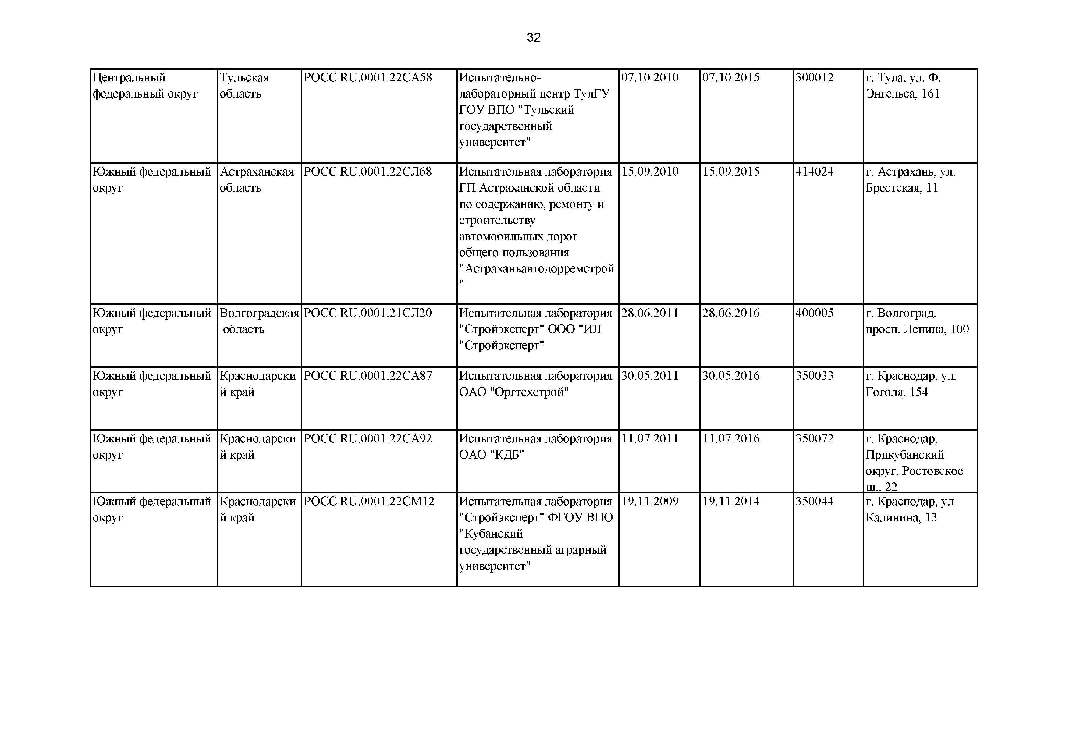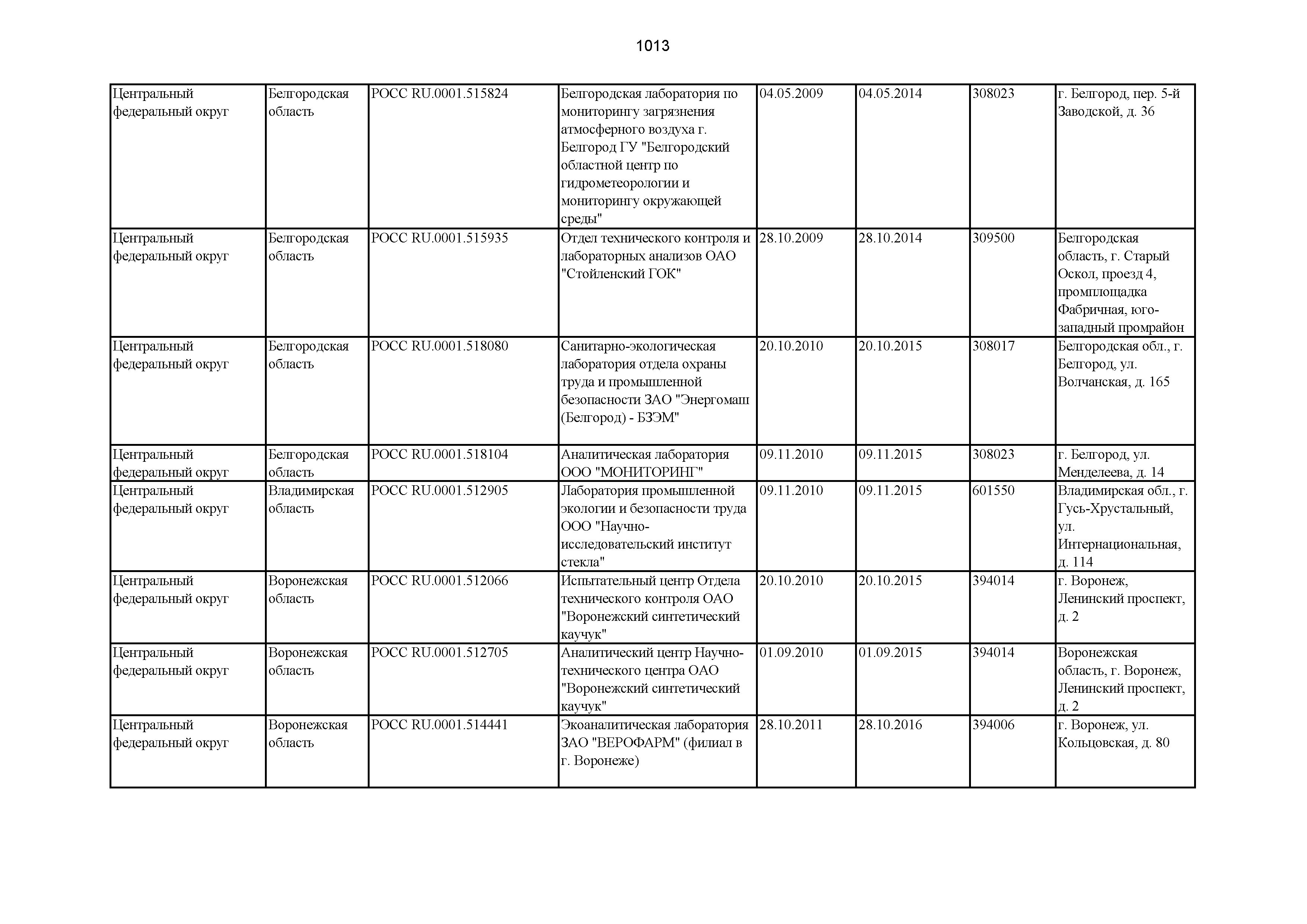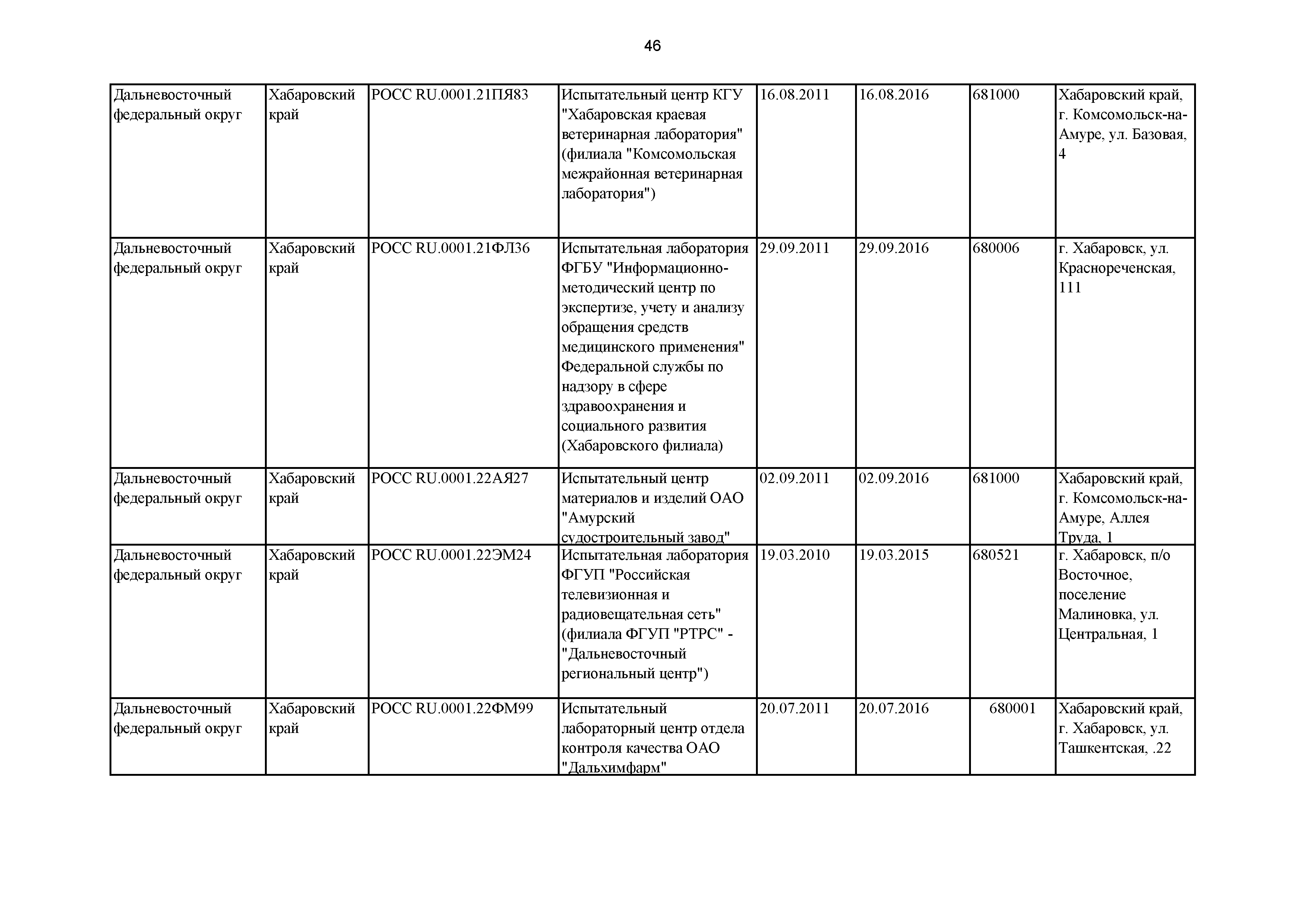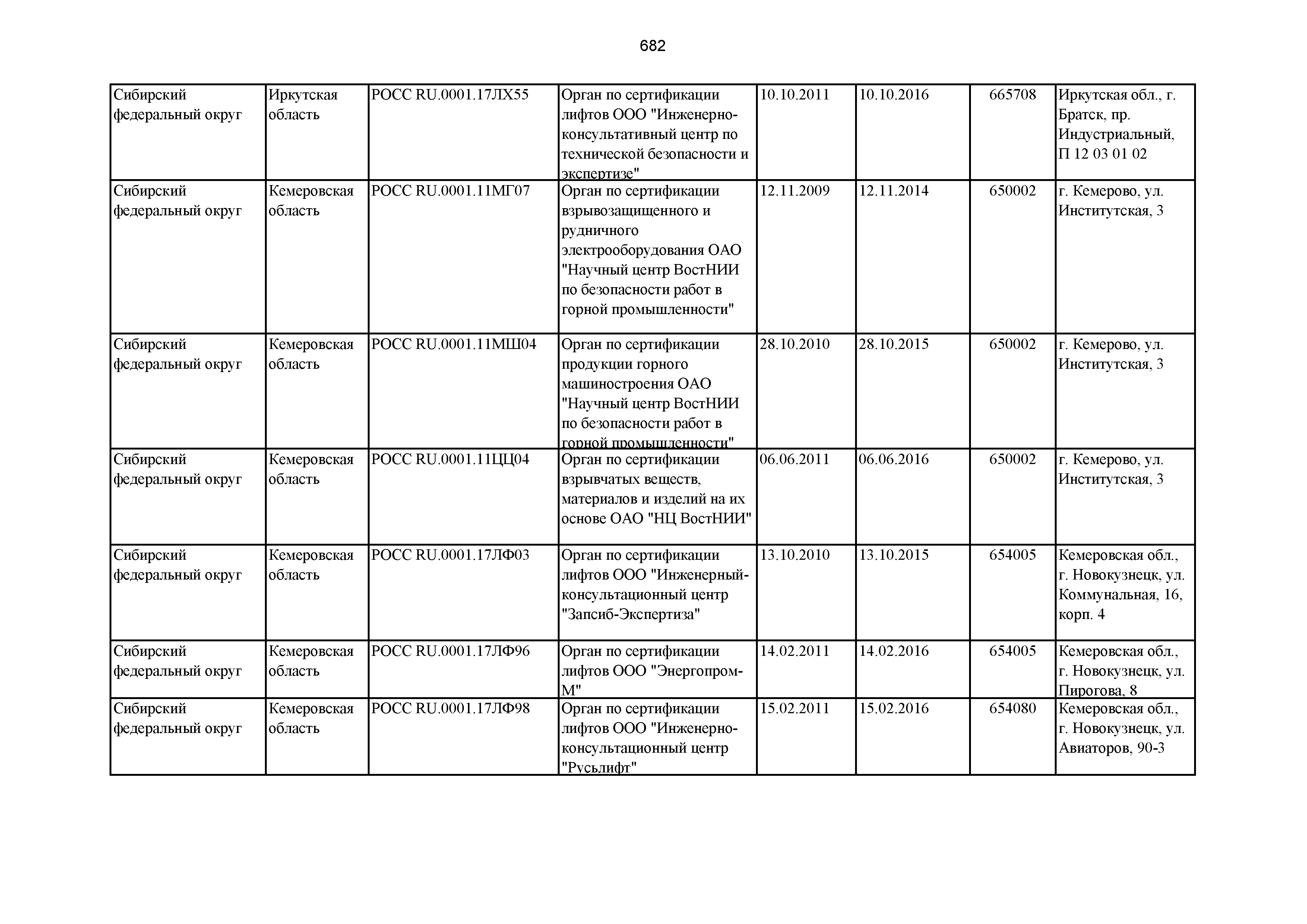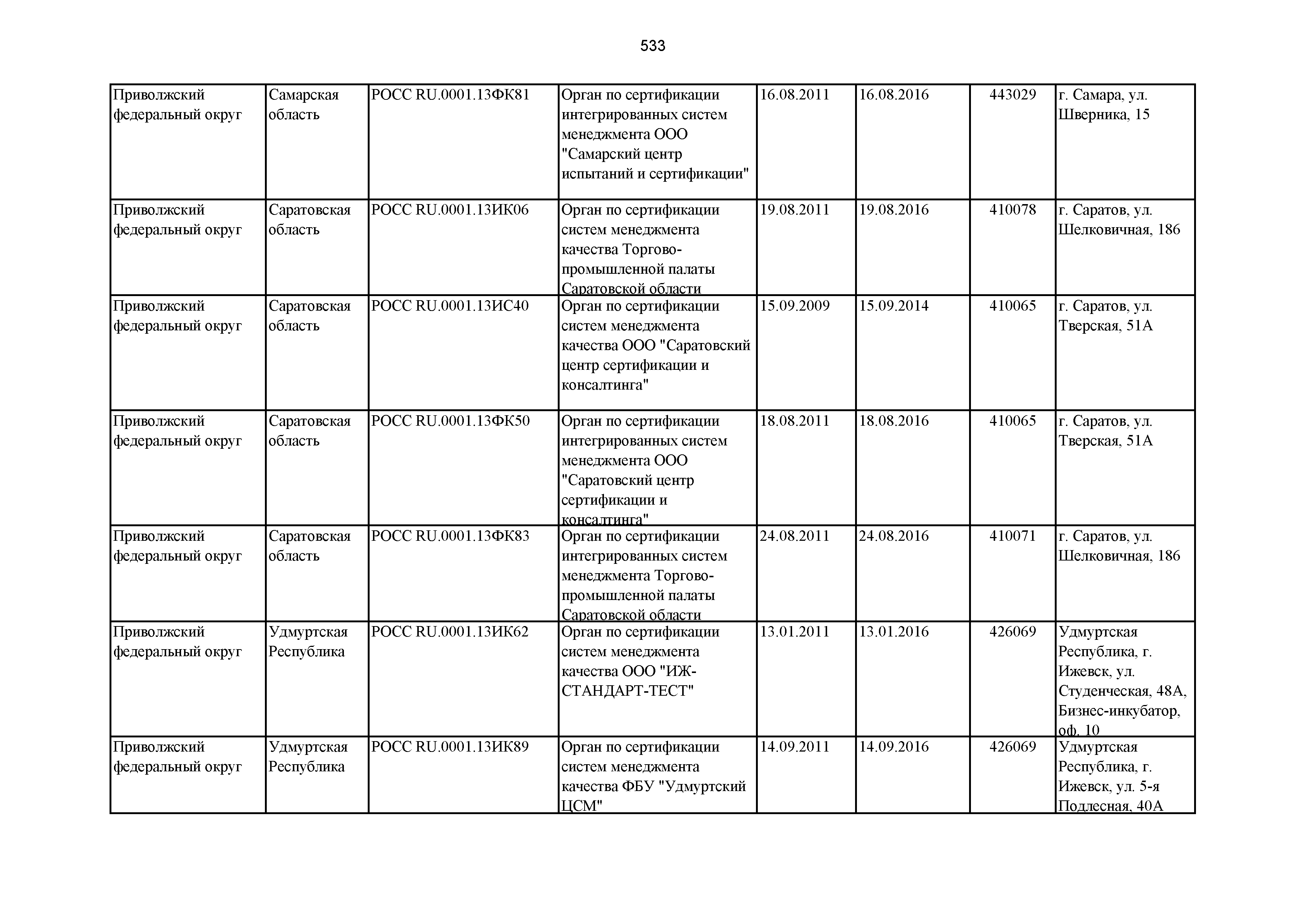 | Оглавление: | Приложение 1. План инспекционного контроля деятельности аккредитованных испытательных лабораторий (центров) и метрологической службы на 2012 год Приложение 2. План инспекционного контроля деятельности аккредитованных Органов по сертификации на 2012 год Приложение 3. План инспекционного контроля деятельности аналитических лабораторий (центров) на 2012 год Приложение 4. План инспекционного контроля в области обеспечения пожарной безопасности на 2012 год Приложение 5. План инспекционного контроля в области связи на 2012 год Приложение 6. План инспекционного контроля в области железнодорожного транспорта на 2012 год |