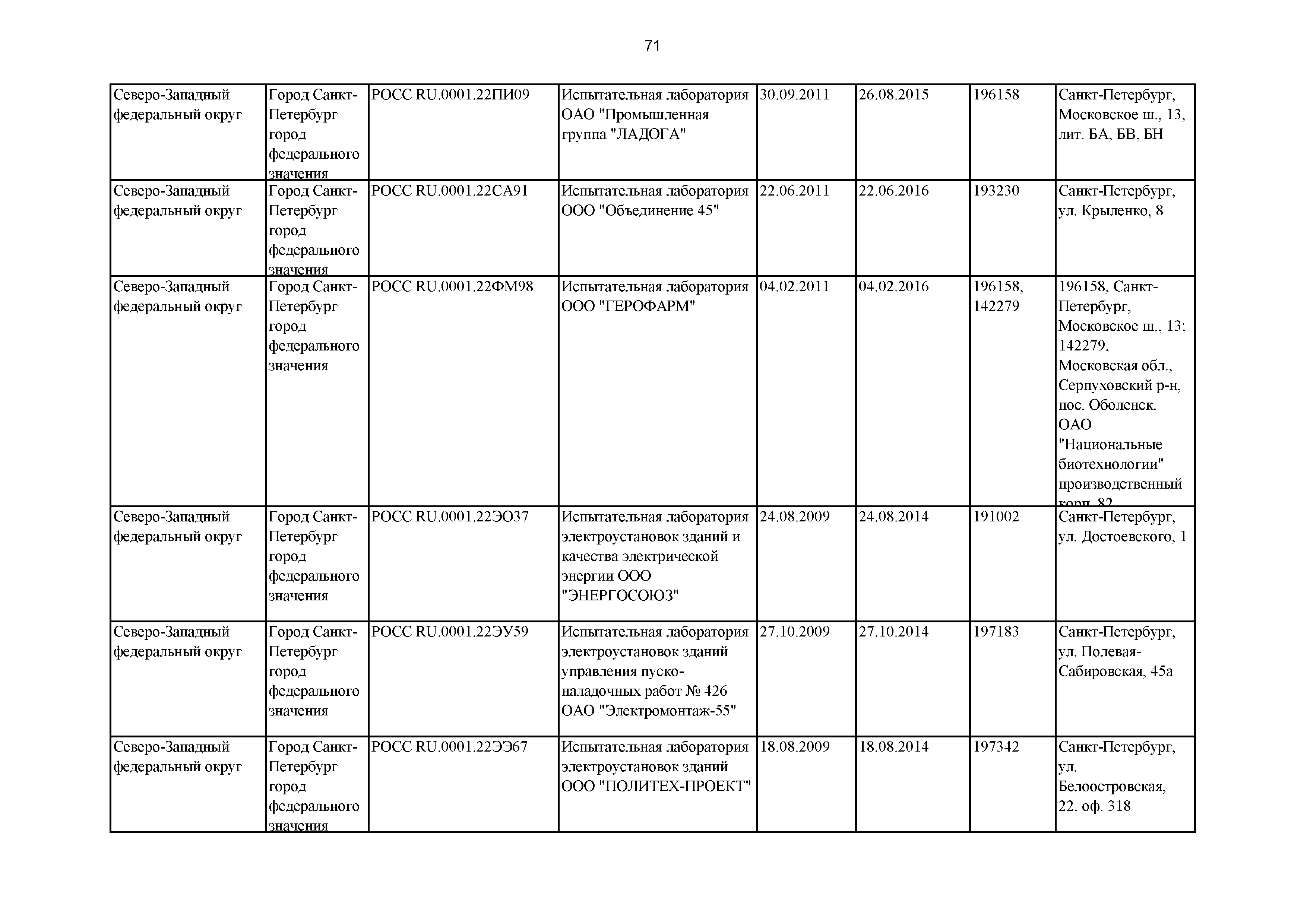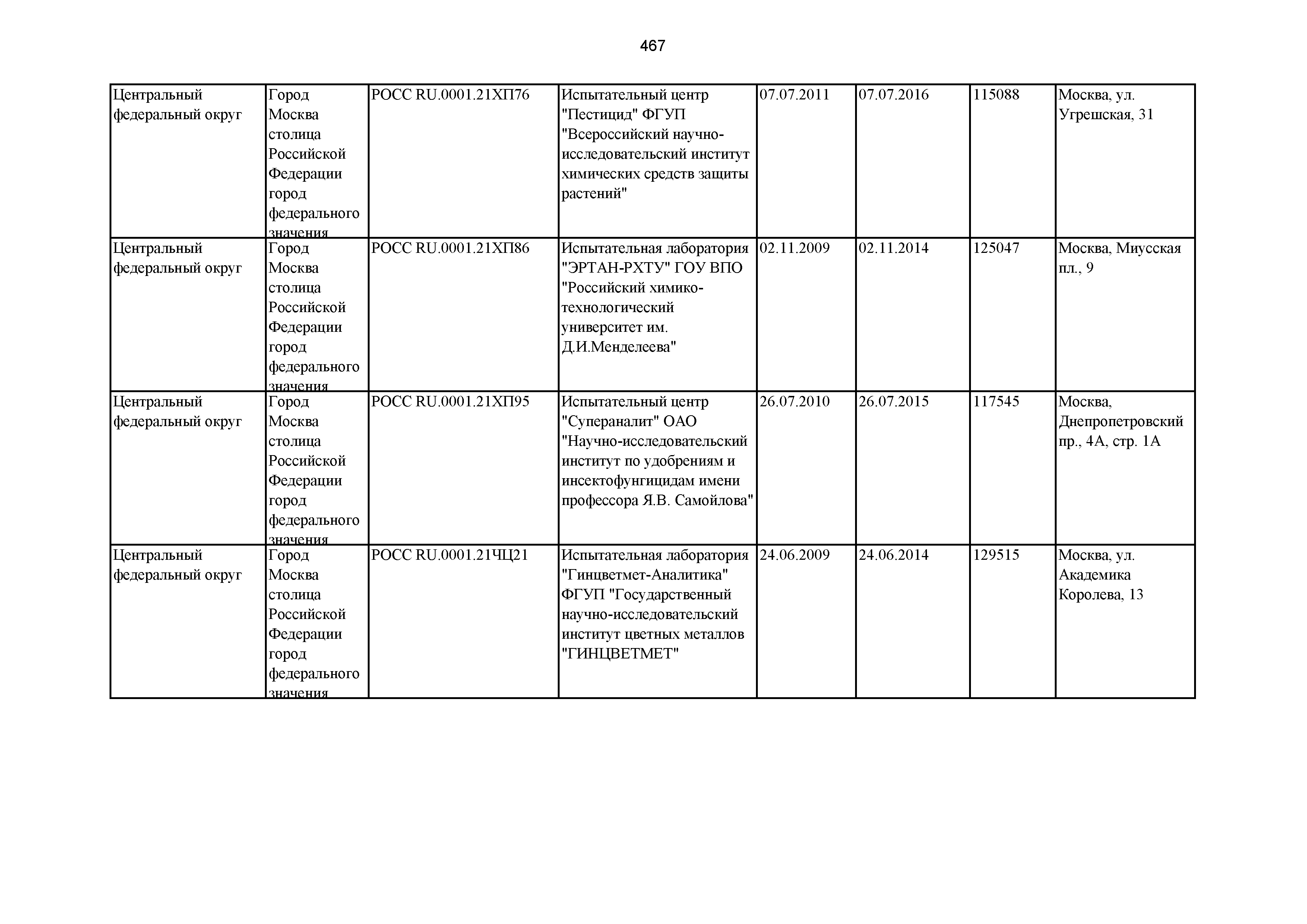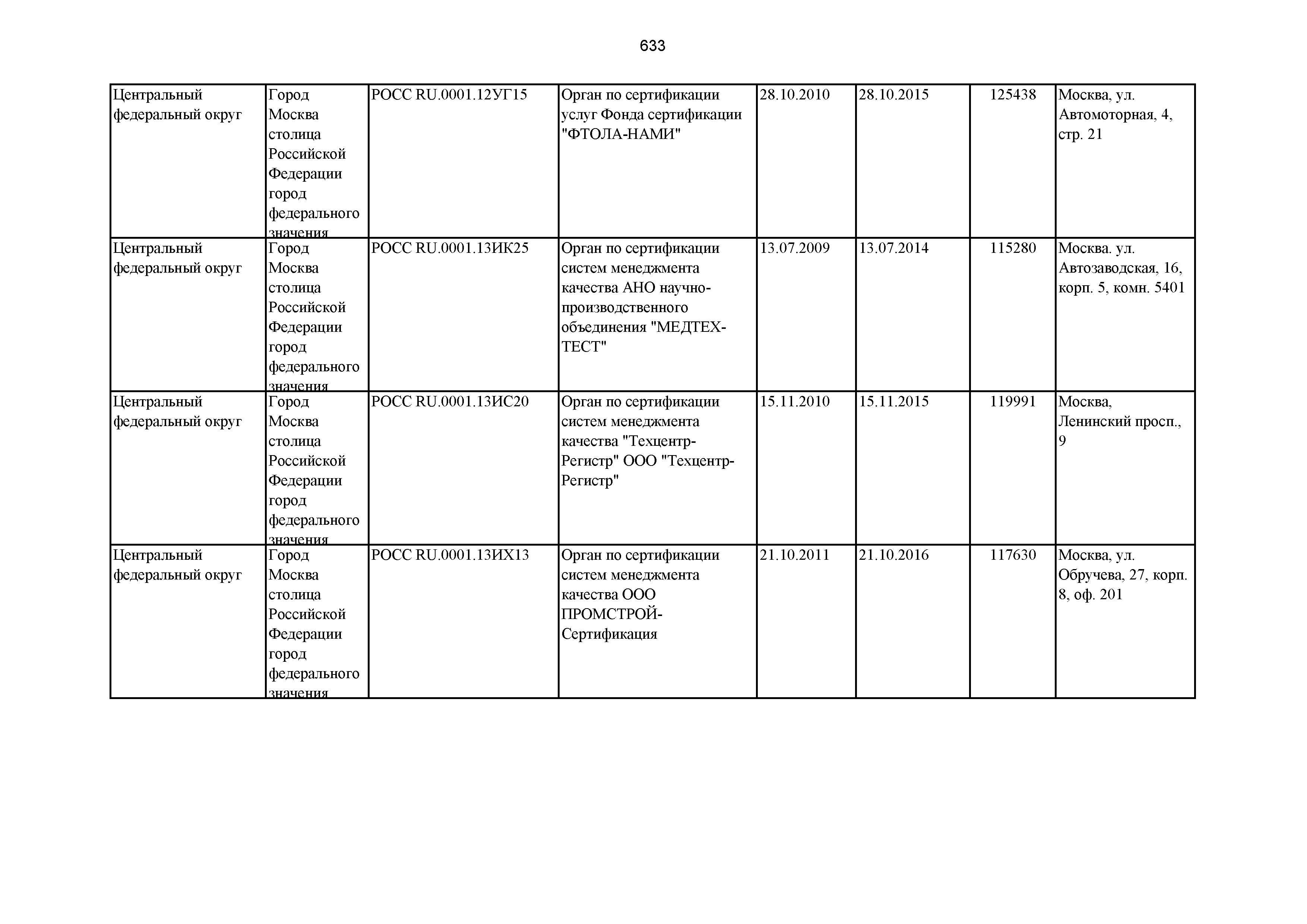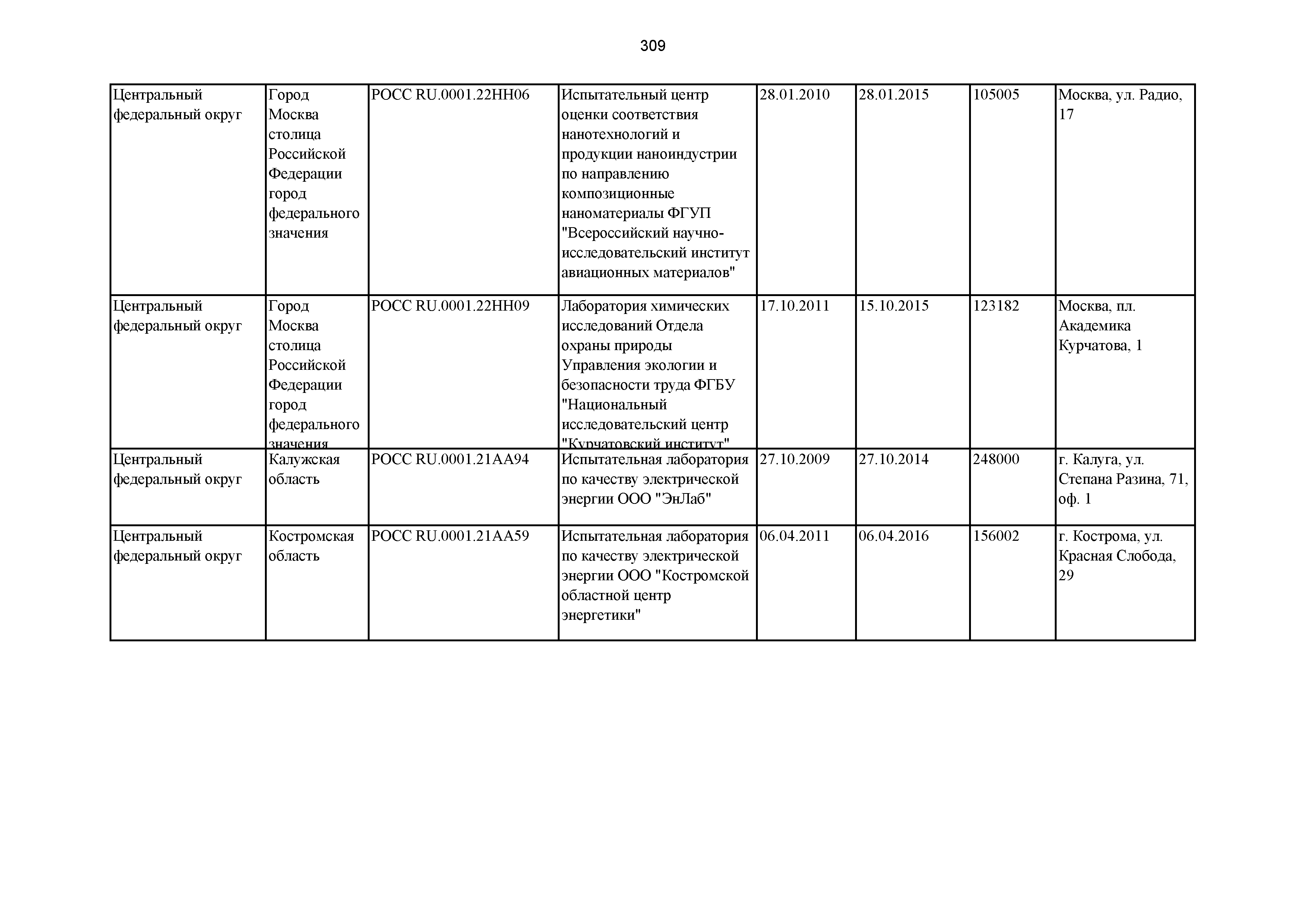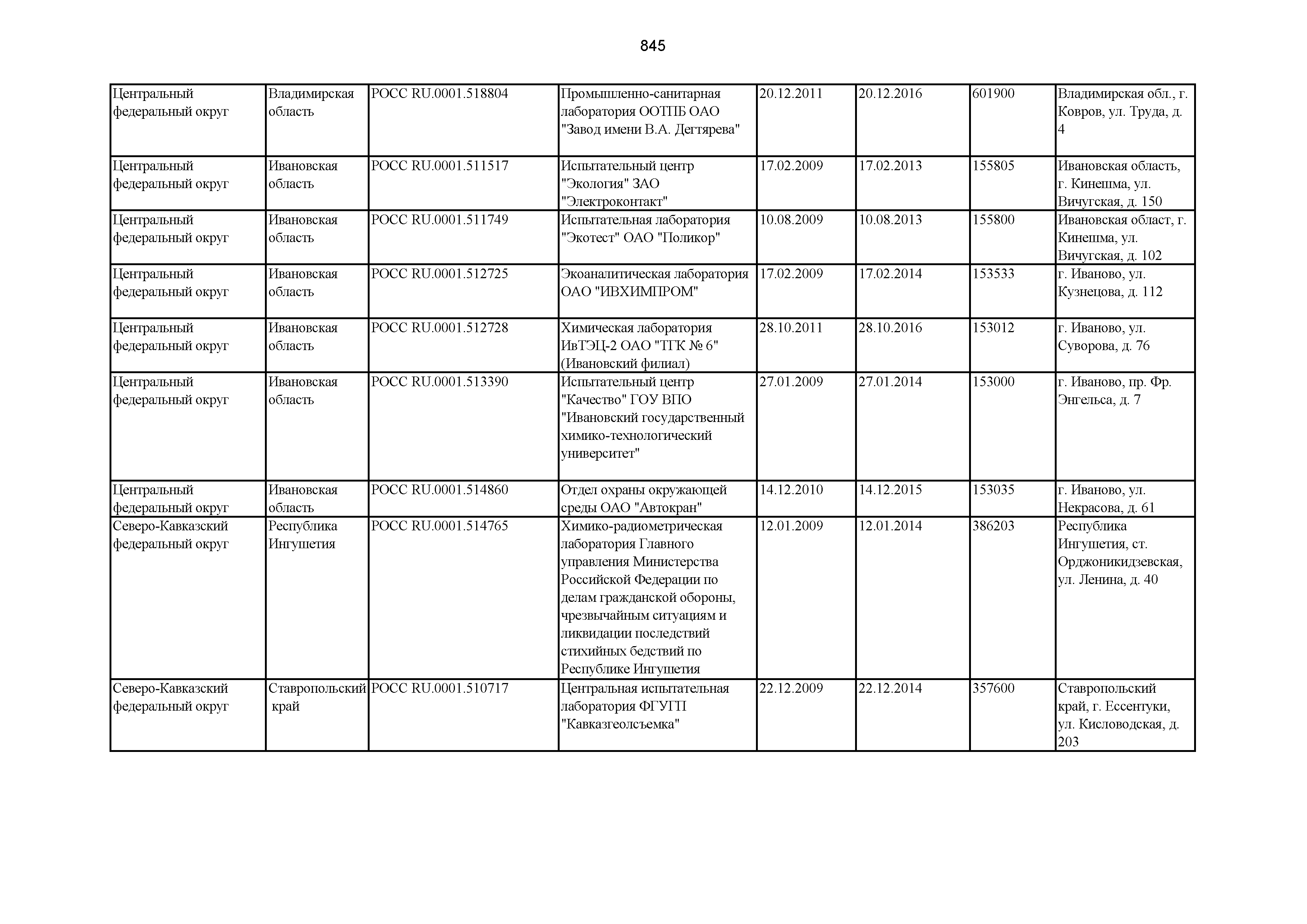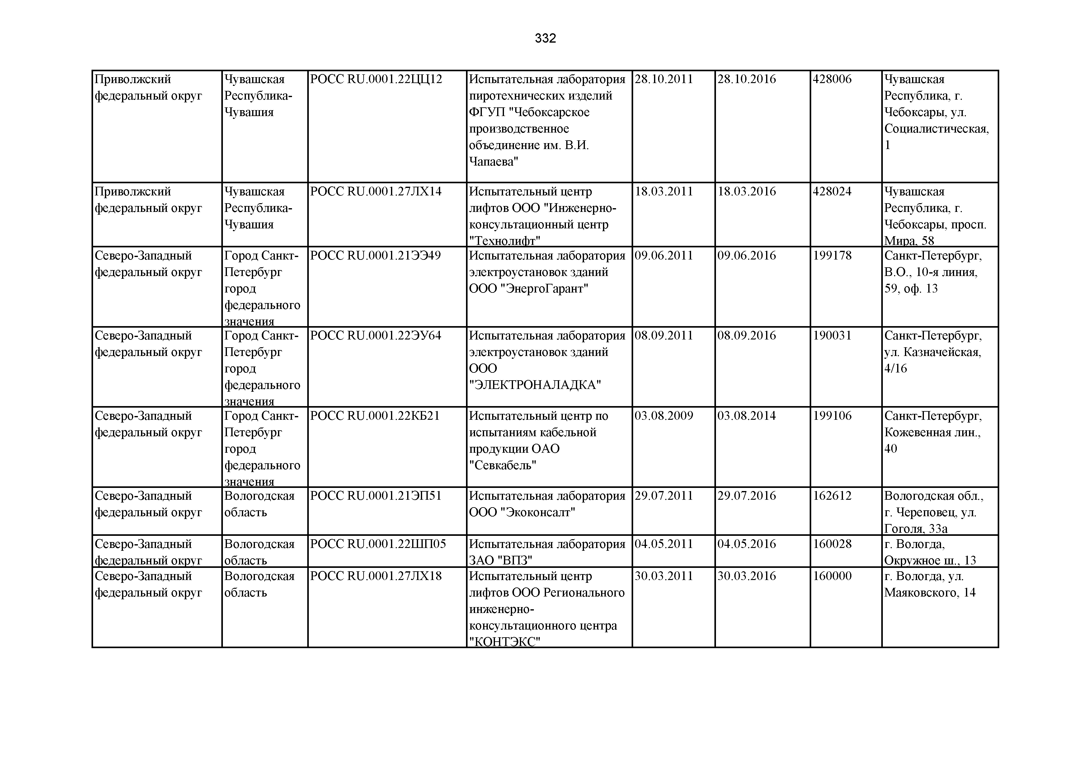 | Оглавление: | Приложение 1. План инспекционного контроля деятельности аккредитованных испытательных лабораторий (центров) и метрологической службы на 2012 год Приложение 2. План инспекционного контроля деятельности аккредитованных Органов по сертификации на 2012 год Приложение 3. План инспекционного контроля деятельности аналитических лабораторий (центров) на 2012 год Приложение 4. План инспекционного контроля в области обеспечения пожарной безопасности на 2012 год Приложение 5. План инспекционного контроля в области связи на 2012 год Приложение 6. План инспекционного контроля в области железнодорожного транспорта на 2012 год |