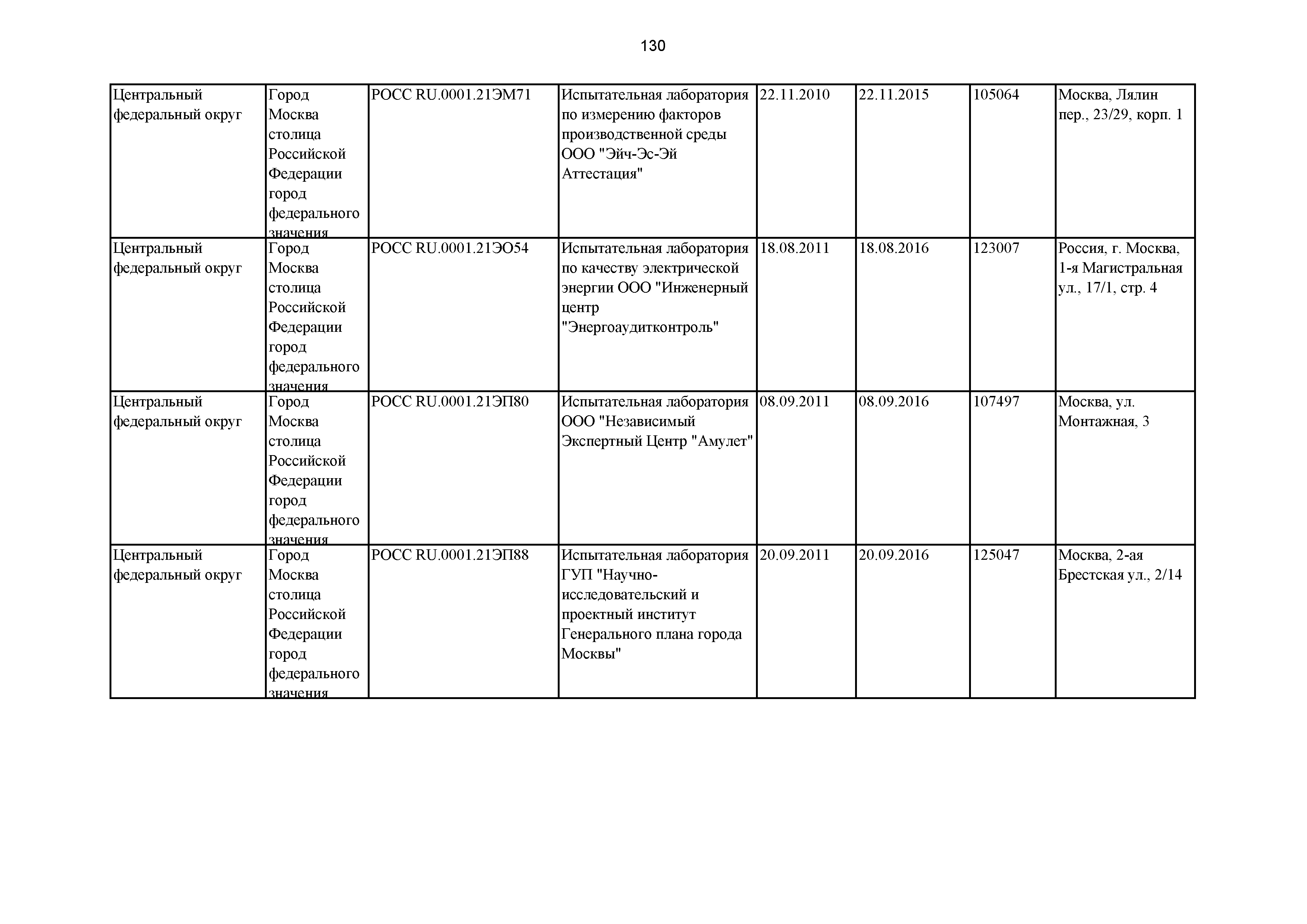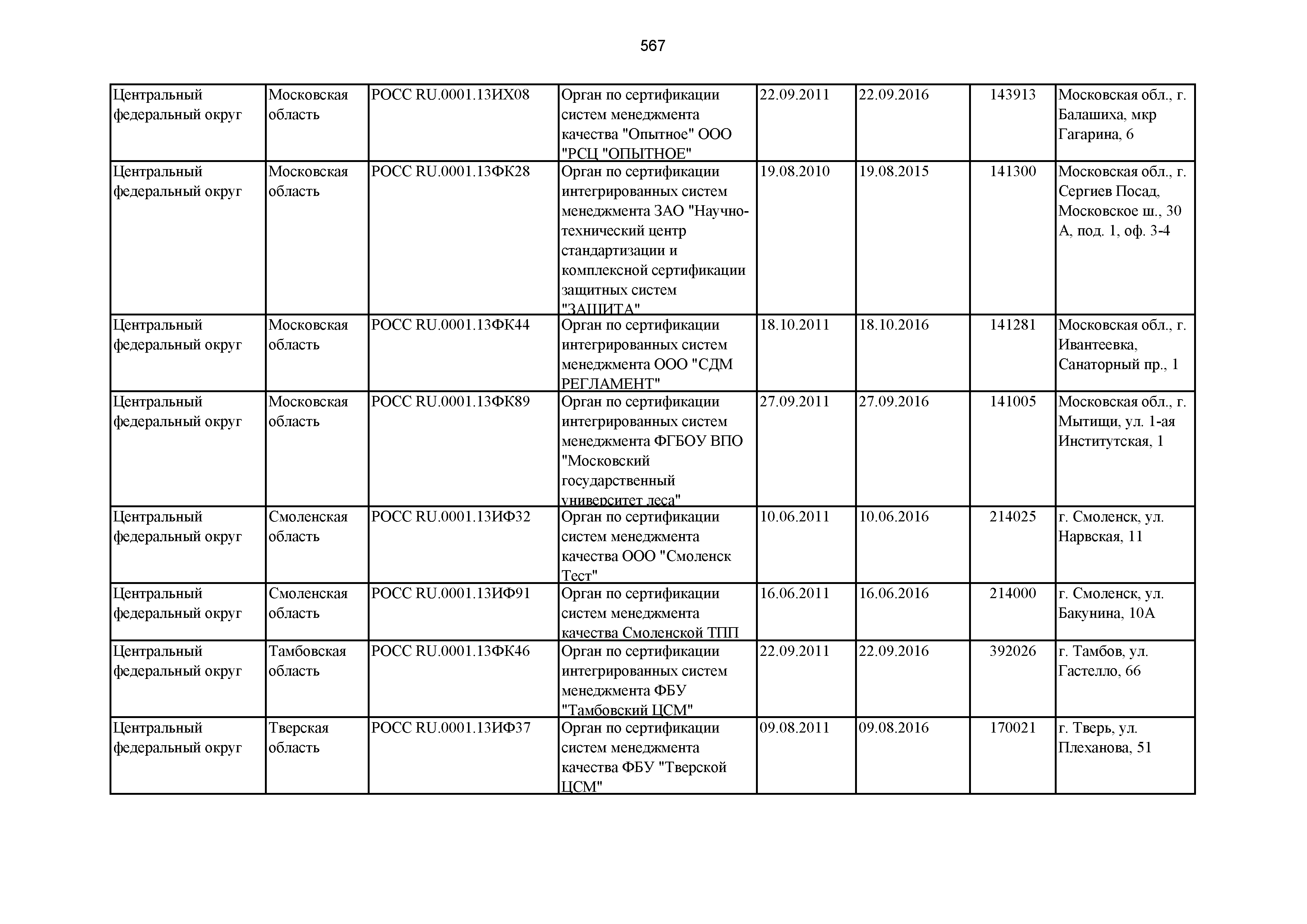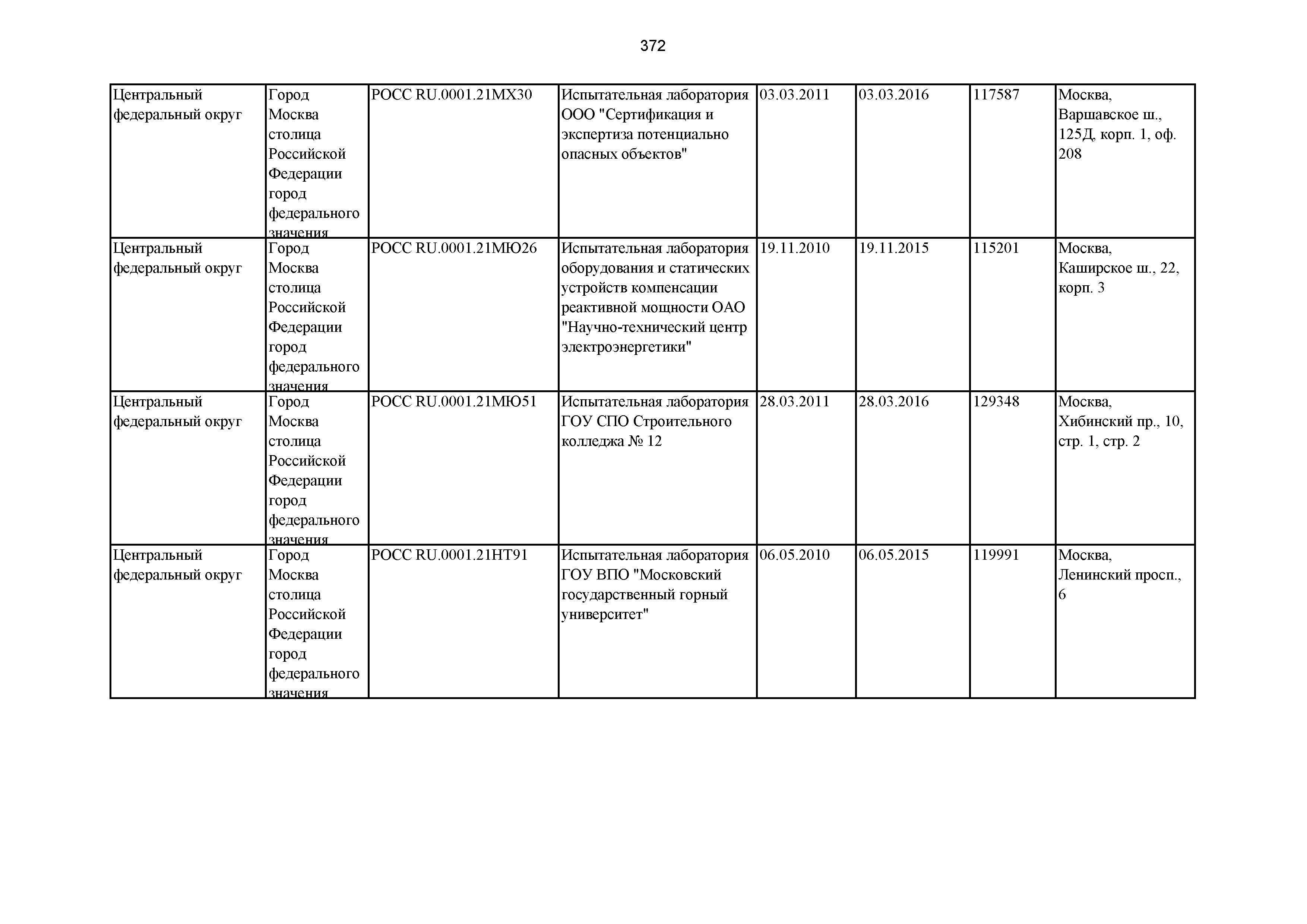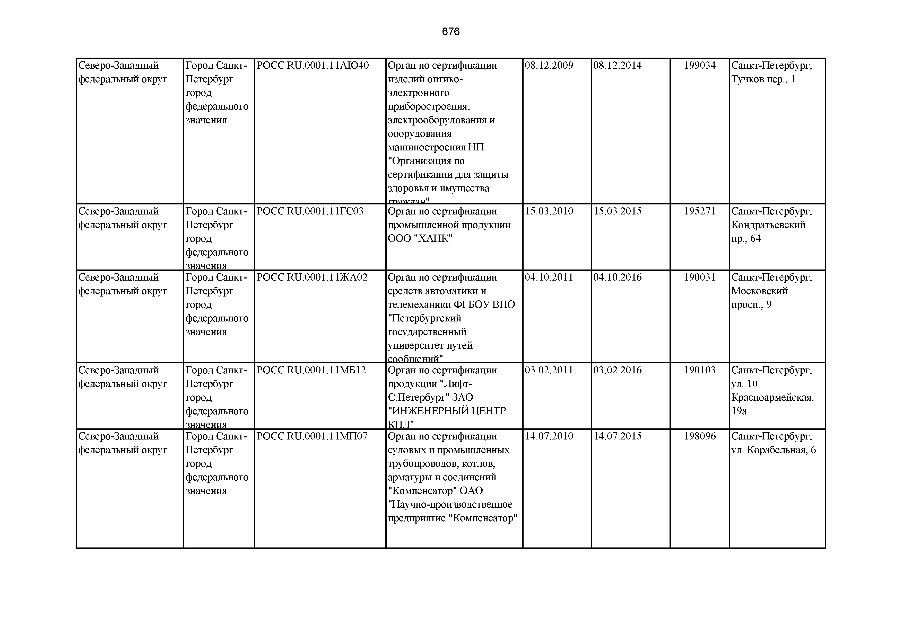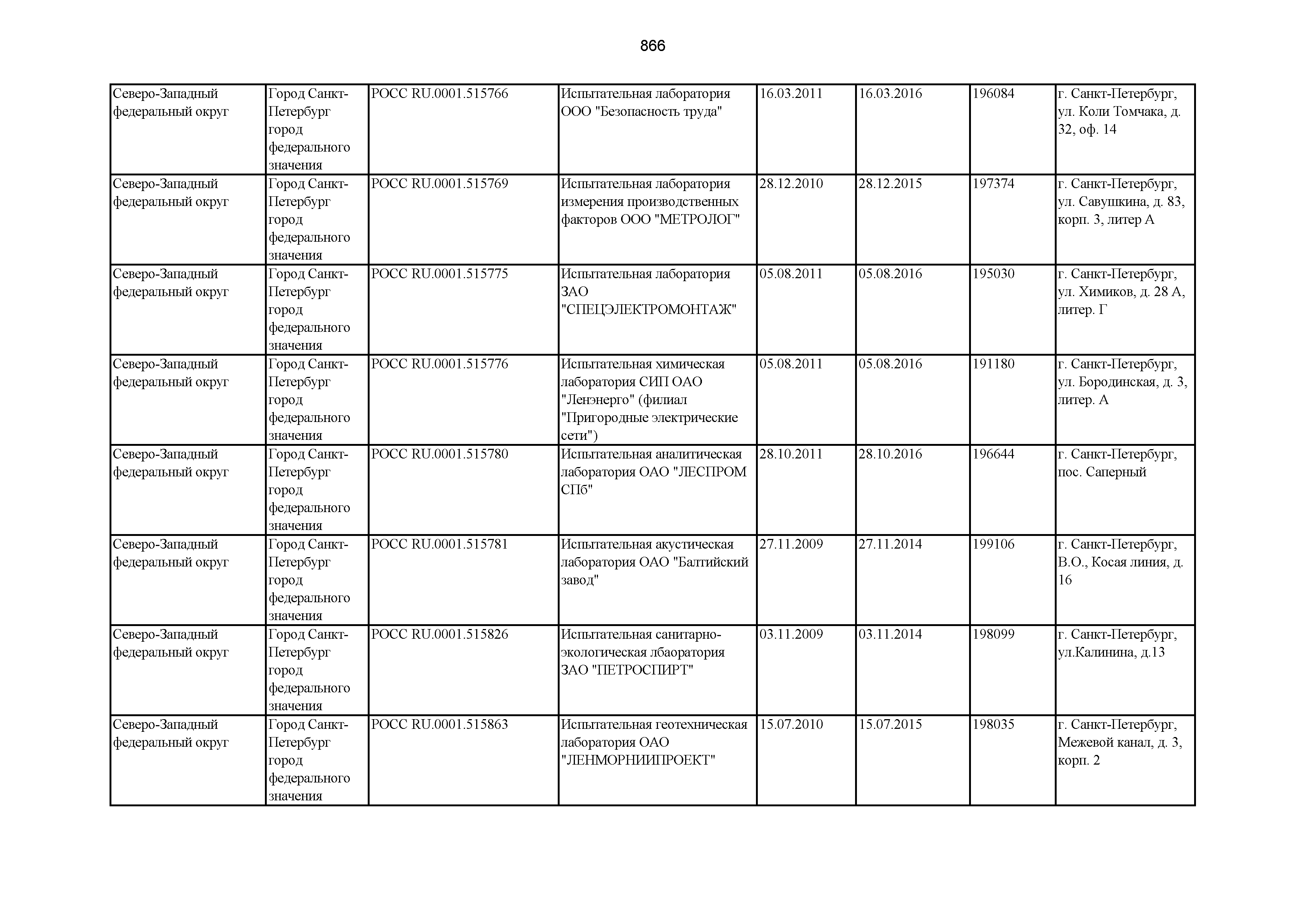 | Оглавление: | Приложение 1. План инспекционного контроля деятельности аккредитованных испытательных лабораторий (центров) и метрологической службы на 2012 год Приложение 2. План инспекционного контроля деятельности аккредитованных Органов по сертификации на 2012 год Приложение 3. План инспекционного контроля деятельности аналитических лабораторий (центров) на 2012 год Приложение 4. План инспекционного контроля в области обеспечения пожарной безопасности на 2012 год Приложение 5. План инспекционного контроля в области связи на 2012 год Приложение 6. План инспекционного контроля в области железнодорожного транспорта на 2012 год |