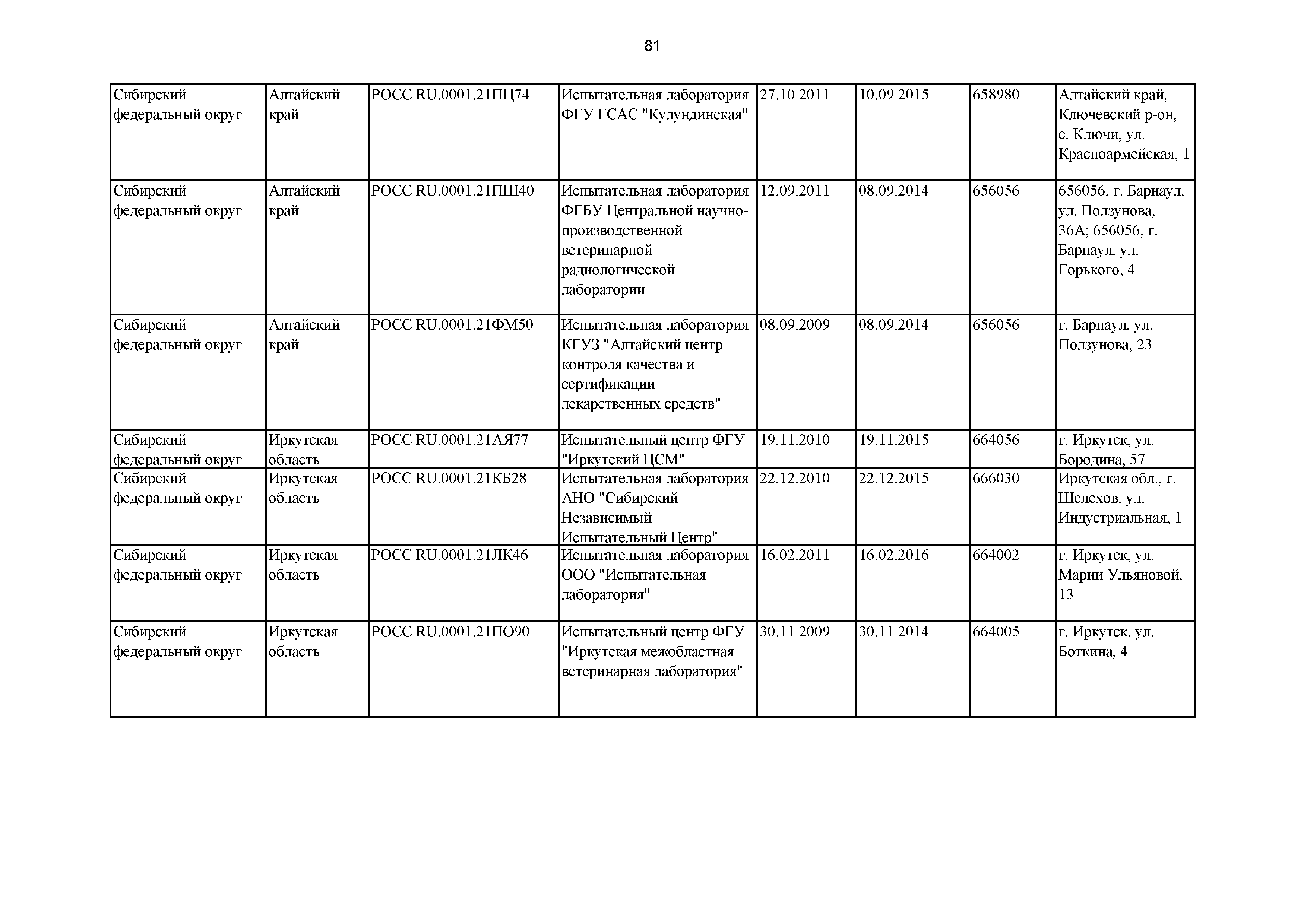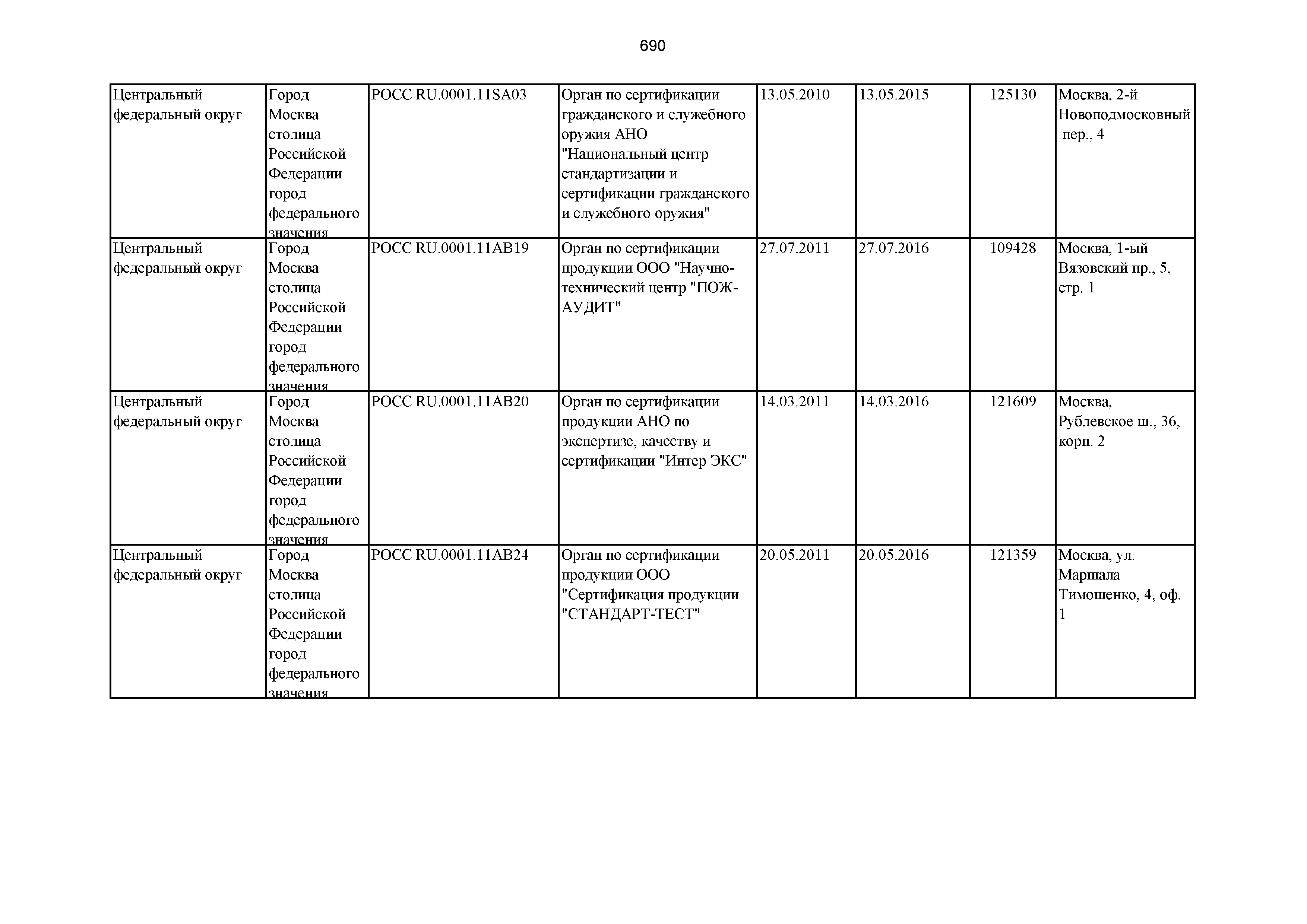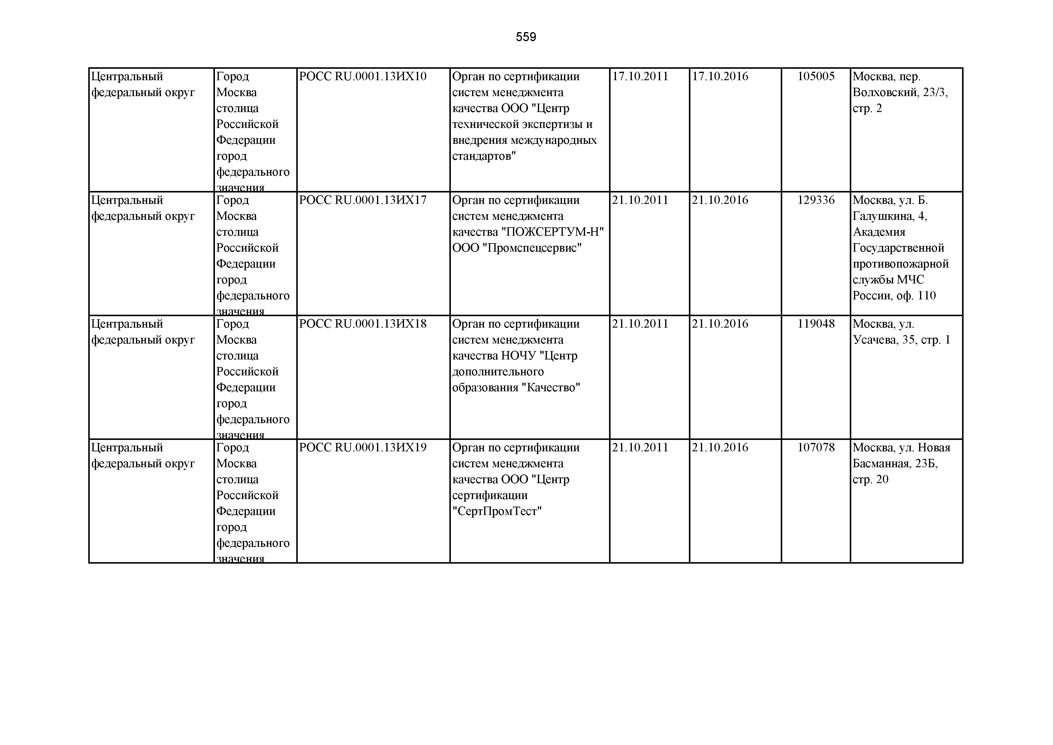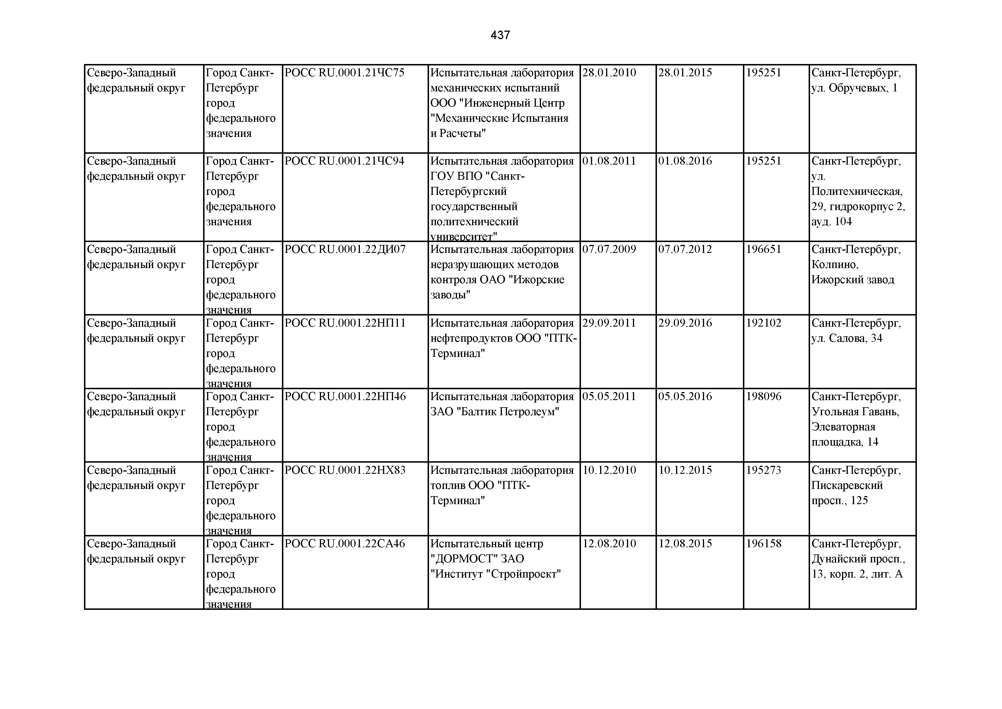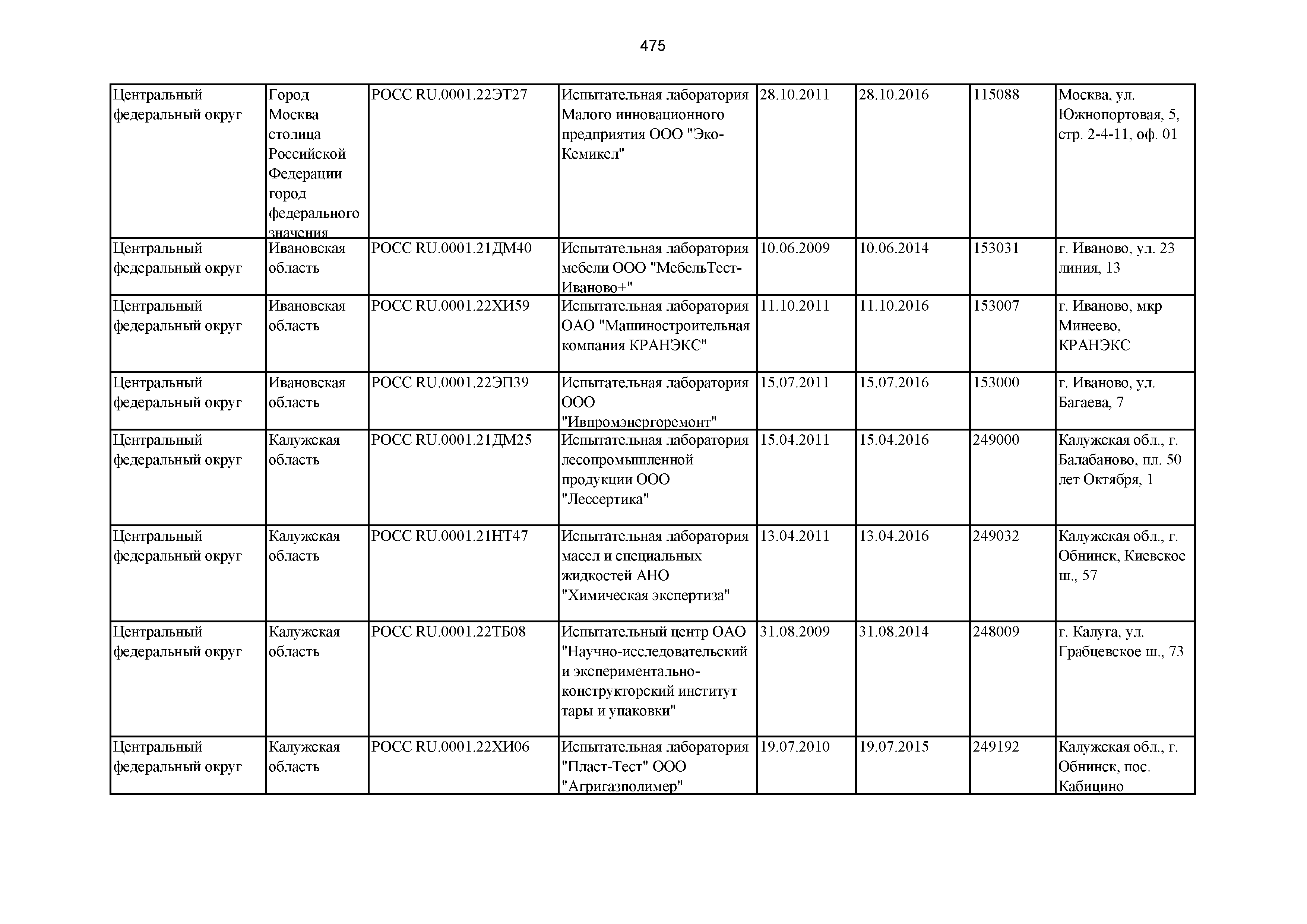 | Оглавление: | Приложение 1. План инспекционного контроля деятельности аккредитованных испытательных лабораторий (центров) и метрологической службы на 2012 год Приложение 2. План инспекционного контроля деятельности аккредитованных Органов по сертификации на 2012 год Приложение 3. План инспекционного контроля деятельности аналитических лабораторий (центров) на 2012 год Приложение 4. План инспекционного контроля в области обеспечения пожарной безопасности на 2012 год Приложение 5. План инспекционного контроля в области связи на 2012 год Приложение 6. План инспекционного контроля в области железнодорожного транспорта на 2012 год |
