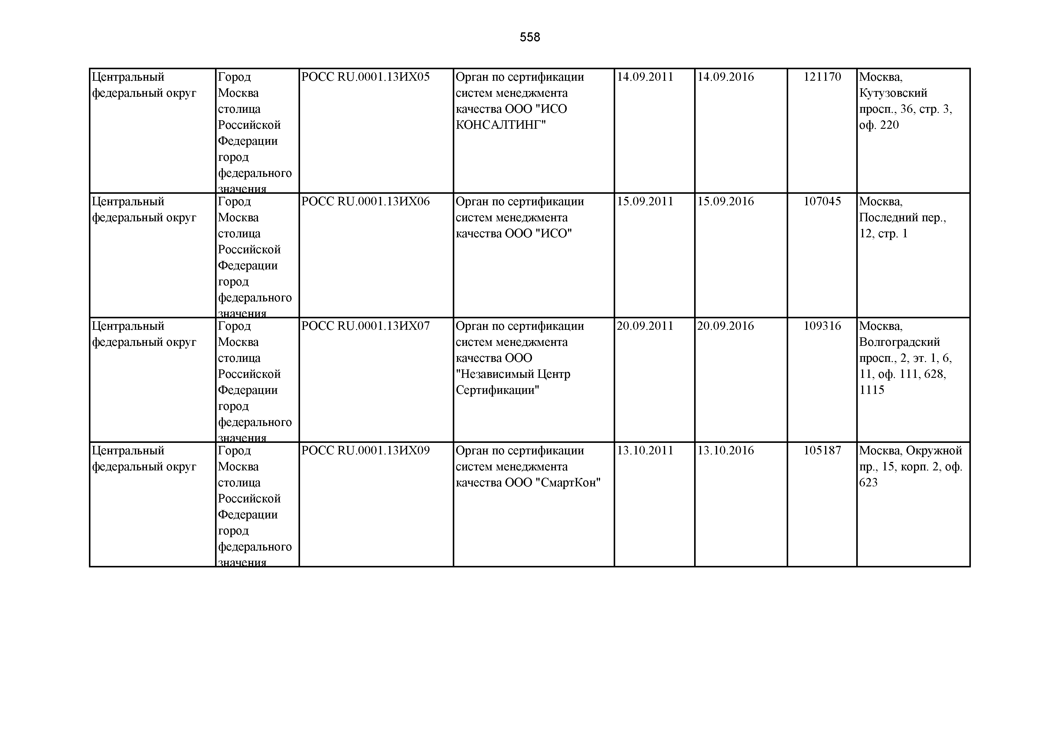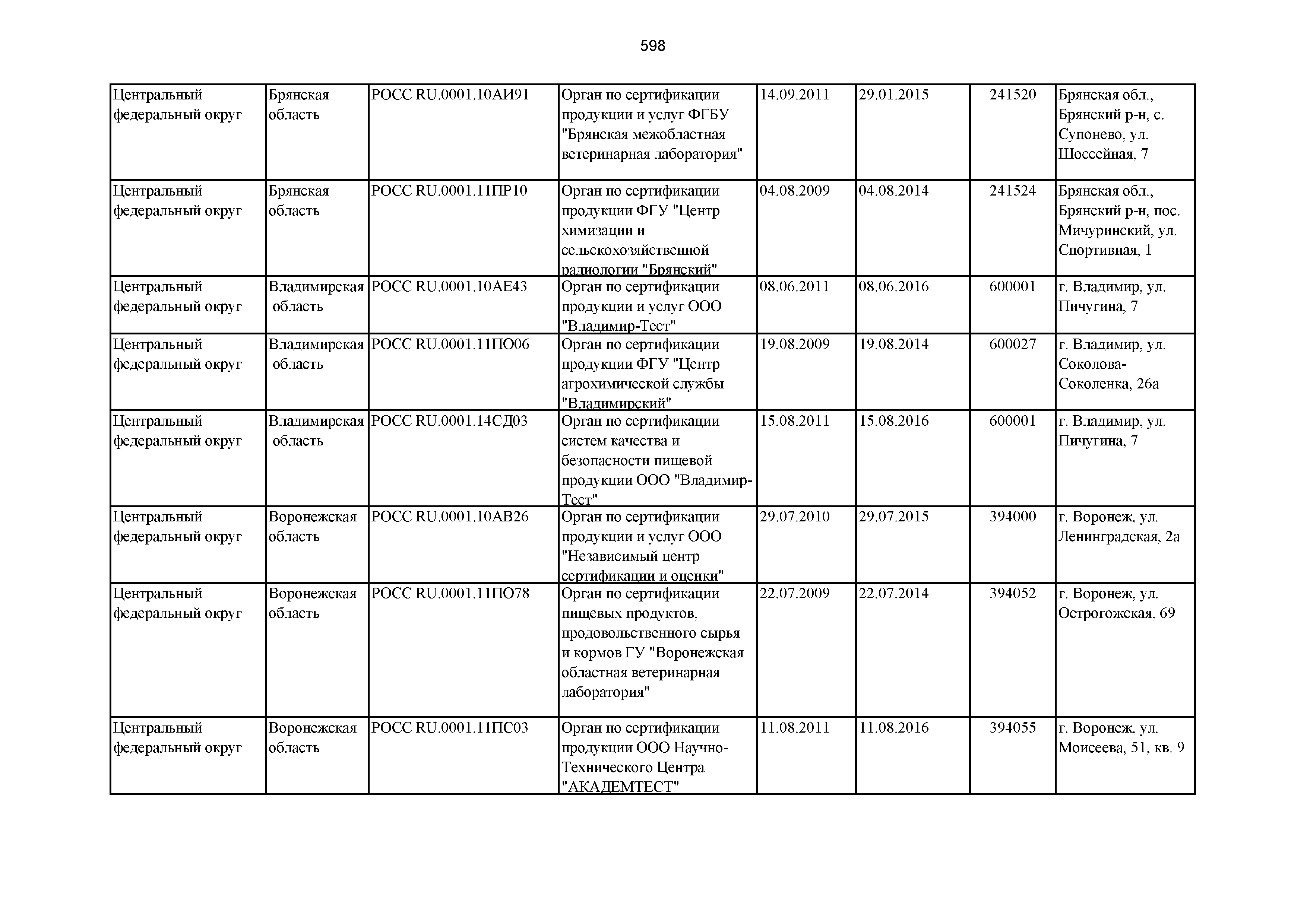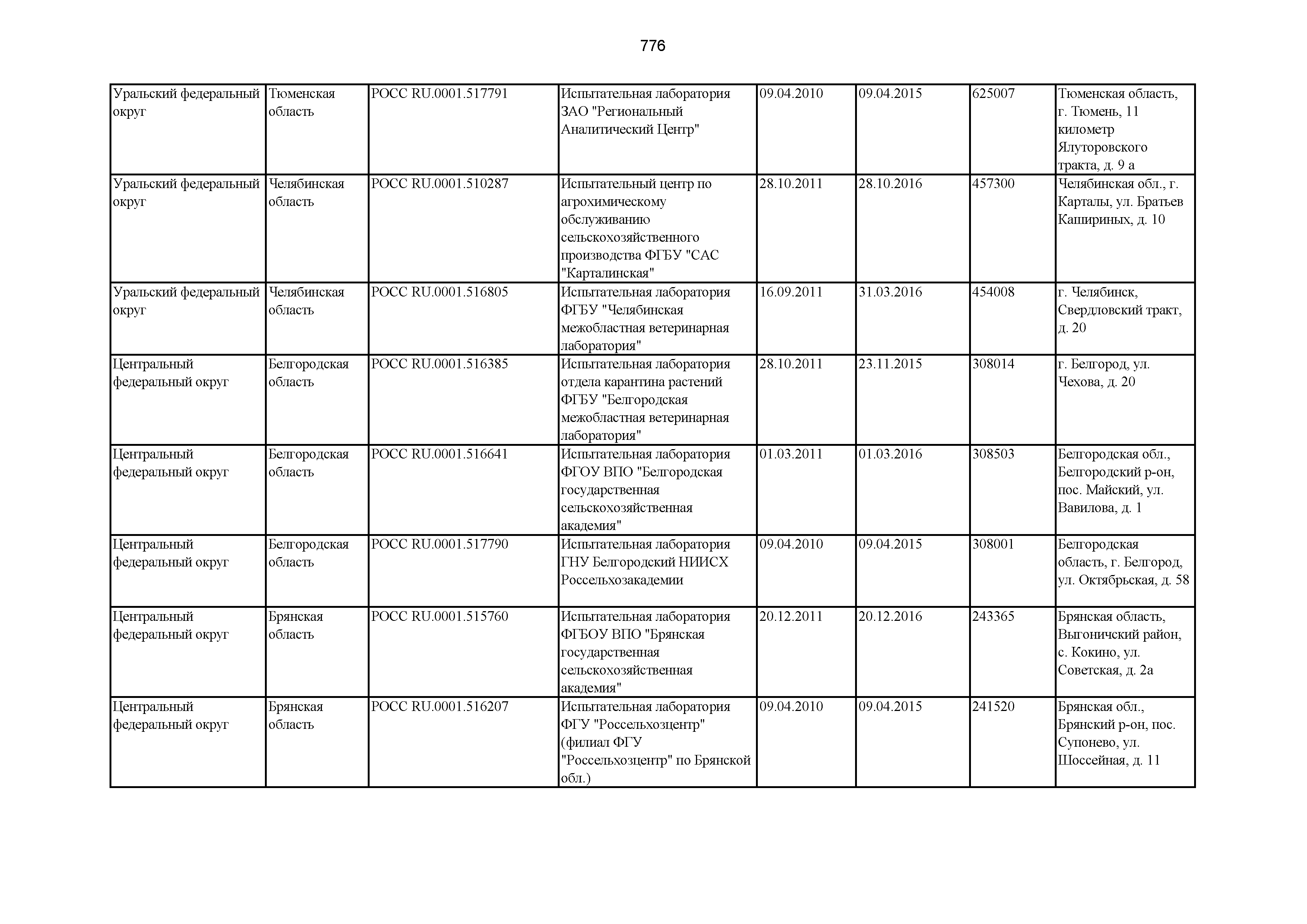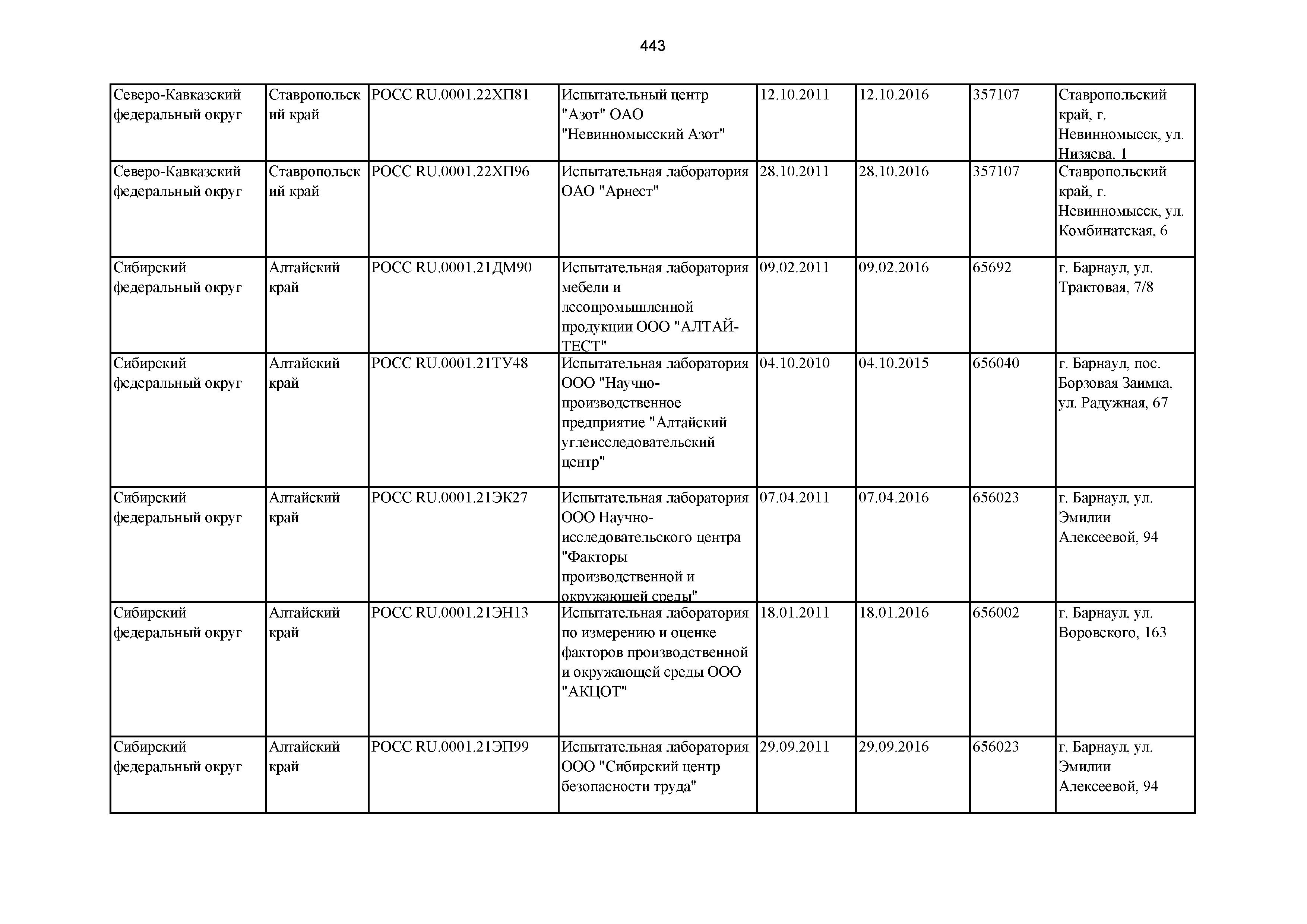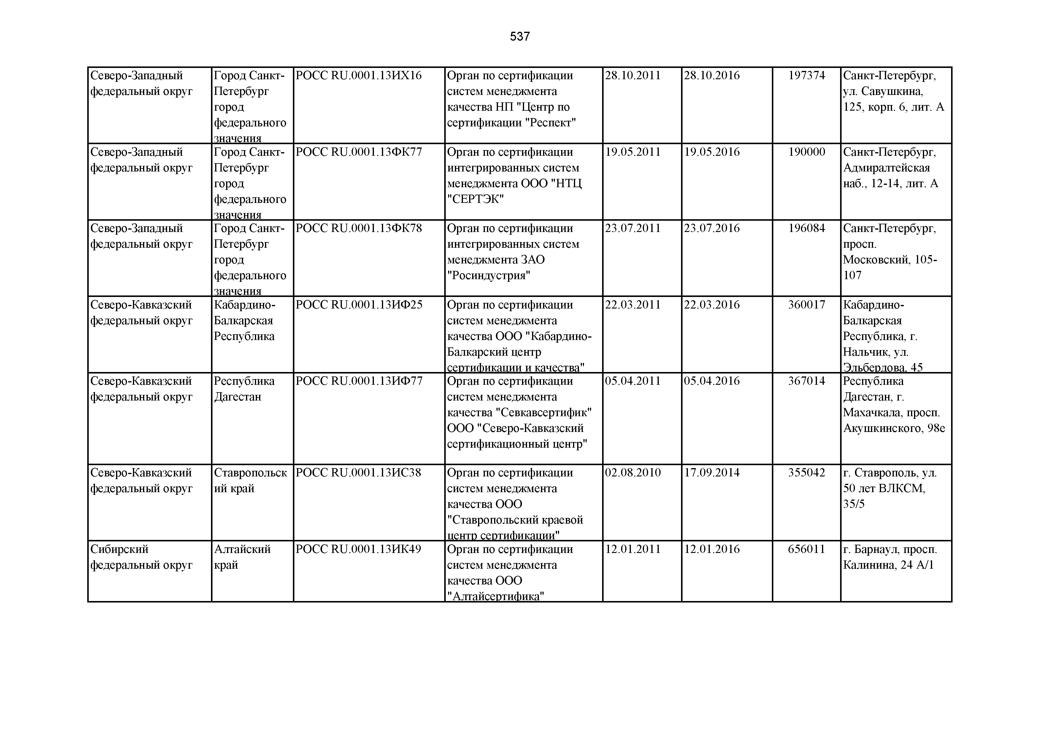 | Оглавление: | Приложение 1. План инспекционного контроля деятельности аккредитованных испытательных лабораторий (центров) и метрологической службы на 2012 год Приложение 2. План инспекционного контроля деятельности аккредитованных Органов по сертификации на 2012 год Приложение 3. План инспекционного контроля деятельности аналитических лабораторий (центров) на 2012 год Приложение 4. План инспекционного контроля в области обеспечения пожарной безопасности на 2012 год Приложение 5. План инспекционного контроля в области связи на 2012 год Приложение 6. План инспекционного контроля в области железнодорожного транспорта на 2012 год |
