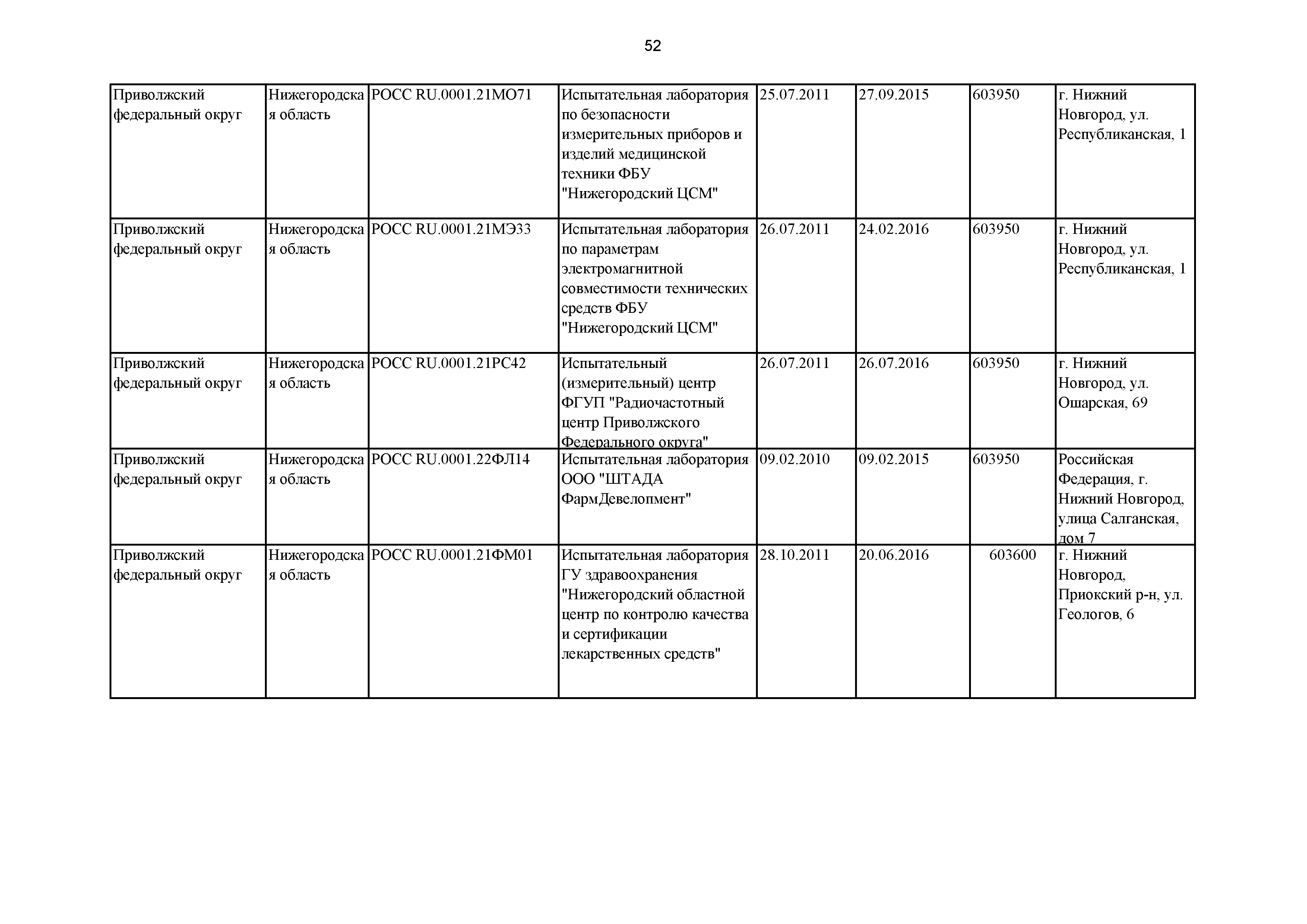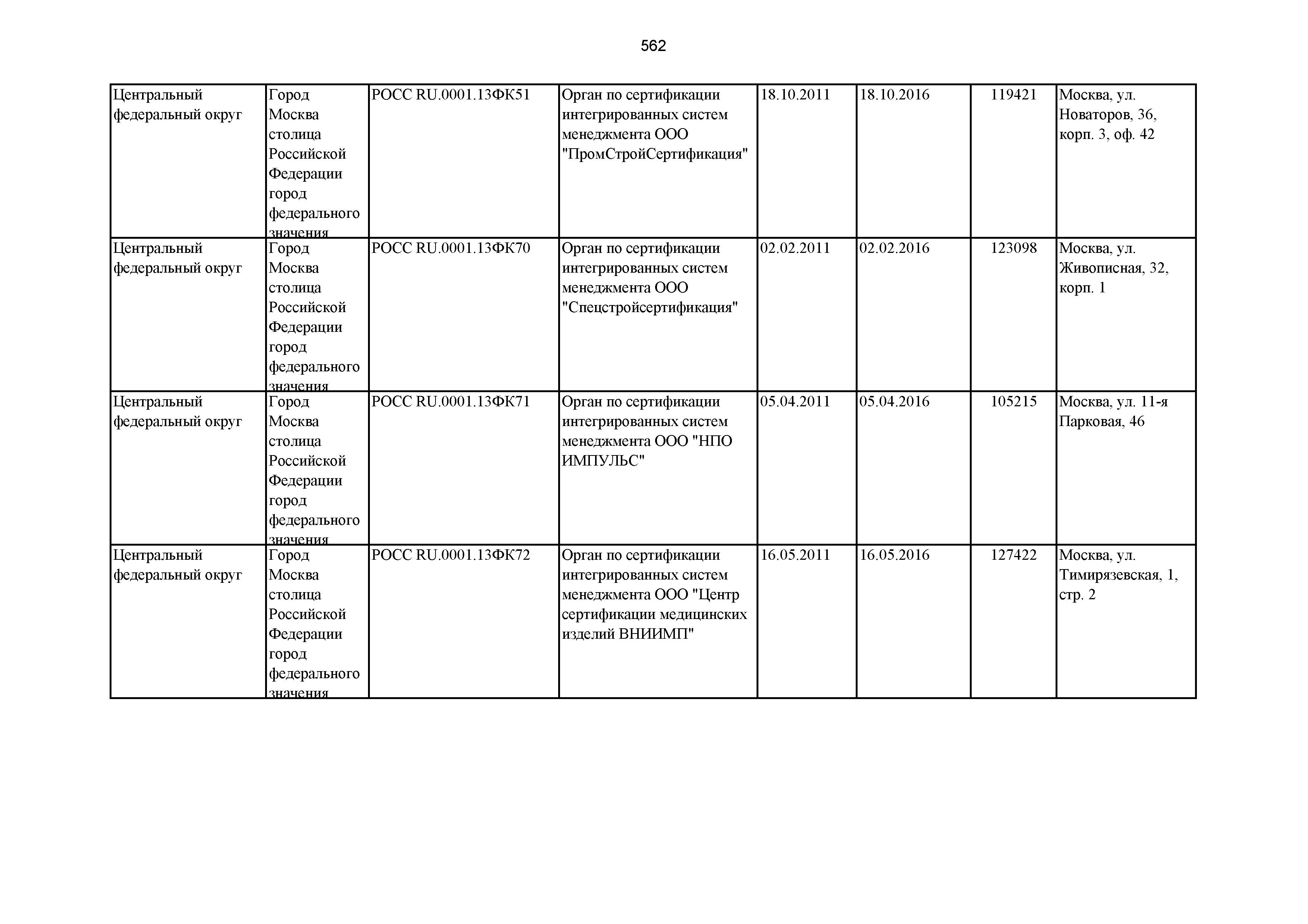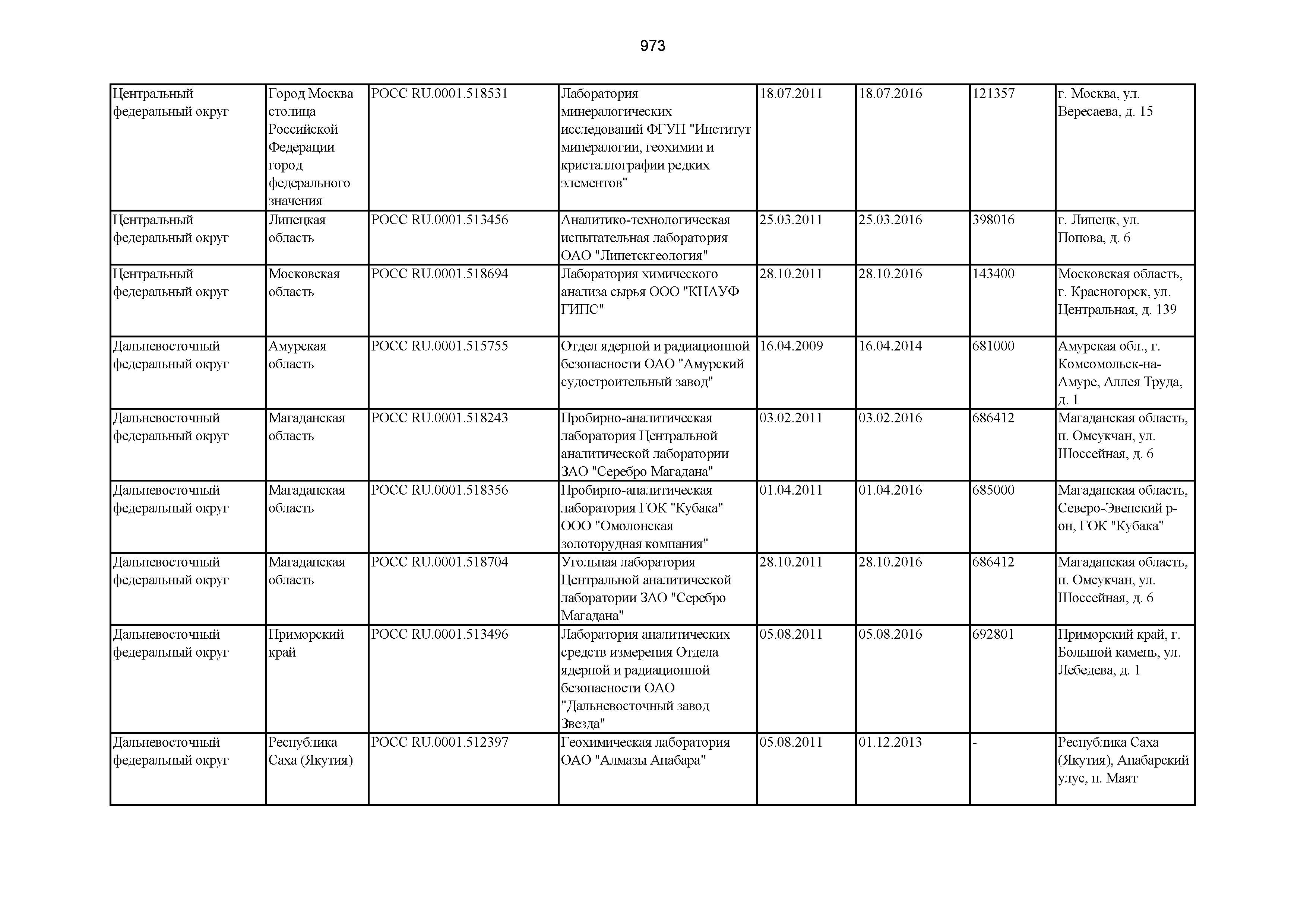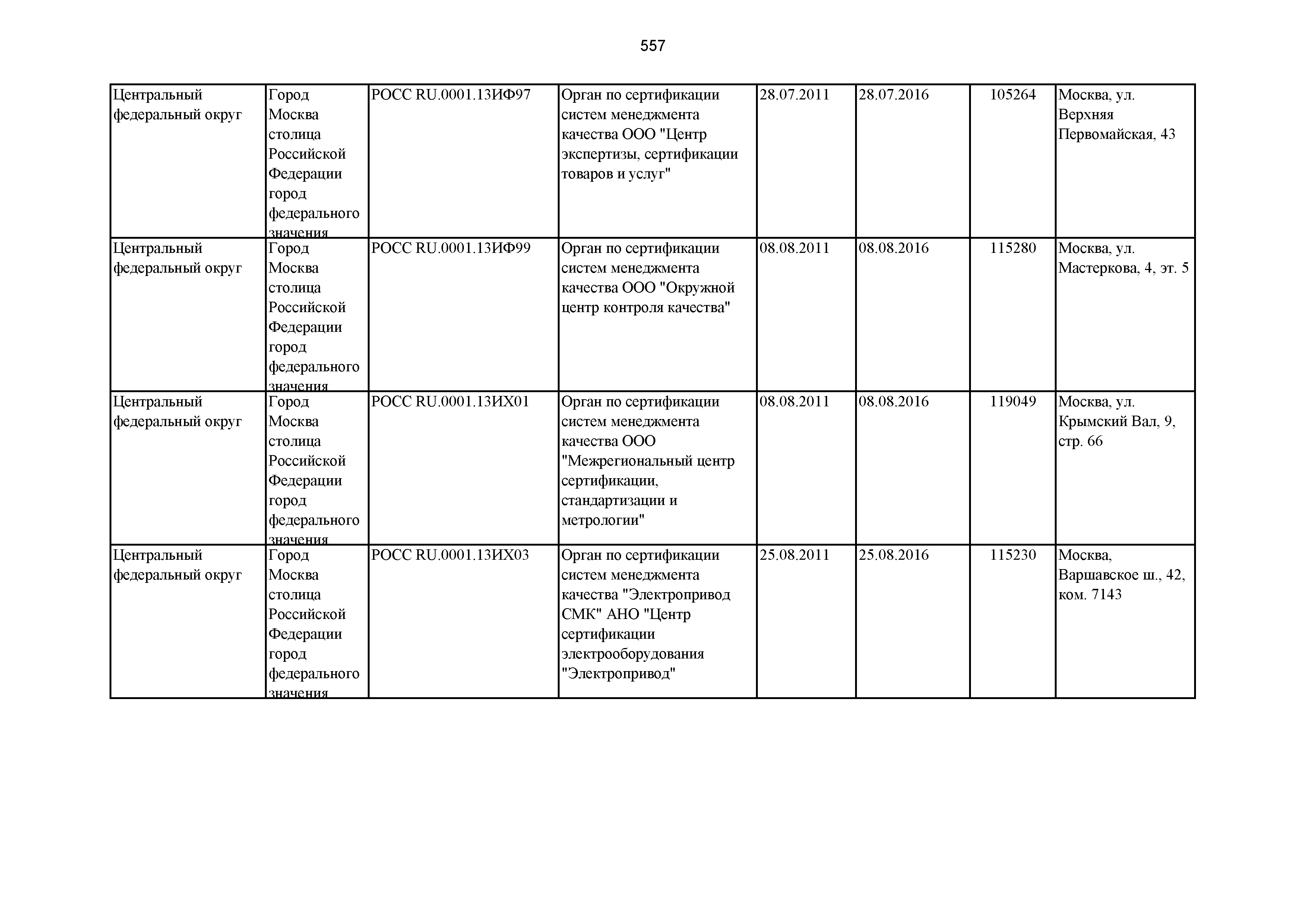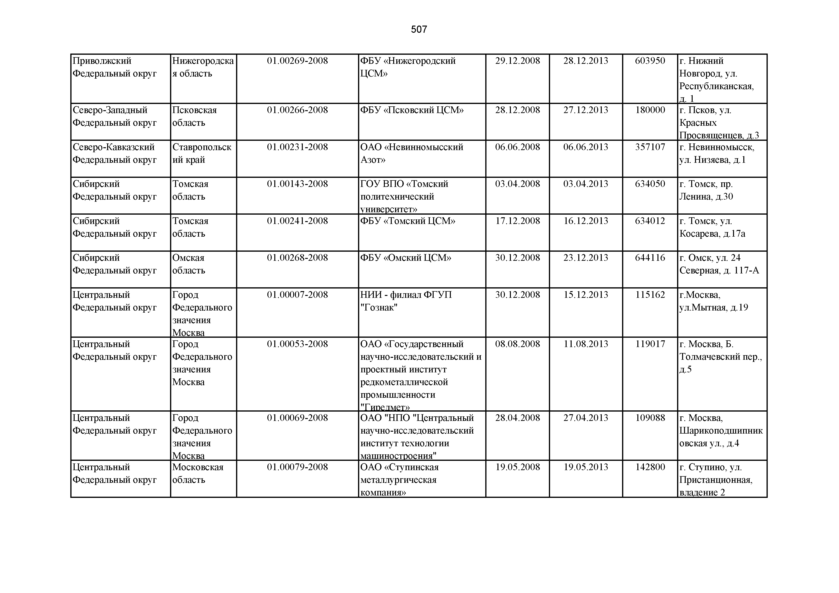 | Оглавление: | Приложение 1. План инспекционного контроля деятельности аккредитованных испытательных лабораторий (центров) и метрологической службы на 2012 год Приложение 2. План инспекционного контроля деятельности аккредитованных Органов по сертификации на 2012 год Приложение 3. План инспекционного контроля деятельности аналитических лабораторий (центров) на 2012 год Приложение 4. План инспекционного контроля в области обеспечения пожарной безопасности на 2012 год Приложение 5. План инспекционного контроля в области связи на 2012 год Приложение 6. План инспекционного контроля в области железнодорожного транспорта на 2012 год |