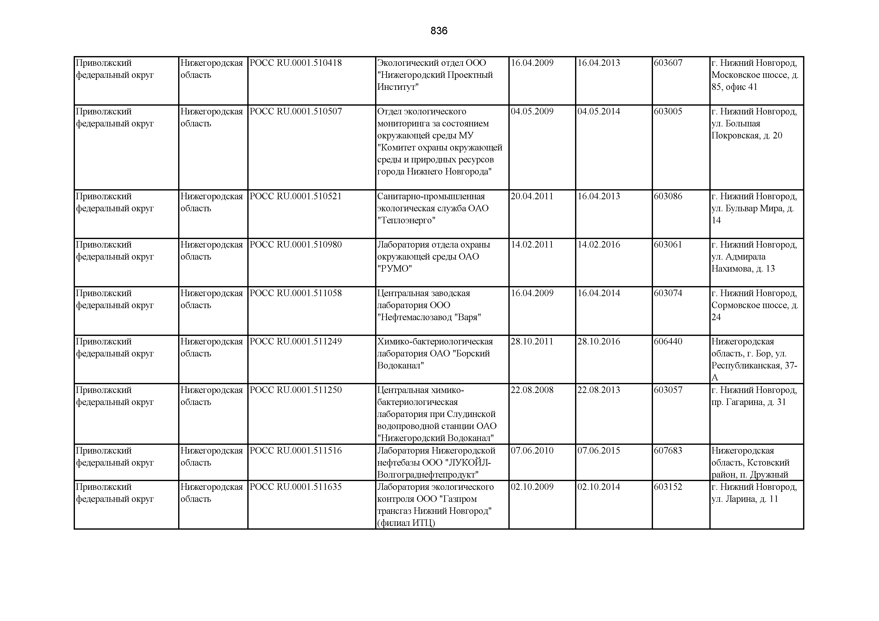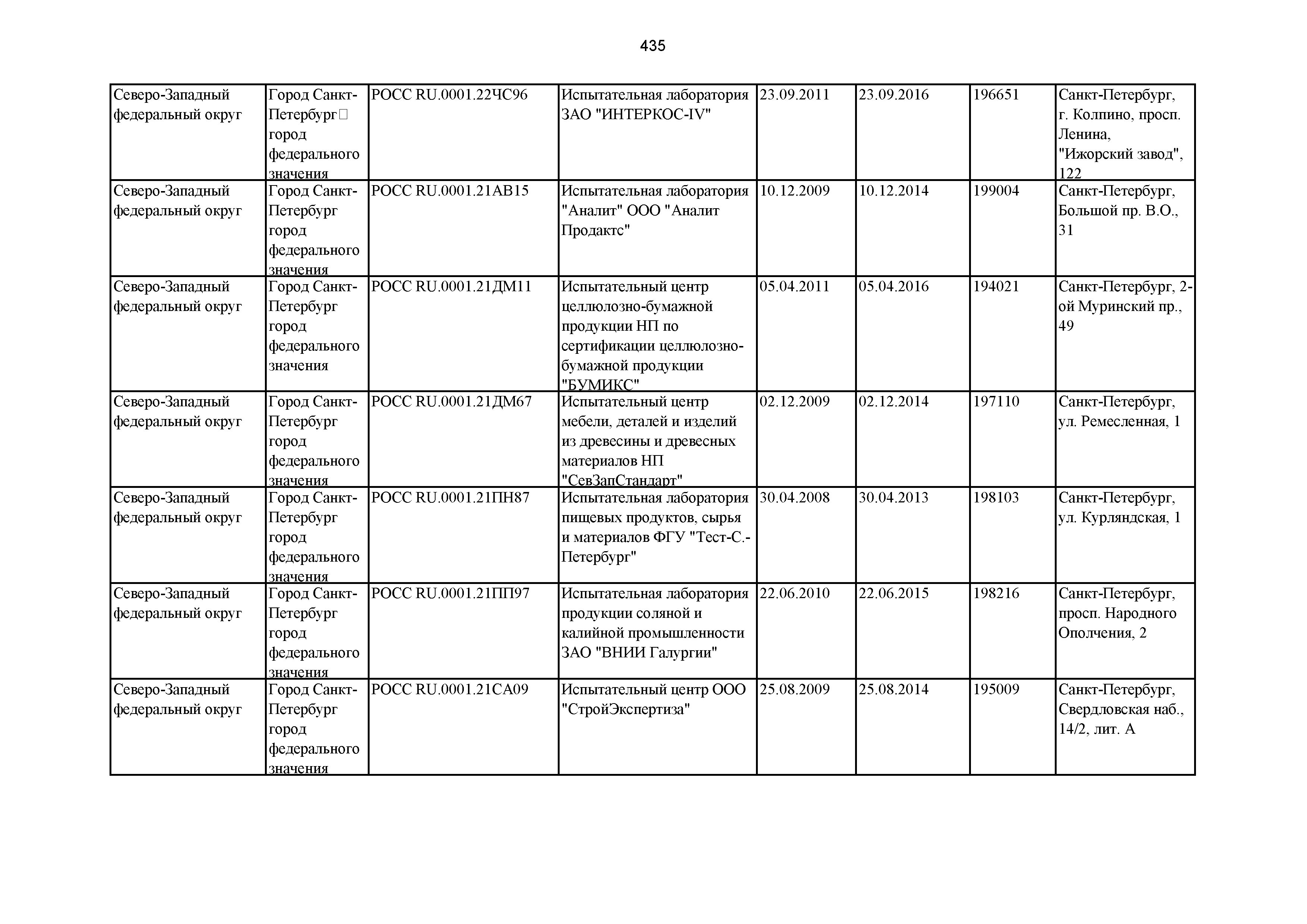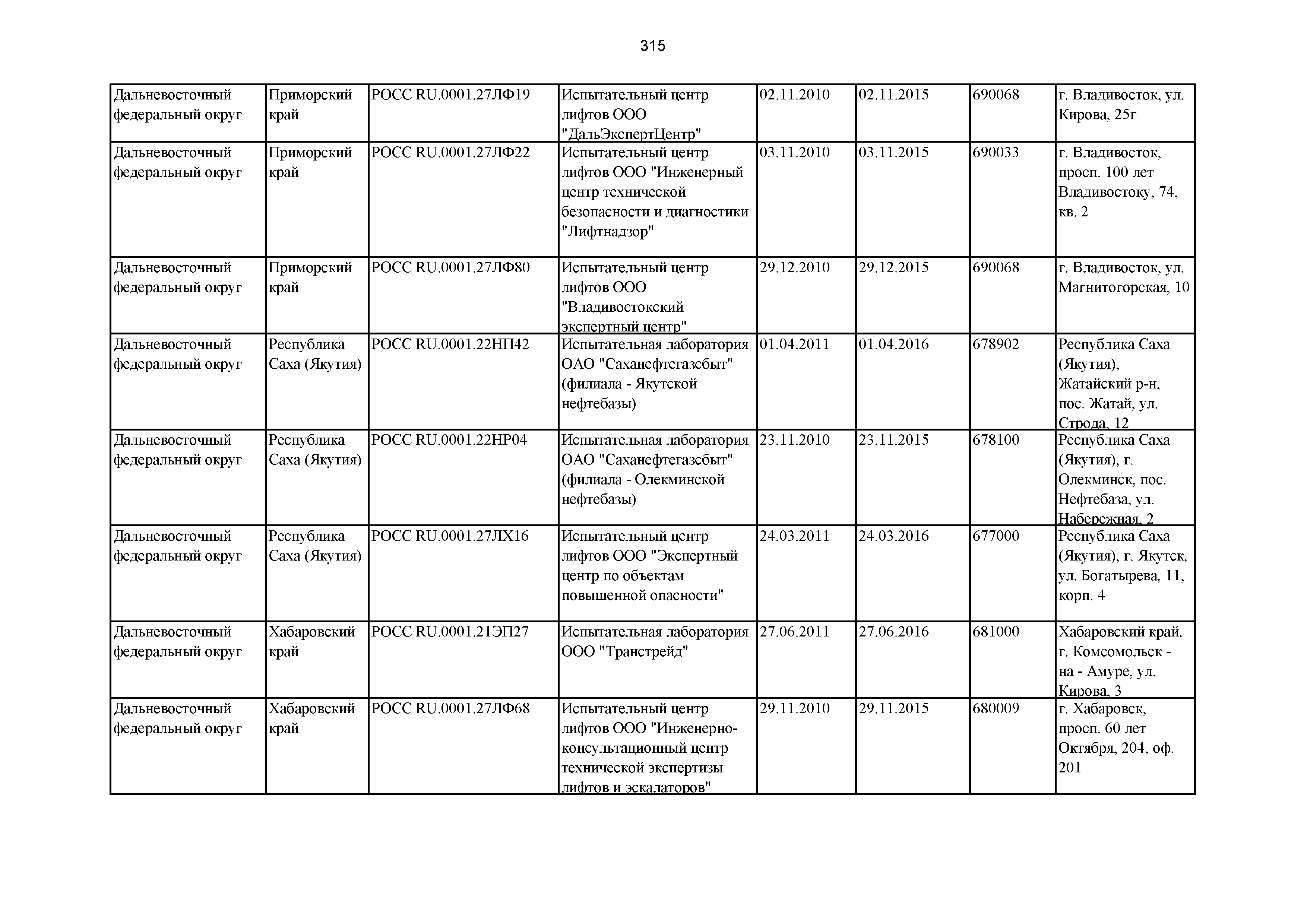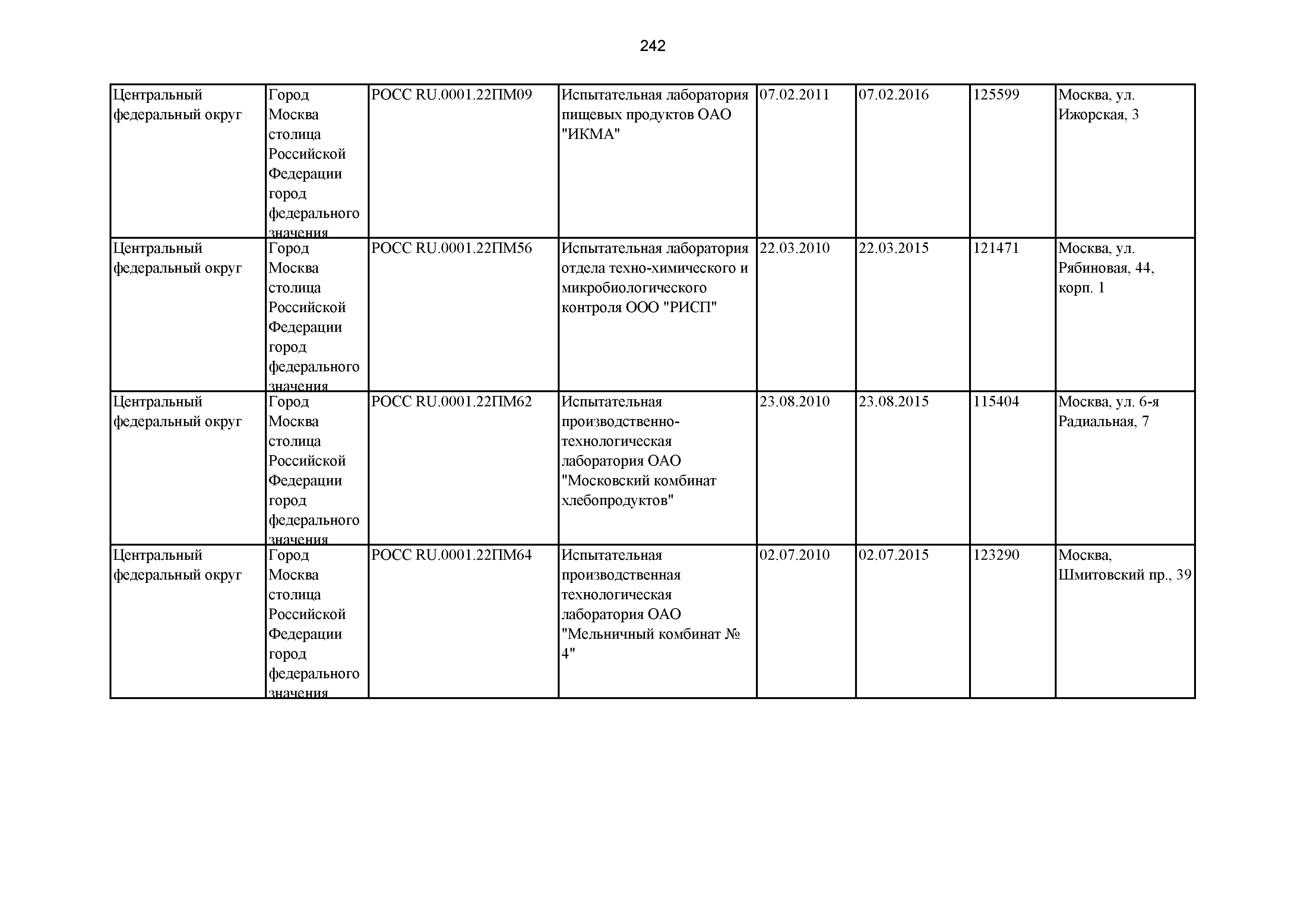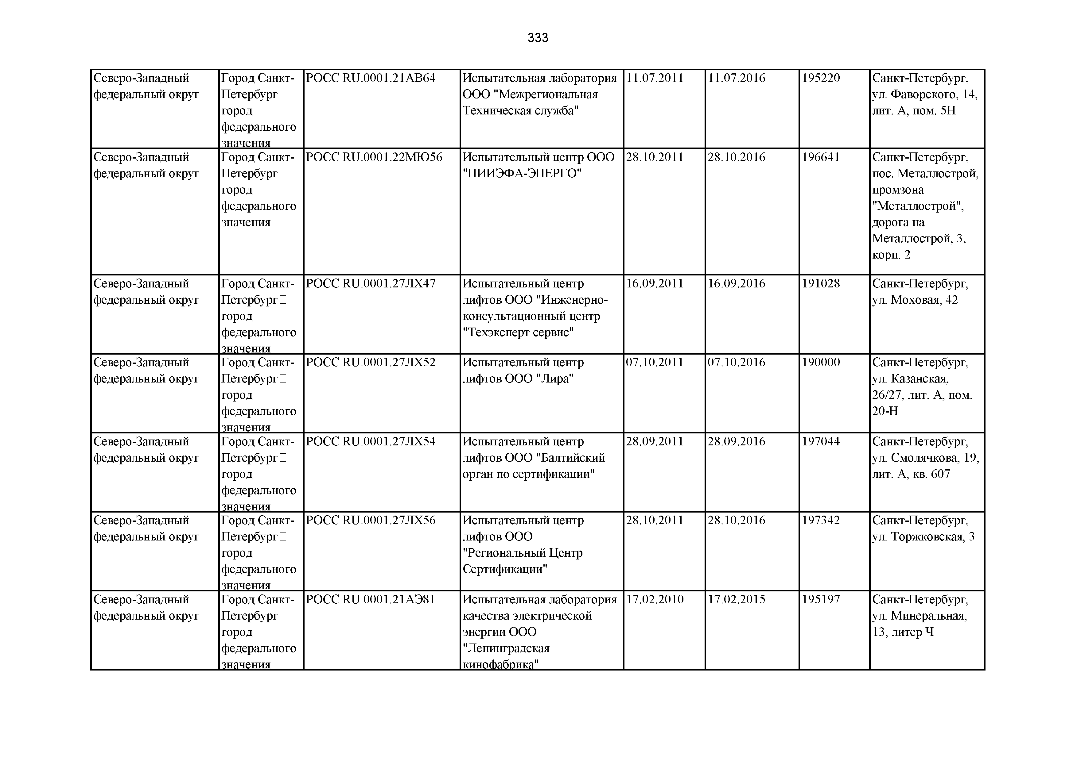 | Оглавление: | Приложение 1. План инспекционного контроля деятельности аккредитованных испытательных лабораторий (центров) и метрологической службы на 2012 год Приложение 2. План инспекционного контроля деятельности аккредитованных Органов по сертификации на 2012 год Приложение 3. План инспекционного контроля деятельности аналитических лабораторий (центров) на 2012 год Приложение 4. План инспекционного контроля в области обеспечения пожарной безопасности на 2012 год Приложение 5. План инспекционного контроля в области связи на 2012 год Приложение 6. План инспекционного контроля в области железнодорожного транспорта на 2012 год |