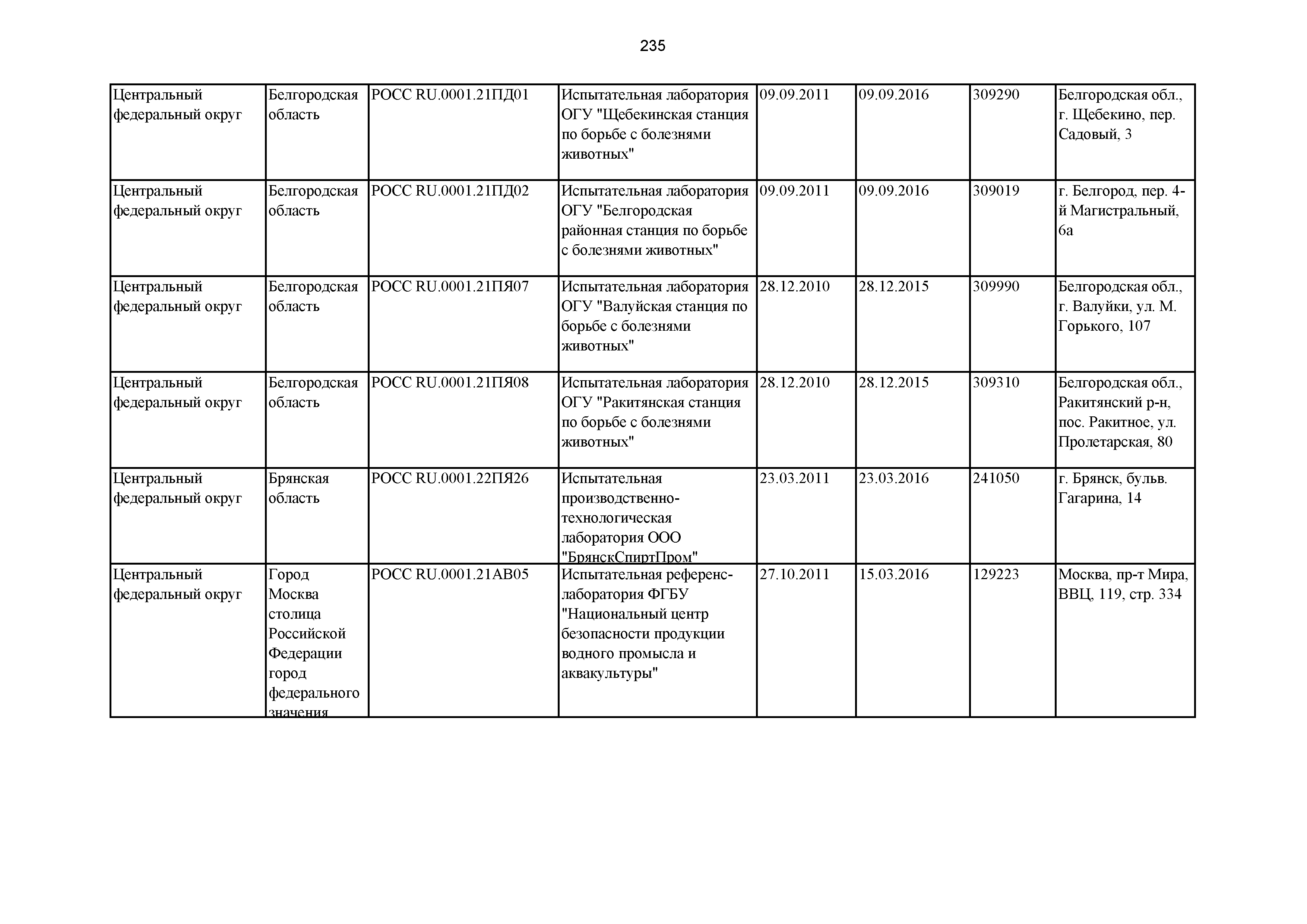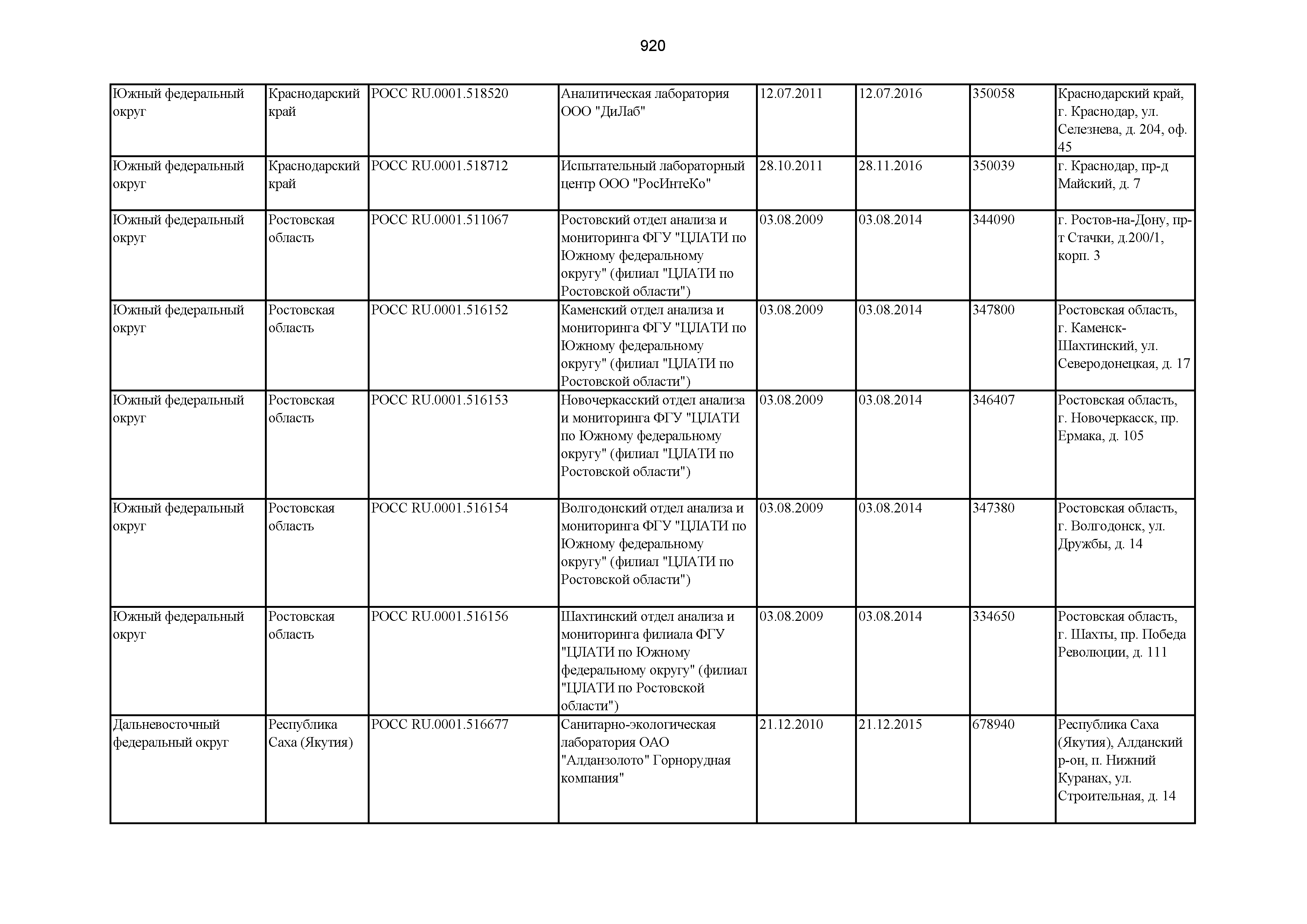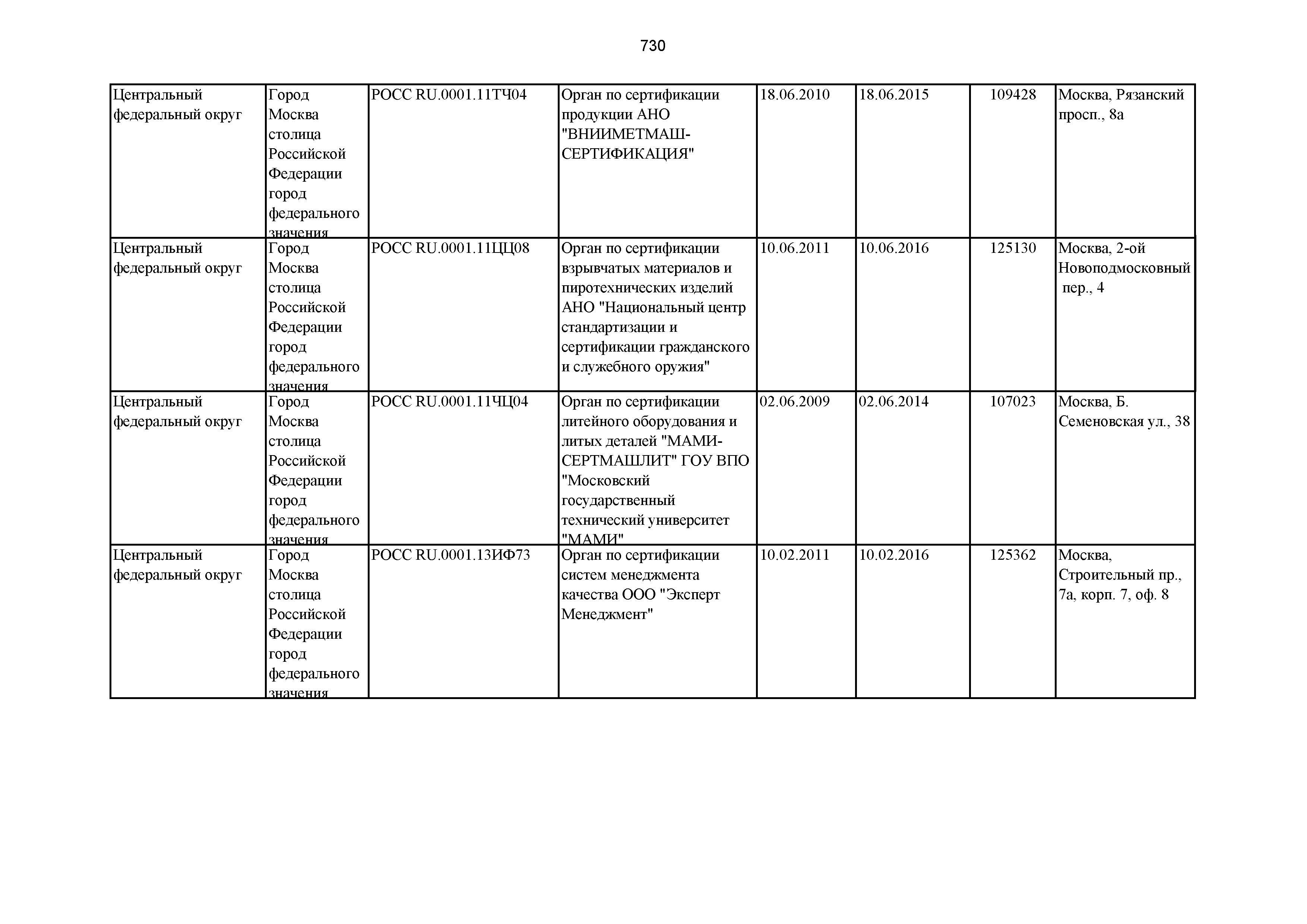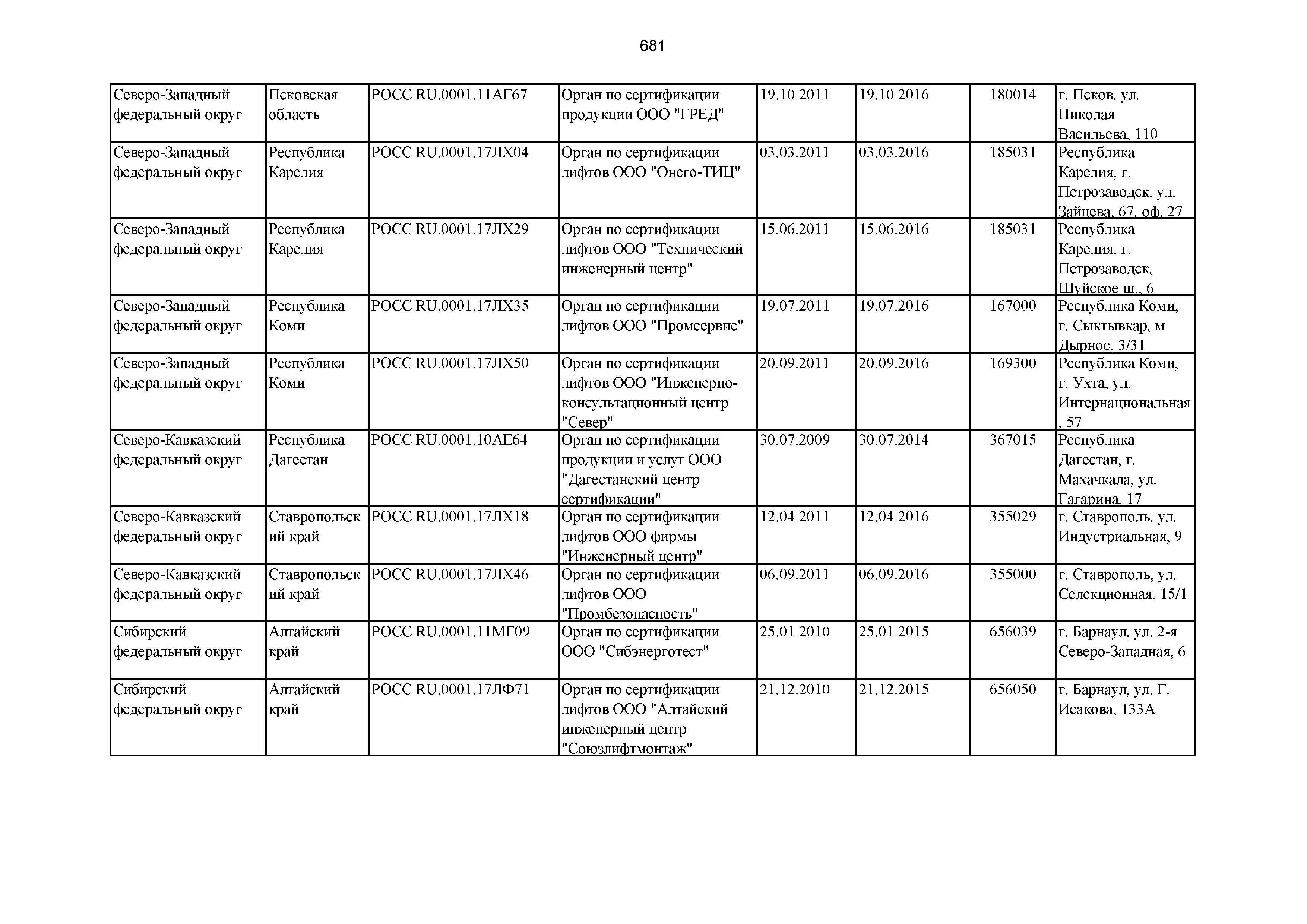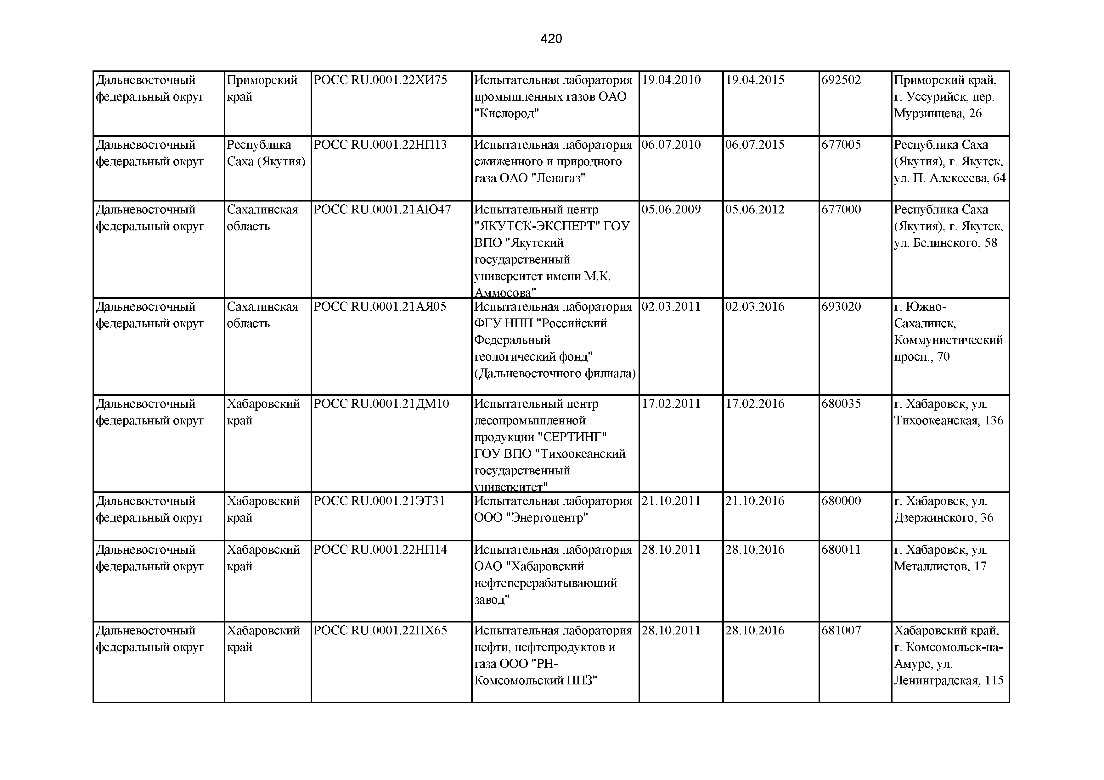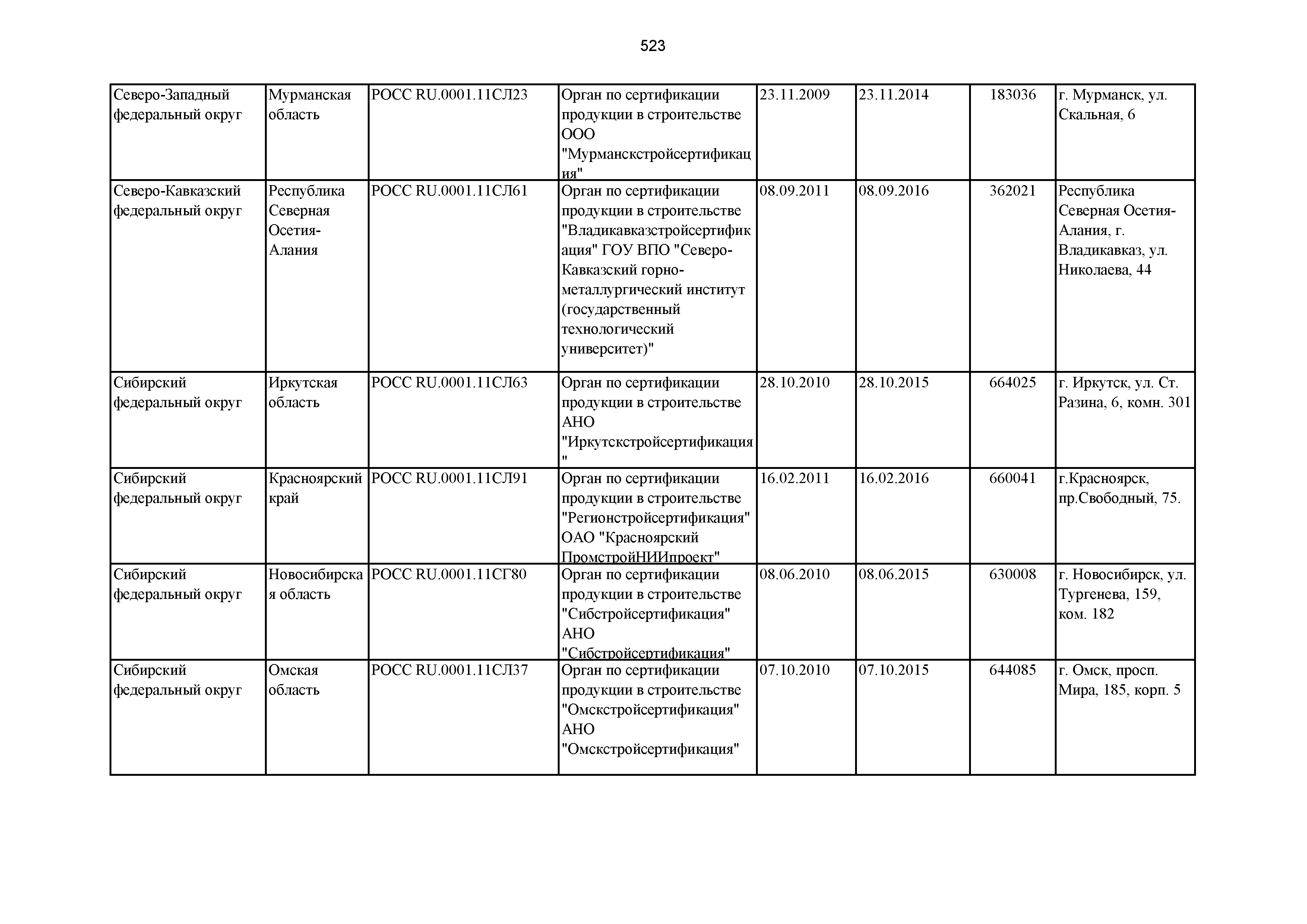 | Оглавление: | Приложение 1. План инспекционного контроля деятельности аккредитованных испытательных лабораторий (центров) и метрологической службы на 2012 год Приложение 2. План инспекционного контроля деятельности аккредитованных Органов по сертификации на 2012 год Приложение 3. План инспекционного контроля деятельности аналитических лабораторий (центров) на 2012 год Приложение 4. План инспекционного контроля в области обеспечения пожарной безопасности на 2012 год Приложение 5. План инспекционного контроля в области связи на 2012 год Приложение 6. План инспекционного контроля в области железнодорожного транспорта на 2012 год |
