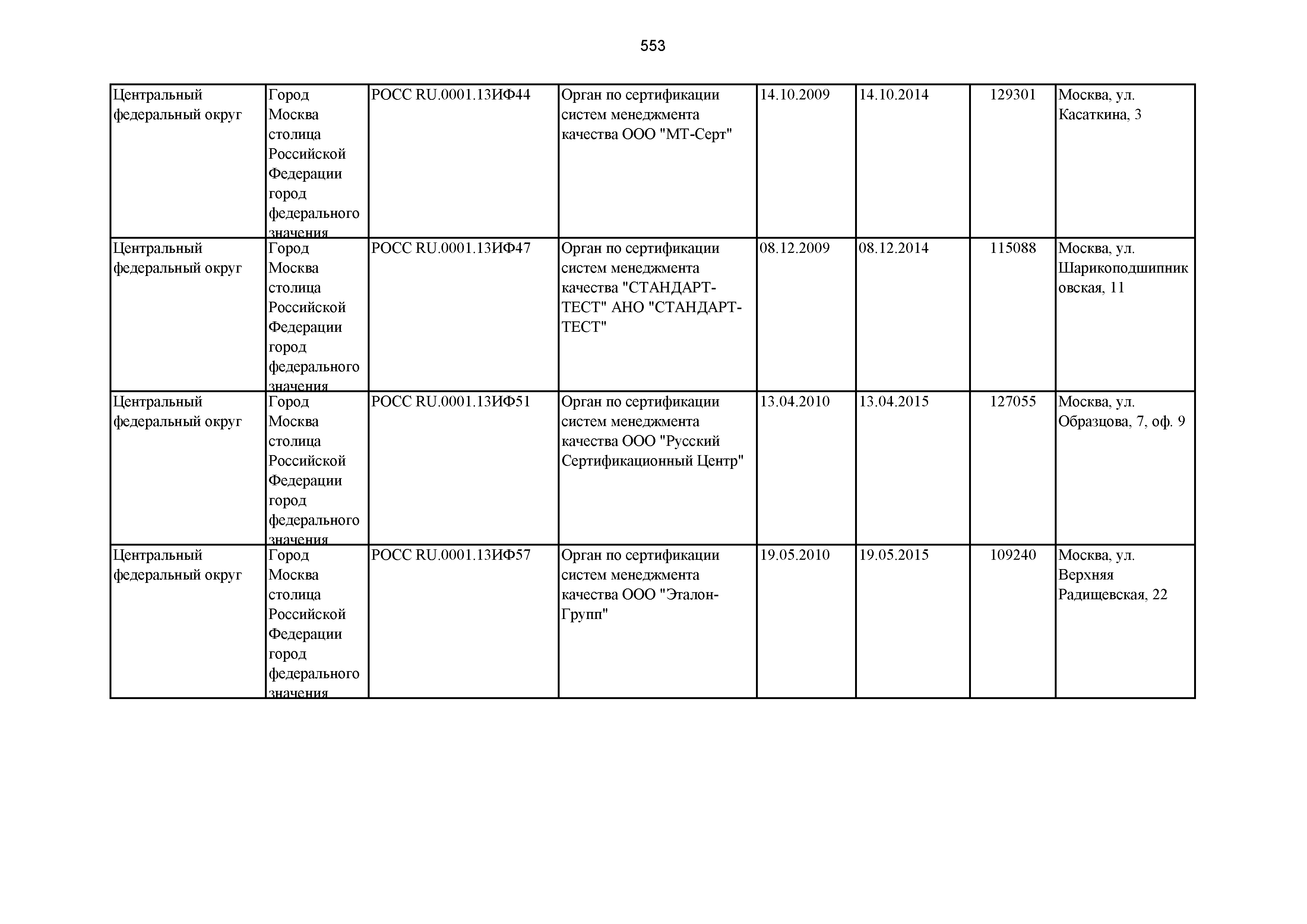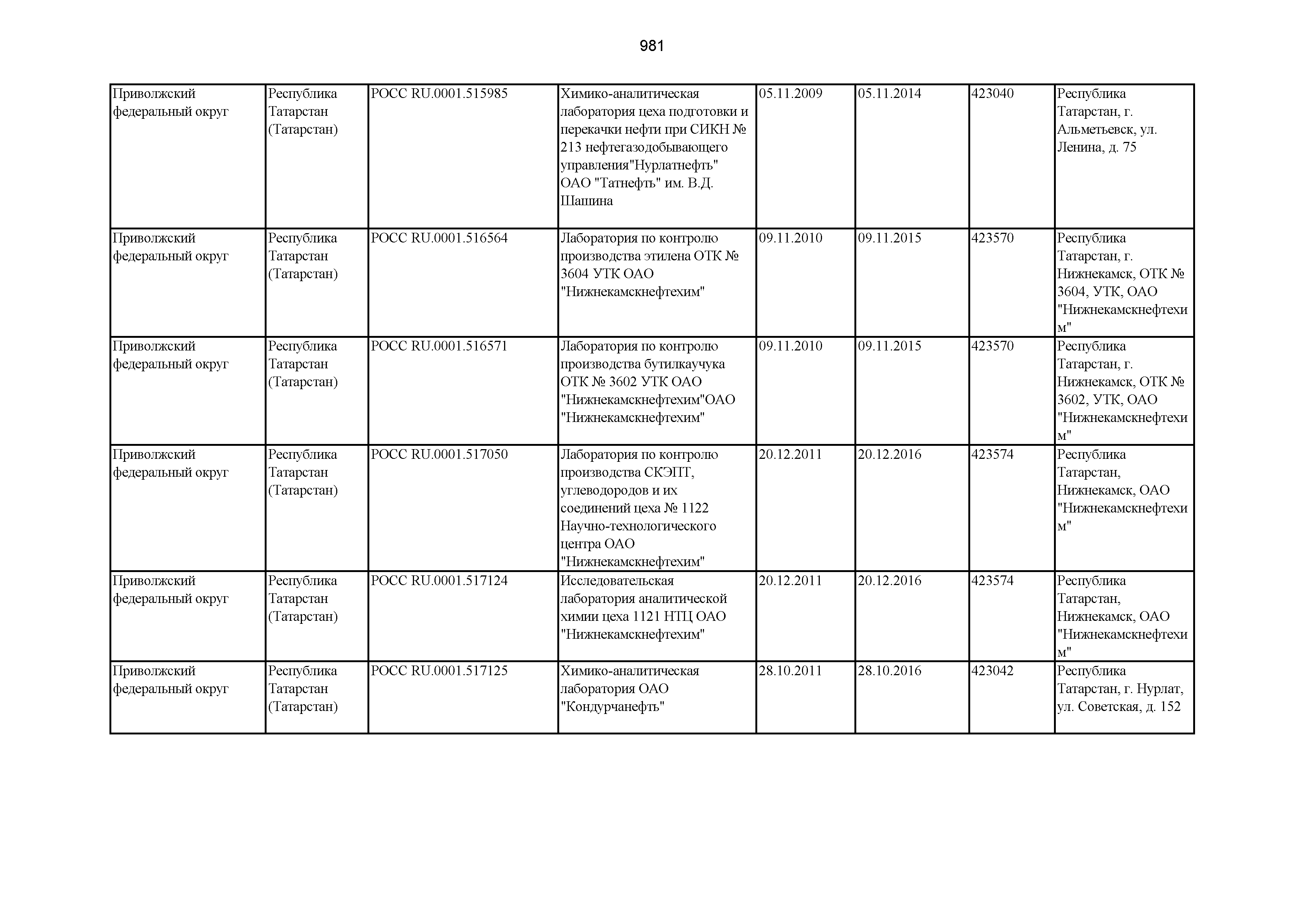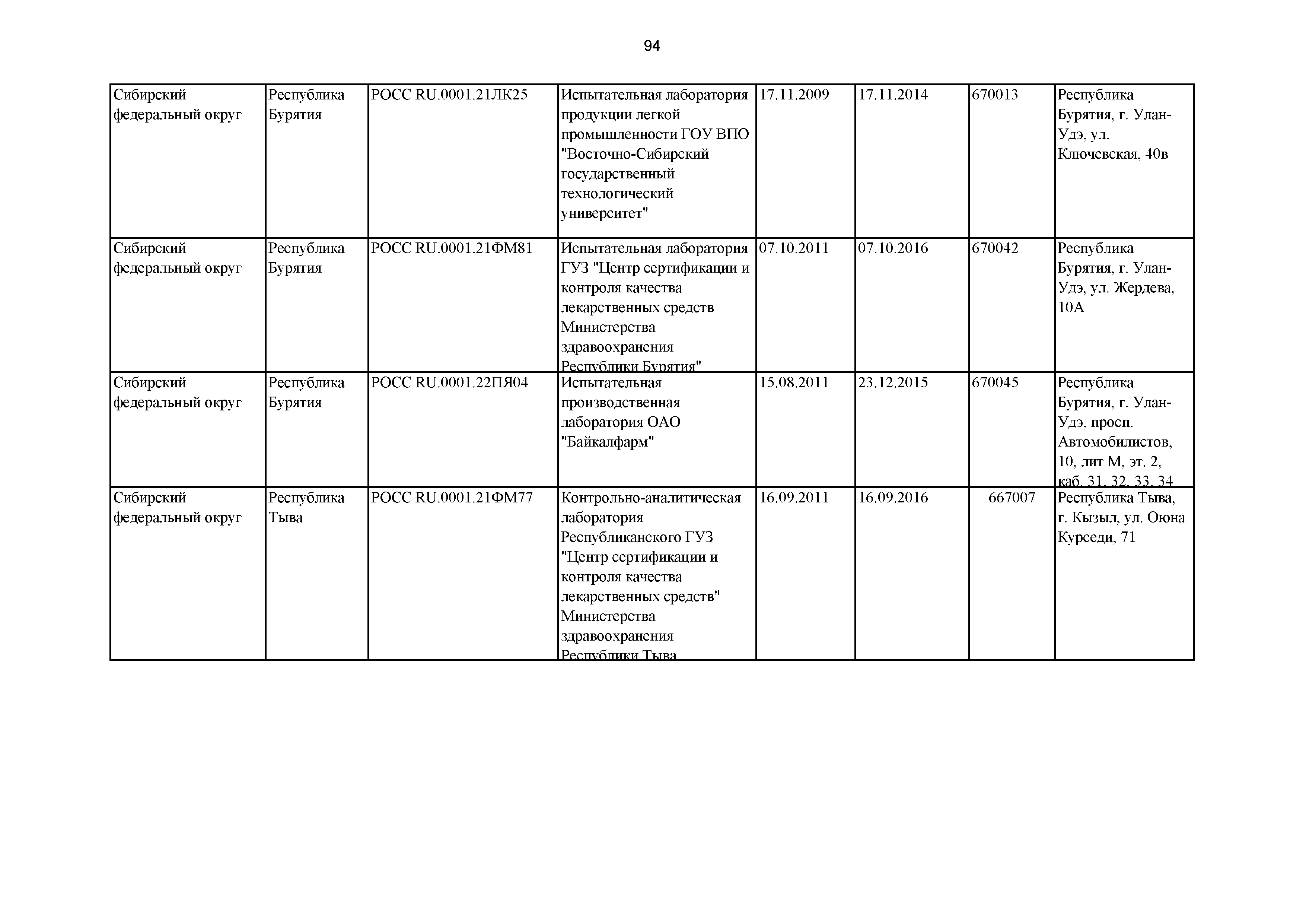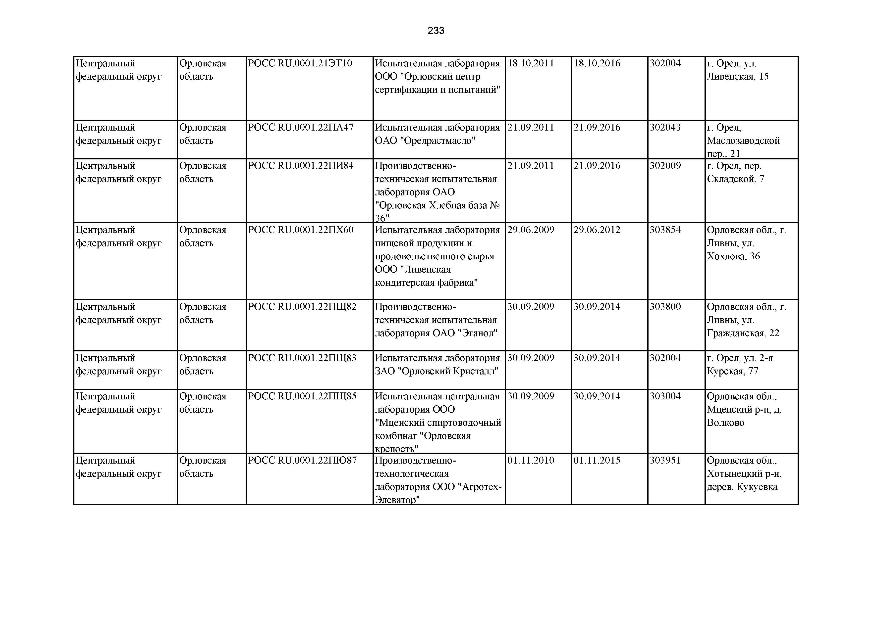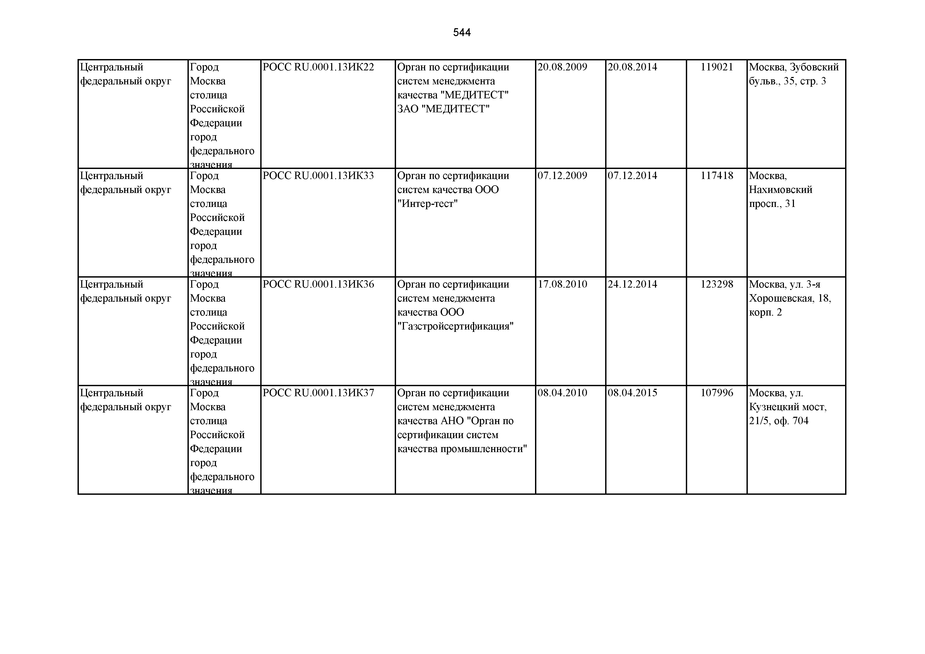| Оглавление: | Приложение 1. План инспекционного контроля деятельности аккредитованных испытательных лабораторий (центров) и метрологической службы на 2012 год Приложение 2. План инспекционного контроля деятельности аккредитованных Органов по сертификации на 2012 год Приложение 3. План инспекционного контроля деятельности аналитических лабораторий (центров) на 2012 год Приложение 4. План инспекционного контроля в области обеспечения пожарной безопасности на 2012 год Приложение 5. План инспекционного контроля в области связи на 2012 год Приложение 6. План инспекционного контроля в области железнодорожного транспорта на 2012 год |