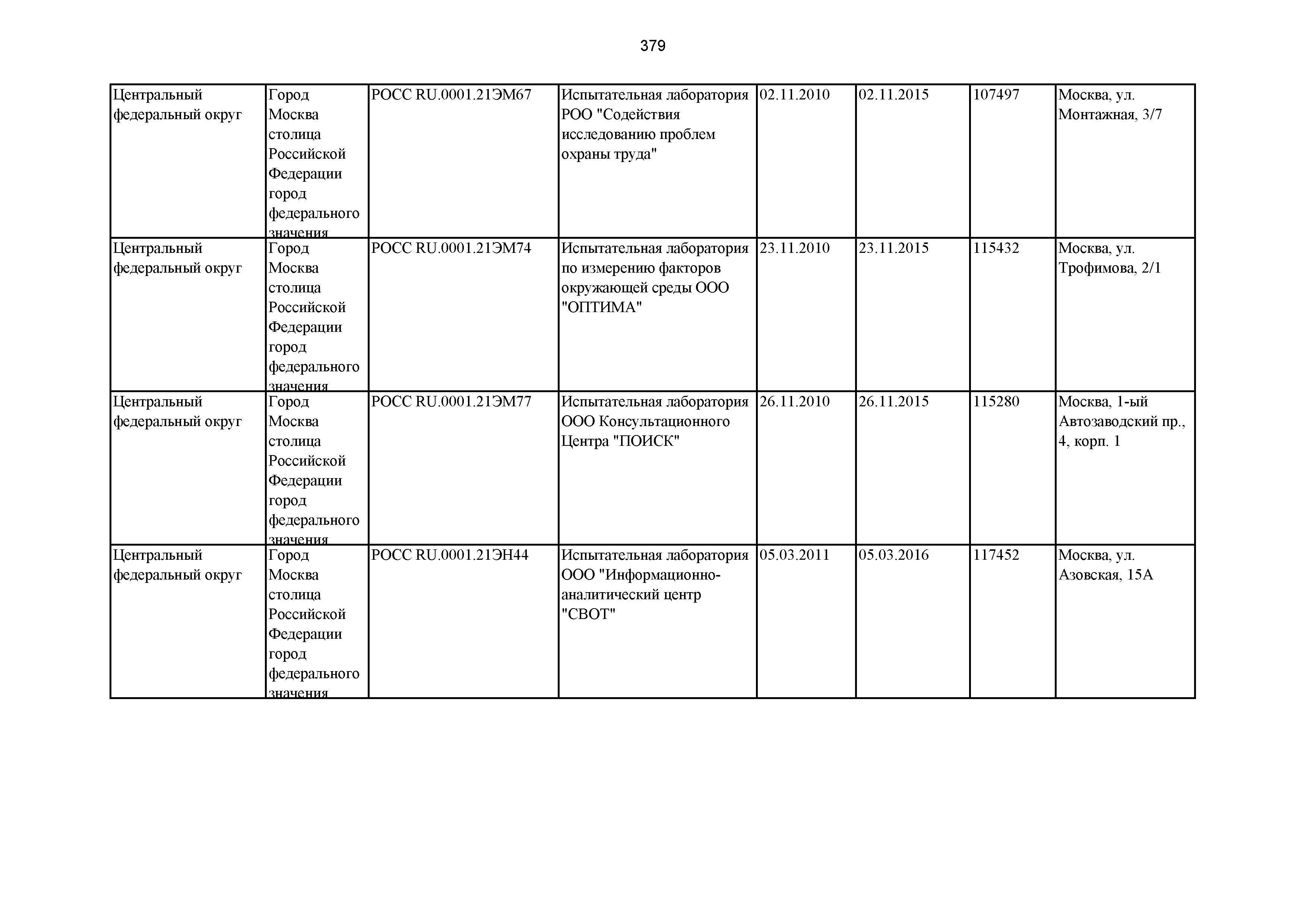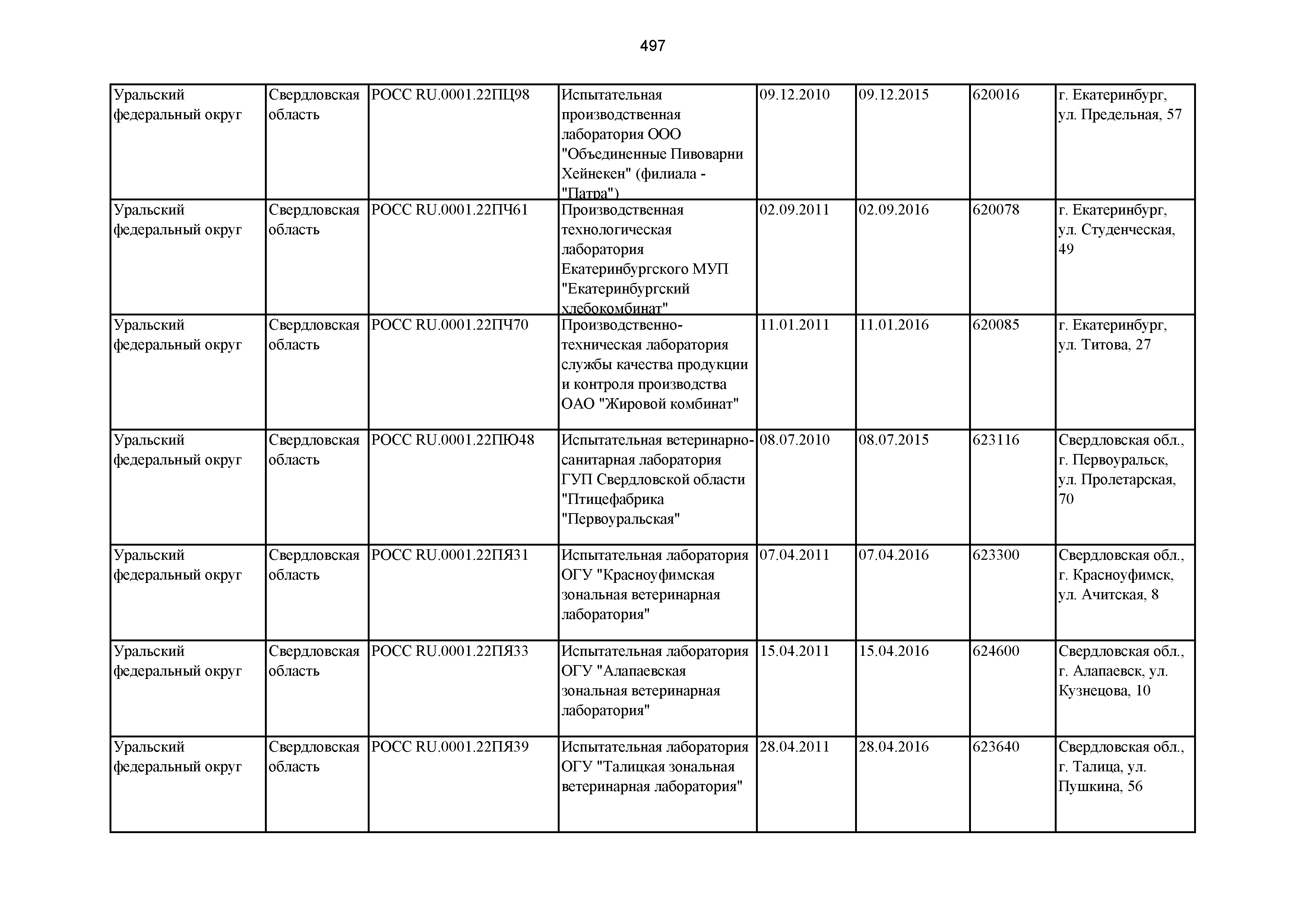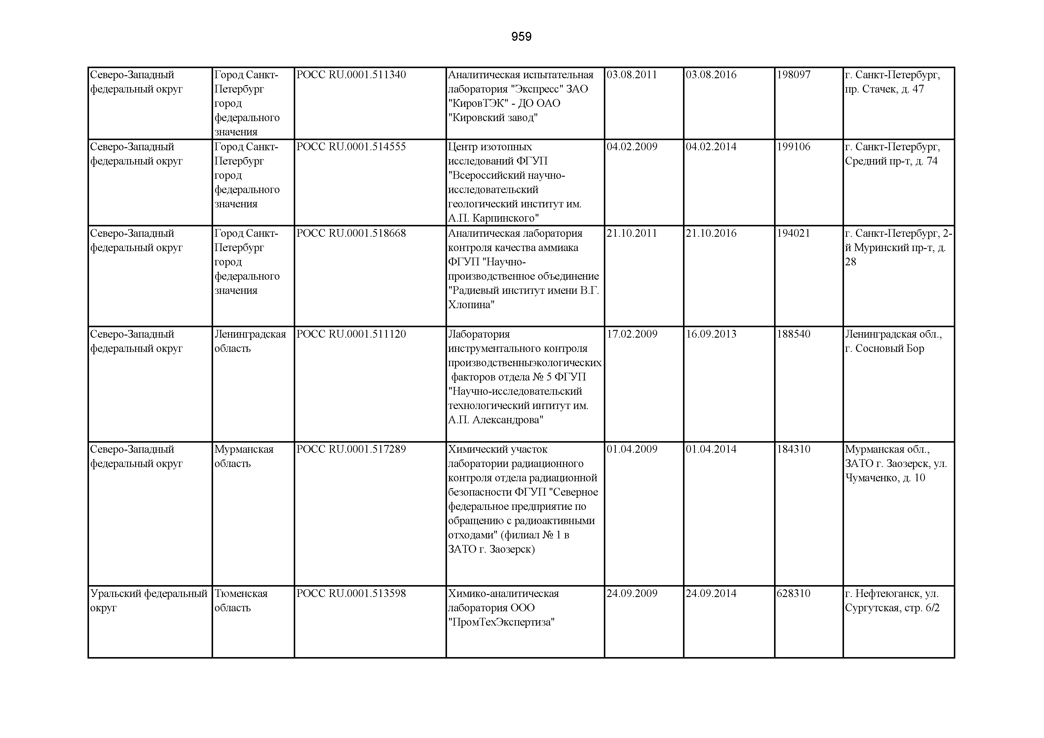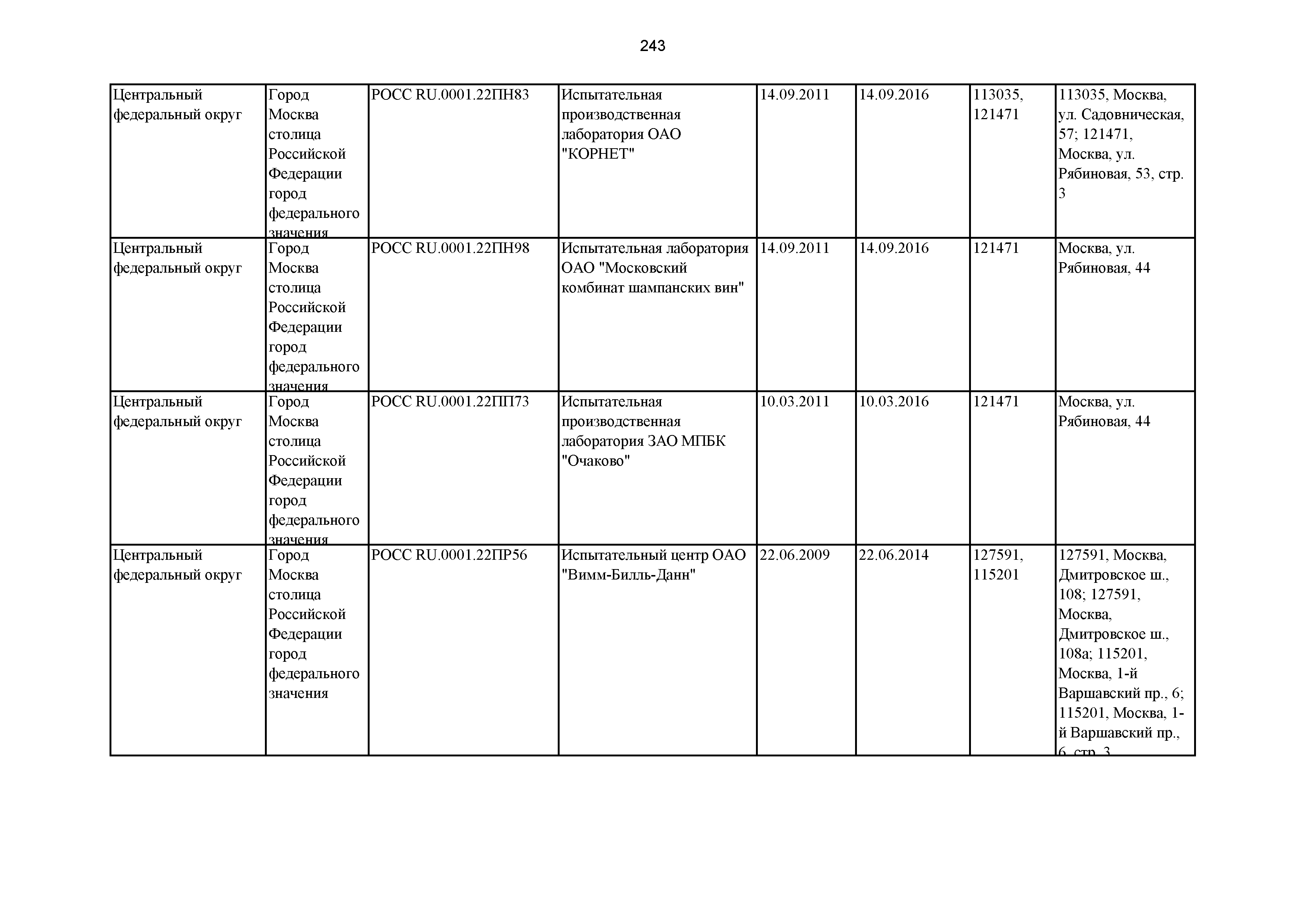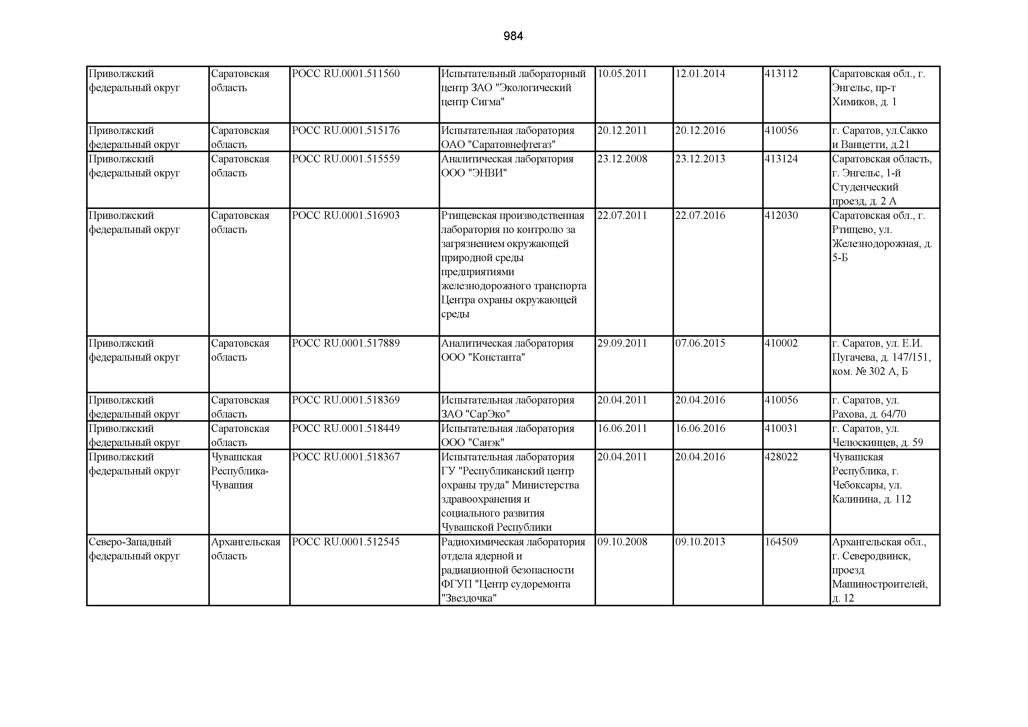 | Оглавление: | Приложение 1. План инспекционного контроля деятельности аккредитованных испытательных лабораторий (центров) и метрологической службы на 2012 год Приложение 2. План инспекционного контроля деятельности аккредитованных Органов по сертификации на 2012 год Приложение 3. План инспекционного контроля деятельности аналитических лабораторий (центров) на 2012 год Приложение 4. План инспекционного контроля в области обеспечения пожарной безопасности на 2012 год Приложение 5. План инспекционного контроля в области связи на 2012 год Приложение 6. План инспекционного контроля в области железнодорожного транспорта на 2012 год |