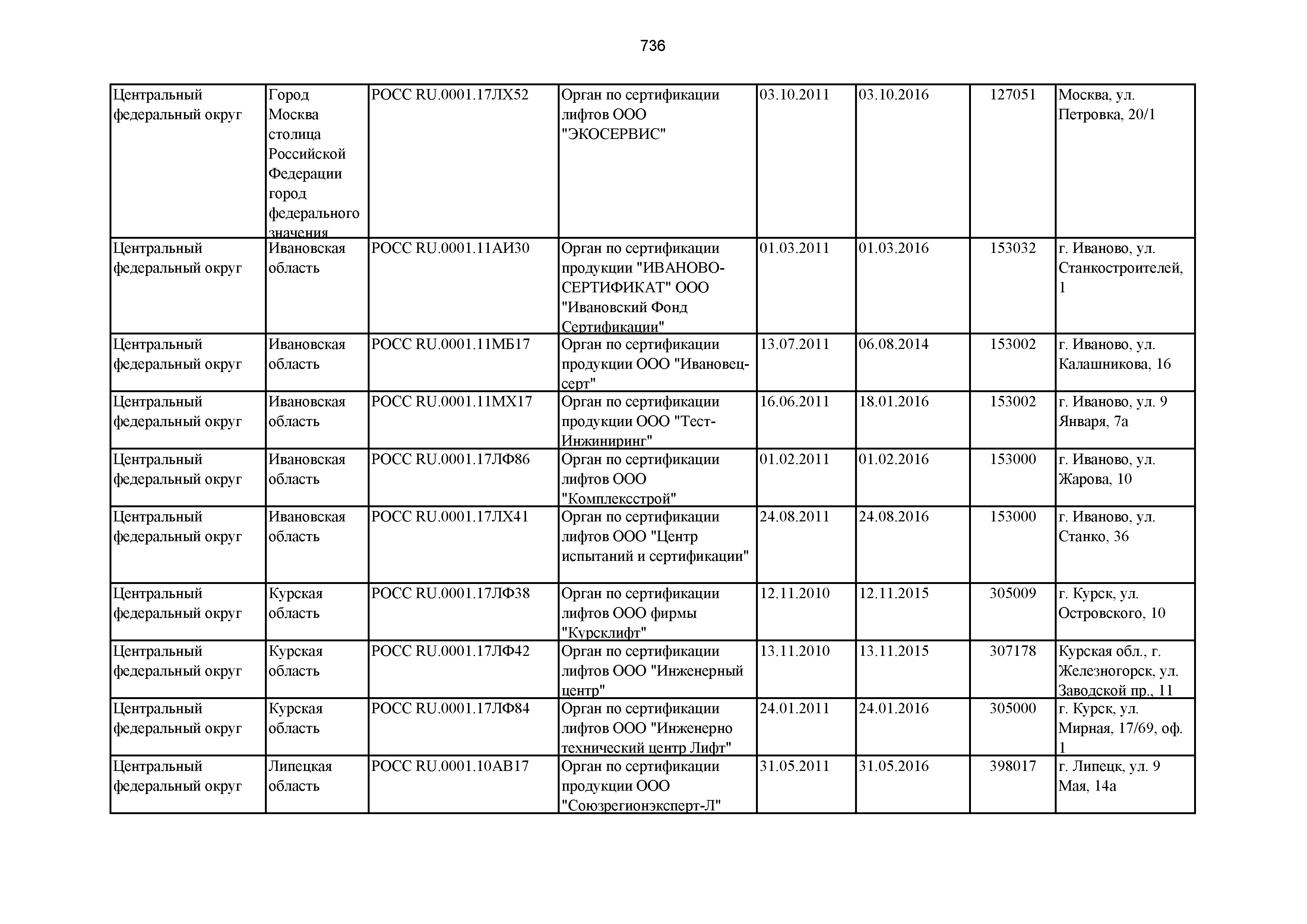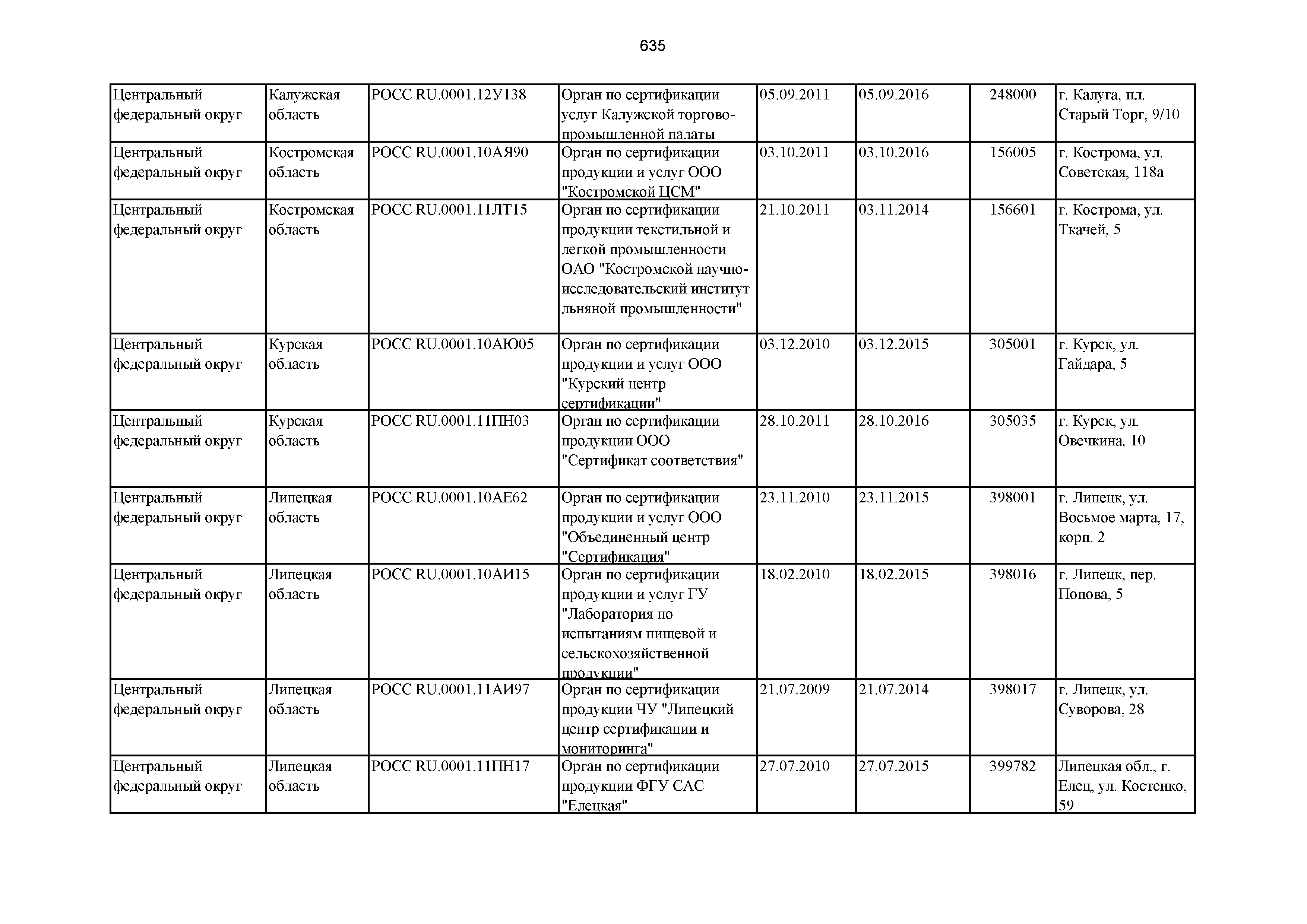 | Название рус.: | План инспекционного контроля деятельности аккредитованных органов по сертификации и испытательных лабораторий (центров) на 2012 год |